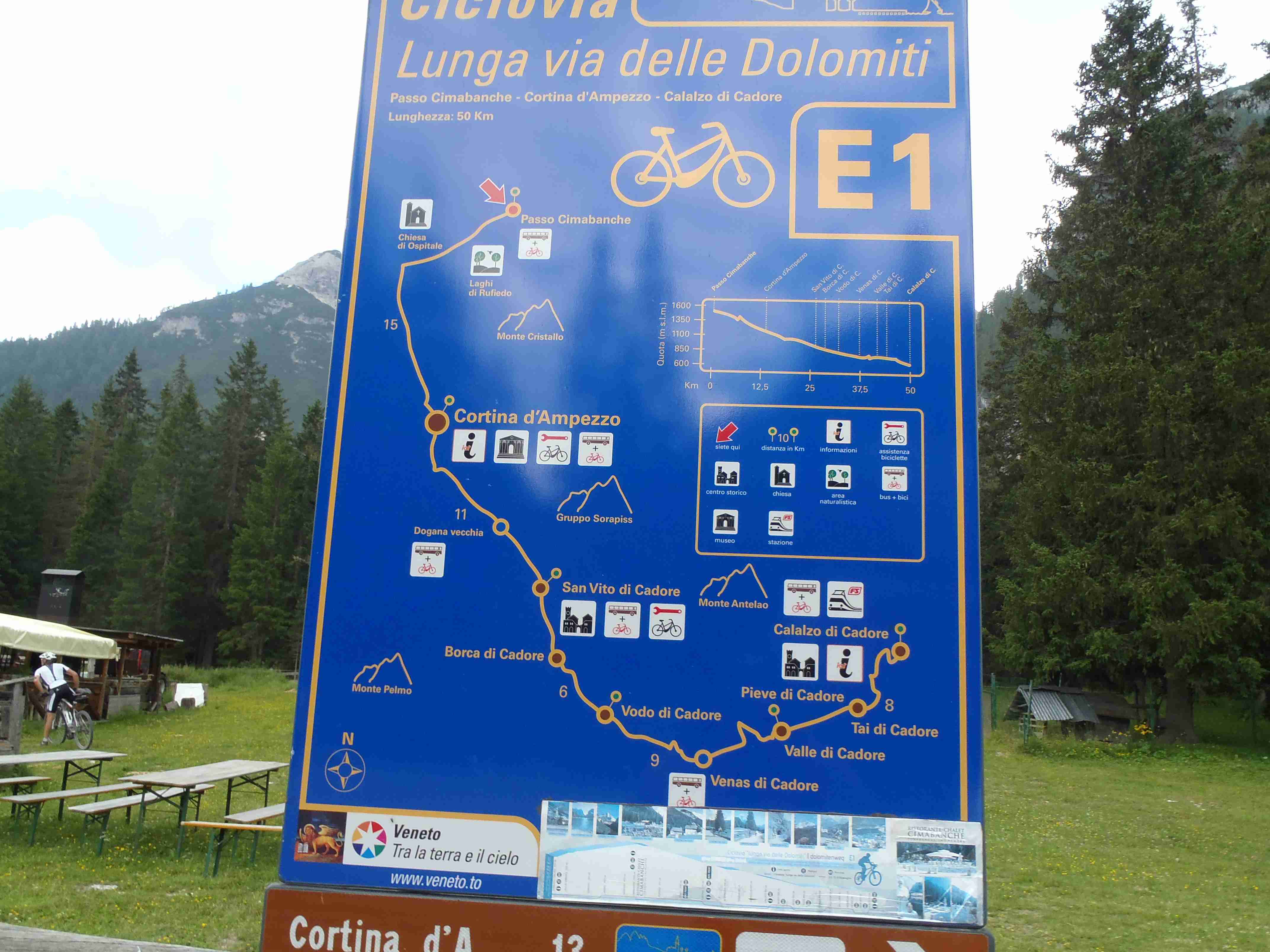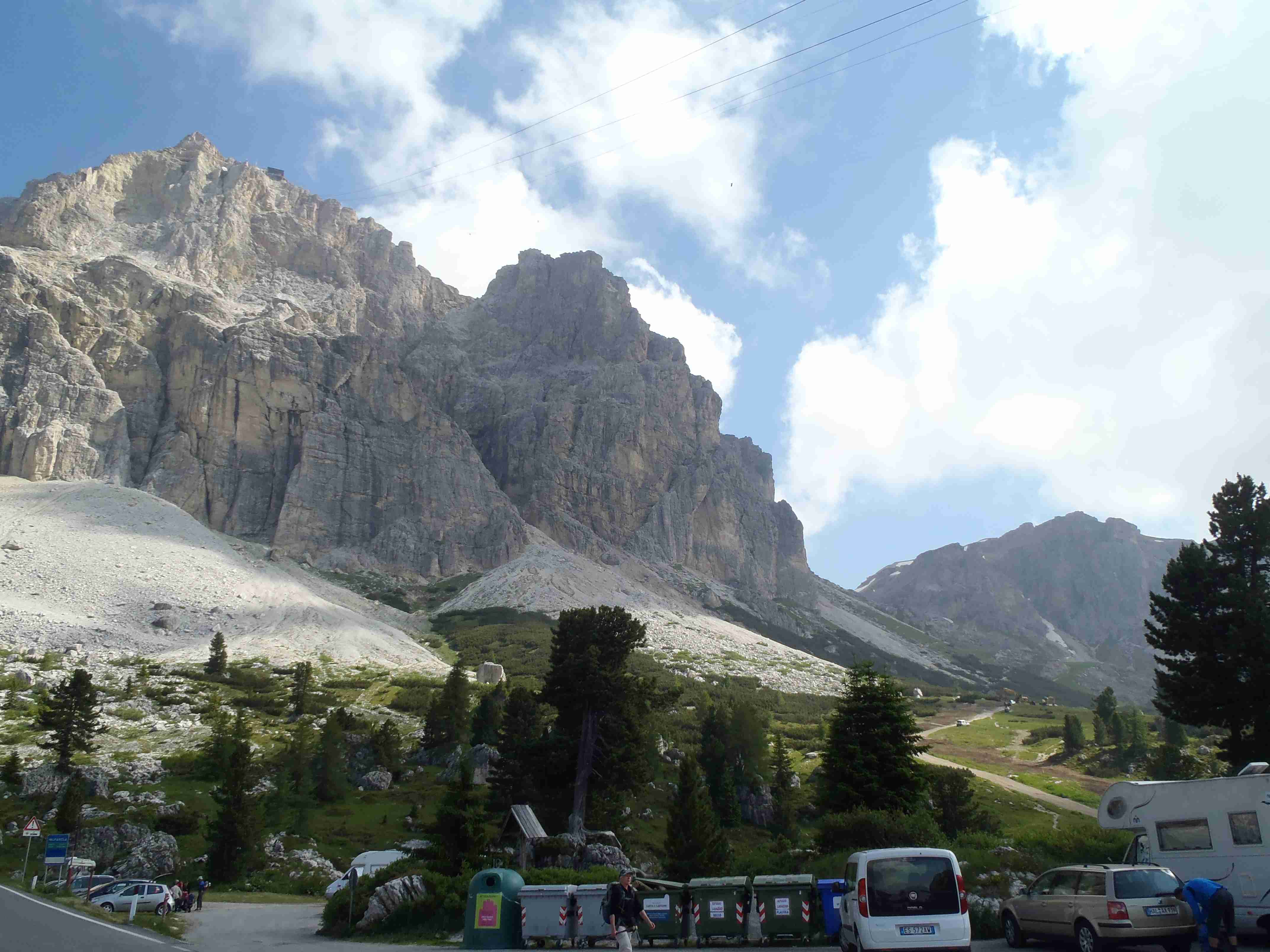 Autobusem do Passo Falzarego, lanovkou na Rifugio Lagazuoi, na kole z hory Pocol přes Cortinu d'Ampezo zpět na hotel.