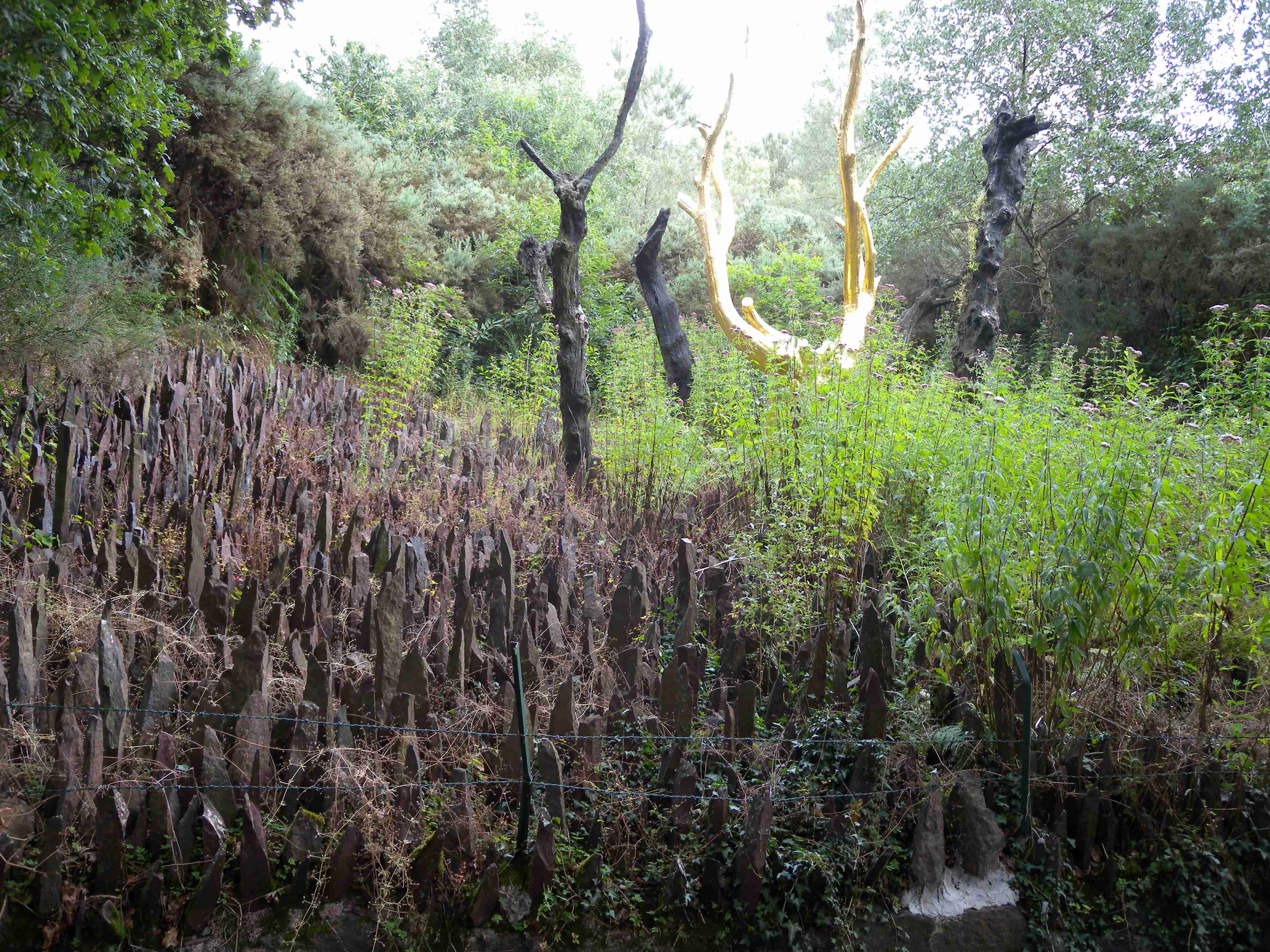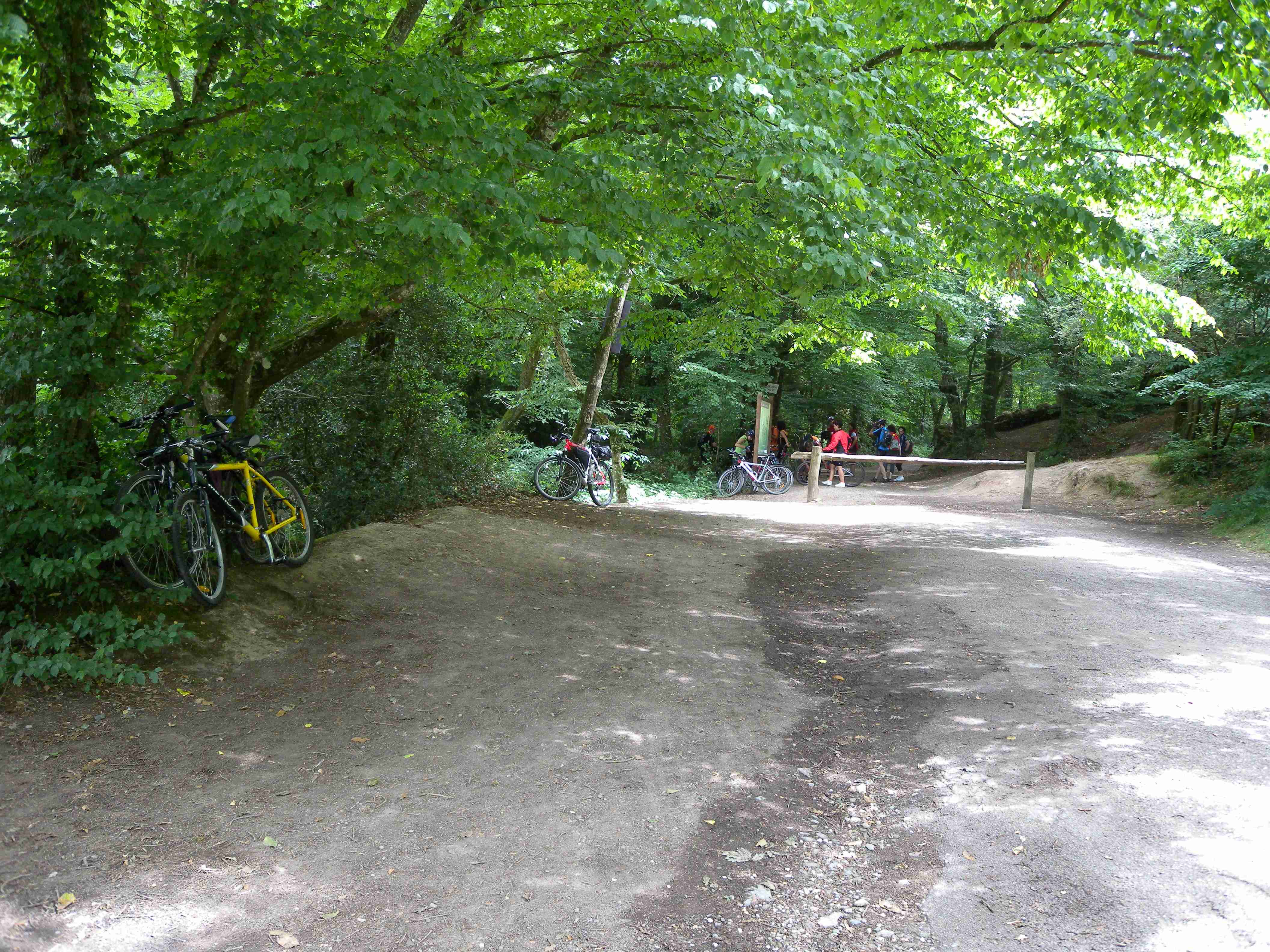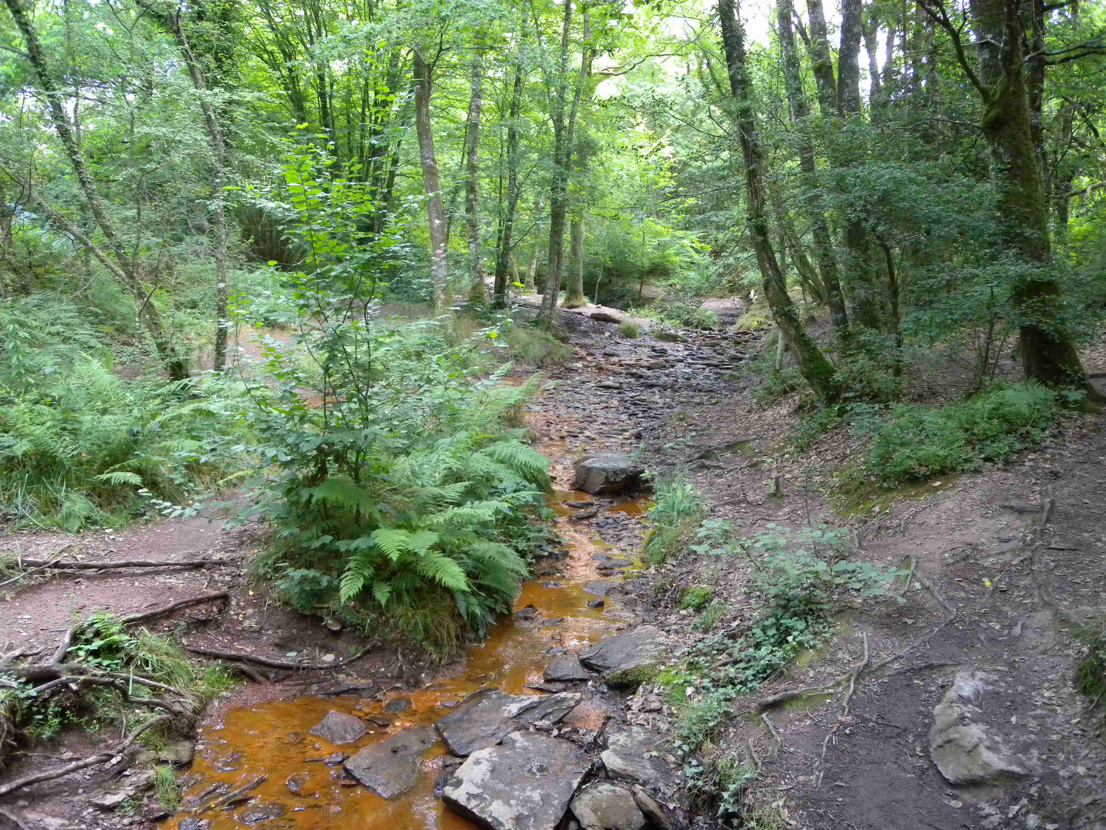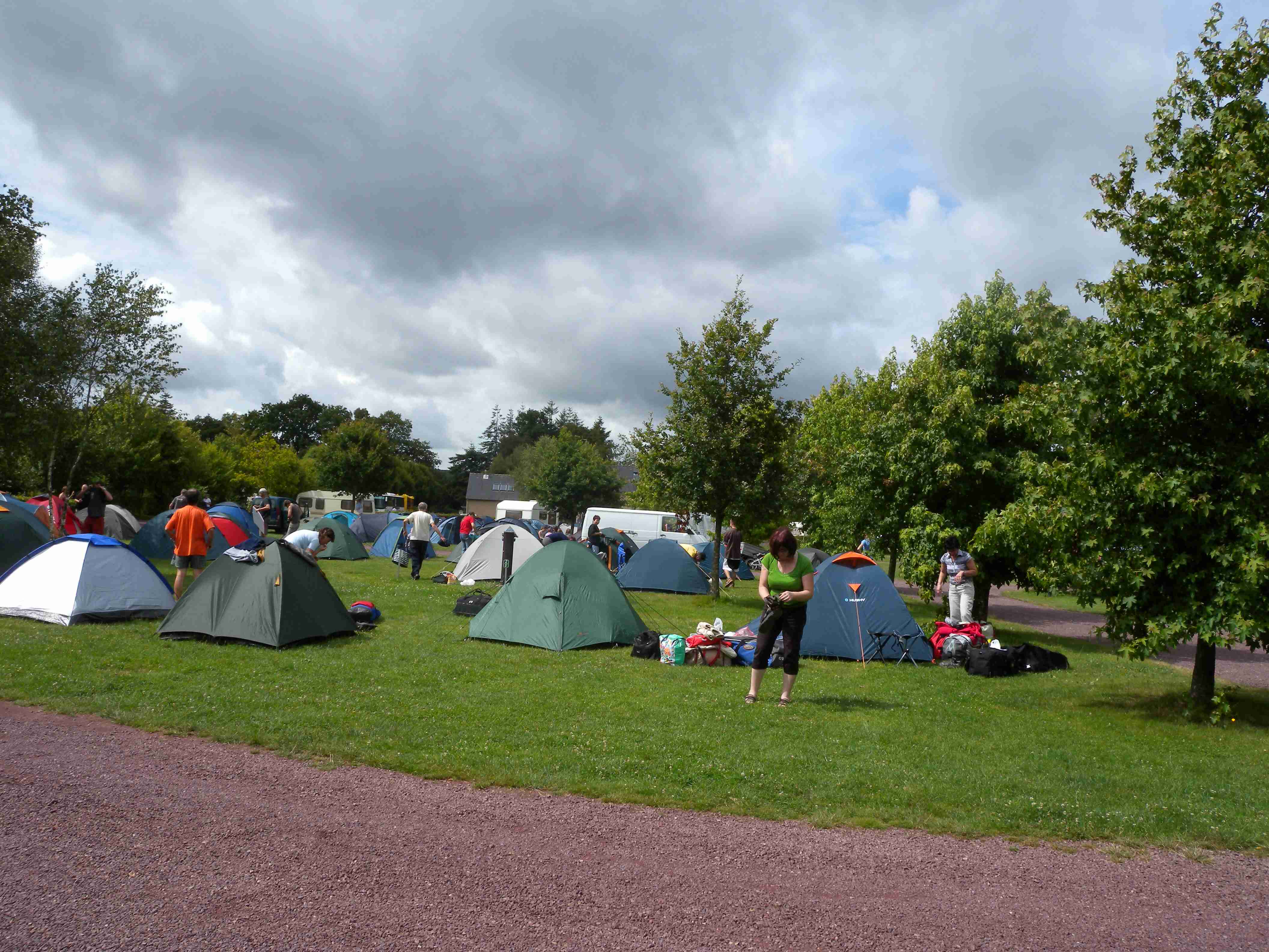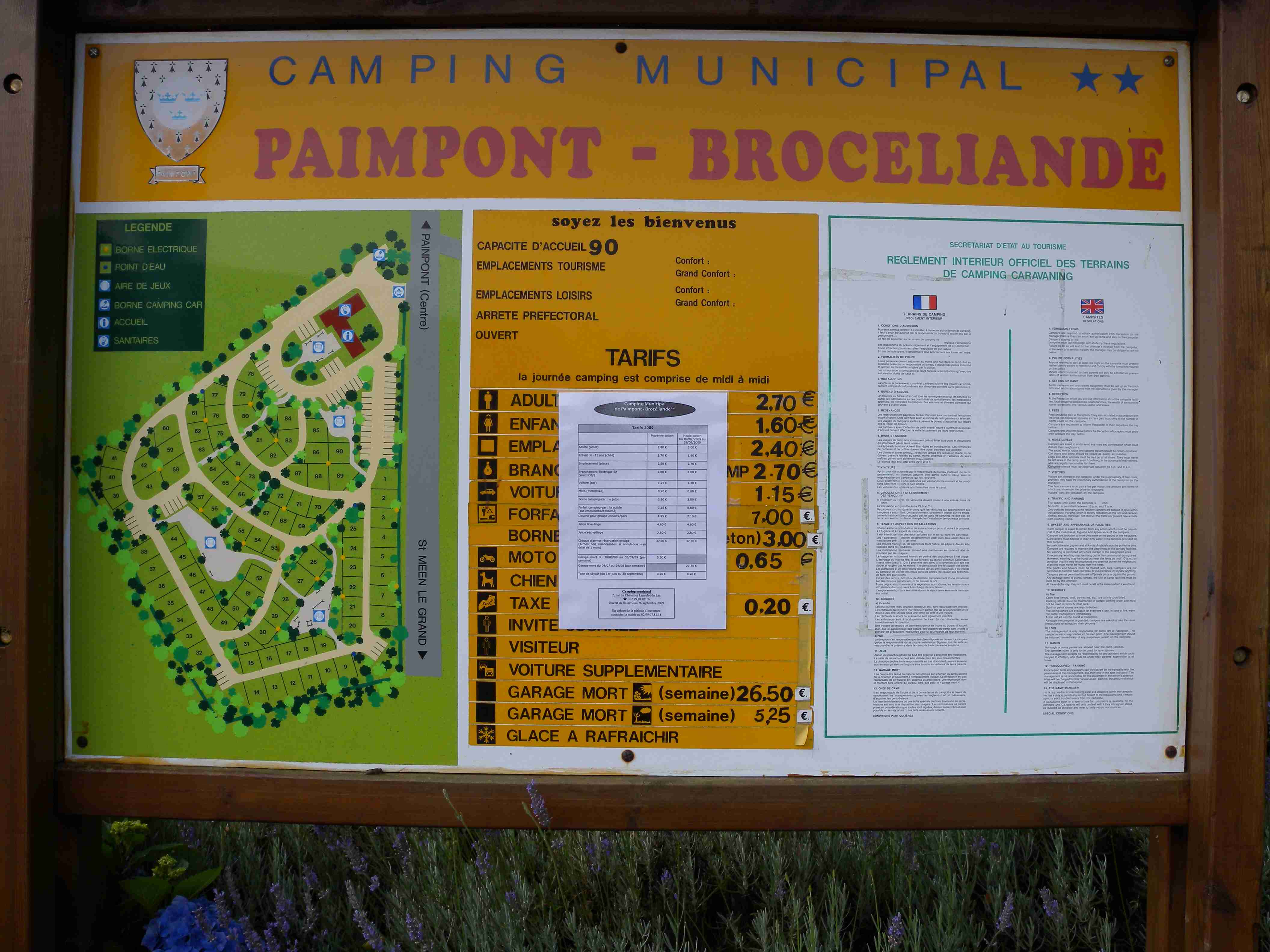 Zhruba v 11.30 jsme dorazili do kempu na kraji Paimpontu, postavili stany, dostali první jídlo od Kudrnů - kakao a buchty a kolem 13.00 jsme vyrazili na první výlet na kolech. Bohužel, než se Iva stačila vypravit, téměř všichni byli pryč a tak jsme ze začátku chvíli tápali, protože jsem měl zcela novou navigacií Oregon 400 t a musel jsem si s ní nejprve porozumět. Našim cílem bylo Údolí bez návratu, odkud jsme se však samozřejmě chtěli vrátit. Projeli jsme Paimpontem a zamířili na Beauvais, kde jsme zabočili na sever a později se stočili západně a na jih do obce Trehorenteuc, kde již většina účastníků seděla v hospodě. Ani jsme nic nedali a vyrazili do údolí. Kola jsme nechali na začátku a pokračovali pěšky, nejprve ke zlatému stromu a potom podél jezírek stále dál. Později jsme vyšplhali na kopec a z něho jsme sestoupili u zlatého stromu. Vzali jsme si kola a pomalu jsme se vrátili k hospodě Morgane Taverne, kde jsme se občerstvili a vyrazili zpět do kempu. Kousek jsme jeli stejnou cestou, ale na první křižovatce jsme zatočili na sever po D 141 směrem na městečko Concoret. Cestou se nám Marcela se Zdeňkem ztratili a tak jsme do Concoretu dorazili sami, udělali pár fotek a pokračovali do kempu, kam jsme dorazili kolem půl sedmé. Vysprchovat, večeře byla ve 20.00, rajská s knedlíkem, po večeři krátký briefing o programu příštího dne a poté jsme večer strávili na lavičce u dětského hřiště vedle sociálek, neboť to bylo blízko autobusu a hlavně jsme měli nabíjet přístroje v umývárce. Pár malých piv od řidičů a ochutnávka single malt whisky udělali ve spojení s celonoční jízdou své a tak jsme kolem 22.30 ulehli k prvému bretaňskému spánku.