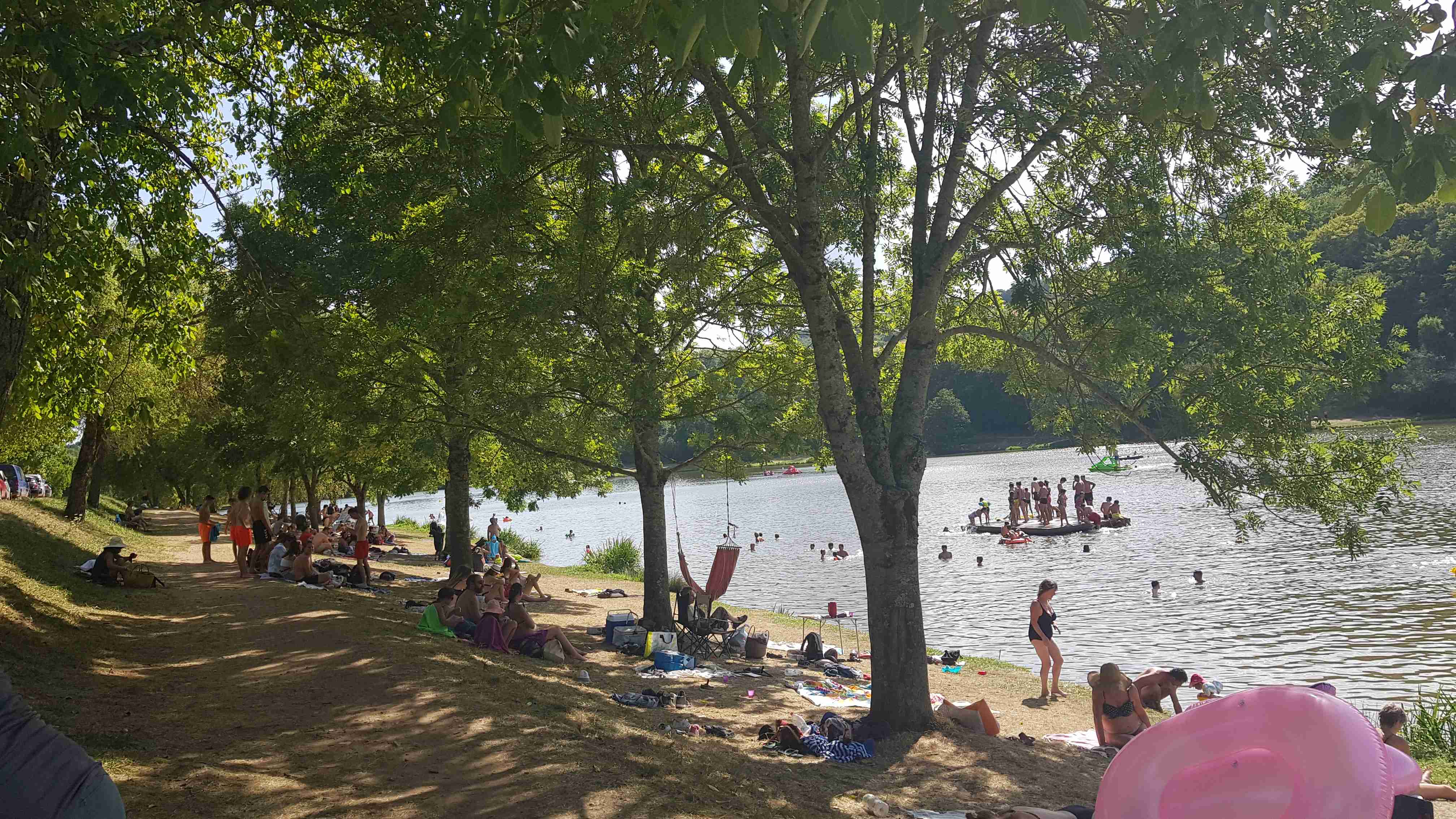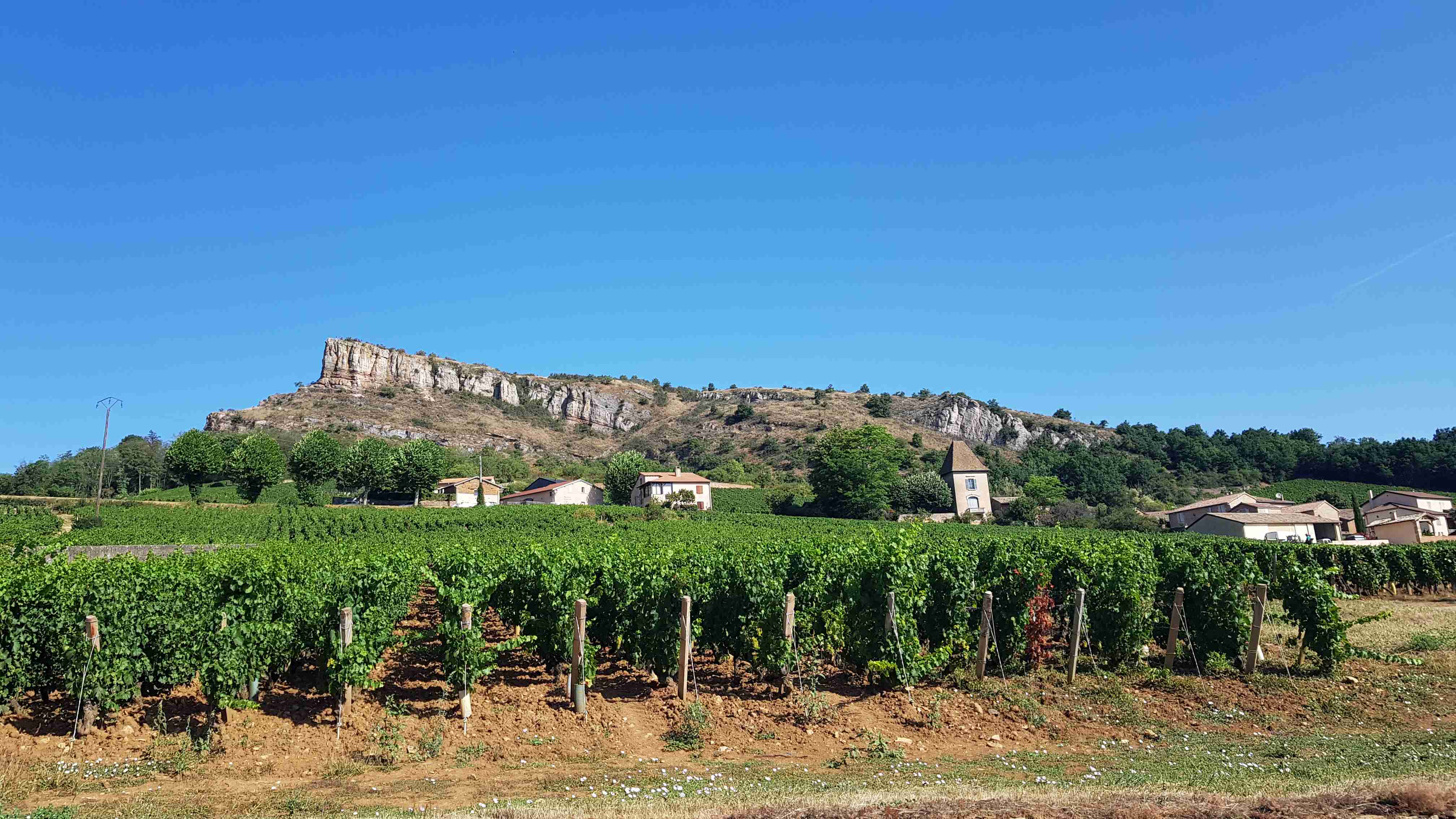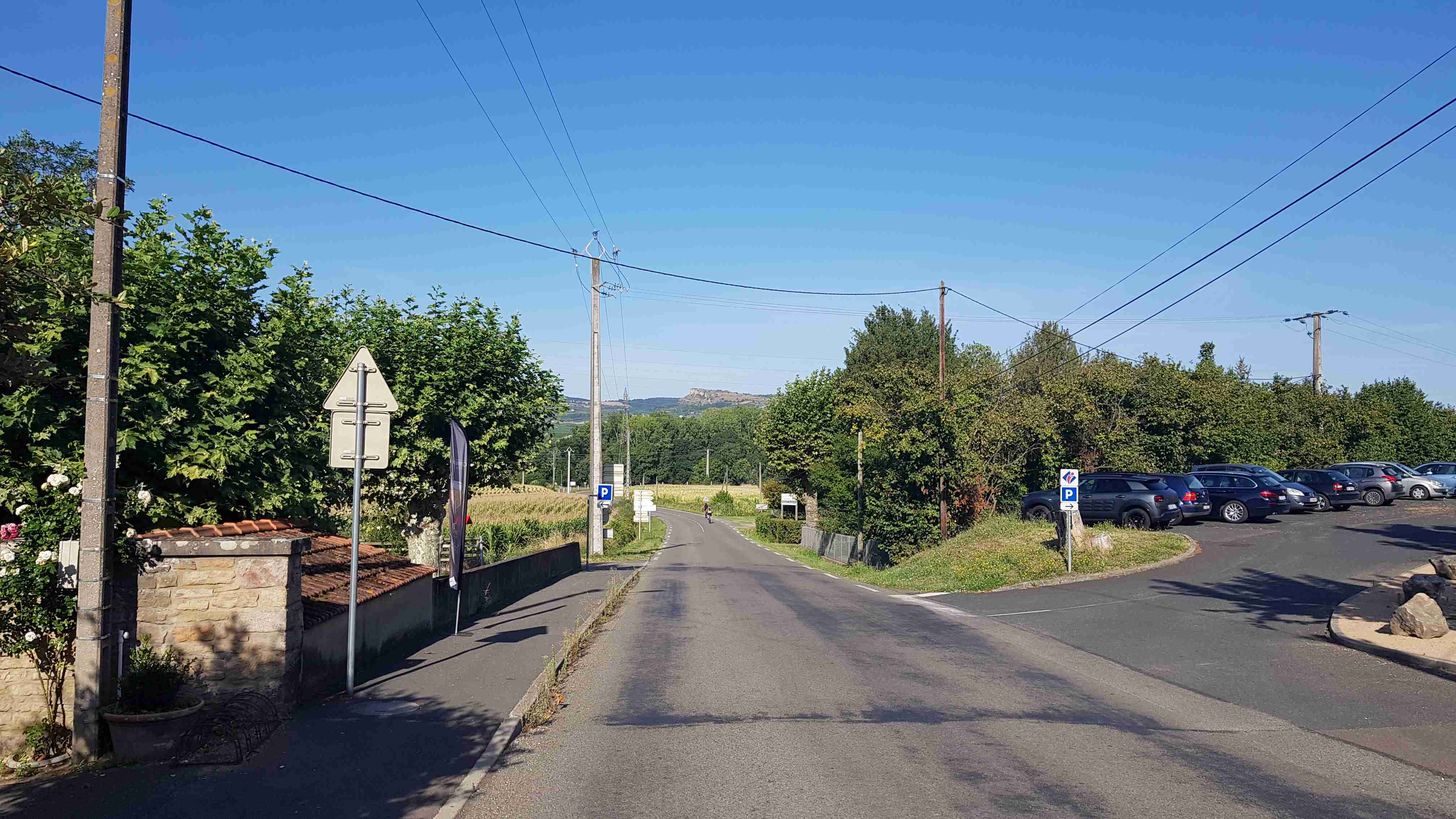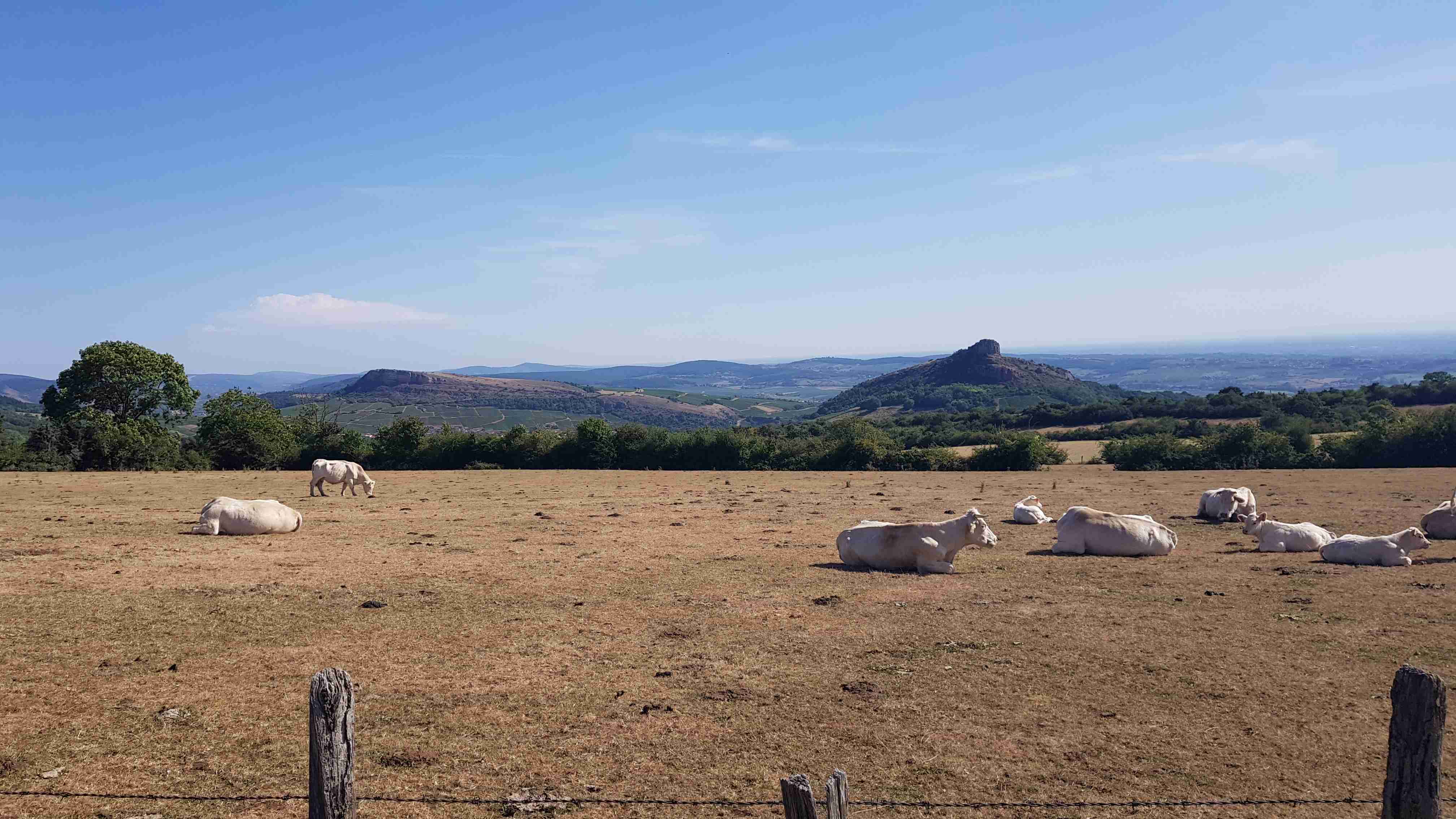 Po snídaní jsme si vzali kola a společně od hotelu nás vedl průvodce Ivan ven z města na první trasu k hoře Solutre. Bohužel, ještě, než jsme dojeli za město, jeden z účastníků se při rozjezdu skácel z kola a způsobil si naštěstí pouze pochroumání kotníku, ale i tak pro něj cyklistika skončila. Zranění jsme měli i před šesti lety rovněž první den na stejné trase. My jsme již jen ve třech vyrazili do stoupání na horu Solutre, slunce pálilo, kopec cca 12 km a co čert nechtěl, Honzovi došla baterka ještě před vrcholem tohoto prvního kopce. Ty darebáci mu půjčili naprostou plečku! Takže každou chvíli musel tlačit, naštěstí již mnoho kopců nezbývalo, často jsme sjížděli dolů. Projeli jsme vesnice Cerves, Tramayes, všude pusto, žádná hospoda. Slunce nemilosrdně pálilo, a tak jsme po dojezdu k autobusu do Saint Point dali pivo, vzali plavky a zajeli se pár set metrů zpět k malé přehradní nádrži vykoupat. To byla lahoda! Kolem páté jsme pak odjeli busem zpět na hotel, kde nás od půl osmé čekala opět skvělá večeře – žlutý meloun se šunkou jako předkrm, kuřecí špíz se zapečenými brambory a jako desert jsem si dal opět sýr.