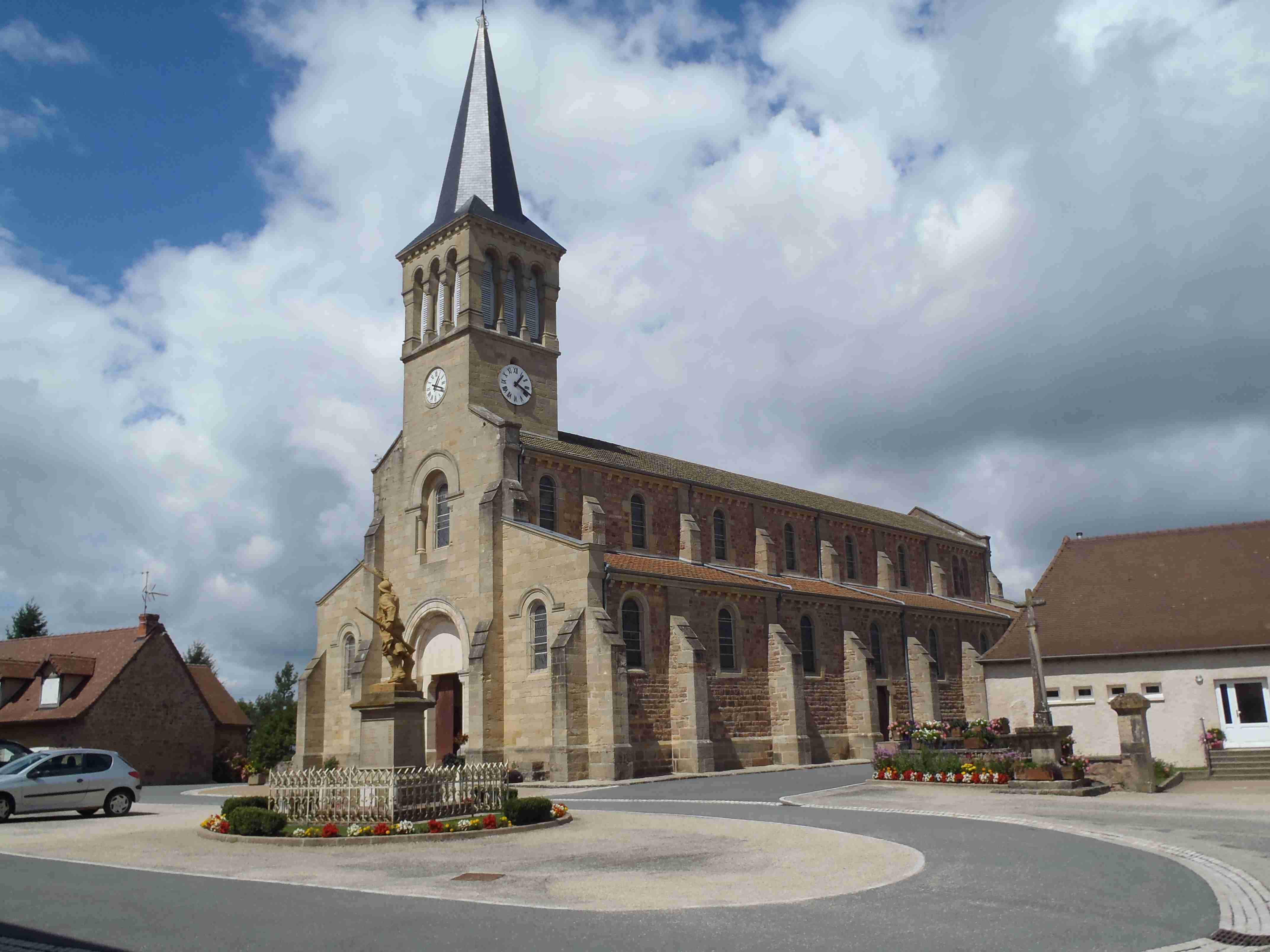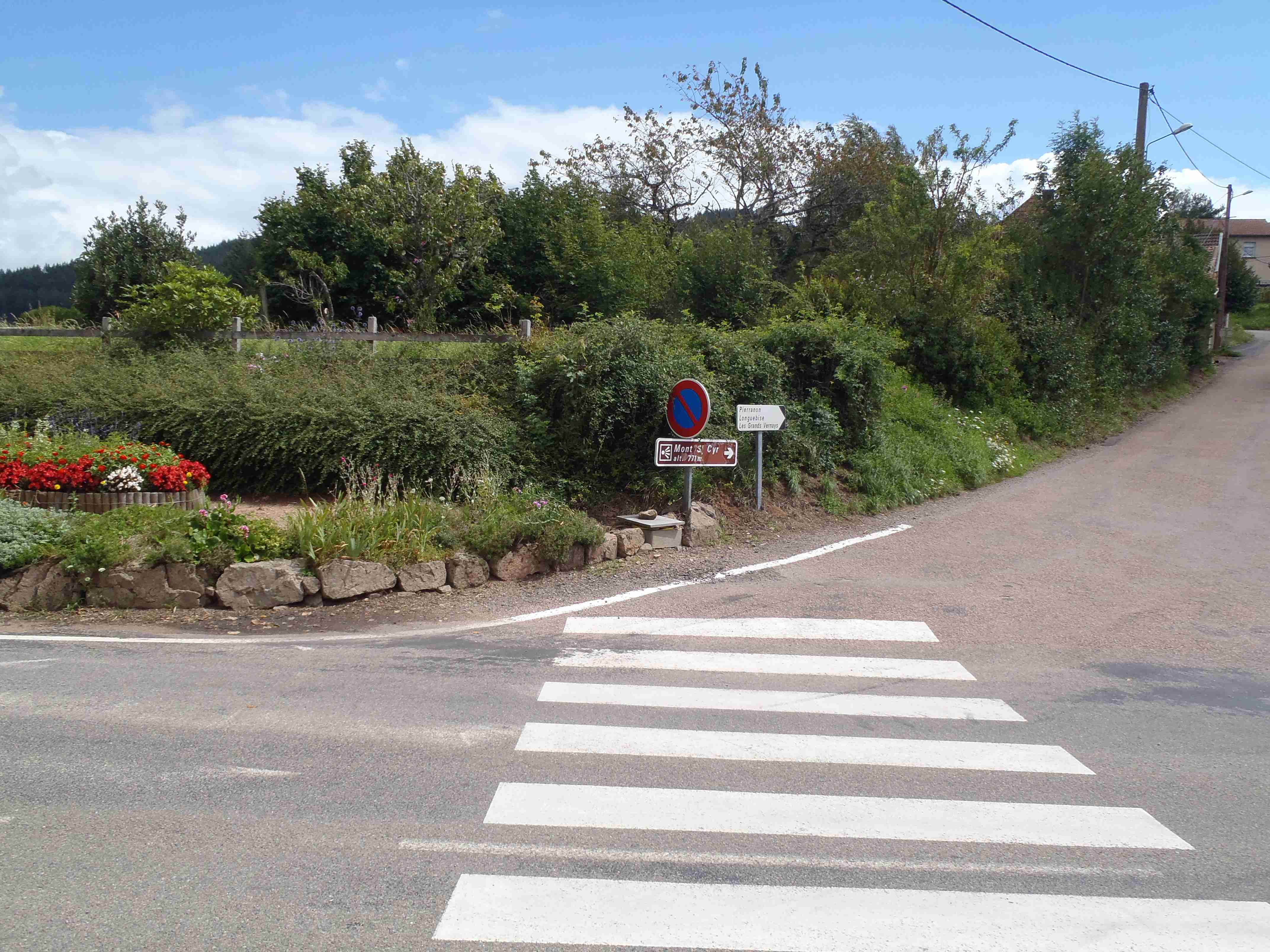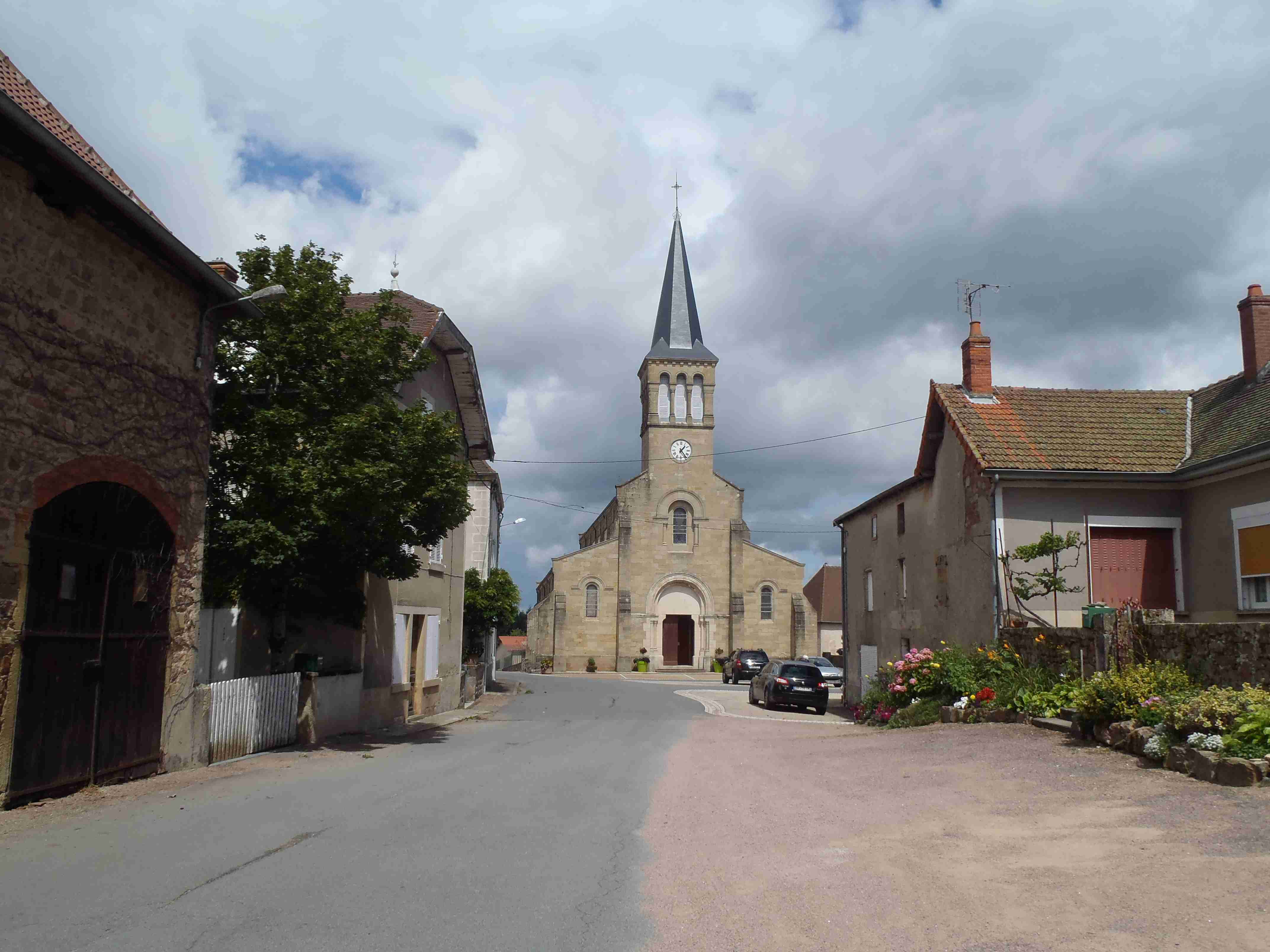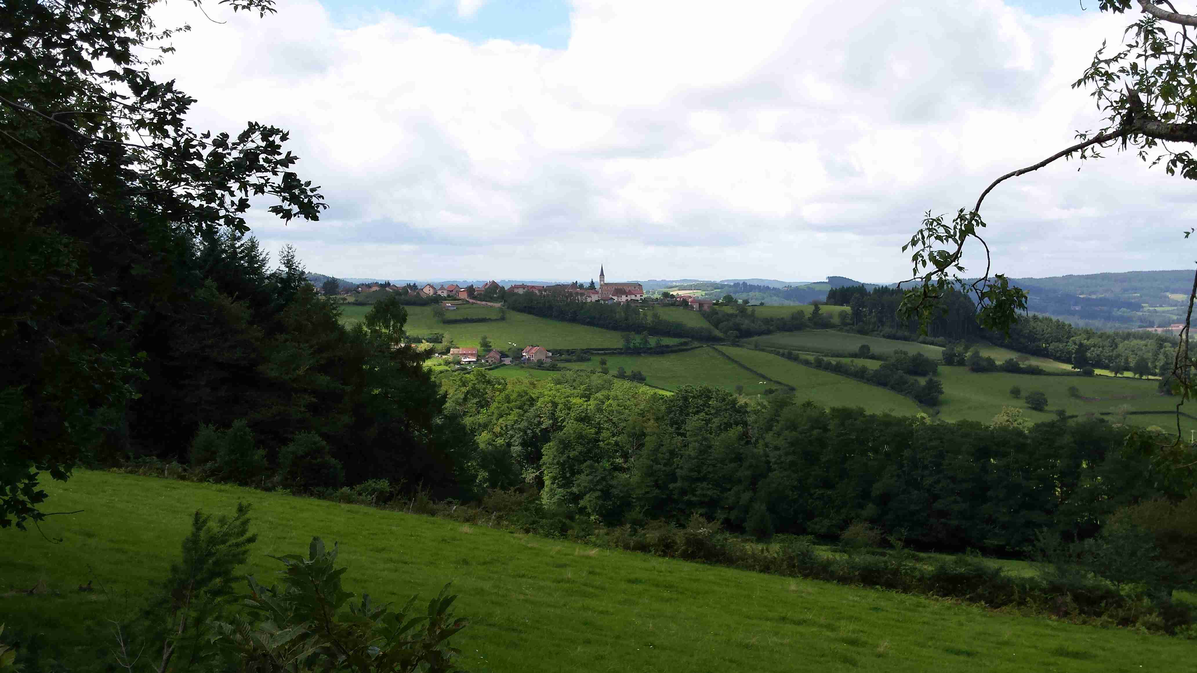 Po snídani jsme nasedli do autobusu, který nás odvezl do asi 40 km vzdáleného městečka Matour, kde zaparkoval vedle koupaliště. Koupat se nešel nikdo, protože opětovně střídavě pršelo, takže jsme někteří čekali v autobuse, než déšť přejde. Asi po tři čtvrtě hodině jsme s Ivou usoudili, že by to již šlo a vyrazili jsme. Zastavili jsme se na náměstí v Matour, kde probíhal trh a pokochali se pohledem na sýry a klobásy, které byli u několika pultů, jinak samé krámy. Poté jsme sjeli asi 5 km z kopečka do Trambly, zatočili doleva a začali stoupat celkem asi 12 km přes Dompierre les Ormes až kousek před Montmeland, do kterého to bylo asi 2 km z kopečka. V Montmelandu začínal, pro toho, kdo chtěl, hodně prudký výšlap na horu St. Cyr, ale to nebylo nic pro nás. Zajeli jsme do středu obce udělat pár fotek, sedli jsme si na chvíli na zahrádku před kavárnu vedle silnice, dali si pivo a kafe a pak jsme sjeli asi 1,5 km z kopce do Vicelaire, kde jsme prudce zatočili doleva a opět do kopce, tentokrát prudšího, asi 3 km dlouhého. Poté jsme již víceméně sjížděli přes Croux a Col de la Croix d’Autere zpět do Matour k autobusu u koupaliště. Protože se v průběhu dne docela vyčasilo, někteří účastníci se i vykoupali. V 17:00 jsme odjeli autobusem zpět k hotelu, dnešní etapa měla sice jen 32 km, ale kopečků jsem měl plné zuby.