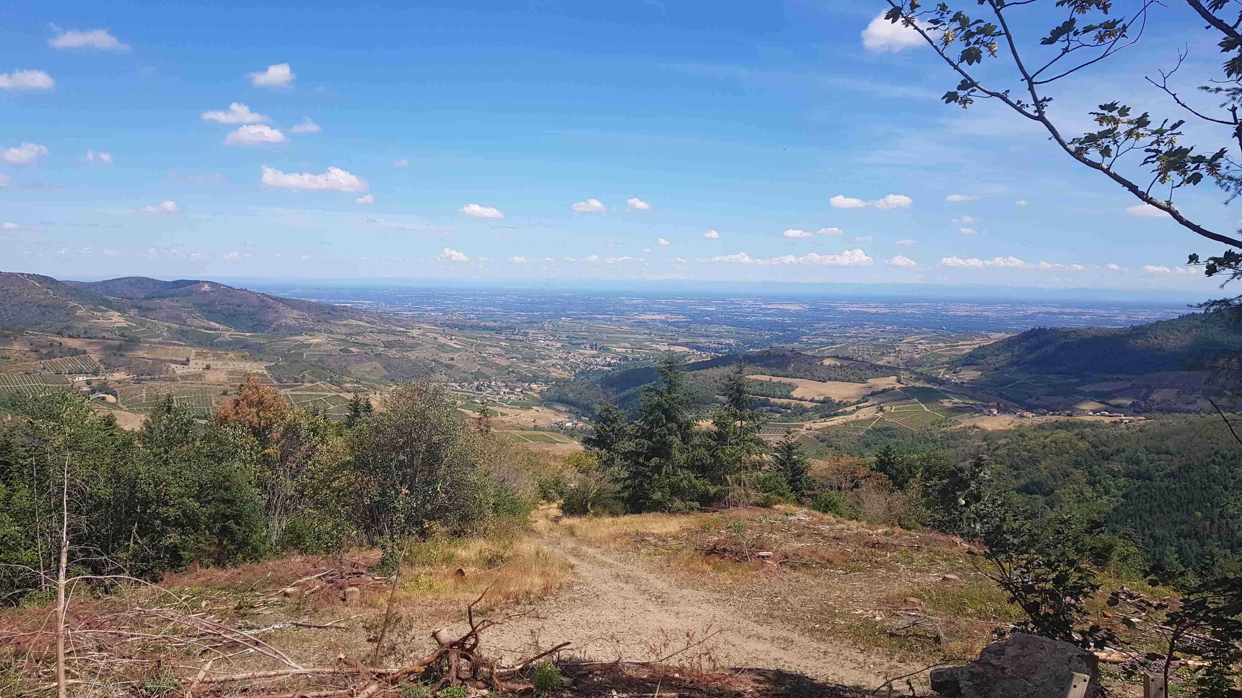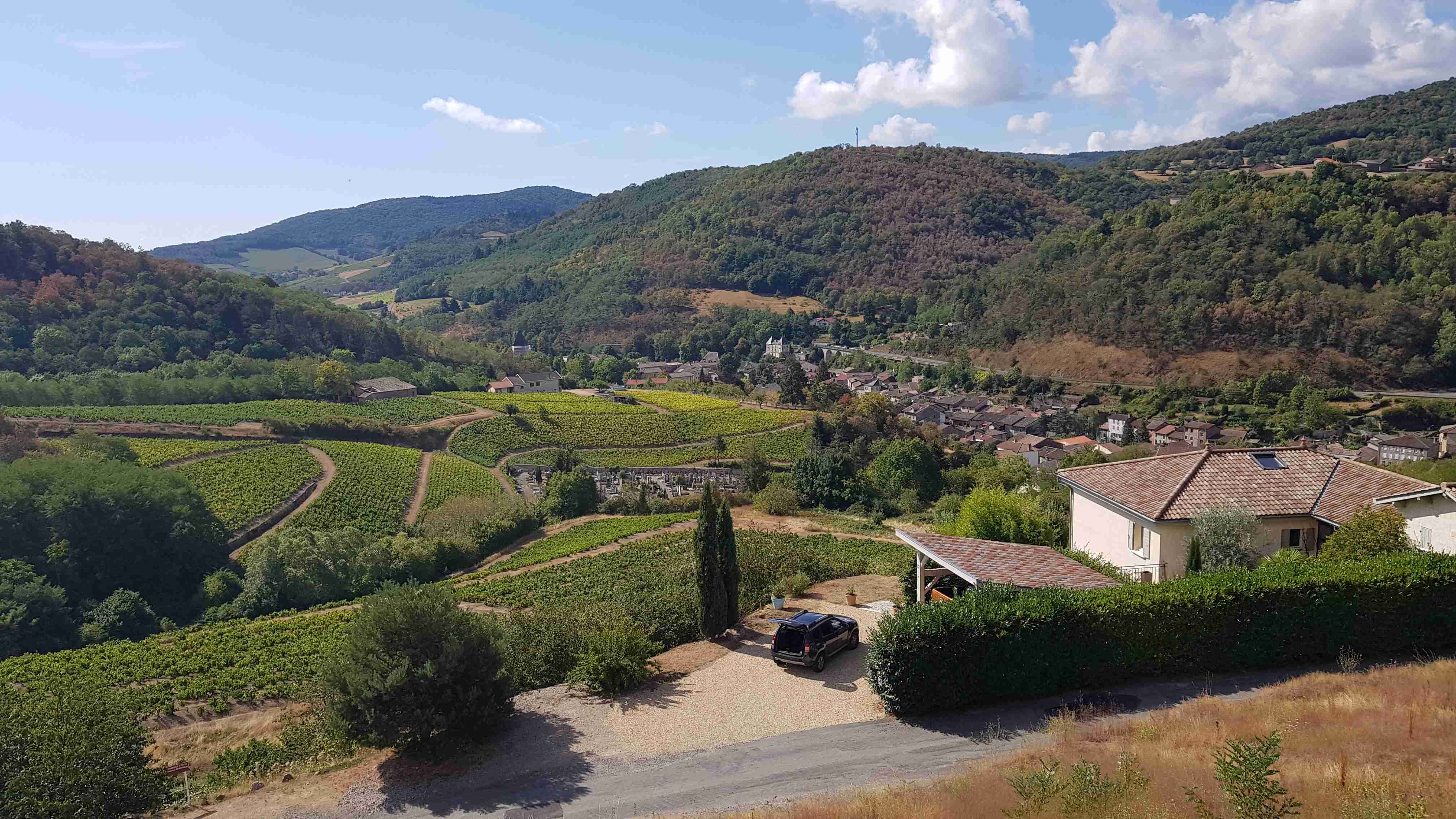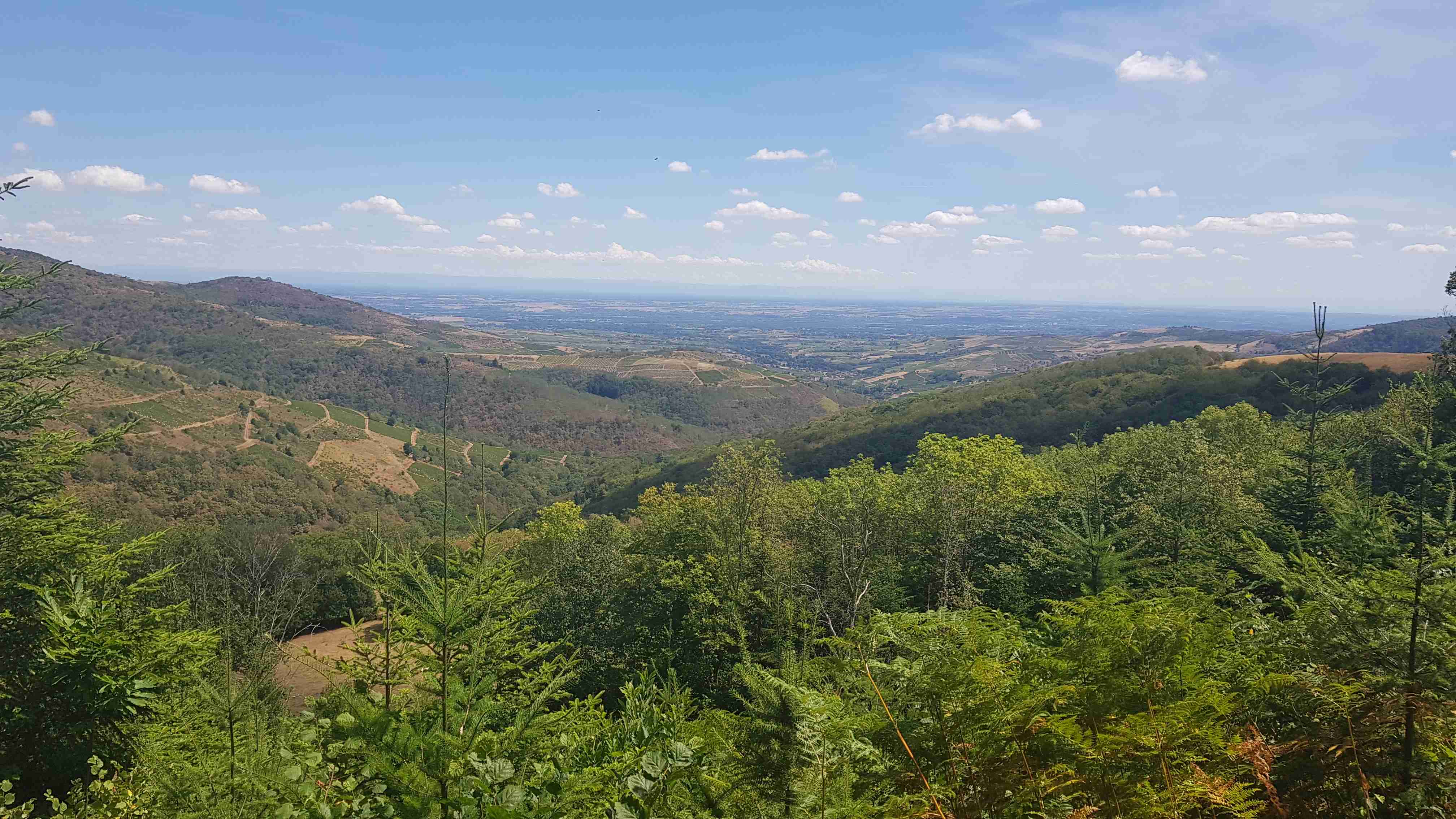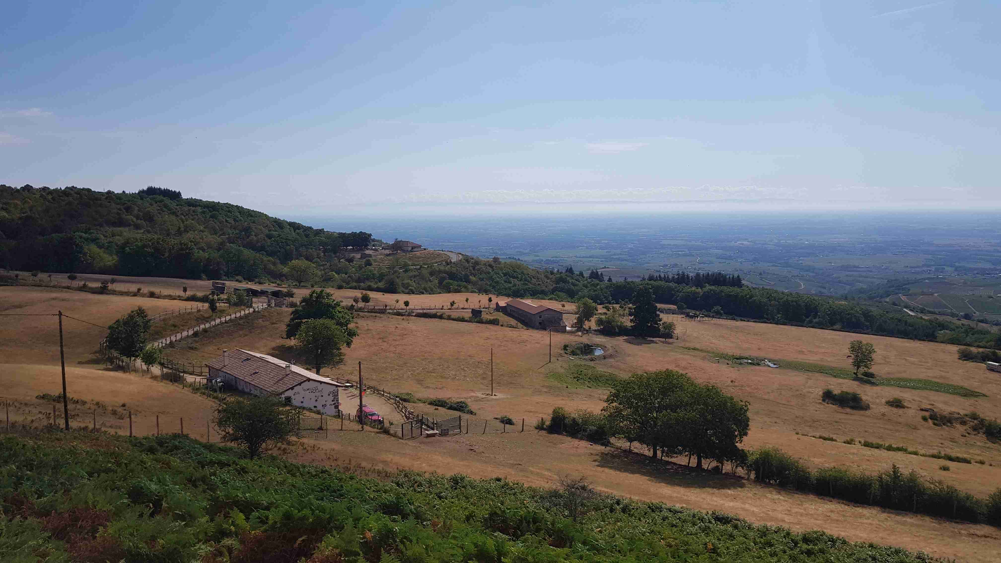 Na poslední etapu nás autobus odvezl opět mimo Burgundsko a to do oblasti Beaujolais, kde nás vysadil těsně pod vrcholem kopce v oblasti Chiroubles. Vyjeli jsme na kolech ten zbytek kopce, kousek po rovince a poté doleva na D 129 a klesání cca 7km do městečka Beaujeu, kde se naše trasa rozdělovala na dvě varianty: doleva kratší a téměř po rovince, doprava delší a kopcovitá. My jsme volili tu delší (i Honza!), ale ještě předtím jsme zajeli do centra města na pár fotek. Pak jsme již vyrazili do kopců, ten první byl cca 10 km stoupání a samozřejmě Honzovi došla baterka ještě před vrcholem tohoto prvního nejdelšího. Vytlačil na vrchol, my jsme mu pomohli od baterie, která má sama o sobě snad 10 kg, ale zbývající 3 vrcholy si musel stejně odtlačit. Cesta vedla vyprahlou krajinou přes tři sedla a z toho posledního pak již závěrečné klesání cca 7 km do obce Vaux-en-Beaujolais, neboli Clochemerle, česky Zvonokosy, kde čekal autobus. Museli jsme zabezpečit kola na přepravu do Čech, doplnit tekutiny a vyrazili jsme do mestečka do vinárny. Ale byl jsem tak utahaný a zmožený vedrem, že jsem si ani nic nedal a ani nic nekoupil sebou. Takže jenom pár fotek a posezení ve stínu. V 17 hodin jsme vyrazili k hotelu, tam se mi udělalo zle, pravděpodobně ze včerejších zbytků kuřete, a tak jsem se nezúčastnil večerního rozloučení s hotelem a ani jsem nevečeřel. Naštěstí jsem to vyležel a ráno bylo již vše O. K. Tak taková to byla neslavná tečka za jinak skvělým zájezdem
