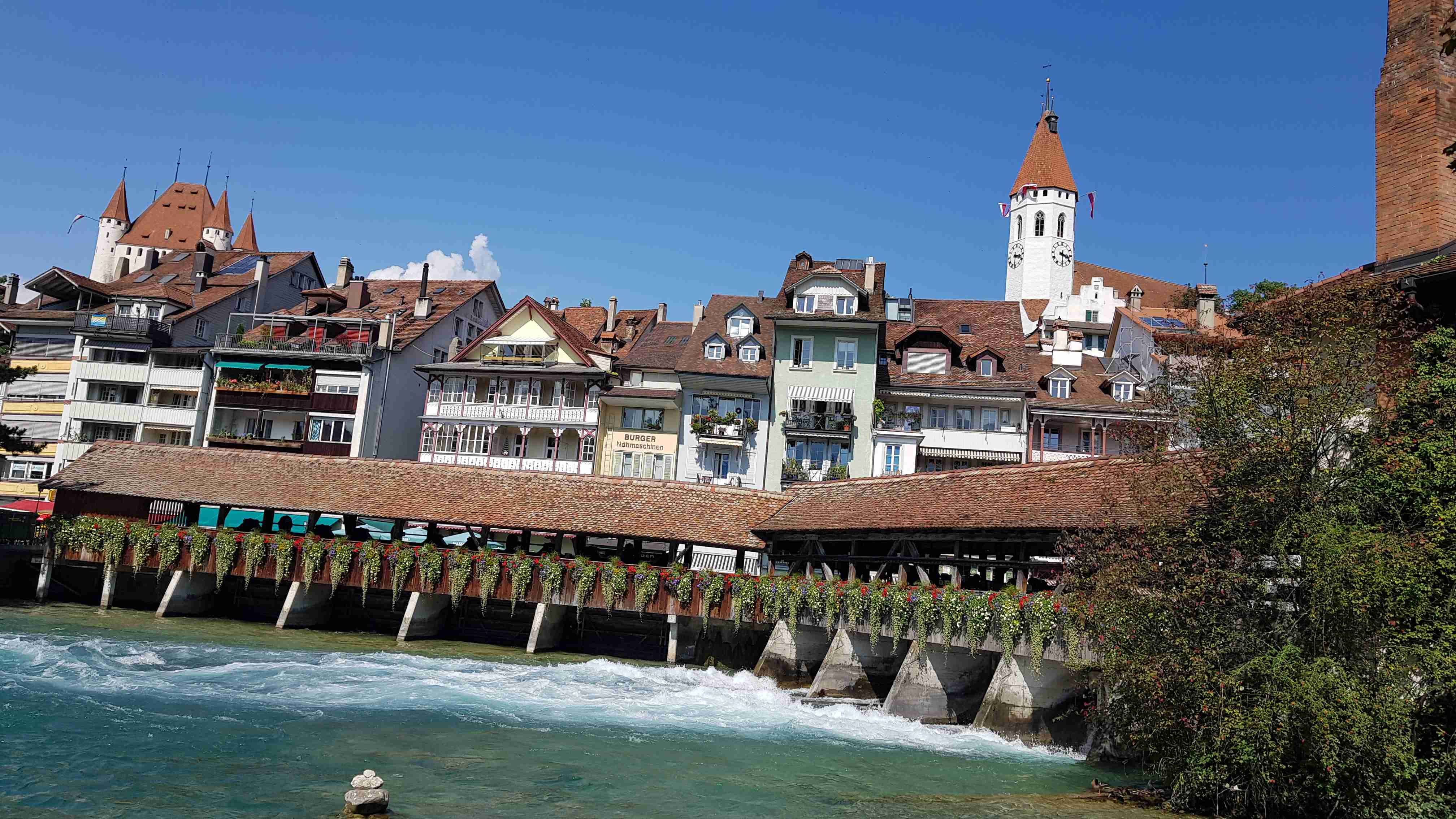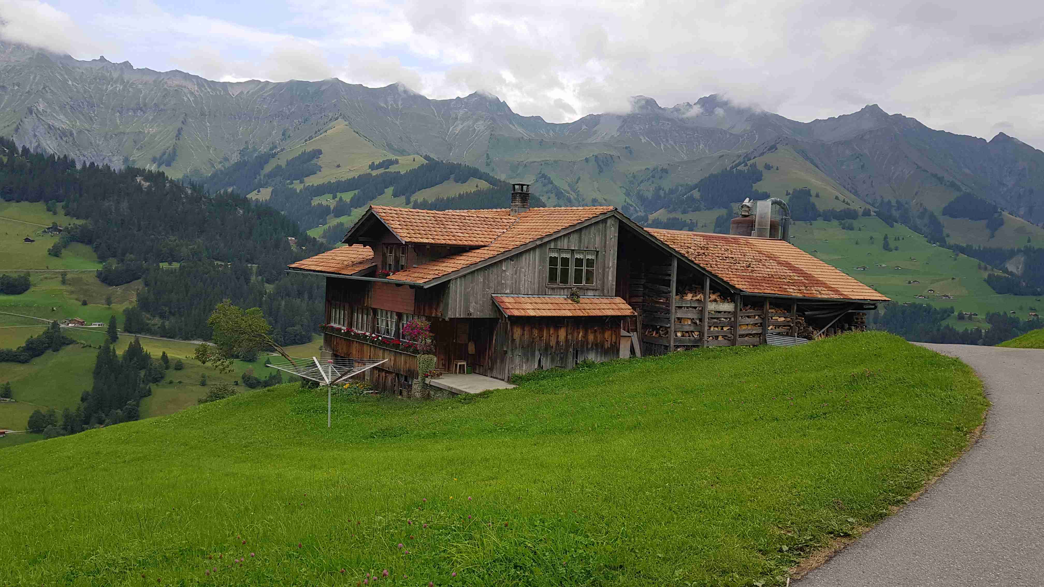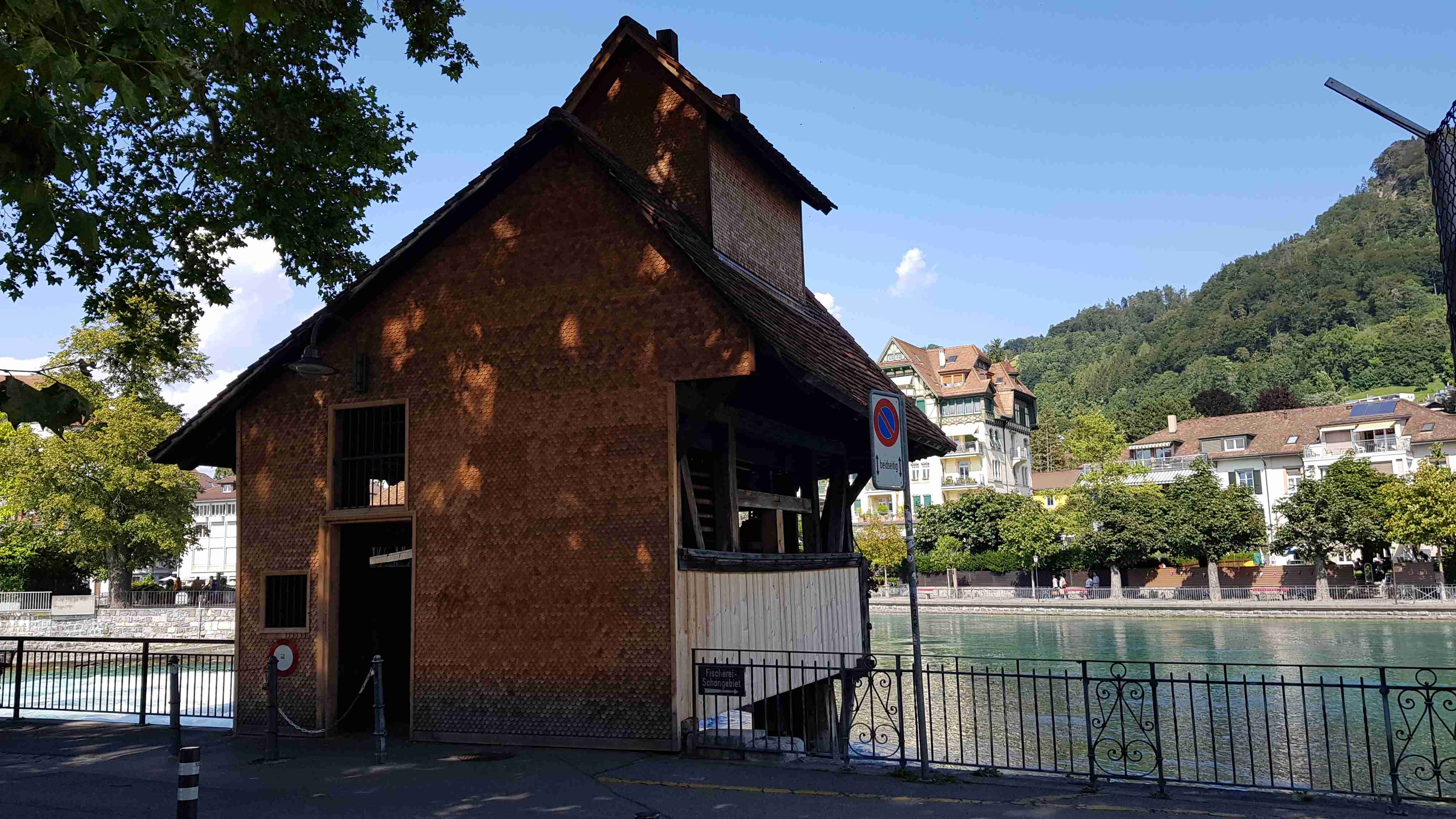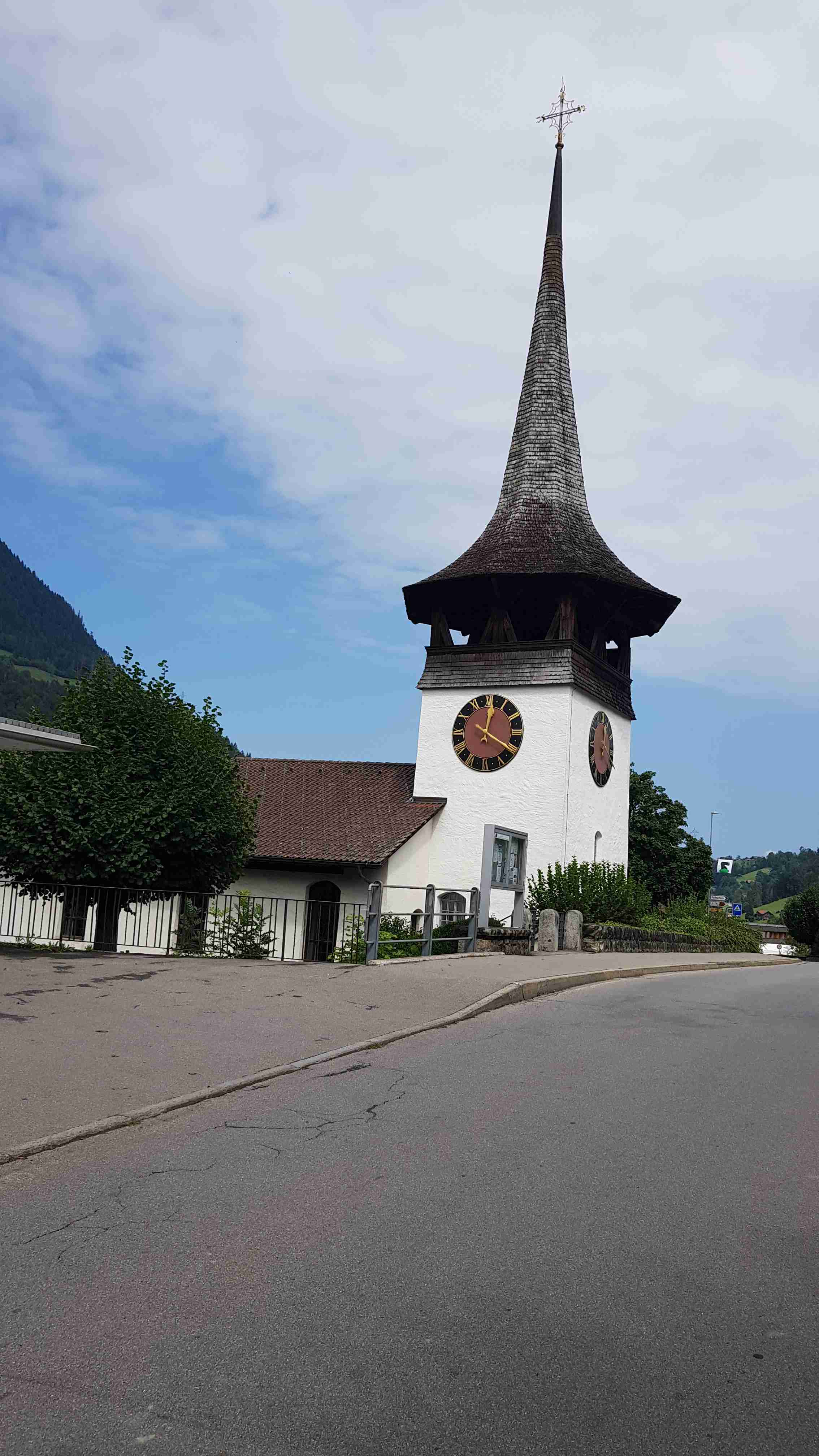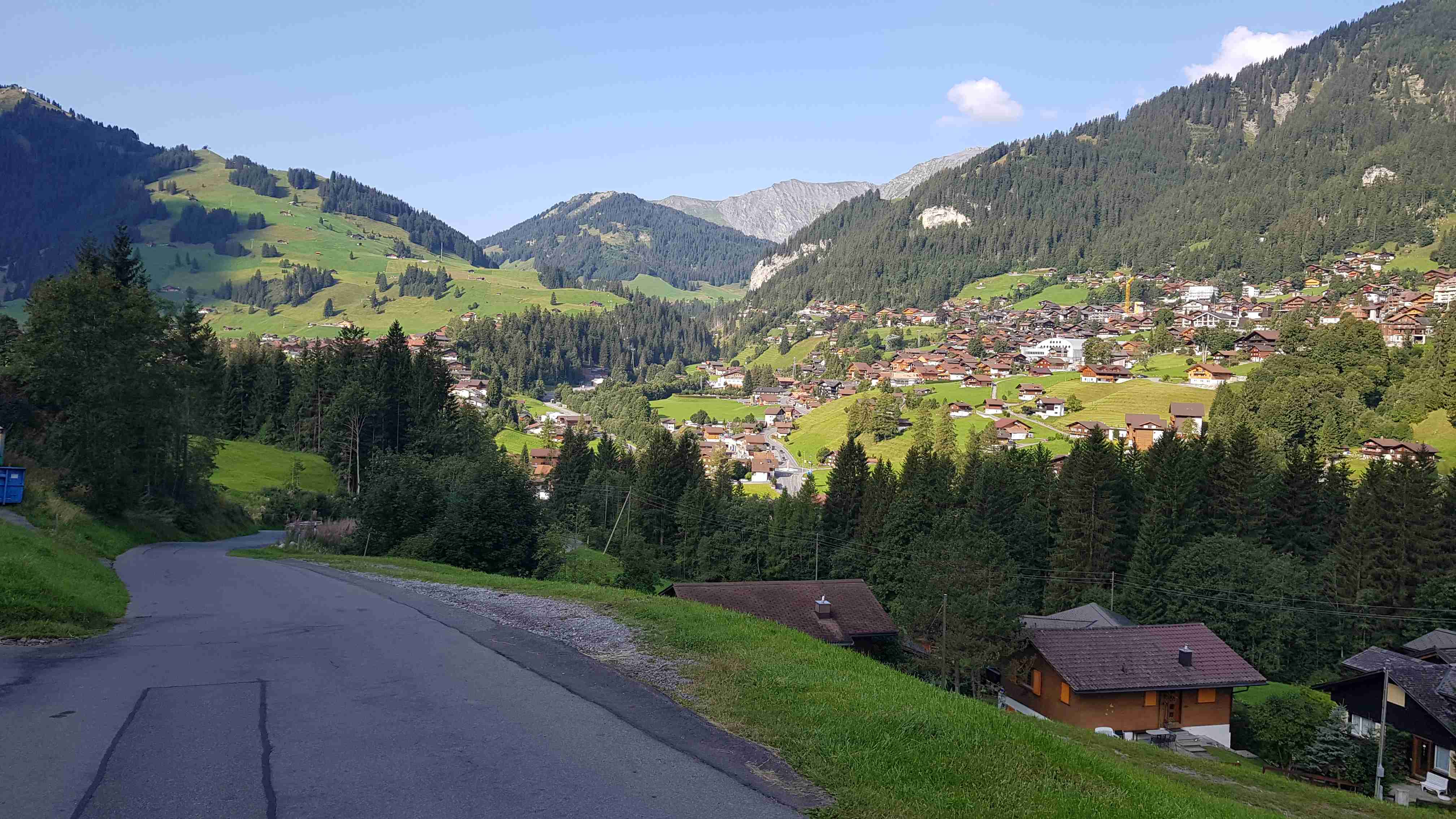 Dnes jsme vyrazili na kolech už od místa ubytování. V Adelbodenu jsme sjeli kousek dolů na kruhovou křižovatku, kde jsme vyjeli doprava, přejeli přes říčku Engstlige a vystoupali nahoru do kopce vysoko nad hlavní silnici. Drželi jsme se pořád cyklostezky č. 1 Alpine Bike, trasa předepsaná Eurocyklem však v jednom úseku vedla jinudy, a to jsme si nevšimli. Právě v tomto úseku jsme vystoupali nejvýše (cca 1500 m n. m.), cyklostezka se změnila v 50 cm širokou štěrkovou cestičku pěkně prudkou. Naštěstí to netrvalo dlouho a opět jsme jeli po horských silničkách a po pár kilometrech byla již cyklostezka od Herdegenu totožná s tou švýcarskou. Před Frutigenem jsme sjeli z kopců dolů k řece a hlavní silnici, kterou jsme posléze podjeli, minuli jsme spodní stanici lanovky Niesenbahn v Mülenenu a zamířili jsme na městečko Wimmis. Před ním jsme to stočili doprava na Spiez, kde čekal autobus. Dali jsme malé pivní občerstvení a vyrazili do Thunu, kam se mezitím přesunul i náš autobus. Ten jsme našli, ale vydali jsme se ještě na kolech do centra, nafotili pár zajímavostí a vrátili se k autobusu, který nás po naložení kol odvezl zpět na ubytovnu. Počasí nám, navzdory předpovědím, docela přálo, najeto cca 57 km.