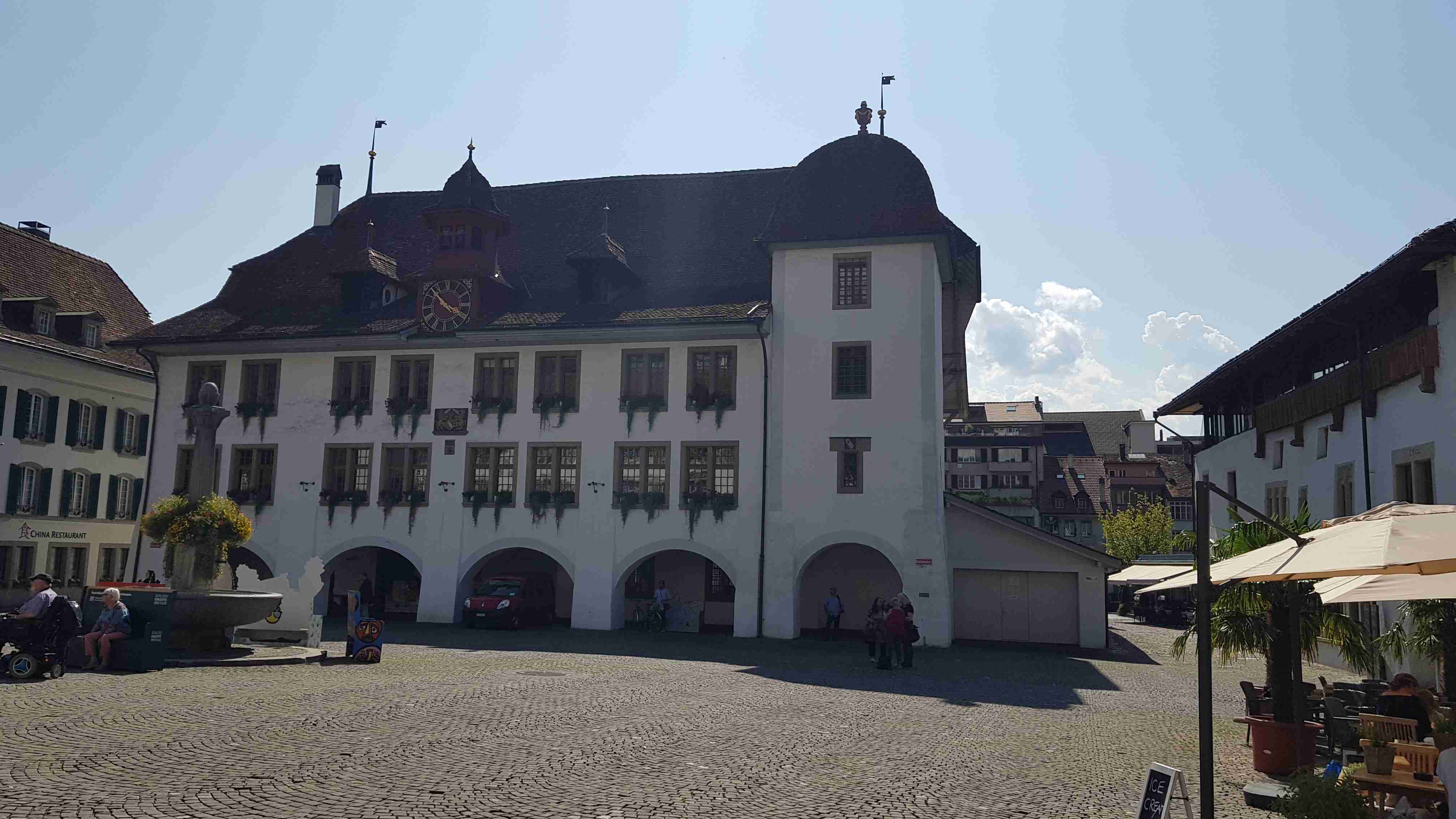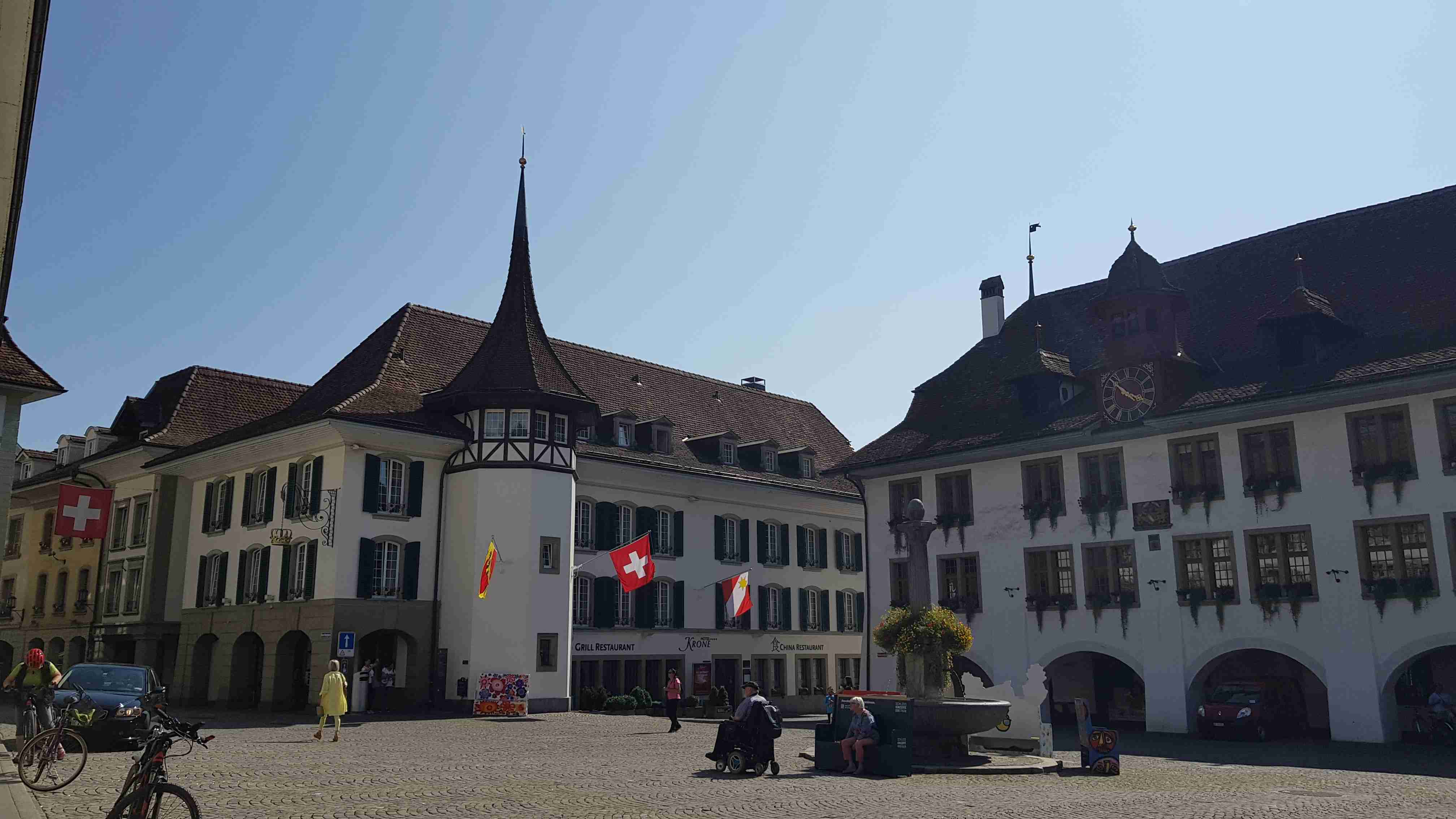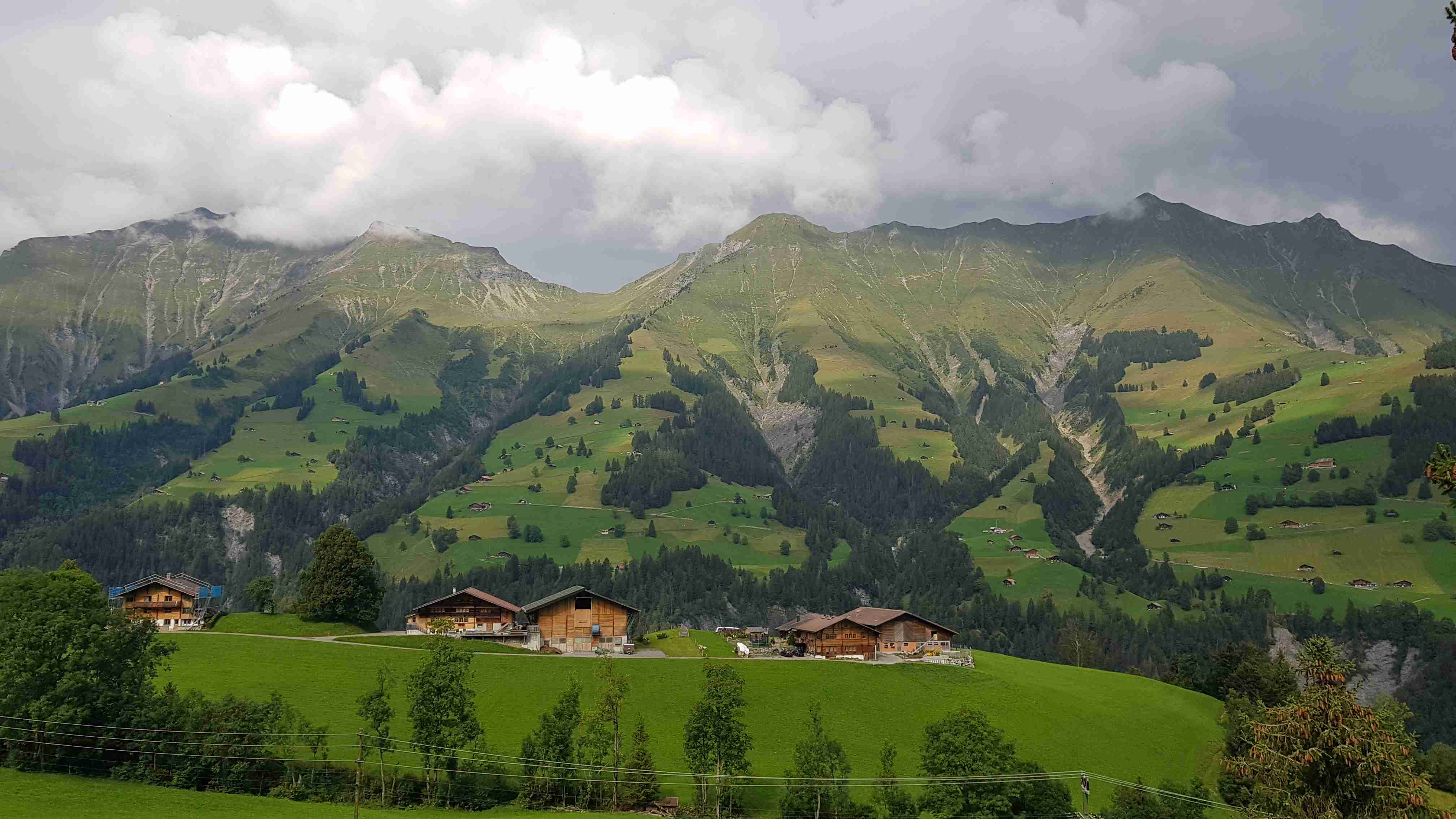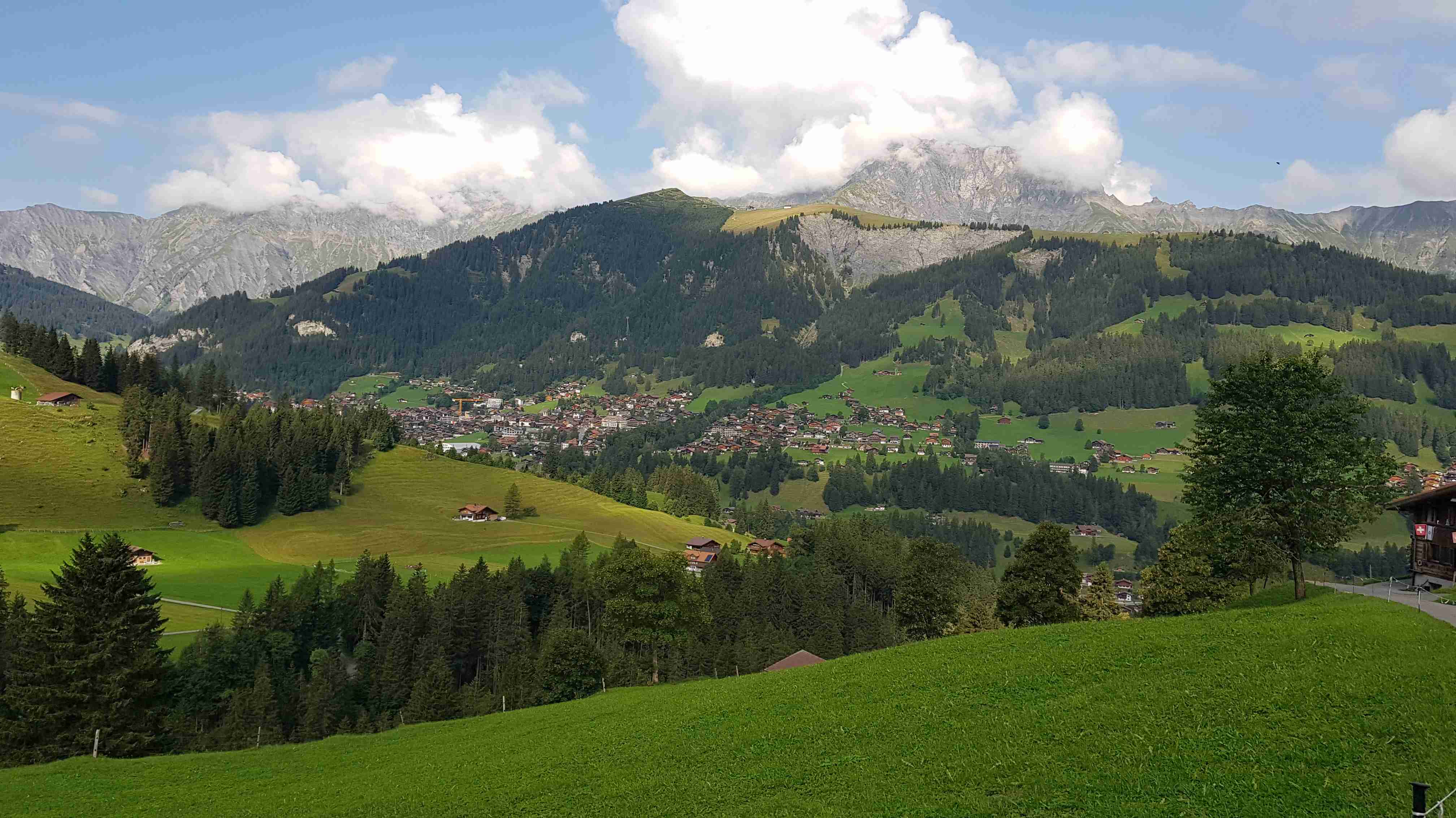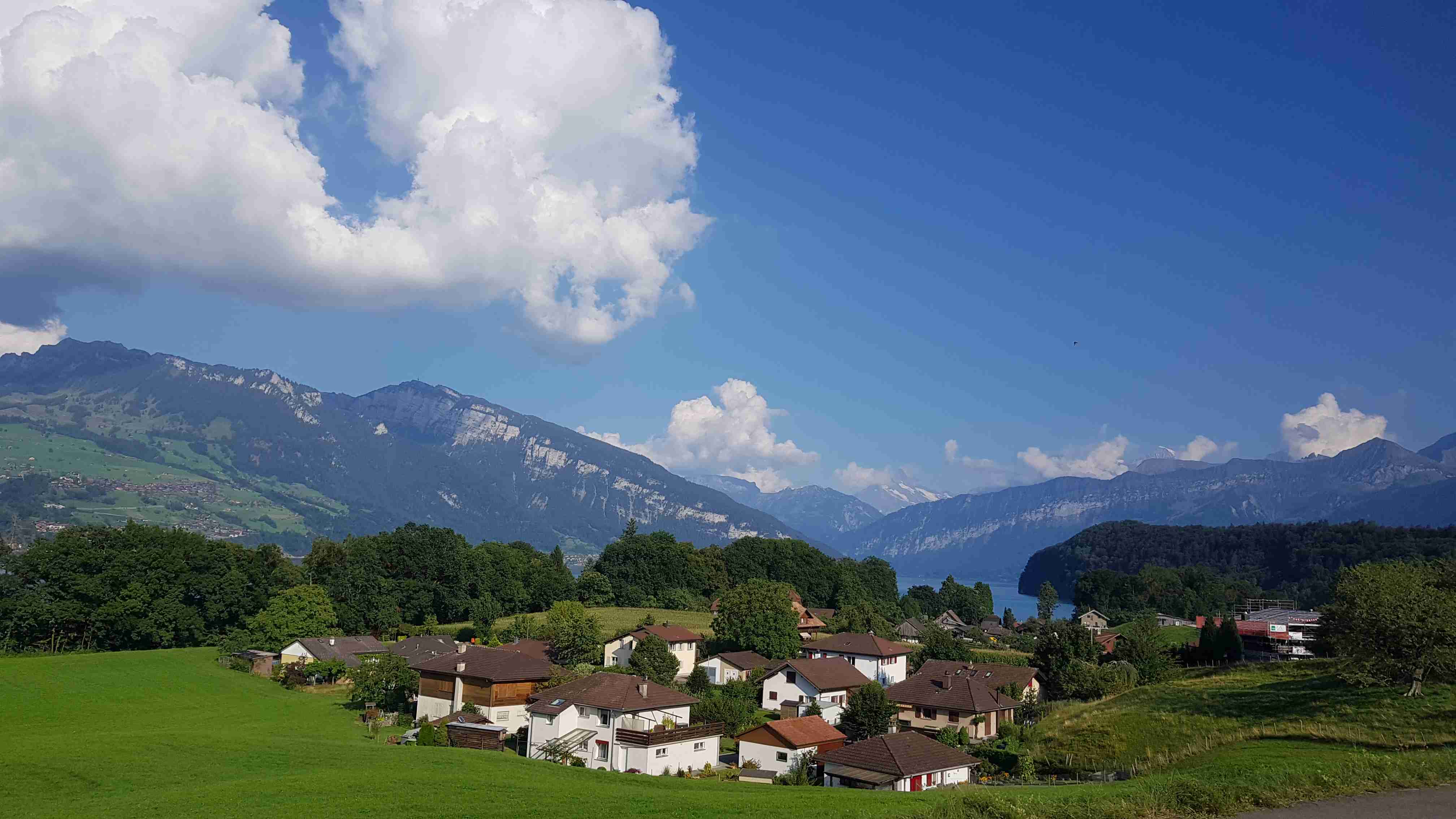 Dnes jsme vyrazili na kolech už od místa ubytování. V Adelbodenu jsme sjeli kousek dolů na kruhovou křižovatku, kde jsme vyjeli doprava, přejeli přes říčku Engstlige a vystoupali nahoru do kopce vysoko nad hlavní silnici. Drželi jsme se pořád cyklostezky č. 1 Alpine Bike, trasa předepsaná Eurocyklem však v jednom úseku vedla jinudy, a to jsme si nevšimli. Právě v tomto úseku jsme vystoupali nejvýše (cca 1500 m n. m.), cyklostezka se změnila v 50 cm širokou štěrkovou cestičku pěkně prudkou. Naštěstí to netrvalo dlouho a opět jsme jeli po horských silničkách a po pár kilometrech byla již cyklostezka od Herdegenu totožná s tou švýcarskou. Před Frutigenem jsme sjeli z kopců dolů k řece a hlavní silnici, kterou jsme posléze podjeli, minuli jsme spodní stanici lanovky Niesenbahn v Mülenenu a zamířili jsme na městečko Wimmis. Před ním jsme to stočili doprava na Spiez, kde čekal autobus. Dali jsme malé pivní občerstvení a vyrazili do Thunu, kam se mezitím přesunul i náš autobus. Ten jsme našli, ale vydali jsme se ještě na kolech do centra, nafotili pár zajímavostí a vrátili se k autobusu, který nás po naložení kol odvezl zpět na ubytovnu. Počasí nám, navzdory předpovědím, docela přálo, najeto cca 57 km.