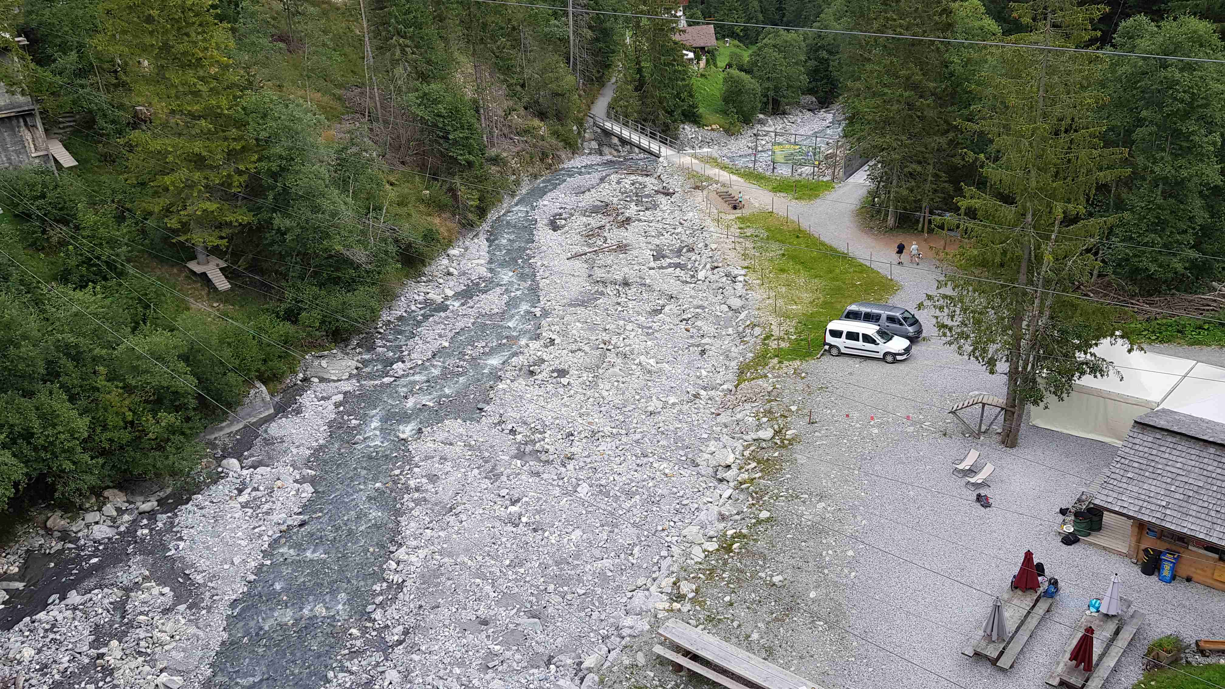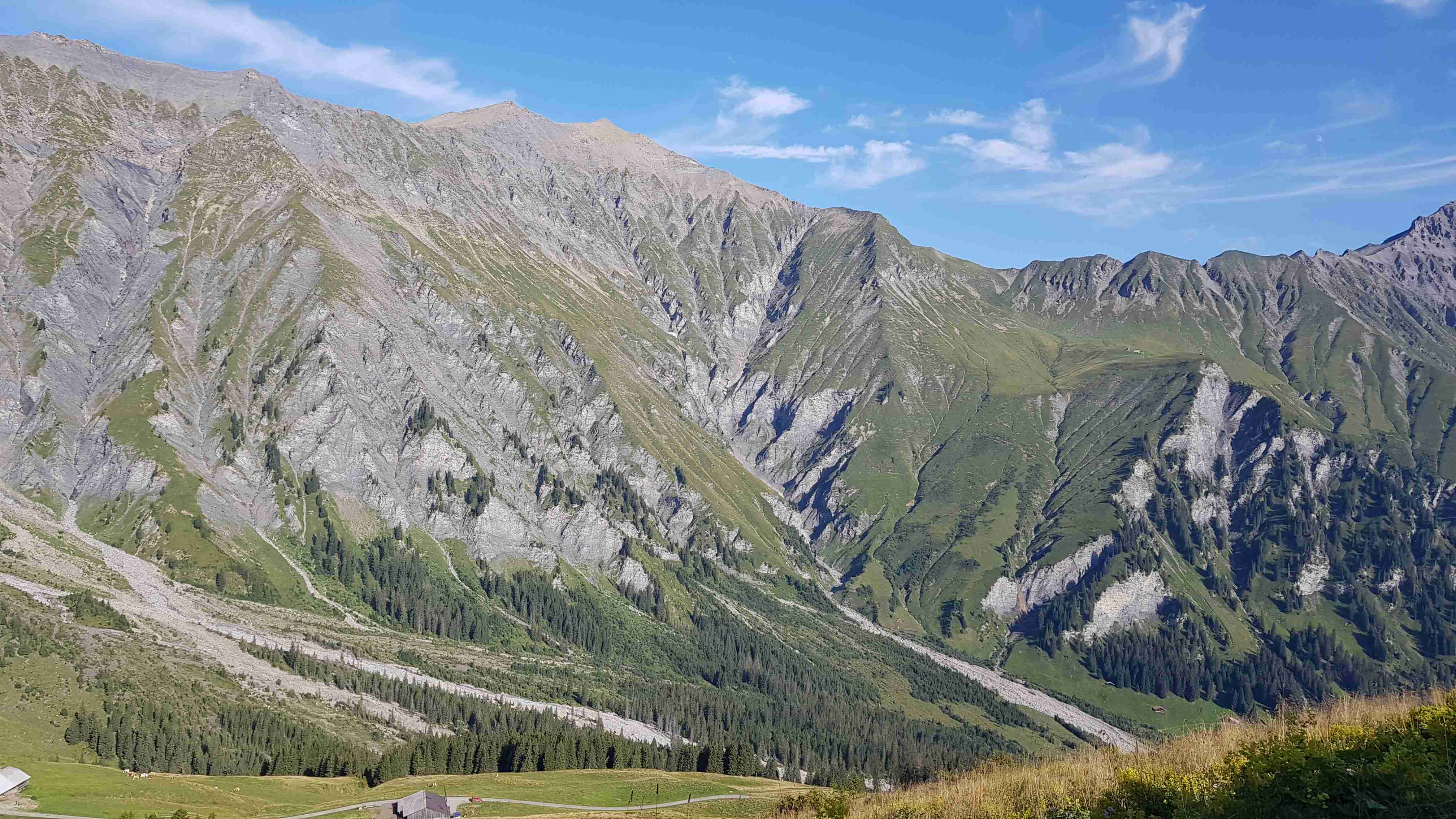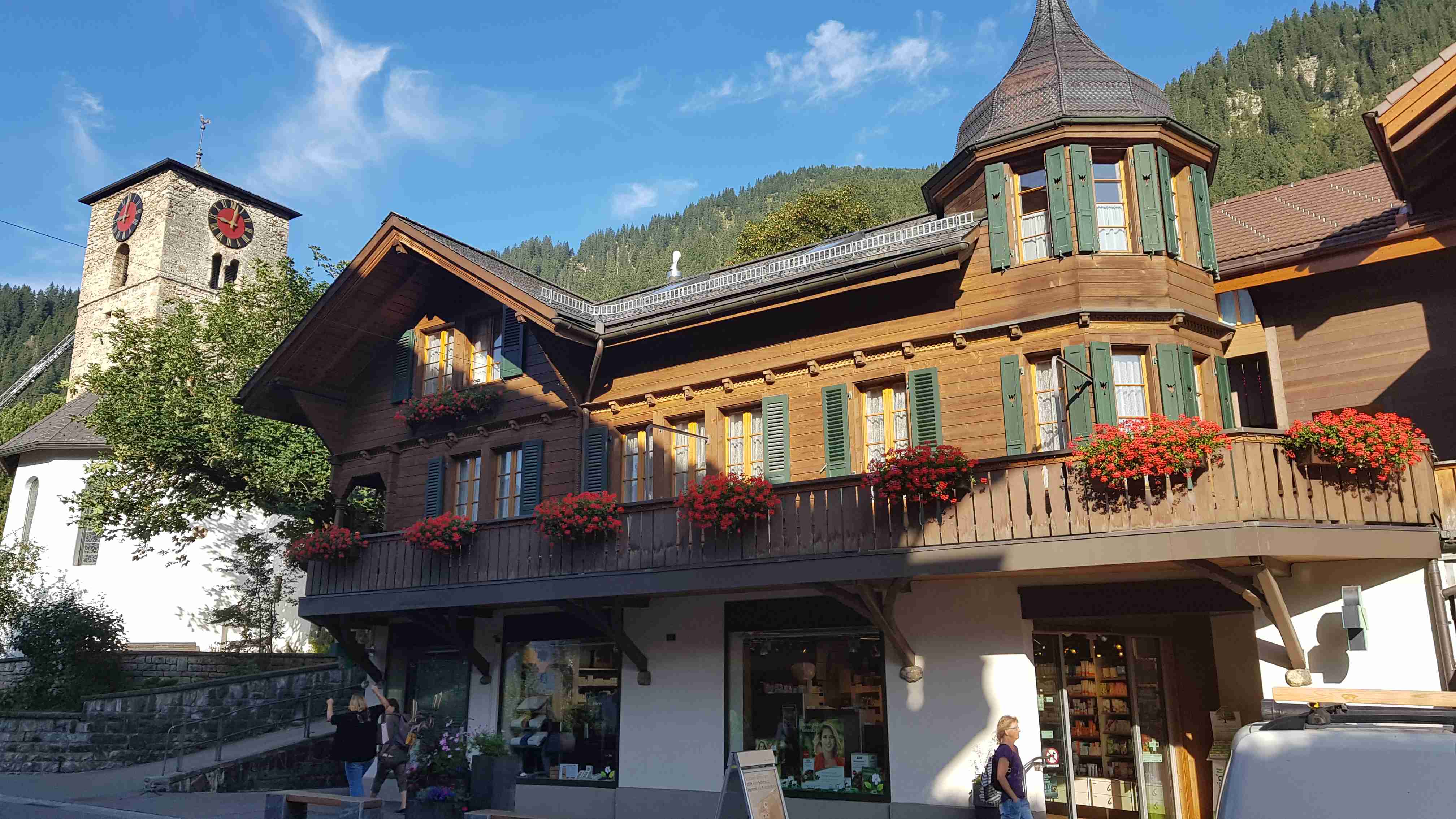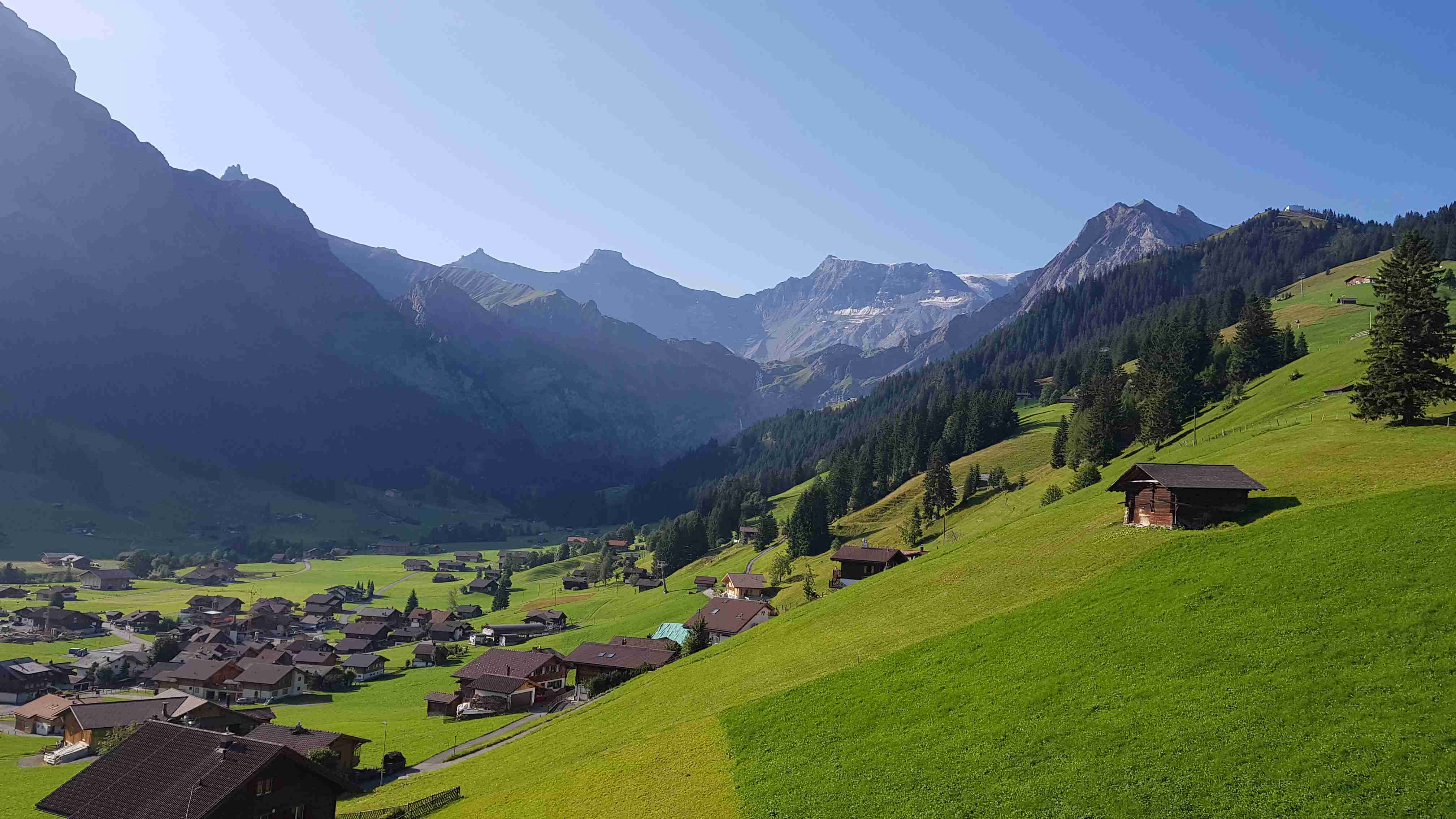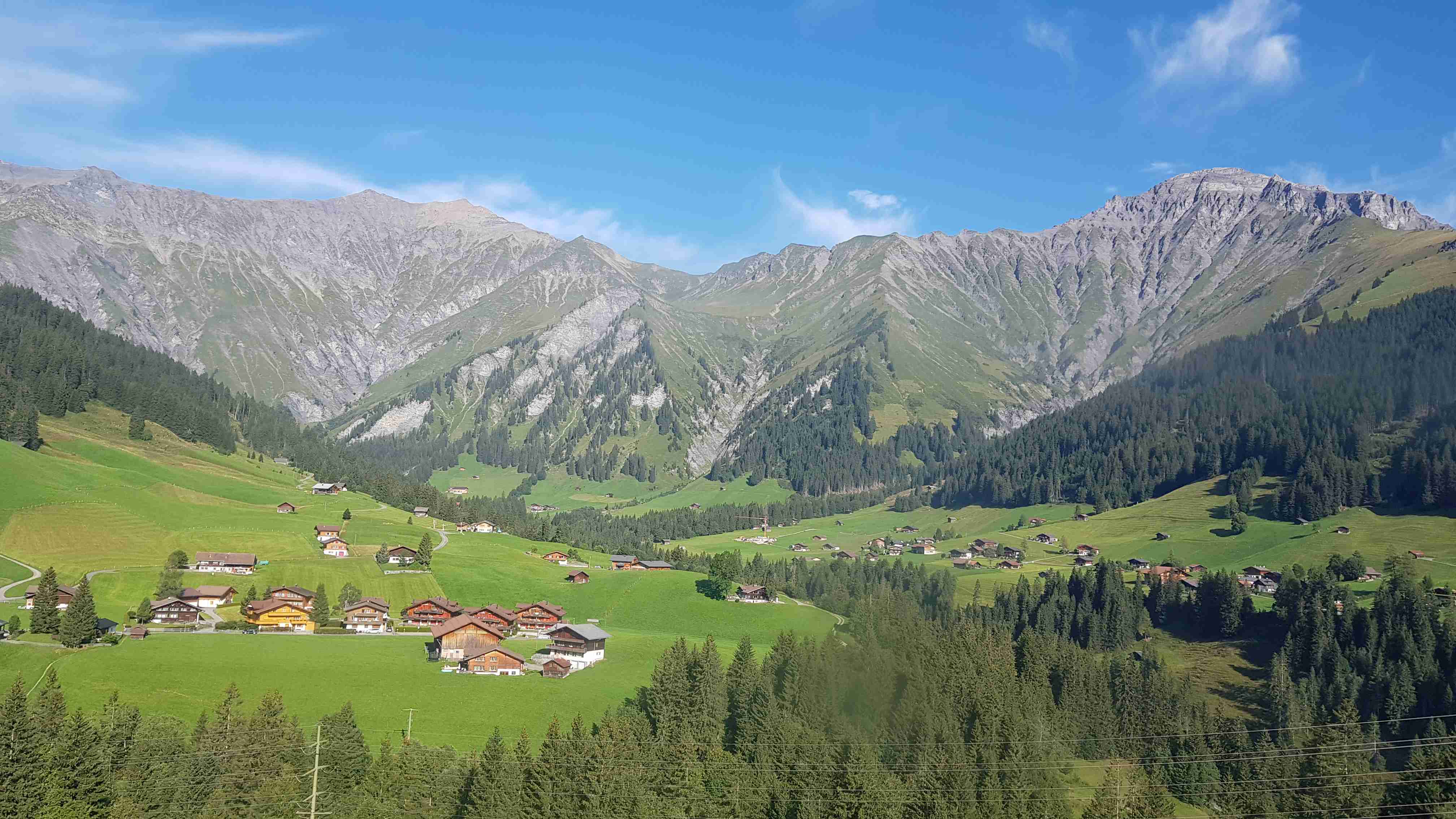 Dnešní den byl plánován bez kol jako turistický. Ráno jsme šli pěšky do města k horní stanici lanovky Dorfbahn a sjeli k dolní stanici lanovky Sillerebahn, kterou jsme vyjeli nahoru do Sillerenbühl do výšky 1974 m n.m. Odtud jsme pěšky vyrazili květinovou stezkou vedoucí po hřebeni a úbočí do cca 6 km vzdáleného sedla Hahnenmoos. Tady jsme po krátkém občerstvení vyfasovali koloběžky a sjížděli zpět dolů do Adelbodenu, kde jsme opětovně u horní stanice Dorfbahn odevzdali koloběžky i helmy a vydali se pěšky na ubytování. Po cestě nás zastihl déšť, ale dorazili jsme do Alpenflory ještě, než začalo bouřit a spustil se opravdový liják. Na mapce je dnešní trasa vyobrazena modrou barvou, bod A je horní stanice Sillerenbühl, tam jsme dojeli lanovkami z Adelbodenu. Do bodu B (Hahnenmoospass) jsme šli pěšky a odtud pak do bodu C na koloběžce zpět do Adelbodenu.