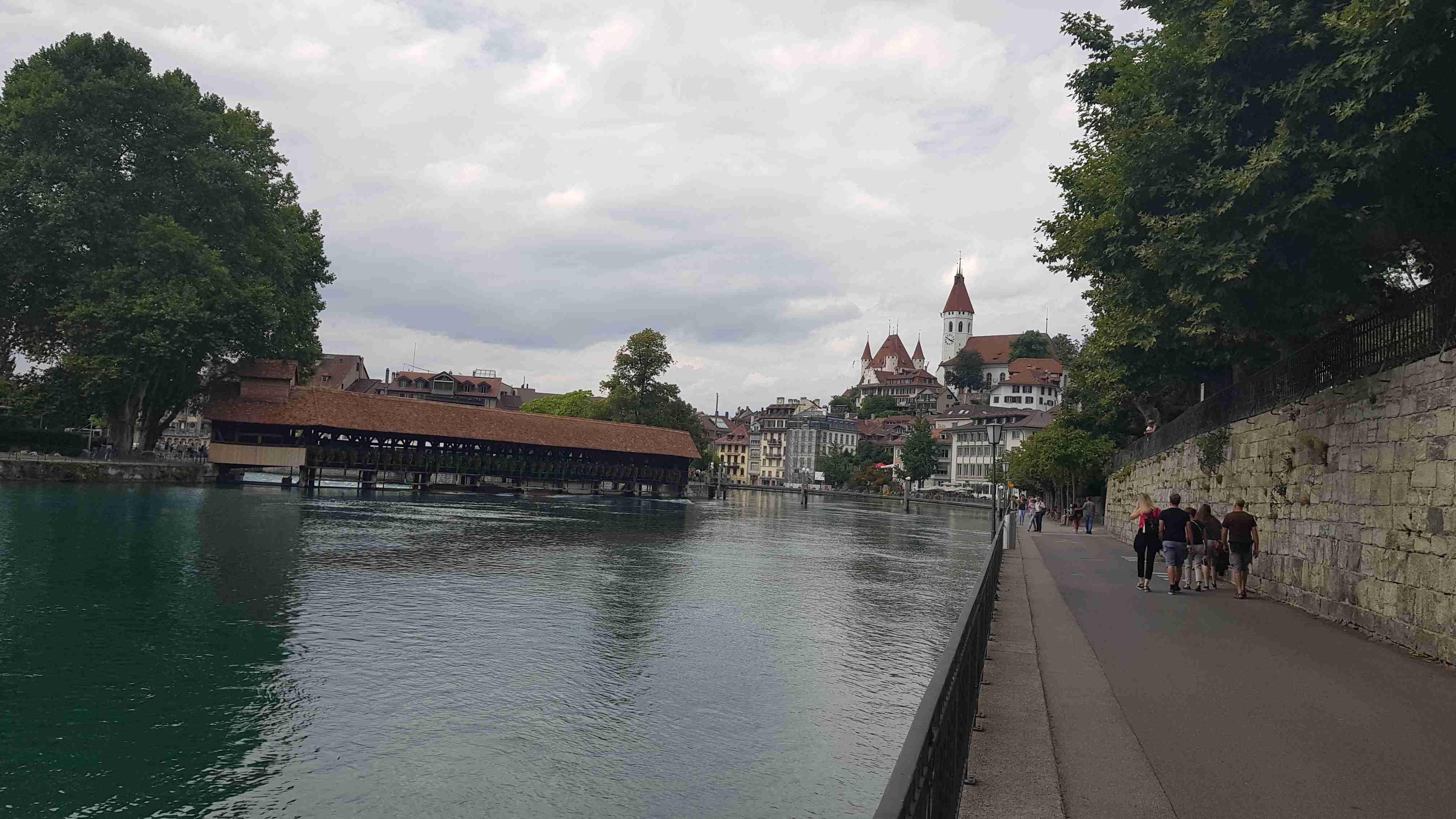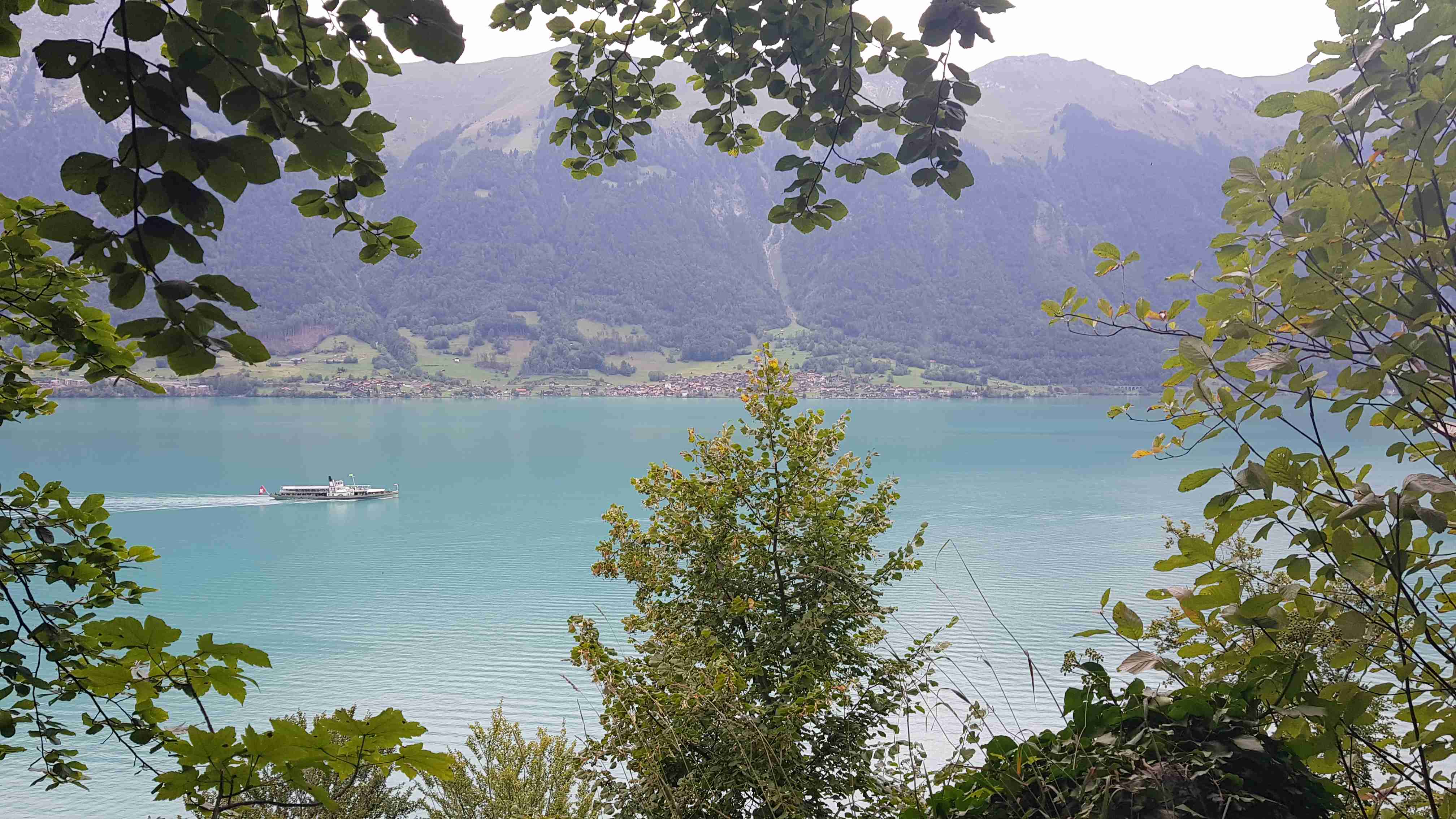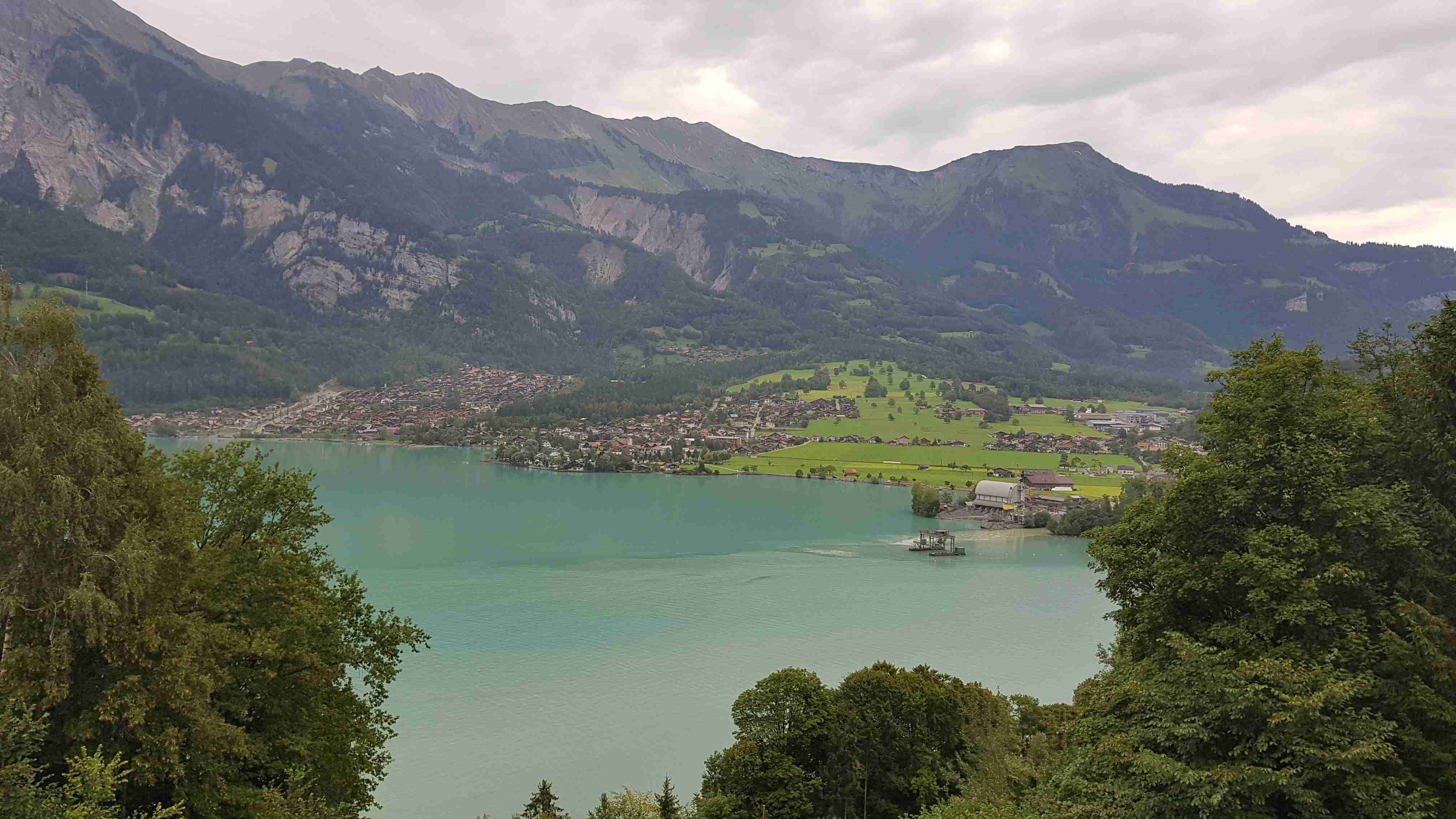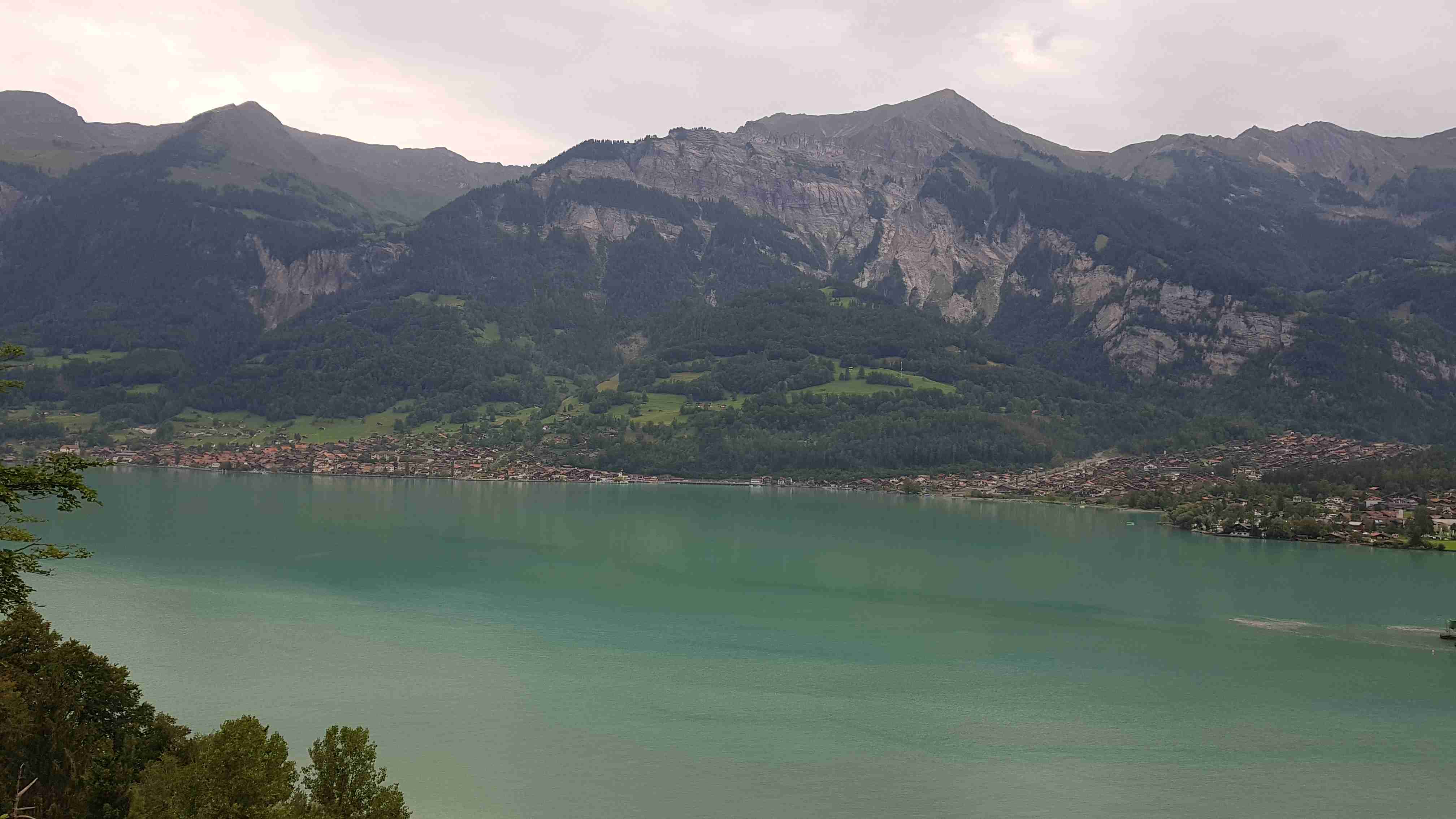 Autobus nás ráno odvezl na východ podél obou jezer do městečka Meiringen na řece Aare, kde jsme se nejprve vyfotili se sochou Sherlocka Holmese, který původně zahynul v nedalekých Reichenbachšských vodopádech. Poté jsme vyrazili směrem k jezeru Brienzersee a do kopců nad jezerem ke Giesbachšským vodopádům. Po nafocení jsme sjeli k jezeru a po jižním břehu jsme dojeli do Interlaken, kde autobus parkoval u horního nádraží. Dali jsme sváču, projeli jsme městem a vydali se silnicí po severním břehu Thunského jezera. Naším cílem byl opět Thun, kde autobus stál na stejném místě, jako minule. Počasí bylo vlídné, zprvu chladnější, pršet začalo až během nakládky kol a lilo celou zpáteční cestu do Adelbodenu. Rozloučili jsme se trasou dlouhou necelých 56 km, letos se nám poprvé vydařilo počasí. Zítra po snídani frčíme domů.