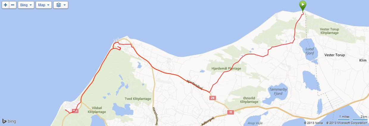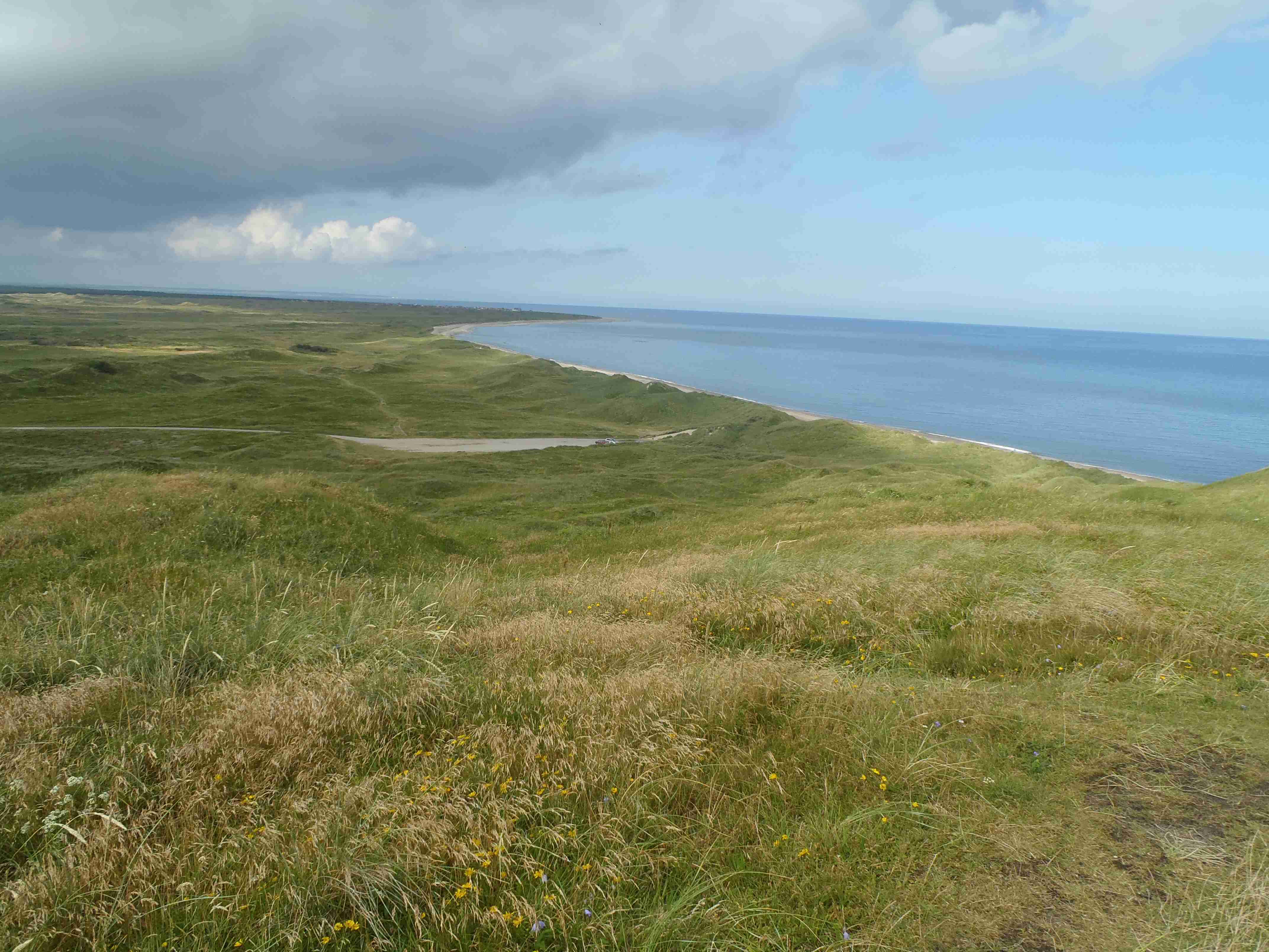 Ráno nás autobus popovezl až na skalisko Bulbjerg, kde se nachází opevnění, které vybudovali Němci během druhé světové války. Podél pobřeží jsou podobné bunkry každou chvilku. Chvíli jsme se na skalisku zdrželi, udělali pár fotek a poté jsme vyrazili na kolo, obligátně po cyklostezce č. 1, tentokrát většinou po místních komunikacích. Dojeli jsme do městečka Hanstholm, kde jsme však žádné městečko nenašli, pouze přístav pod skálou. Tak jsme to celé objeli a vystoupali nahoru k majáku, kde jsme se asi hodinku zdrželi. Nedaleko bylo sice pár baráčků, ale nebyl důvod tam jet. Po odpočinku jsme sjeli opět dolů k moři a po houpavé cyklostezce vedoucí podél silnice, která lemovala pobřeží, jsme dojeli za městečko Klitmoller do Nystrup Camping. Tentokrát jsme najeli cca 53, opět byla v kempu nevelká zoo, kozičky a malá černá prasátka.