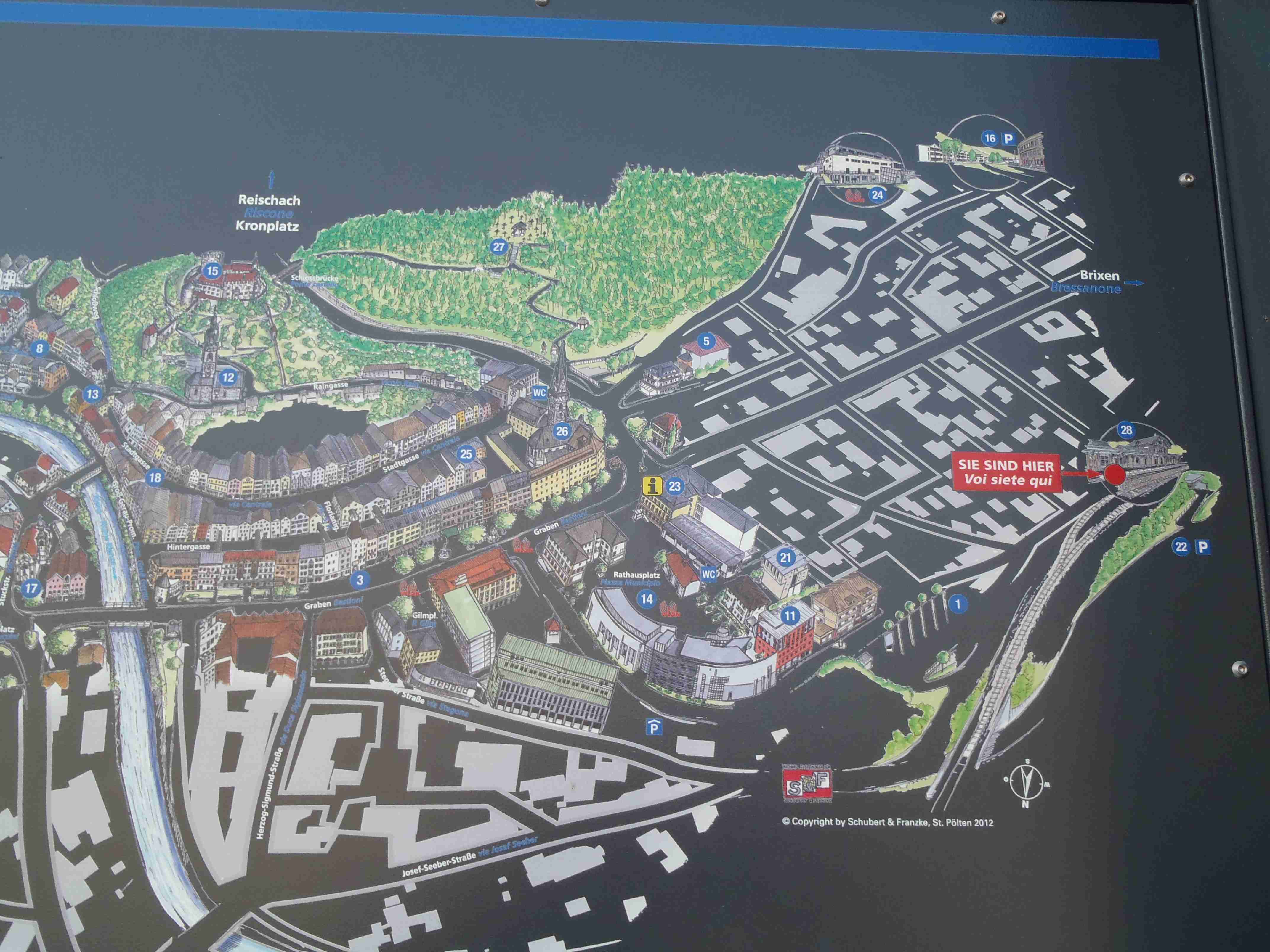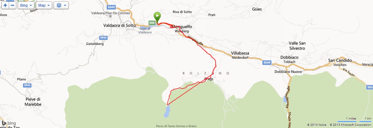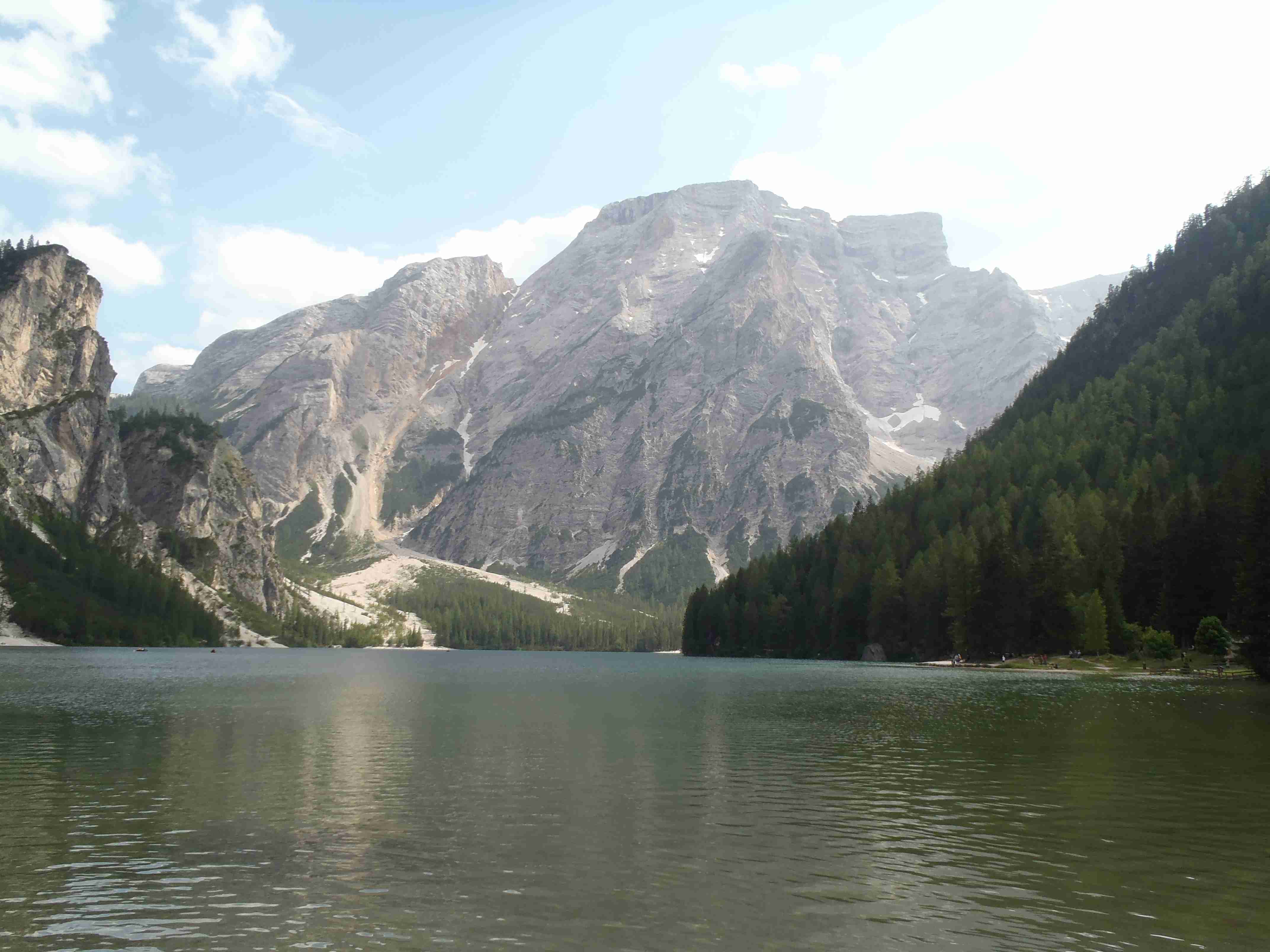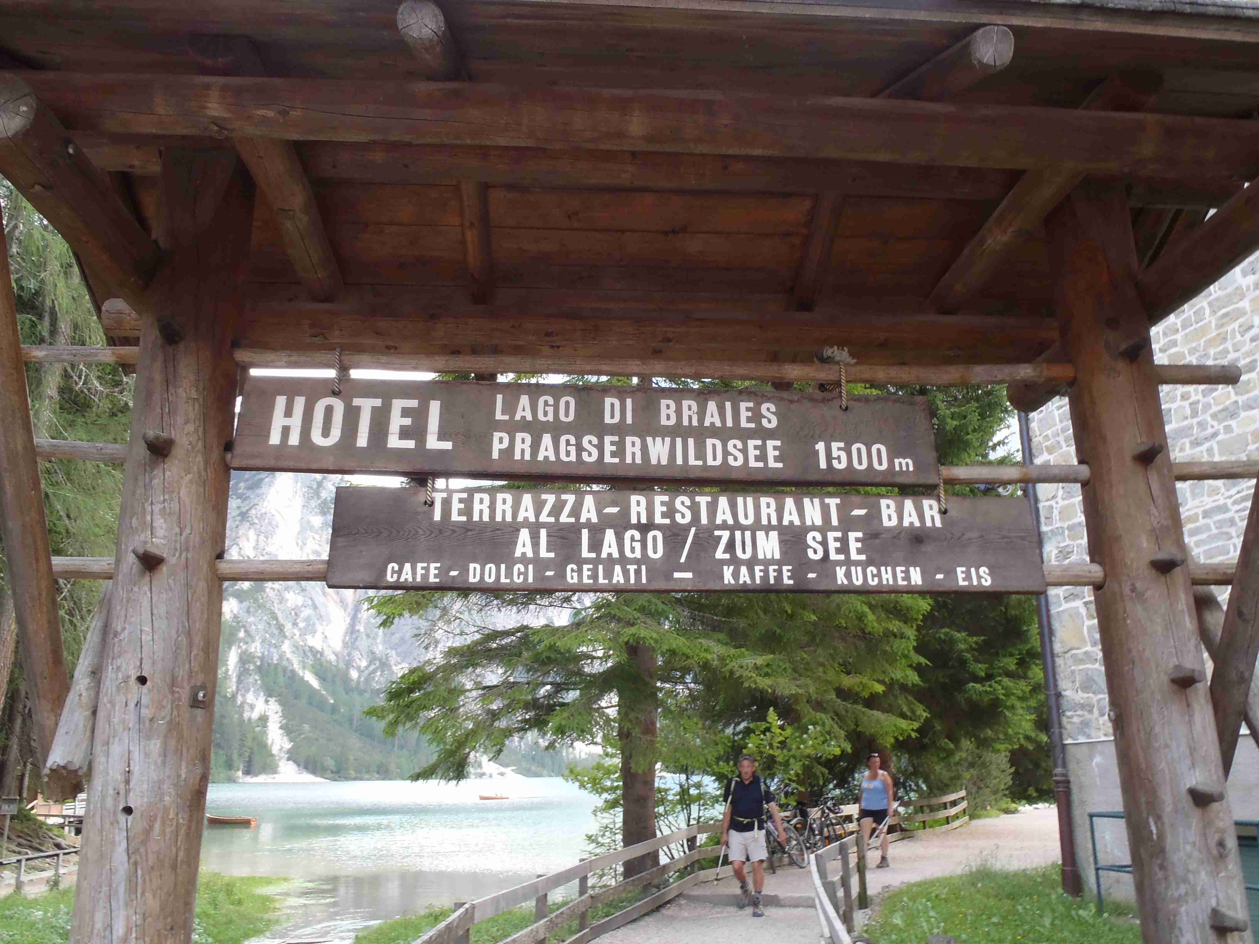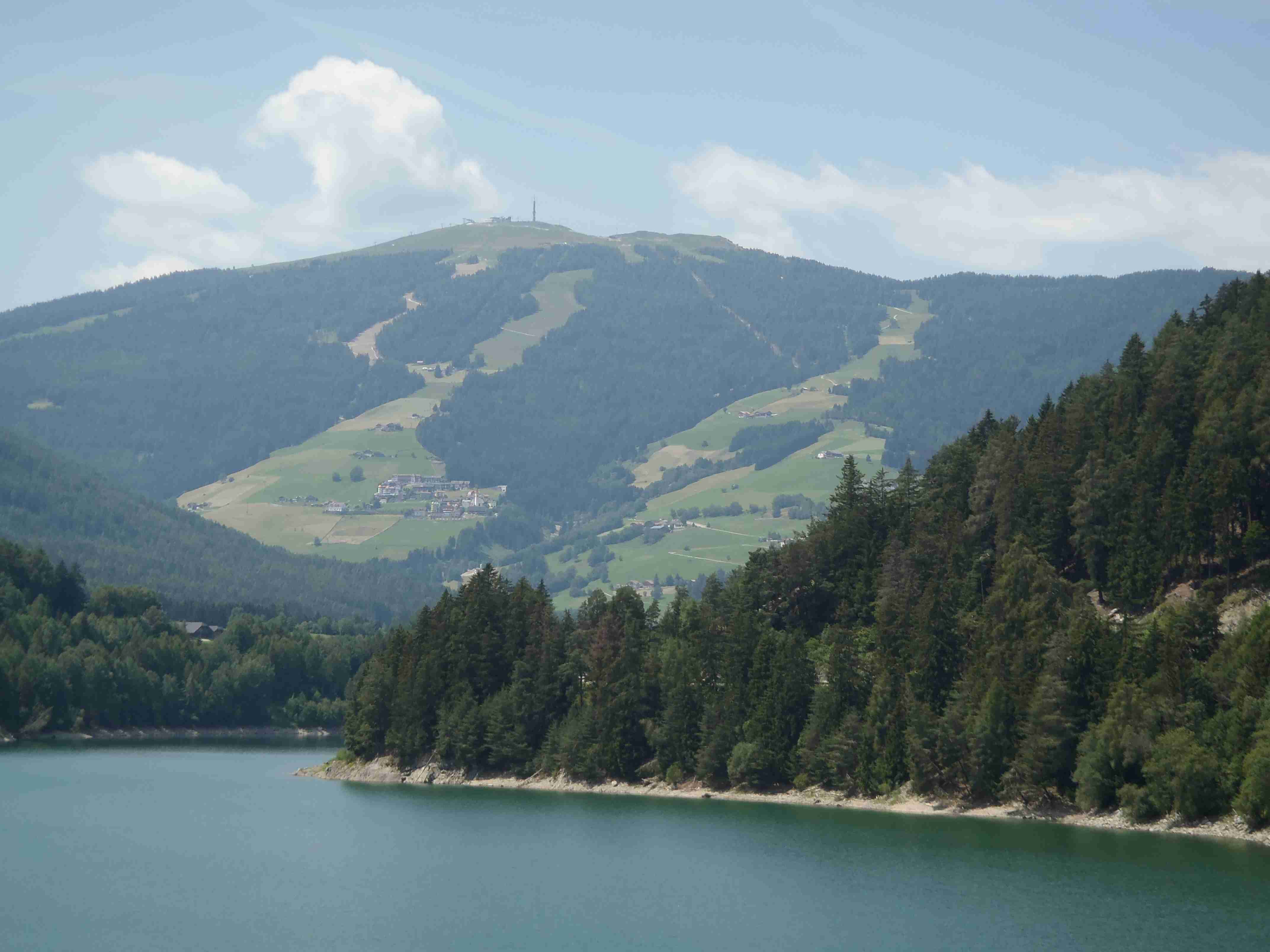 Ráno v 6:00 jsme zastavili na snídaní ve Weeru kousek před Innsbruckem, pak již nahoru přes Brenner a opět dolů do Itálie. Jako když jsme jezdili na hory sjeli jsme v Brixenu z dálnice a do Brunecku to bylo již necelých 40 km. Kolem 8:30 jsme zaparkovali na parkovišti pod vlakovým nádražím, prošli jsme tunelem pod tratí a zamířili do centra, které dobře známe. Měli jsme sraz v 10:00 na hradě, kde se nachází horské muzeum Reinholda Messnera RIPA, a tak jsme jenom prošli centrem a vystoupali nahoru na kopec s hradem. Po prohlídce jsme se vrátili do centra a k autobusu a kolem 12:12 jsme vyrazili k hotelu Seehof, který leží na břehu jezera Olanger Stausee (Lago Valdora) cca 20 km od Brunecku. Kolem jedné jsme dorazili k hotelu, ubytovali jsme se (dostali jsme pokoj s balkonem a výhledem na jezero a Kronplatz v pozadí), v 13:30 jsme měli briefing a v 14:30 jsme vyrazili zdolávat první kilometry. Bohužel hotel stojí u poměrně frekventované silnice a tak jsme pokaždé museli jet po ní cca 2 km k místu, kde jsme mohli najet na cyklostezku Pustertal Radweg. První část lemující hlavní silnici byla víceméně po rovině, ale jakmile jsme odbočili doprava k jezeru Prager Wildsee, tak jsme již celou cestu stoupali. Jezero Pragser Wildsee/Lago di Braies je jedním z nejhezčích a zároveň i nejhlubších jezer v Jižním Tyrolsku. Průměrná hloubka jezera je 17 m, v místě s největší hloubkou bylo naměřeno 36 m. Poloha jezera je opravdu jedinečná - rozprostírá se v severní části přírodního parku Fanes-Sennes-Prags a je obklopeno nádhernou kulisou majestátních hor.Cesta k němu byla zpočátku docela dobrá, ale závěr byl nechutný a posledních cca 500 m jsme již oba tlačili. K jezeru jsme dorazili v 16:30, dali jsme si kafe a pivo, udělali pár fotek a kole 17. hodiny jsme vyrazili zpět. Cesta byla teď naopak hezky z kopečka, tak nám to ubíhalo a kolem 18:00 jsme dorazili po 30 km do hotelu. Kola jsme uložili dole v garážích, provedli jsme očistu a na 19:00 jsme vyrazili na večeři (zájezd byl s polopenzí). Stůl jsme sdíleli s průvodkyní Zuzanou a jejím pomocníkem „Melounem“ a s oběma řidiči a tak jsme měli všechny informace hned z první ruky. Večeře fungovaly tak, že volně k dispozici byla spousta zeleniny na salát – ledový salát, strouhaná mrkev a celer, fazole, okurky, kukuřice, atd. K tomu různé oleje, octy a dresinky. Jídlo se pak skládalo z předkrmu (těstoviny nebo polévka), hlavního jídla (výběr ze 3 druhů) a zákusku (opět výběr ze 2 druhů). K večeři jsme pili víno (to už si každý platil) a my jsme si většinou objednávali každý něco jiného a po polovině jsme si vyměnili talíře, abychom ochutnali co nejvíce – a stálo to za to, jídlo bylo moc dobré.