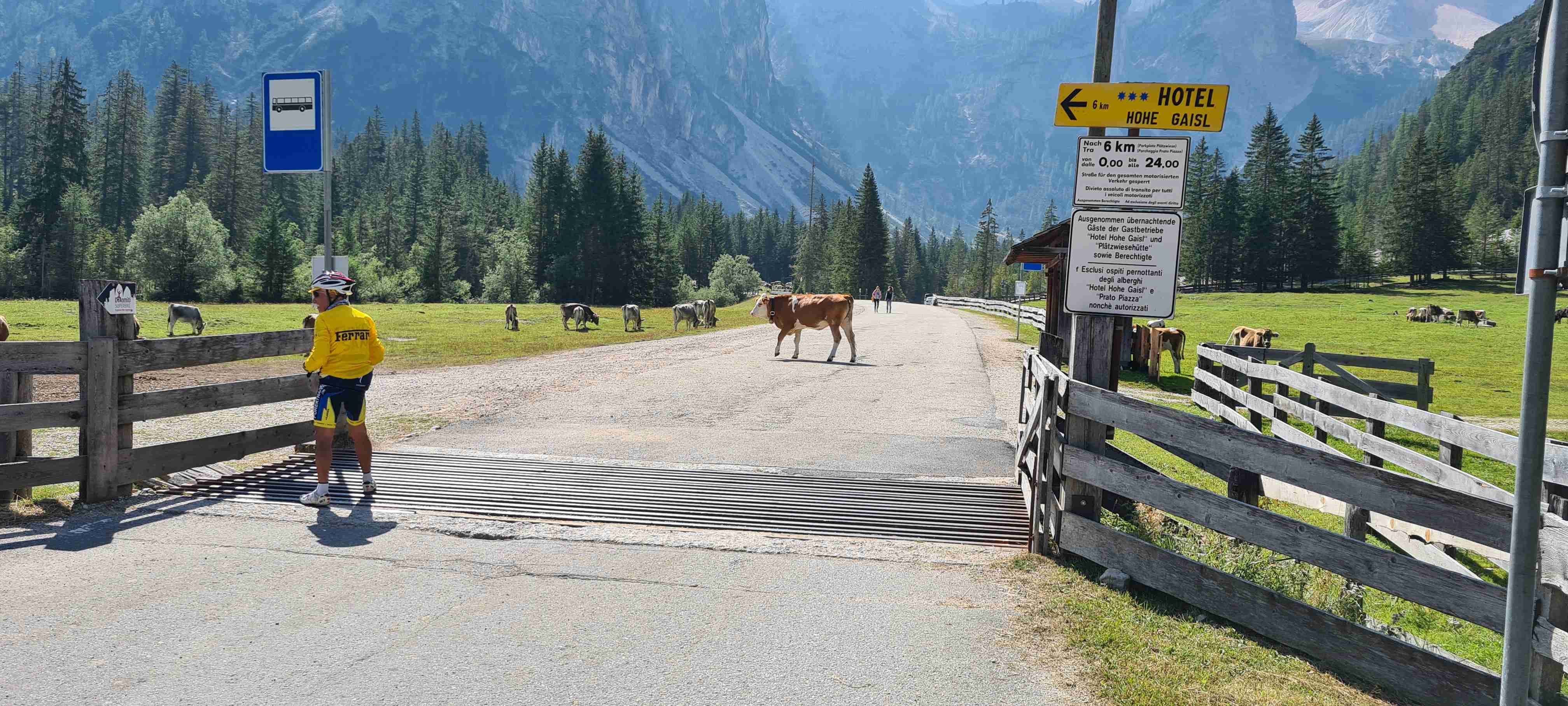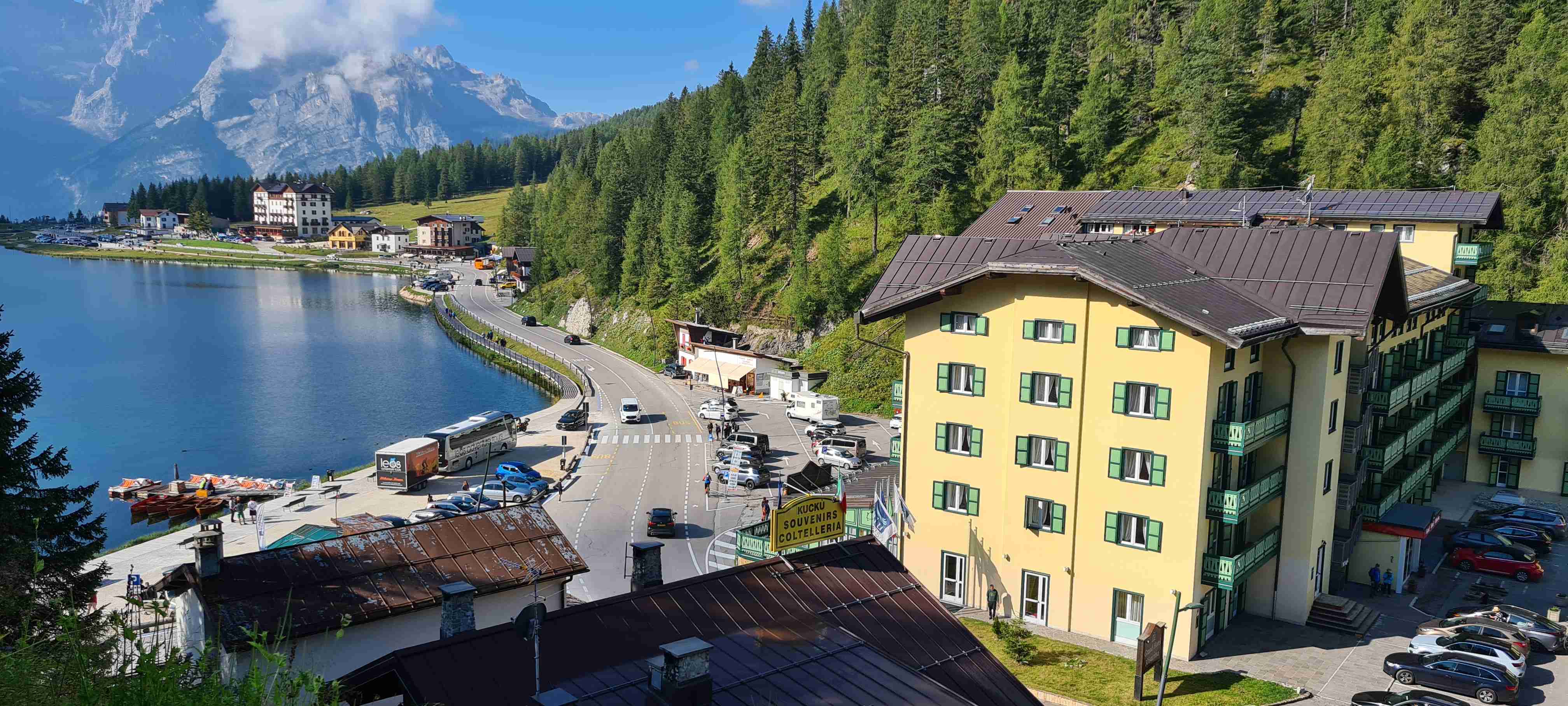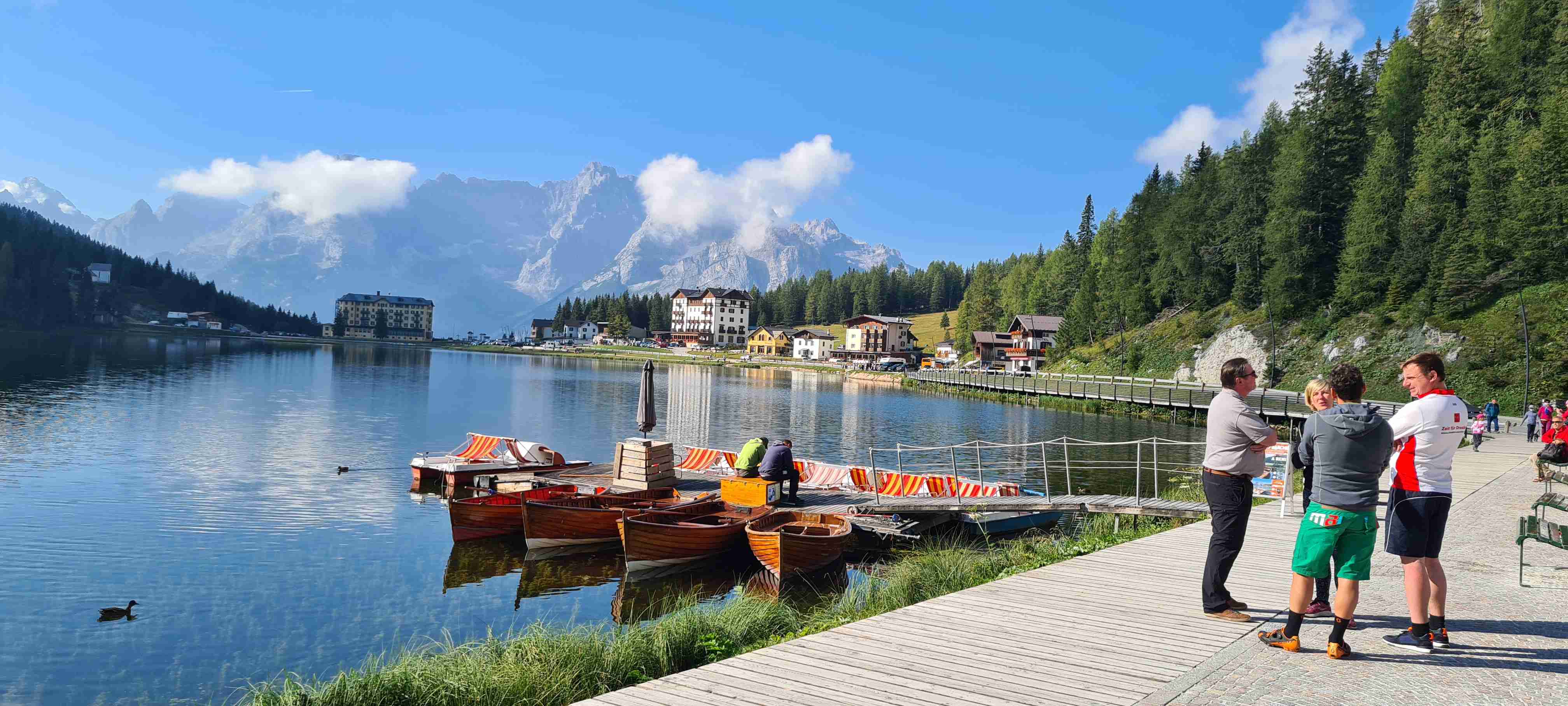 Dnešní etapa začínala u jezera Misurina, kam nás odvezl autobus. Jel jsme sám, Iva jela autobusem tam i zpět. U jezera bylo neskutečně mnoho aut i lidí, nejprve jsme si jezero objel a nadělal několik fotek. Poté jsem po silnici sjel k páteřní komunikaci Toblach - Cortina d’Ampezzo, kde jsem zatočil doleva na Cortinu a po pár stech metrech jsem sjel vpravo na kamenitou cestu vedoucí do prudkého kopce. Celkem asi 7 km stoupání (více jak 600 výškových metrů) místy hodně nepříjemné cesty – kameny, výmoly, … Na konci jsem vyjel na náhorní plošinu Prato Piaza do výšky přes 2 000 m n. m. k chatě Dürrensteinhütte, kde jsem si chvíli odpočinul, pokochal se výhledy a udělal pár fotek. Poté jsem začal druhou stranou sjíždět dolů, opatrně, protože i když tady byla asfaltka a jezdil tu i autobus, bylo to hodně prudké a brzdy vydávaly různé pazvuky. V obci Ferrara jsem vjel na chvíli na silnici od jezera Braies, po které jsme měli jet ve středu, ale kvůli nehodě jsme nejeli. Dlouho jsem po ní nejel, po cca 500 m jsem odbočil doprava na cyklostezku vedoucí po silničkách a dojel jsem do městečka Niederdorf, které leží na trase páteřní Pustertal Radweg. Projel jsem městečkem a na konci zatočil doleva do kopečků a směřoval na Toblach. Čekalo mne ještě jedno sakra prudké stoupání, naštěstí krátké, ale to jsem již vystoupal na úroveň našeho hotelu a dál to bylo víceméně po rovince. Na hotel jsem dorazil kolem 13.30 a tak jsme si dali poprvé oběd – řízek s bramborovým salátem. Najeto cca 41 km, počasí ideál.