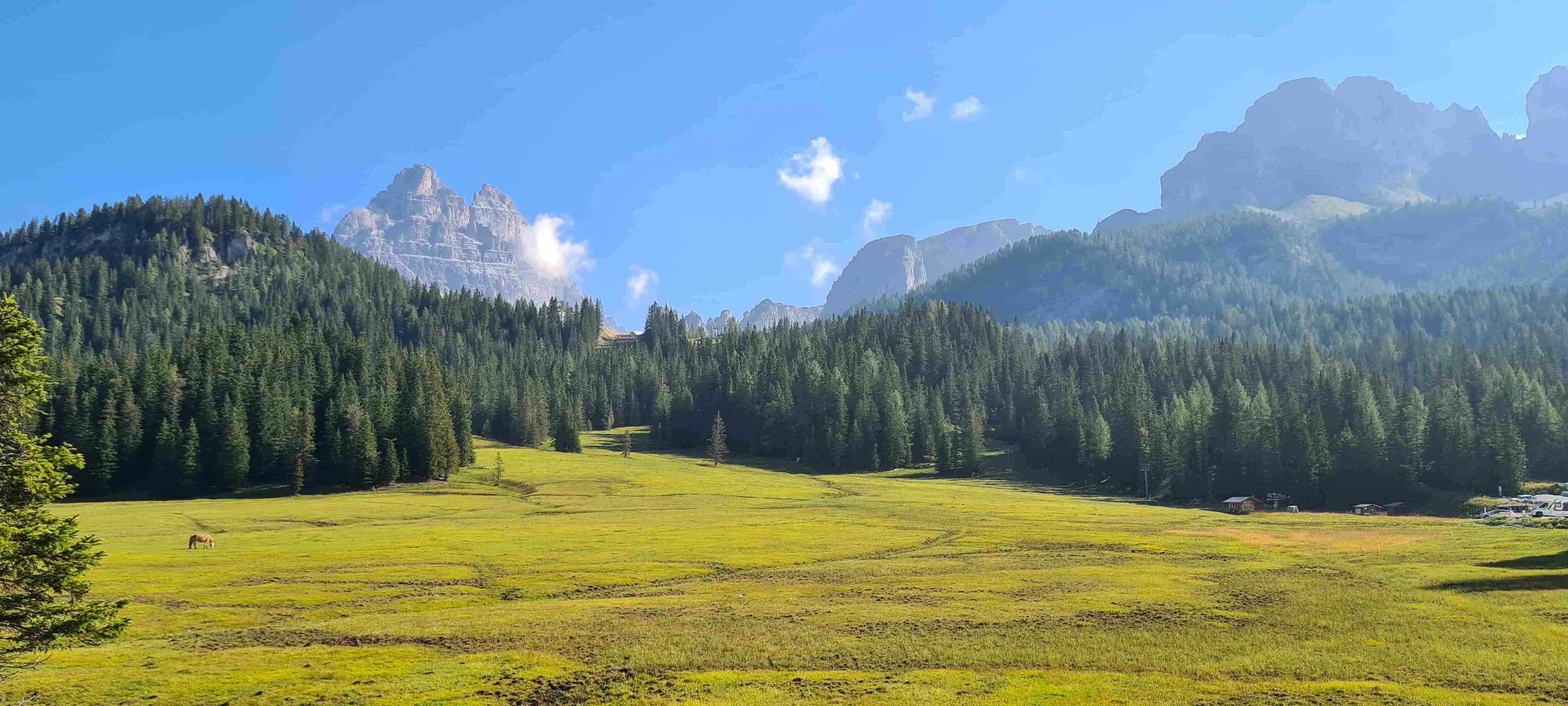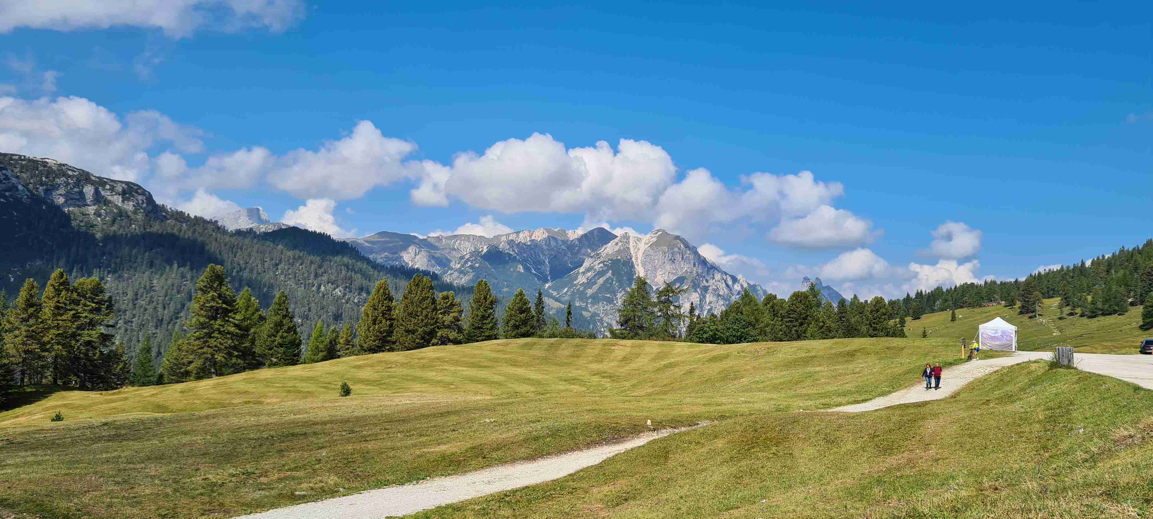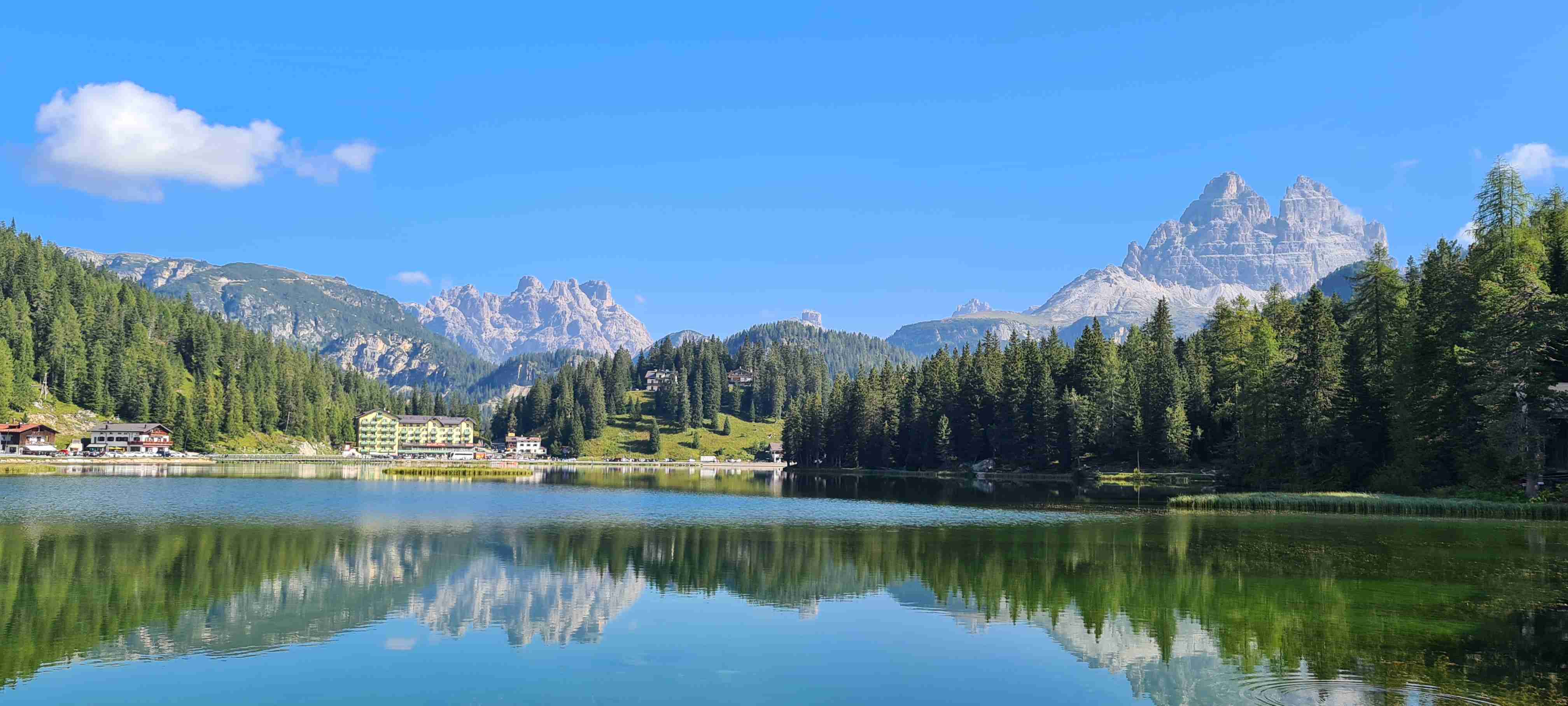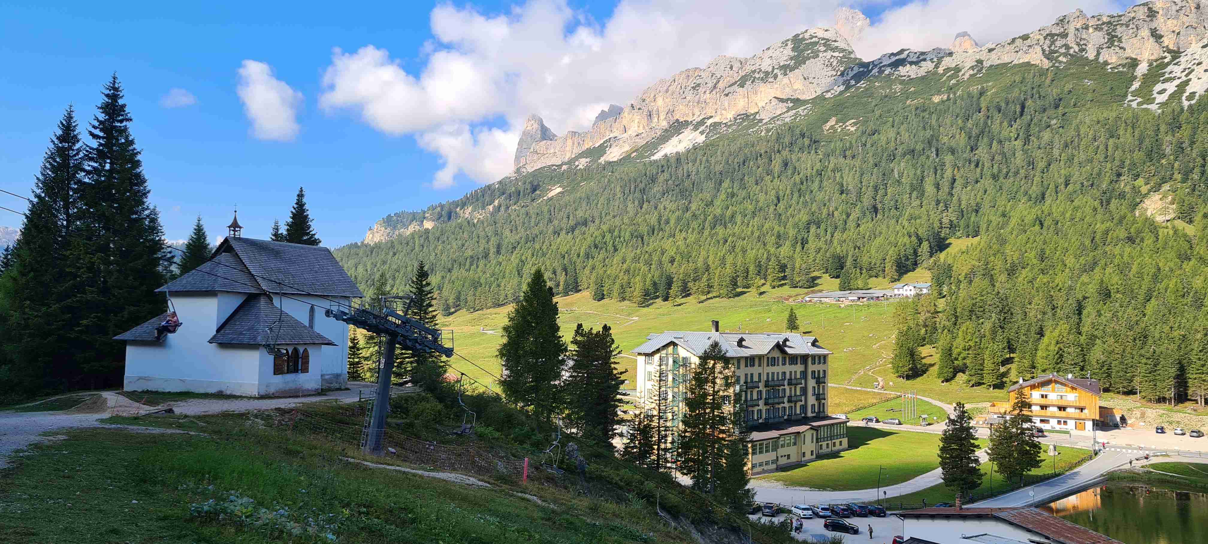 Dnešní etapa začínala u jezera Misurina, kam nás odvezl autobus. Jel jsme sám, Iva jela autobusem tam i zpět. U jezera bylo neskutečně mnoho aut i lidí, nejprve jsme si jezero objel a nadělal několik fotek. Poté jsem po silnici sjel k páteřní komunikaci Toblach - Cortina d’Ampezzo, kde jsem zatočil doleva na Cortinu a po pár stech metrech jsem sjel vpravo na kamenitou cestu vedoucí do prudkého kopce. Celkem asi 7 km stoupání (více jak 600 výškových metrů) místy hodně nepříjemné cesty – kameny, výmoly, … Na konci jsem vyjel na náhorní plošinu Prato Piaza do výšky přes 2 000 m n. m. k chatě Dürrensteinhütte, kde jsem si chvíli odpočinul, pokochal se výhledy a udělal pár fotek. Poté jsem začal druhou stranou sjíždět dolů, opatrně, protože i když tady byla asfaltka a jezdil tu i autobus, bylo to hodně prudké a brzdy vydávaly různé pazvuky. V obci Ferrara jsem vjel na chvíli na silnici od jezera Braies, po které jsme měli jet ve středu, ale kvůli nehodě jsme nejeli. Dlouho jsem po ní nejel, po cca 500 m jsem odbočil doprava na cyklostezku vedoucí po silničkách a dojel jsem do městečka Niederdorf, které leží na trase páteřní Pustertal Radweg. Projel jsem městečkem a na konci zatočil doleva do kopečků a směřoval na Toblach. Čekalo mne ještě jedno sakra prudké stoupání, naštěstí krátké, ale to jsem již vystoupal na úroveň našeho hotelu a dál to bylo víceméně po rovince. Na hotel jsem dorazil kolem 13.30 a tak jsme si dali poprvé oběd – řízek s bramborovým salátem. Najeto cca 41 km, počasí ideál.