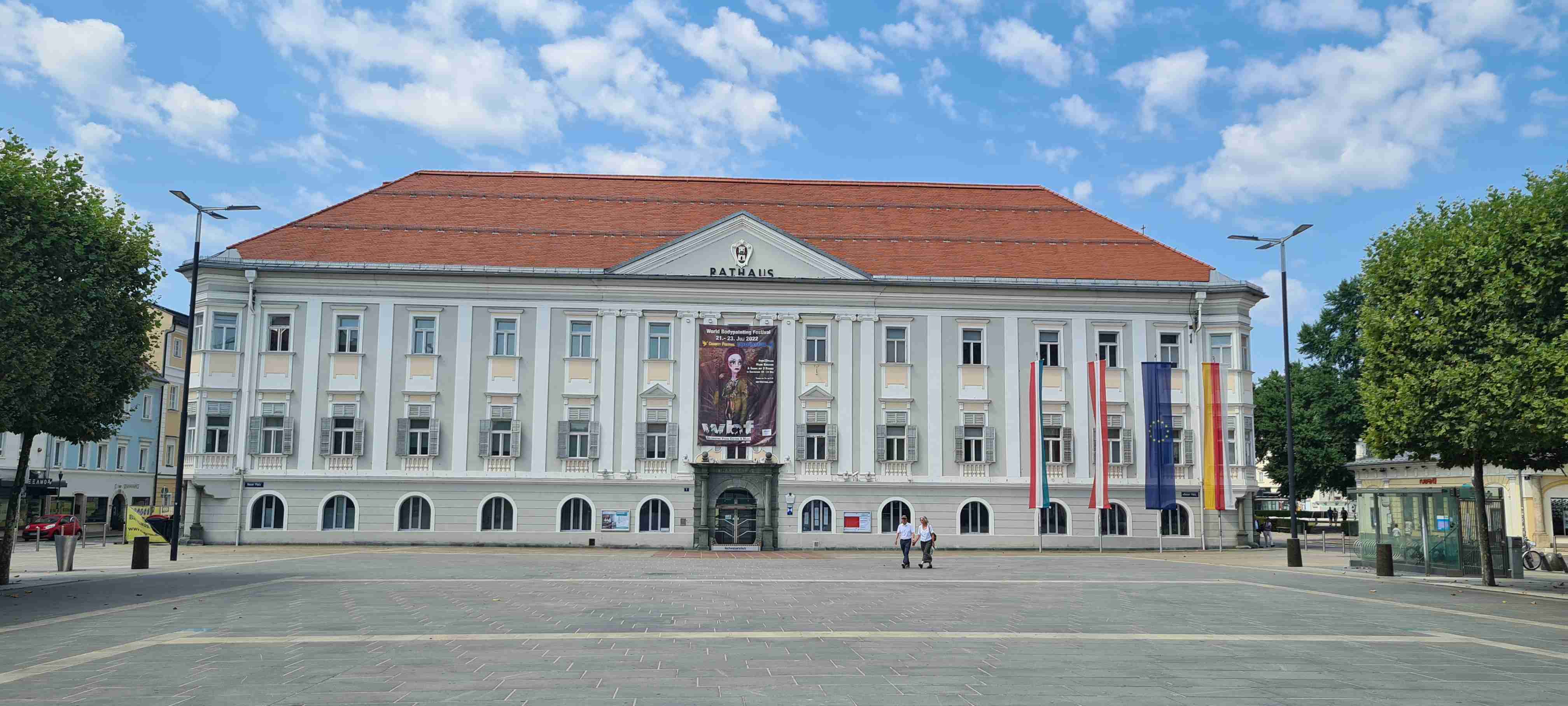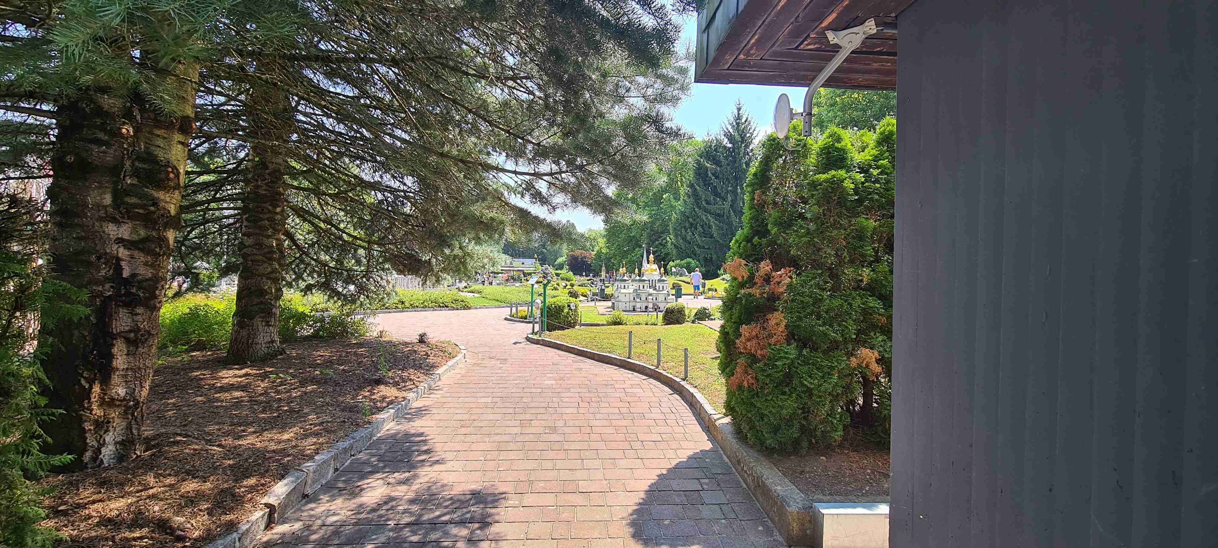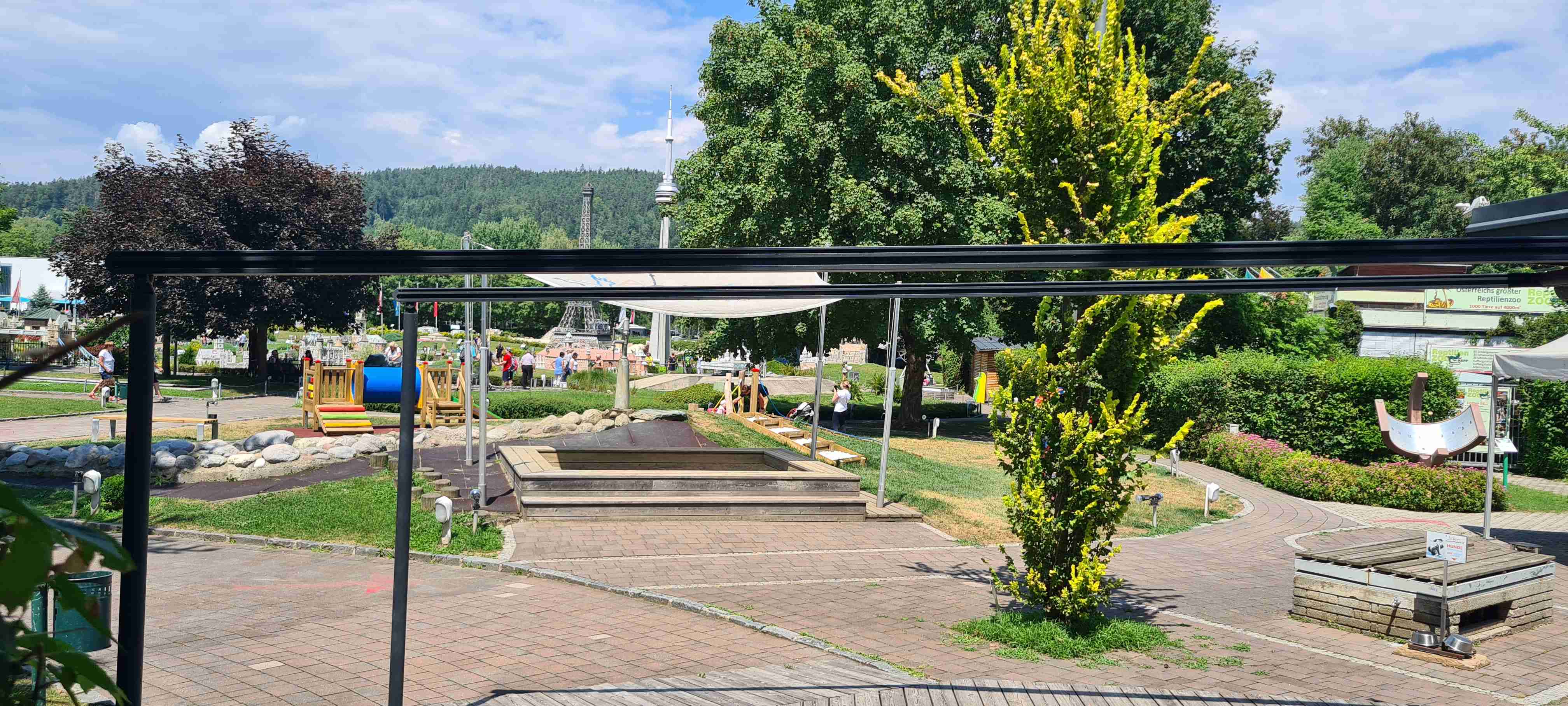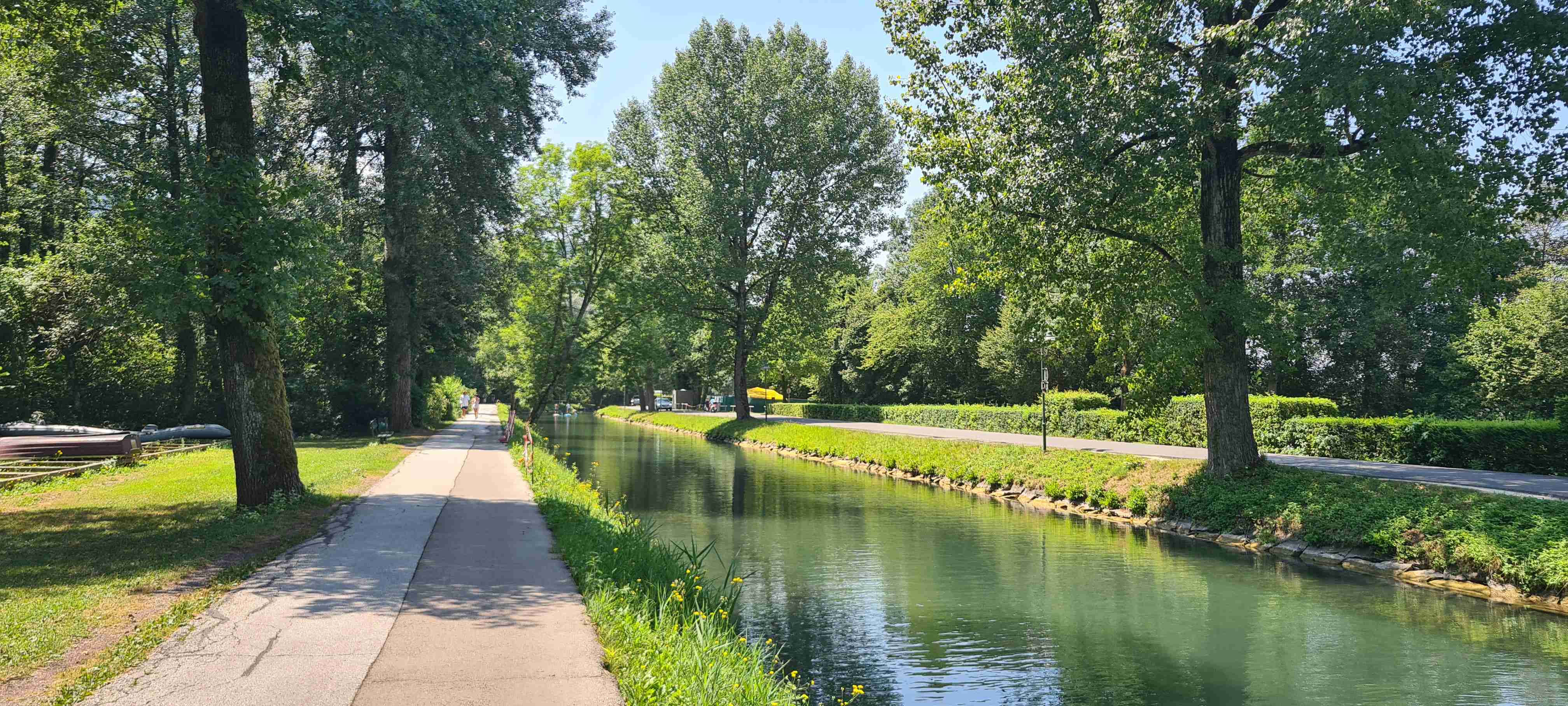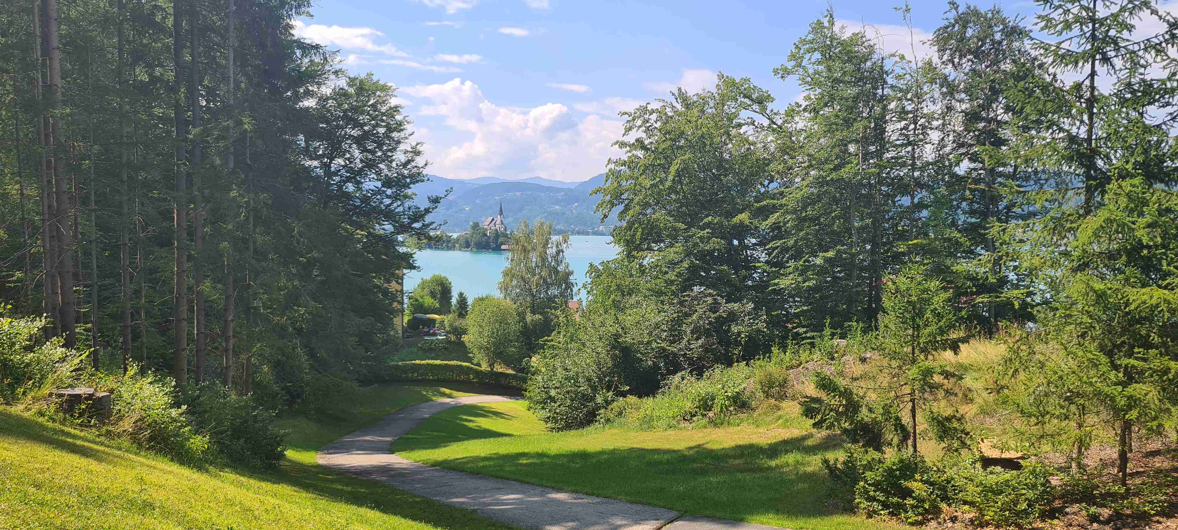 Ráno jsme od hotelu zamířili opět k Wörthersee, tentokrát na druhou stranu, jako včera – abychom se vyhnuli tunelu Karavanka vzali jsme to přes italské Tarvisio, je to jen o pár km delší, ale jistota je jistota. A tak jsme po necelé hodině jízdy dorazili do městečka Velden am Wörthersee na západním okraji jezera, kde nás autobus vyložil u haly a krytého kluziště. Nasedli jsme na kola a jali se jezero objíždět po severním břehu. Koupači měli tentokrát problém, břehy jezera byly buď zastavěny domy, hotely anebo tam byly placené plovárny, a tak najít volný přístup k vodě byl problém. Nás to ale netrápilo, a tak jsme v poklidu dojeli na druhý konec jezera do Klagenfurtu. Tady, po focení v přístavišti výletních lodí, začala Ivě blbnout na kole elektrika tak jsme se trochu zdrželi. Když se to uklidnilo, vyrazili jsme parkem do centra, minuli jsme areál Minimundus, kde je cca 150 zmenšenin významných světových staveb v měřítku 1:25 a alejí podél kanálu jsme dojeli až téměř do samotného centra. Na Novém náměstí jsme zase řešili problémy s elektrikou a po vyřešení jsme si dali zasloužené pivečko v jedné z přilehlých kaváren. Po odpočinku jsme se podél kanálu vrátili zpět k jezeru, kterého jsme se pouze dotkli a hned jsme zamířili do kopečků nad jižním břehem jezera. Nachází se tam několik meších jezer, která jsme minuli a až u toho posledního a největšího, Keutschacher See, jsme opět na lavičce v klidném stinném háji poobědvali stále stejnou českou sekanou, kousek chleba a teplou vodu. Tady odbočím, většinou nic moc v poledne nejíme, protože jak snídaně, tak i večeře jsou natolik výživné, že ještě obědvat v restauraci, tak se vrátíme o 10 kg těžší. Navíc v tom horku není ani chuť k jídlu, tak to řešíme tou sekanou, ta hodně vydrží.