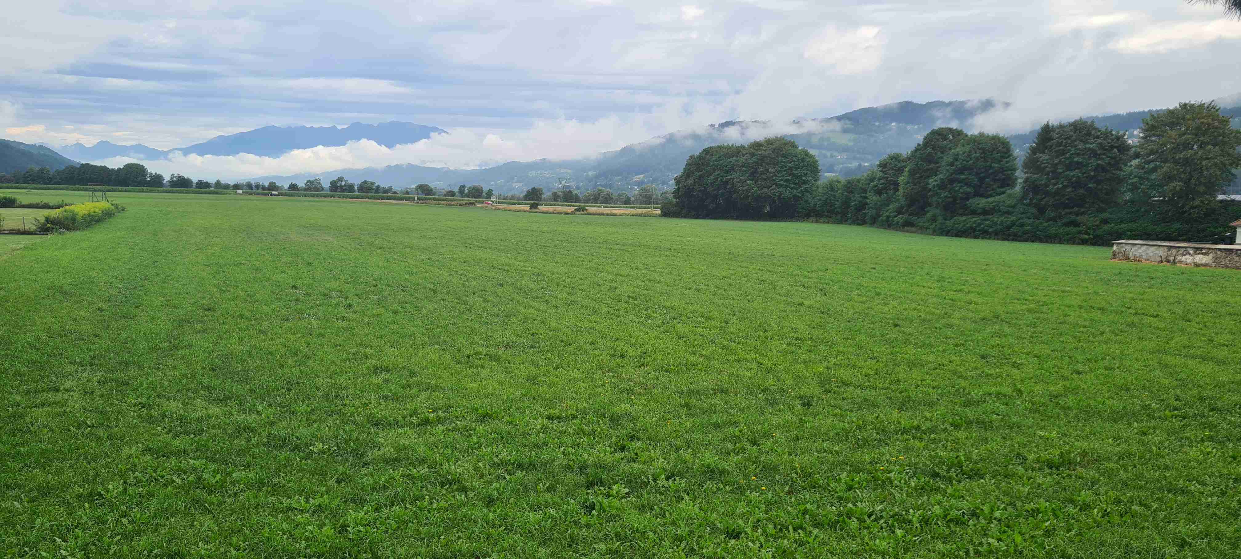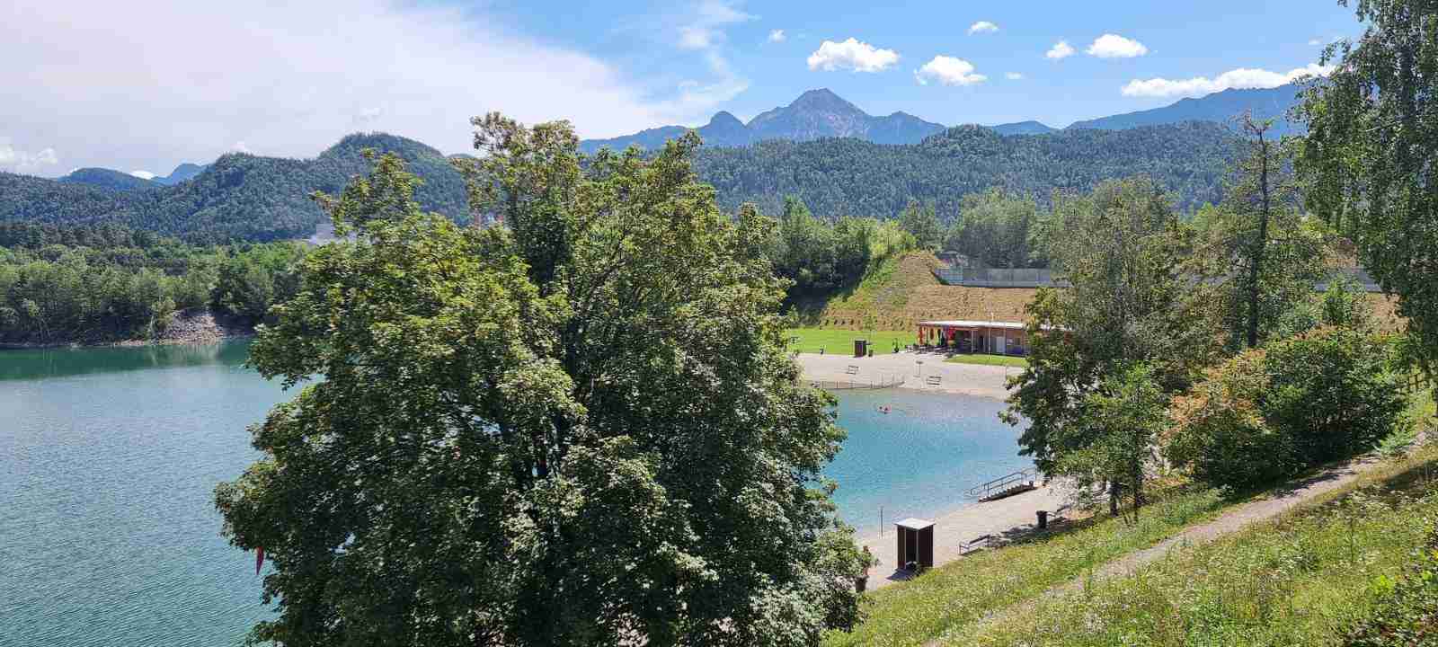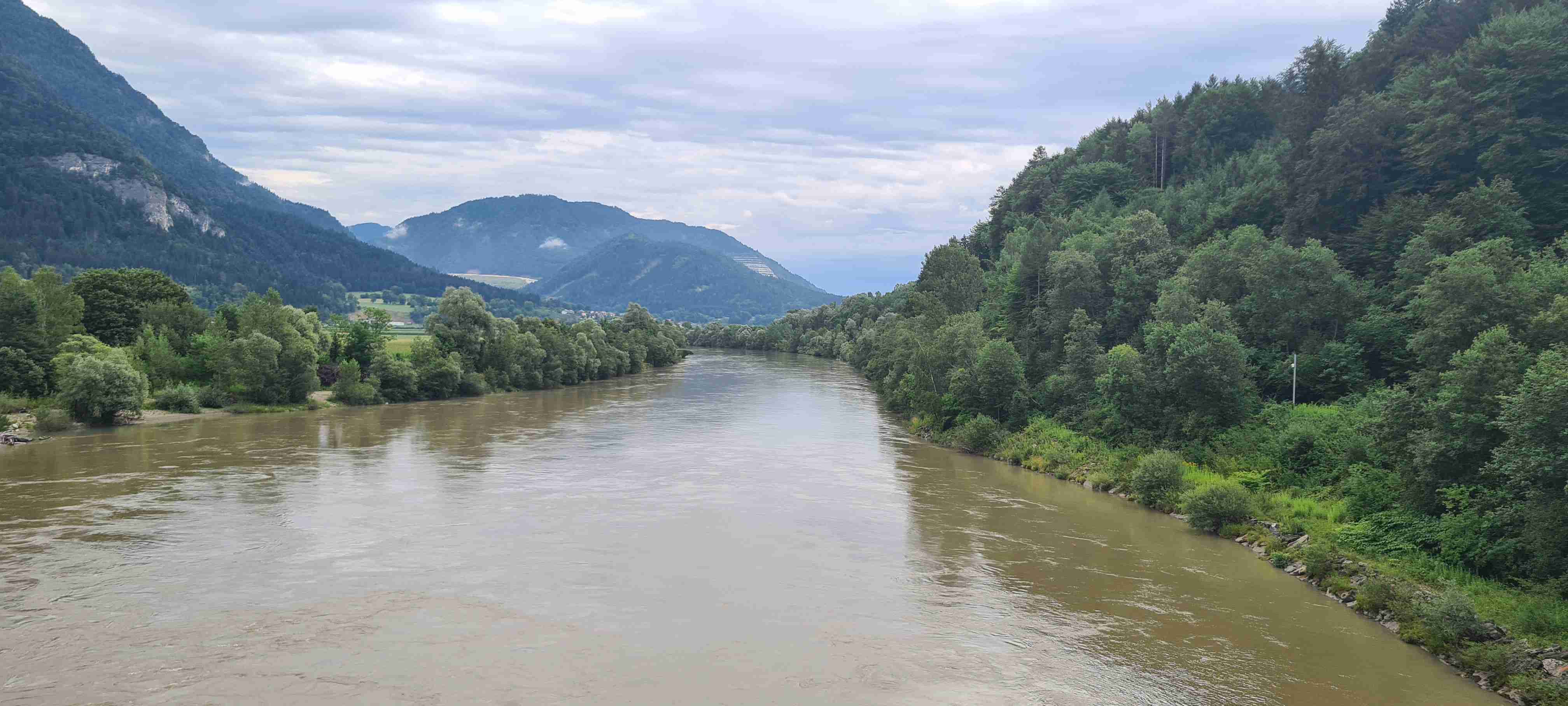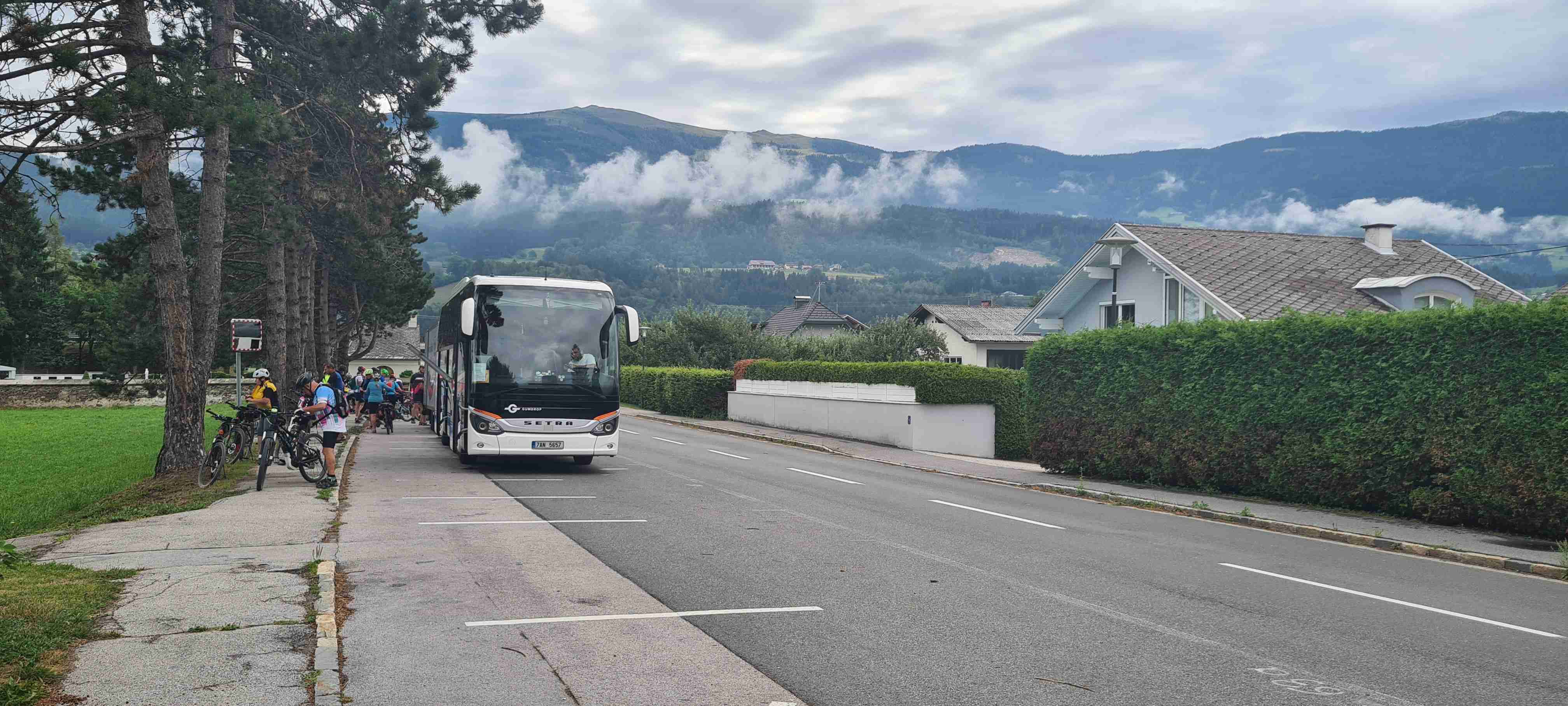 Nás poslední den měl být chladný a deštivý a dopoledne tomu vše nasvědčovalo. Začínali jsme tam, kde jsme skočili hned první den- v obci Paternion, kousek od řeky Drávy. Sjeli jsme k řece na cyklostezku a po ní jsme jeli až do Villachu. Cestou začalo i krápat, ale to rychle ustalo, a i mraky se roztrhaly a slunce se vrátilo ke svému standardu uplynulých dní. Na začátku Villachu měl být na parkovišti autobus, ale ještě tam nebyl, tak jsme i s panem vedoucím na něj počkali, dali si u řidiče pivo a vyrazili jsme na náš poslední úsek. Zajeli jsme přes most do centra Villachu, všude byla spousta lidí, tak pár obligátních fotek, vrátili jsme se na náš levý břeh a po cyklostezce jsme frčeli dál až do míst, kde byla odbočka k Wernbergskému koupališti z vybagrované pískovny, u kterého čekal autobus. Zajeli jsme k autobusu a ukončili cyklistiku po drávské cyklostezce, dnes najeto pohodových 37 km za přijatelného počasí. Já vzal plavky a ručník a šel se vykoupat, žádné vstupné se neplatilo, voda byla parádní, škoda, že bylo málo času, odjížděli jsme o dvě hodiny dříve než obvykle. Tak jsem se po návratu na hotel poprvé a naposledy vydal ještě do hotelového bazénu, ale tam se mi špatně dýchalo, asi vysoká vlhkost, odpoledne venku to bylo lepší. Vzal jsem si z pokoje župan, až později jsem zjistil, že se za jeho použití platí 5 €, tak jsem to před večeří raději hned srovnal, aby z toho nebyla ostuda. Člověk se má pořád co učit.
