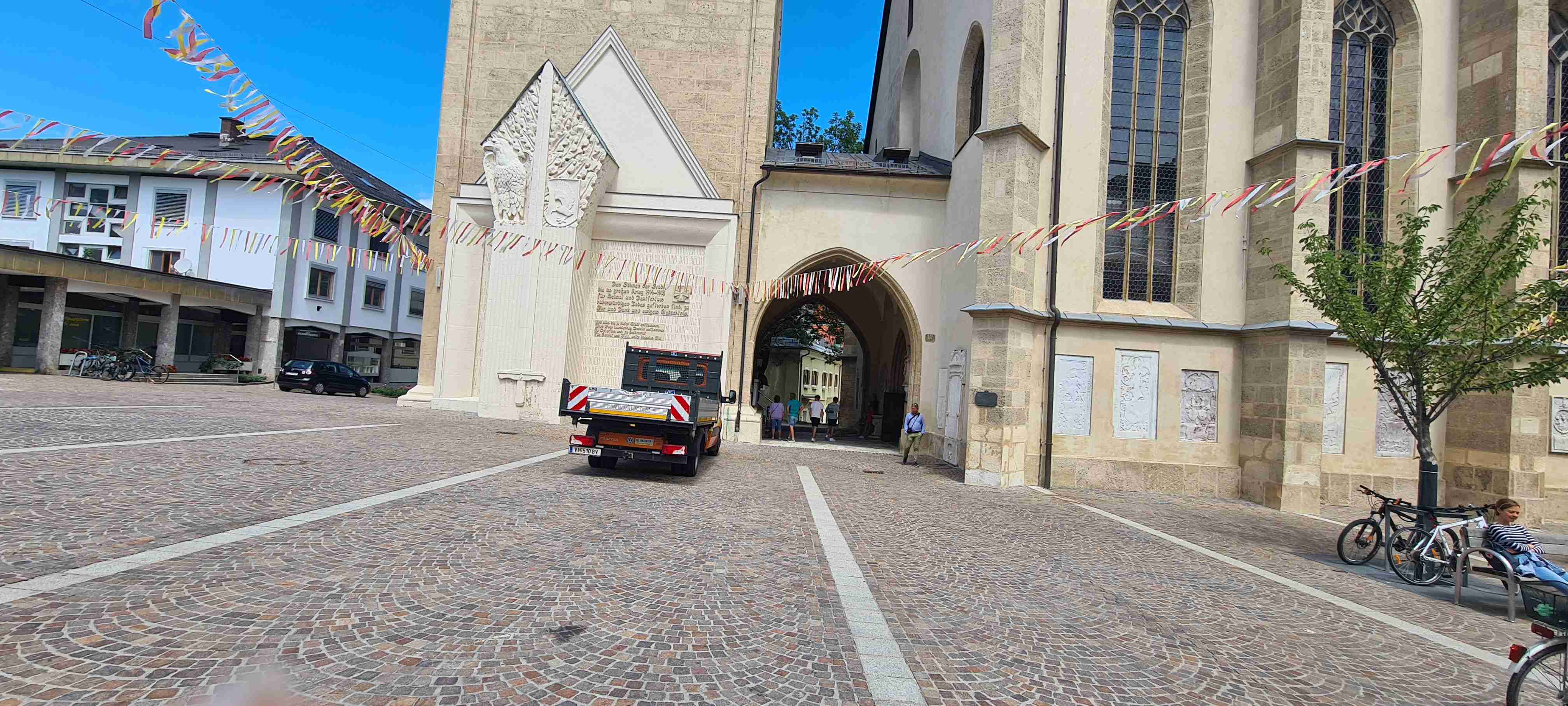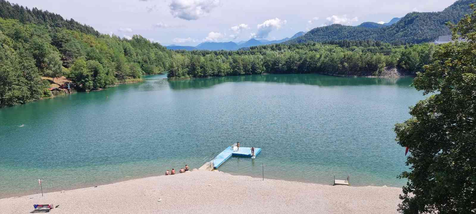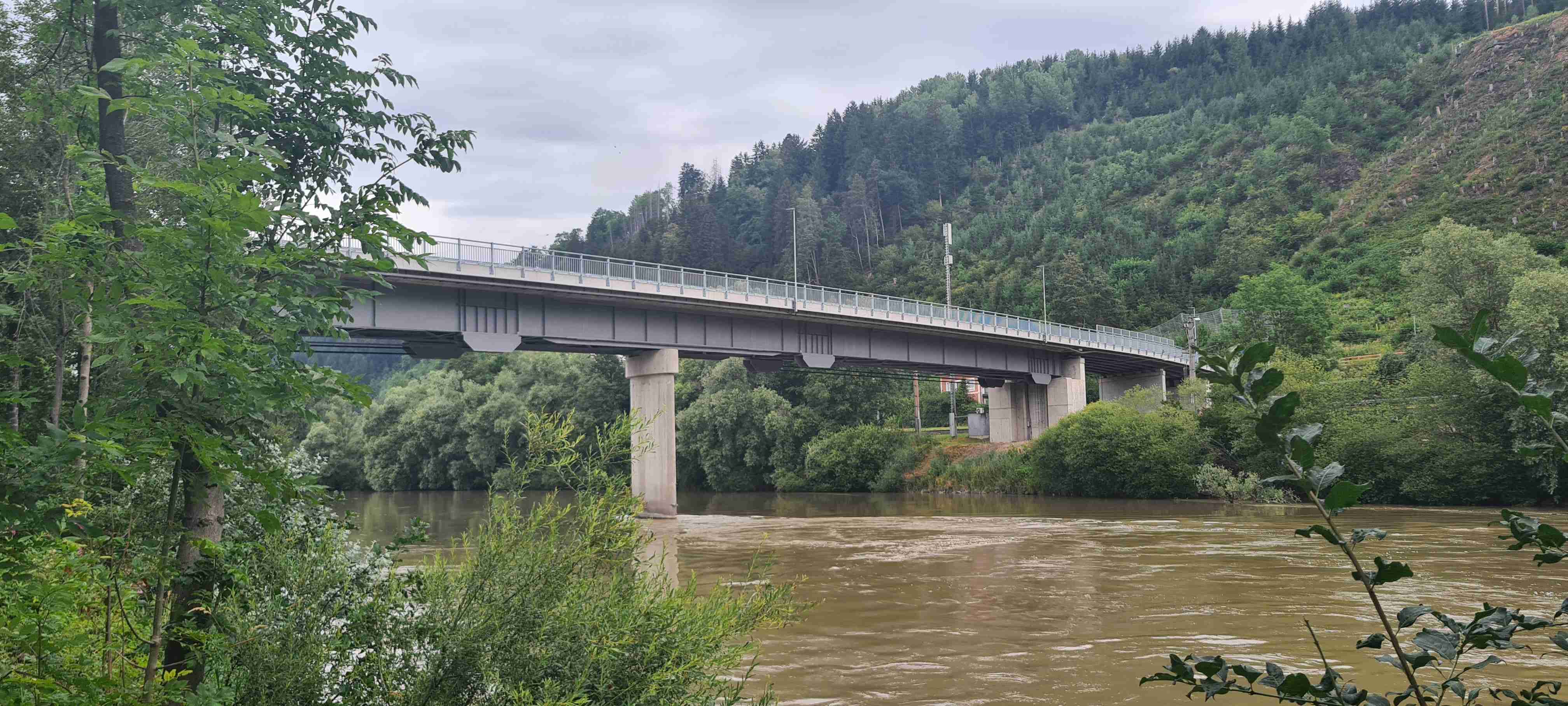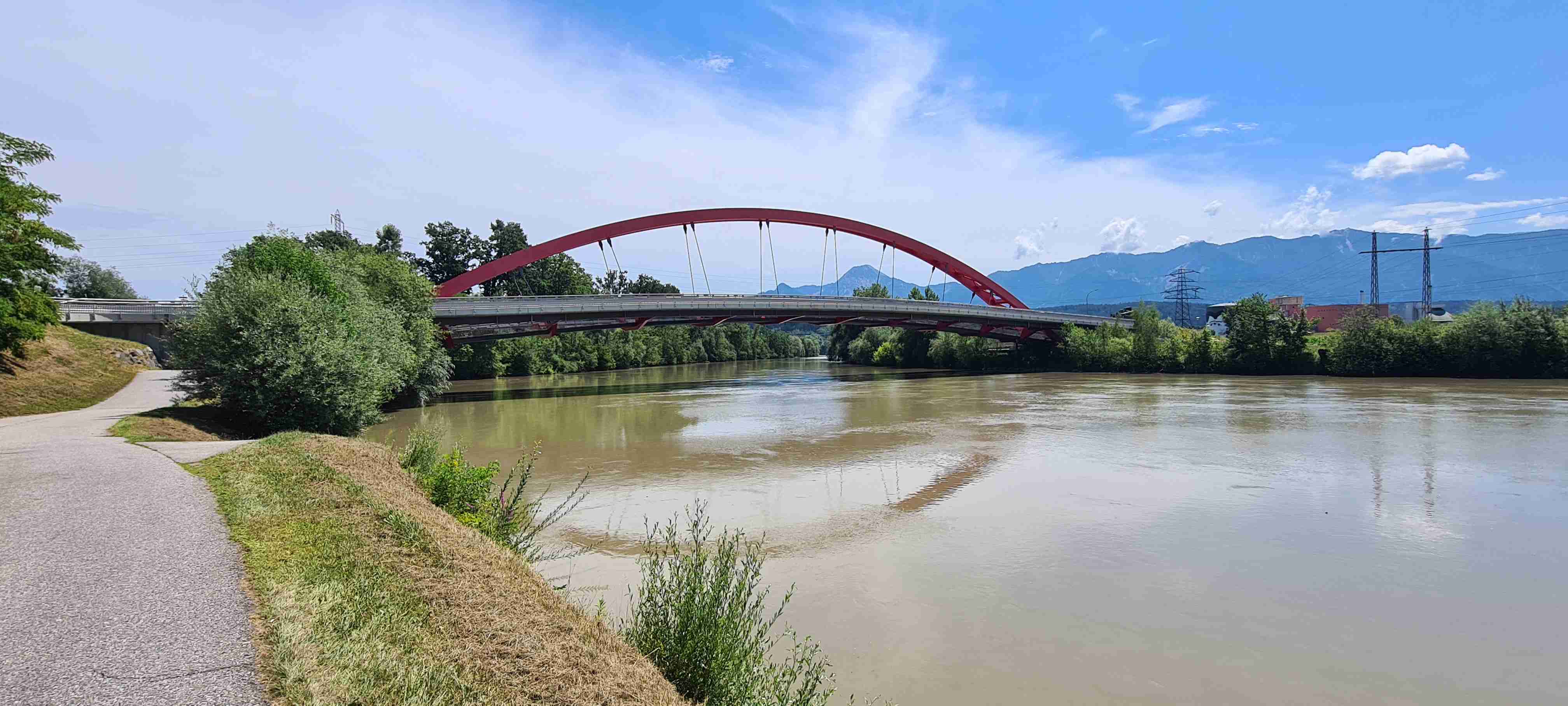 Nás poslední den měl být chladný a deštivý a dopoledne tomu vše nasvědčovalo. Začínali jsme tam, kde jsme skočili hned první den- v obci Paternion, kousek od řeky Drávy. Sjeli jsme k řece na cyklostezku a po ní jsme jeli až do Villachu. Cestou začalo i krápat, ale to rychle ustalo, a i mraky se roztrhaly a slunce se vrátilo ke svému standardu uplynulých dní. Na začátku Villachu měl být na parkovišti autobus, ale ještě tam nebyl, tak jsme i s panem vedoucím na něj počkali, dali si u řidiče pivo a vyrazili jsme na náš poslední úsek. Zajeli jsme přes most do centra Villachu, všude byla spousta lidí, tak pár obligátních fotek, vrátili jsme se na náš levý břeh a po cyklostezce jsme frčeli dál až do míst, kde byla odbočka k Wernbergskému koupališti z vybagrované pískovny, u kterého čekal autobus. Zajeli jsme k autobusu a ukončili cyklistiku po drávské cyklostezce, dnes najeto pohodových 37 km za přijatelného počasí. Já vzal plavky a ručník a šel se vykoupat, žádné vstupné se neplatilo, voda byla parádní, škoda, že bylo málo času, odjížděli jsme o dvě hodiny dříve než obvykle. Tak jsem se po návratu na hotel poprvé a naposledy vydal ještě do hotelového bazénu, ale tam se mi špatně dýchalo, asi vysoká vlhkost, odpoledne venku to bylo lepší. Vzal jsem si z pokoje župan, až později jsem zjistil, že se za jeho použití platí 5 €, tak jsem to před večeří raději hned srovnal, aby z toho nebyla ostuda. Člověk se má pořád co učit.