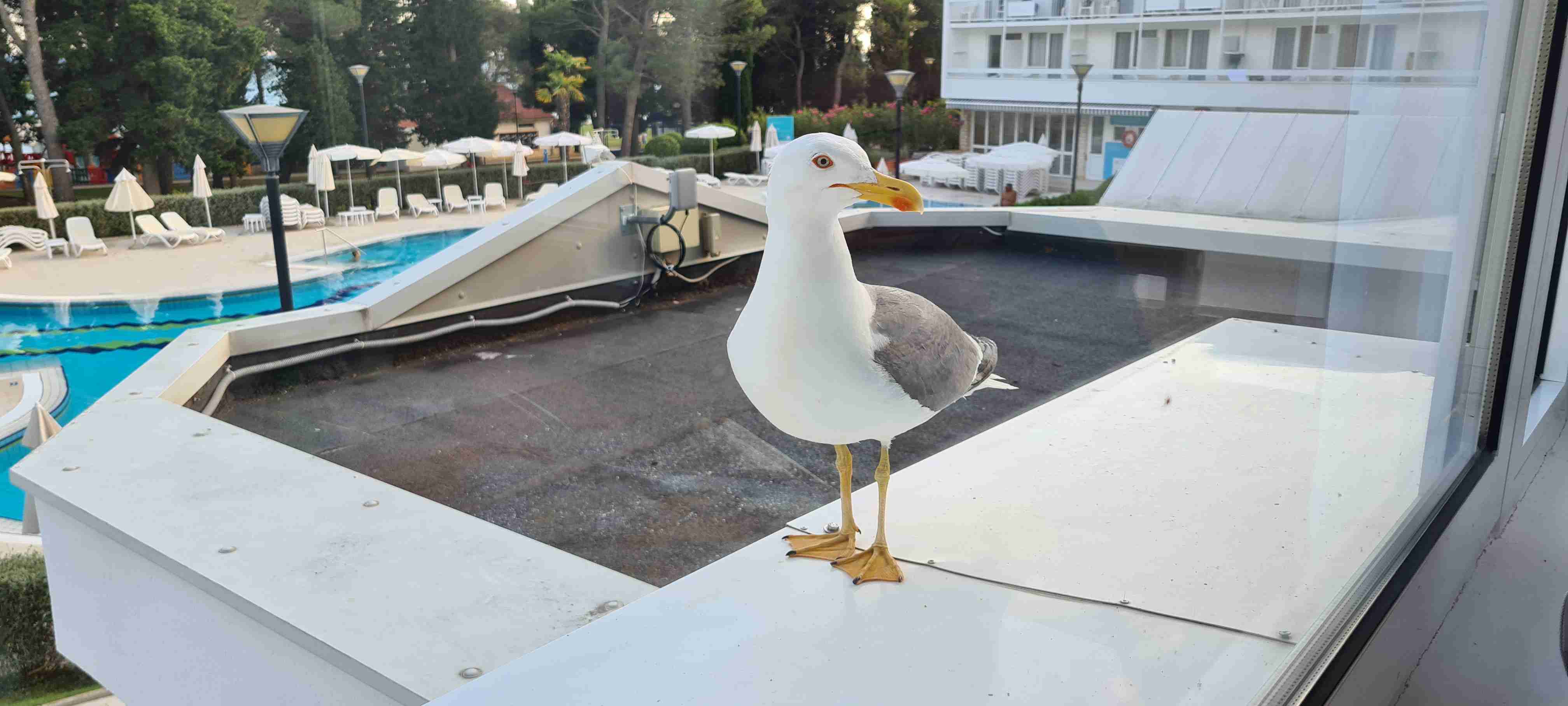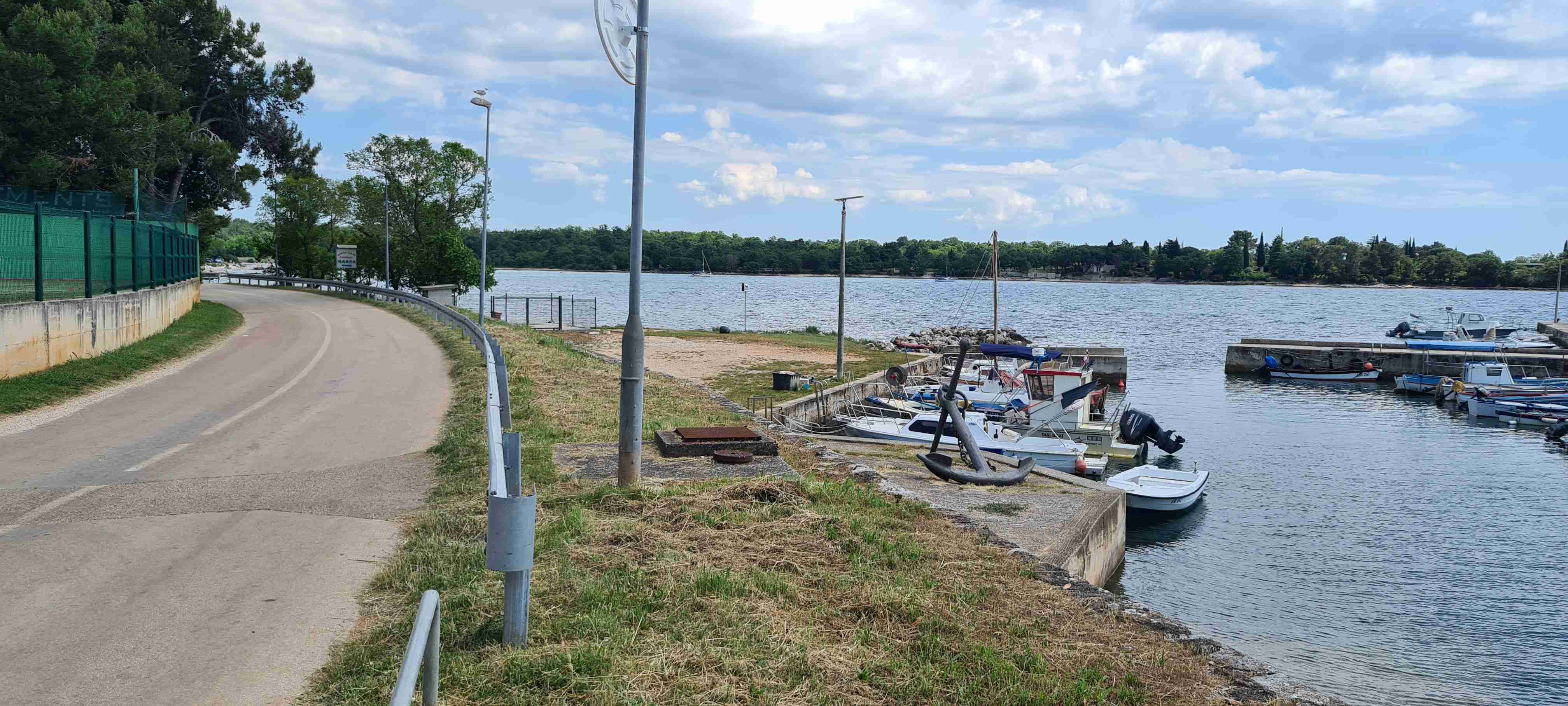 Busem jsem se ráno přesunuli do sousedního Slovinska do přístavu Koper, který již známe z našeho zájezdu Slovinské moře z před 2 lety. První část etapy byla plánována z Koperu do Lucie u Portorože (cca 30 km), takže jenom Slovinsko, ale tuto trasu jsme již jeli několikrát. Etapa se však dala prodloužit o dalších 40 km a dojet na kolech na hotel. Jet více jak 70 km se nám nechtělo, a tak jsem si domluvil vlastní trasu a to, že nás autobus odveze do Lucie, kde stejně bude stát a čekat na ty, kteří již dál nepojedou na kolech a my vyrazíme až odtud. A tak se i stalo. Ještě v Koperu jsem s řidičem šel do obchodního centra, on na nákup pití, já koupil v Hervisu Ivě trekingové hůlky, aby se jí lépe chodilo. Po nákupech jsme tedy autobusem přejeli do Lucie a my vyrazili na cestu podél pobřeží, kempem, kolem saliny Sečovlje až k chorvatské hranici – tuto část cesty jsme znali z minulé návštěvy a vedla po trase bývalé železnice Parenzana, většinou po asfaltu. Po přejetí hranic do Chorvatska jsme pokračovali po Parenzaně, ovšem na rozdíl od Slovinska její povrch byl poněkud kamenitý a prvních pár kilometrů bylo docela do kopce. Nám to samozřejmě nevadilo, Ivě se však nejelo dobře, protože má městské kolo a pláště nemají hrubý vzorek. Trasa byla i nadále vlnitá, po místních silničkách jsme projížděli istrijským vnitrozemím až jsme u obce Lovrečice dorazili opět k moři a dál kopírovali pobřeží. Po silničkách jsme po cca 43 km dojeli k hotelu a já opět zamířil do moře.