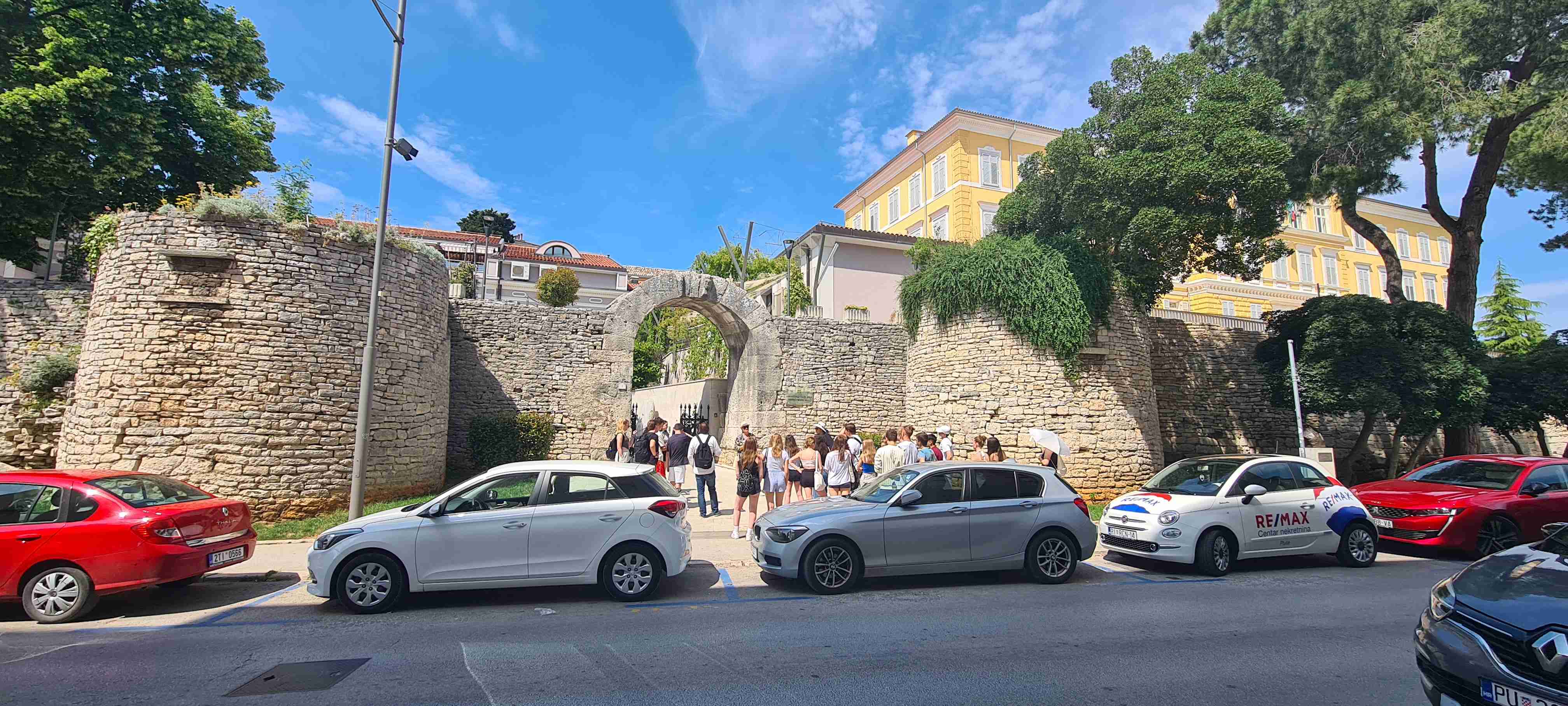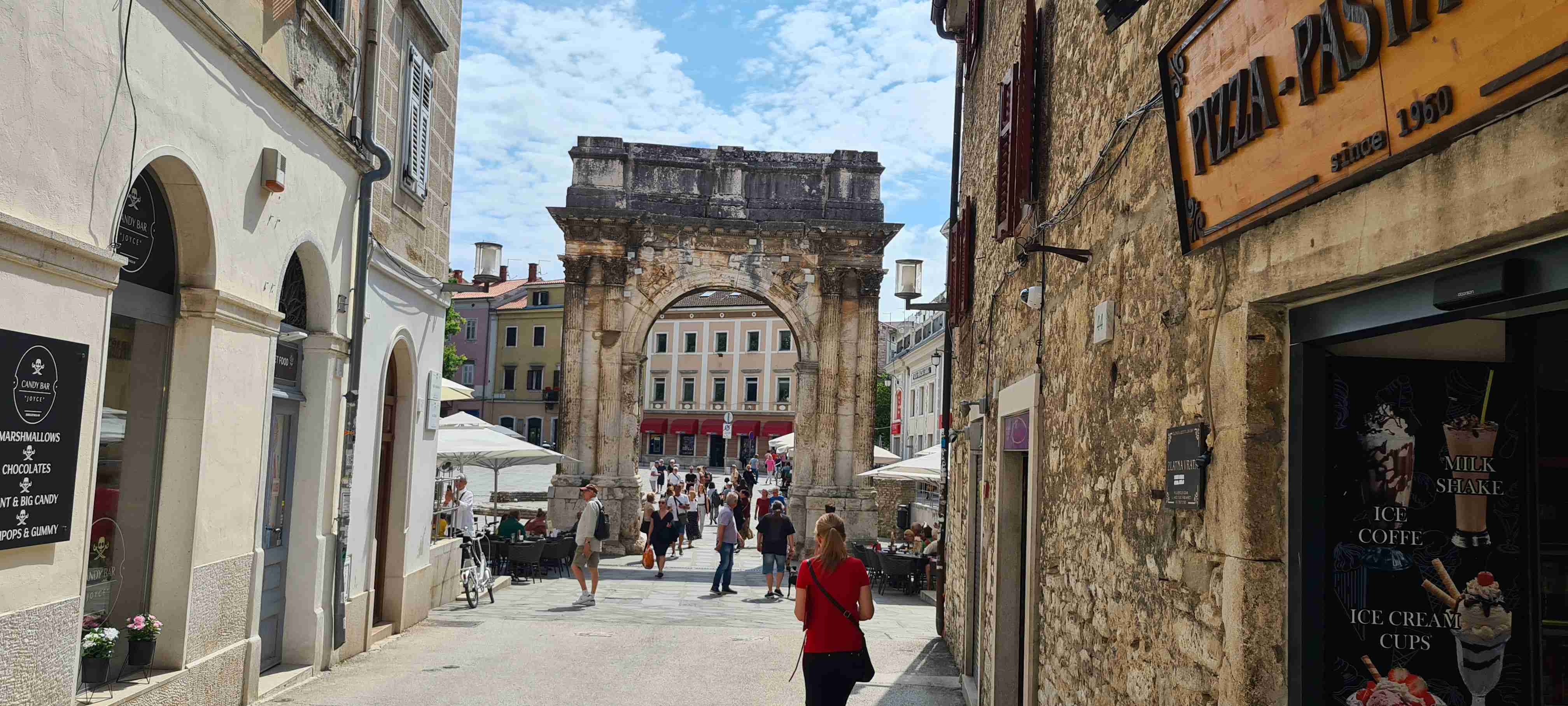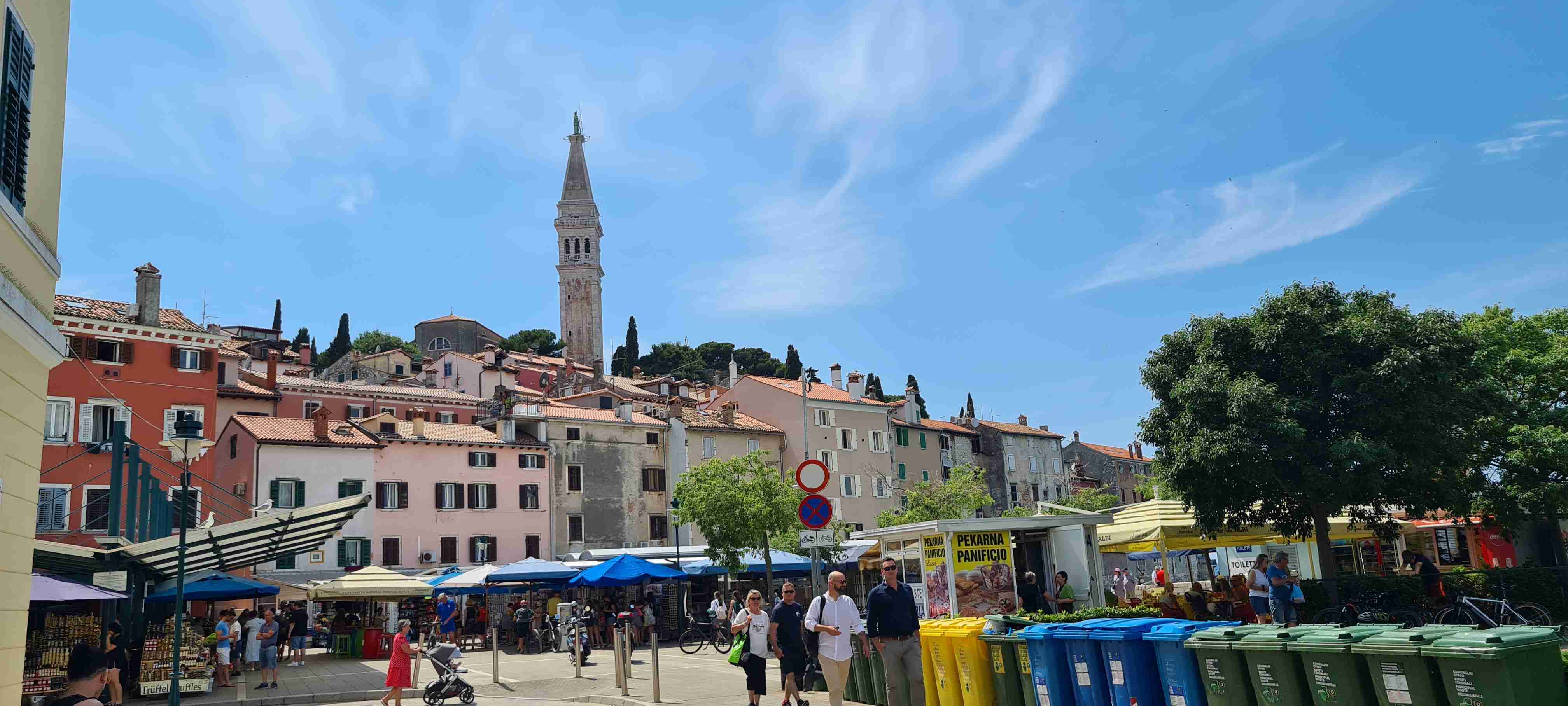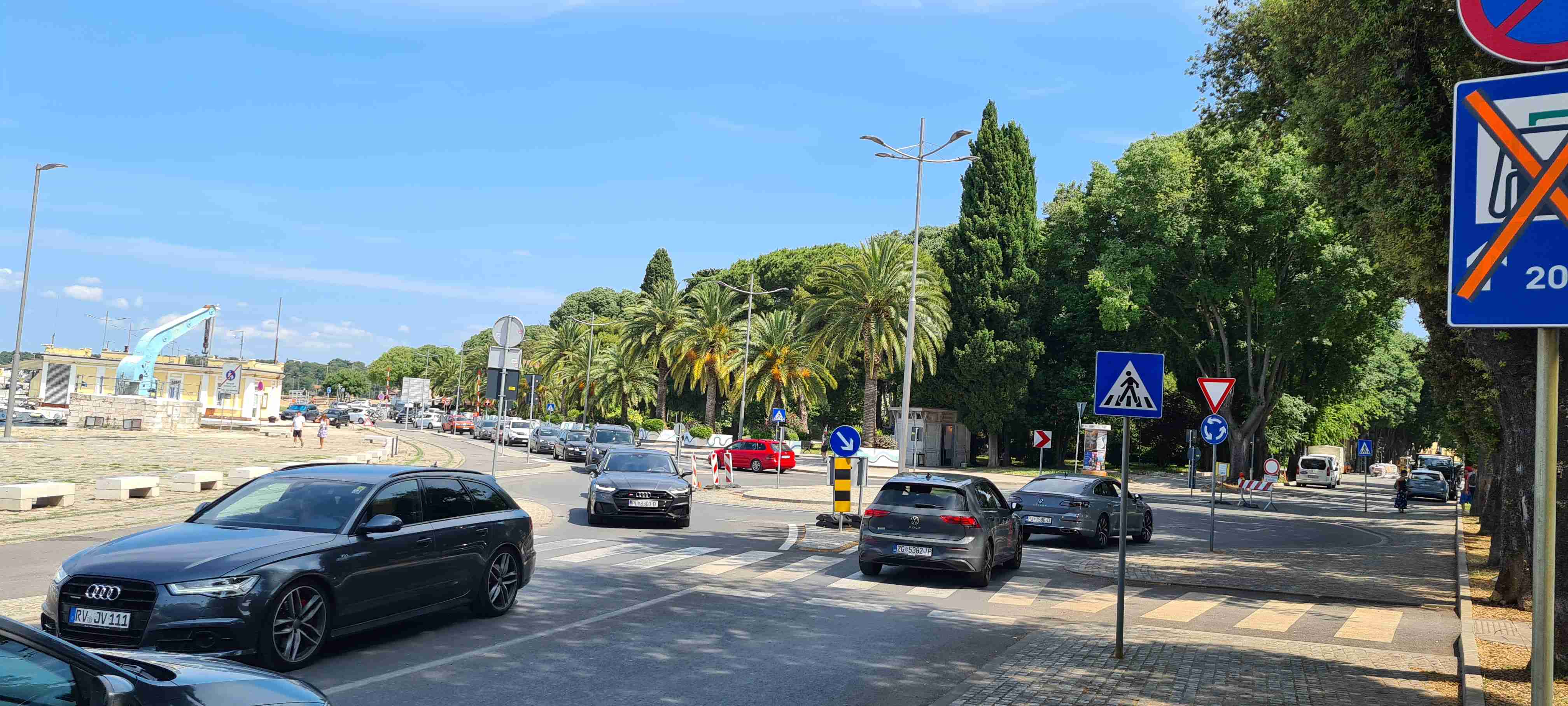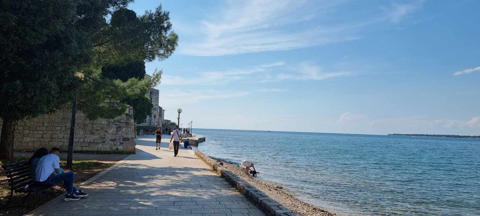 Středa byl den bez kol, ráno jsme vyrazili autobusem od hotelu dříve než obvykle, a to nejprve do Puly. Společně jsme se prošli od parkoviště kolem římské arény až k římské mozaice staré cca 2 000 let. Cestou nám pan průvodce ukázal ještě spoustu jiných pamětihodností, od mozaiky jsme pak pokračovali již každý sám, já podle mapky od CK, došel jsem k vítěznému oblouku a dále až k tržnici. Poté jsem se pomalu vracel k autobusu, kousek od parkoviště jsem našel Ivu v restauraci, a tak jsem si dal také pivo. Autobus dorazil na čas, nasedli jsme a vyrazili do Rovinj. Cesta trvala zhruba hodinu, autobus nás opět vysypal co nejblíže centra a my individuálně vyrazili na prohlídku. Moc jsme tomu nedali, zapadli jsme do jedné restaurace a dali si kalamári na grilu za celkem slušné peníze. Po jídle jsme se pomalu courali městečkem zpět na místo srazu s autobusem, který opět dorazil včas a my se přesunuli do Poreče. I tady jsme se pocourali městem, bylo poměrně vedro, a tak jsme ve stínu na benzínové stanici počkali na náš autobus a kolem půl sedmé jsme se vrátili na hotel. Byl jsem splavený, a tak jsem upaloval do moře. Na večeři jsme díky mému ráchání se ve vodě dorazili o hodinu později, o nic jsme samozřejmě nepřišli, jídla bylo pořád dost.