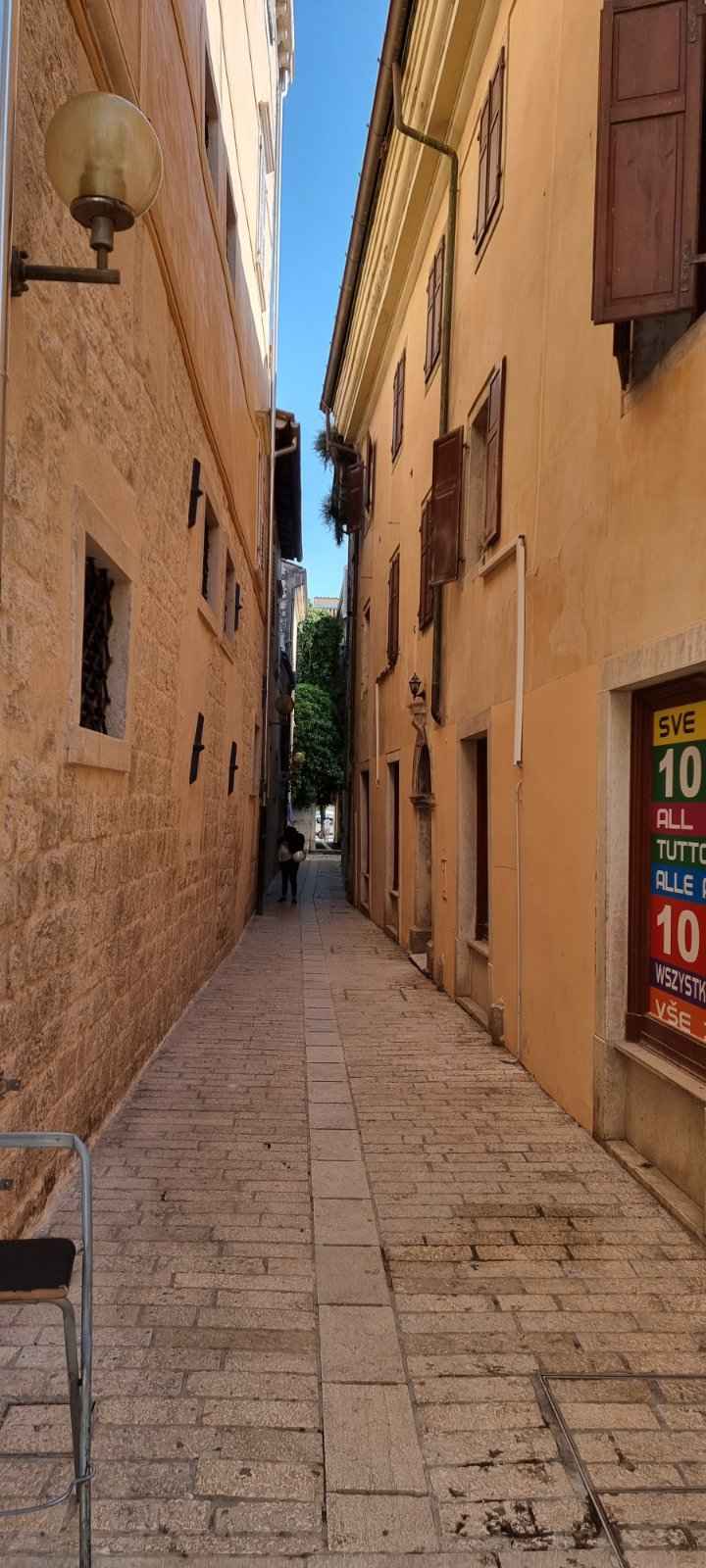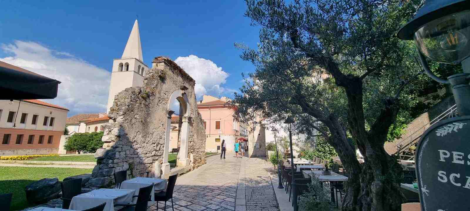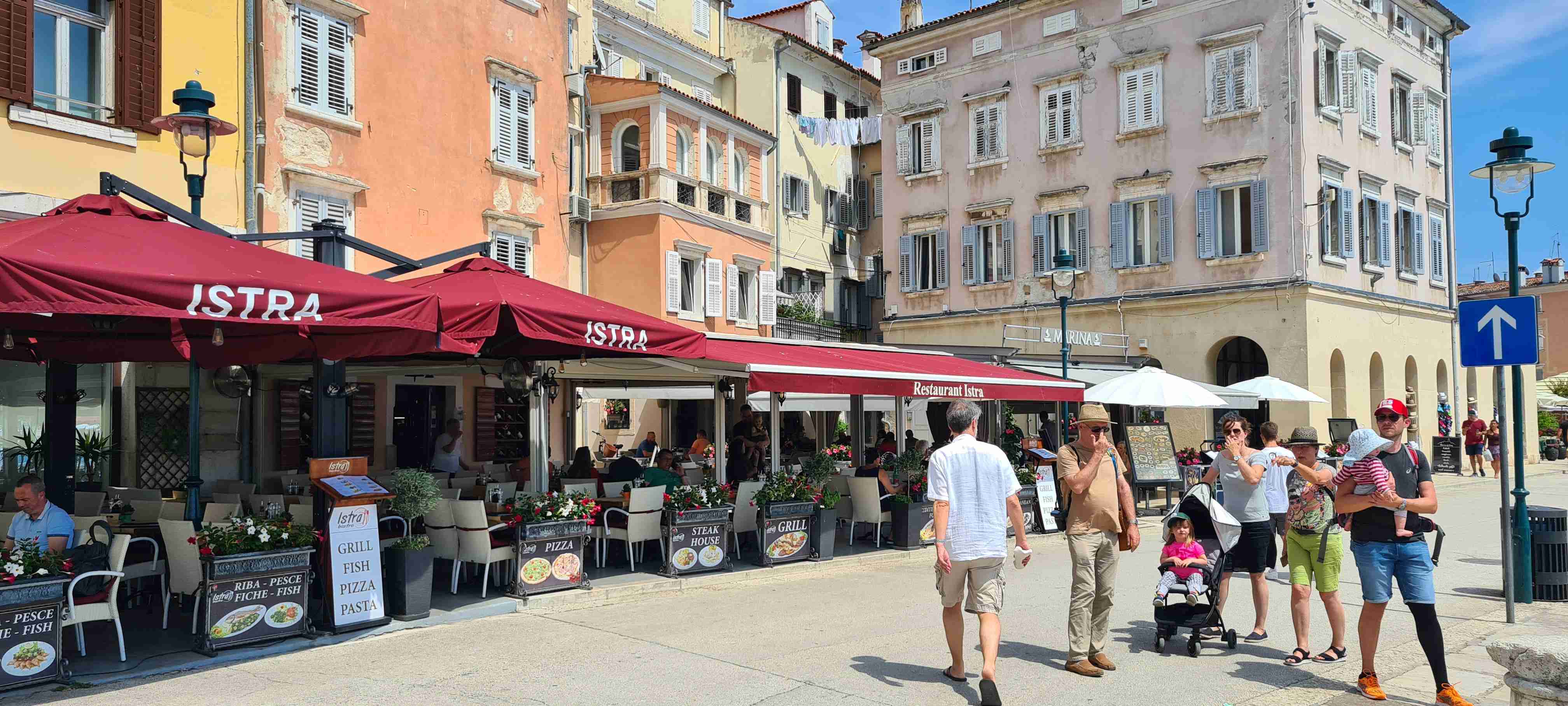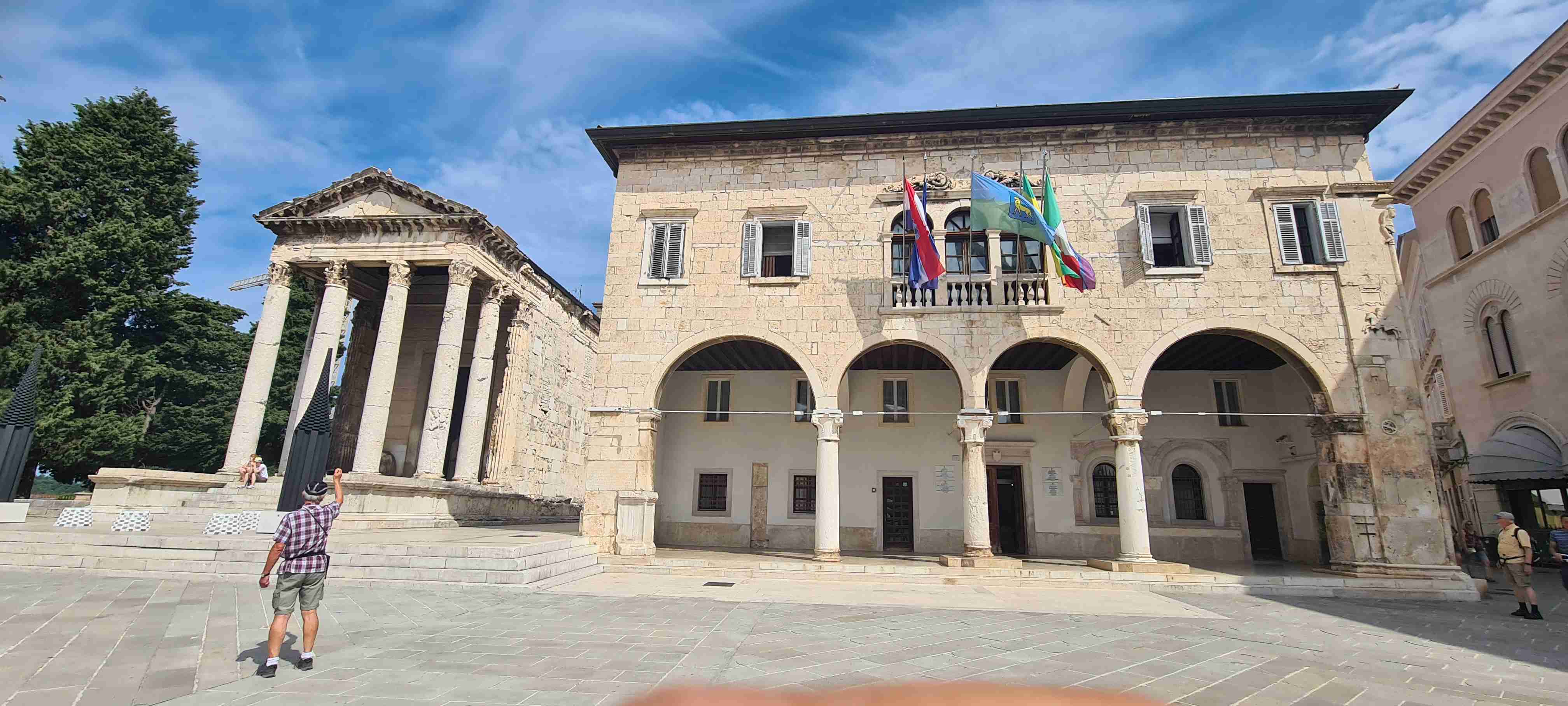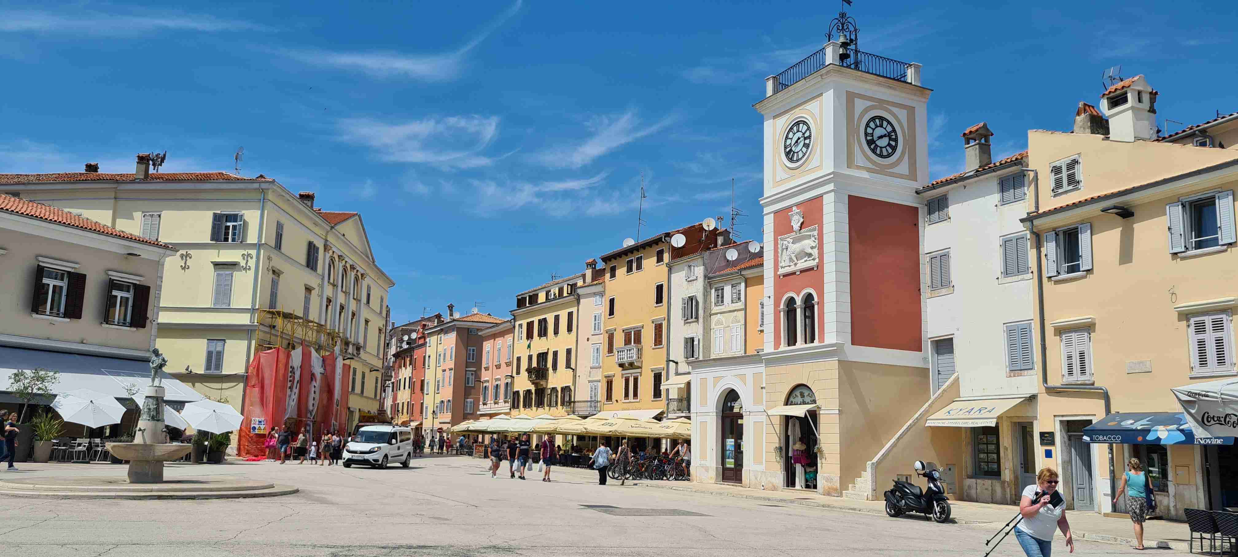 Středa byl den bez kol, ráno jsme vyrazili autobusem od hotelu dříve než obvykle, a to nejprve do Puly. Společně jsme se prošli od parkoviště kolem římské arény až k římské mozaice staré cca 2 000 let. Cestou nám pan průvodce ukázal ještě spoustu jiných pamětihodností, od mozaiky jsme pak pokračovali již každý sám, já podle mapky od CK, došel jsem k vítěznému oblouku a dále až k tržnici. Poté jsem se pomalu vracel k autobusu, kousek od parkoviště jsem našel Ivu v restauraci, a tak jsem si dal také pivo. Autobus dorazil na čas, nasedli jsme a vyrazili do Rovinj. Cesta trvala zhruba hodinu, autobus nás opět vysypal co nejblíže centra a my individuálně vyrazili na prohlídku. Moc jsme tomu nedali, zapadli jsme do jedné restaurace a dali si kalamári na grilu za celkem slušné peníze. Po jídle jsme se pomalu courali městečkem zpět na místo srazu s autobusem, který opět dorazil včas a my se přesunuli do Poreče. I tady jsme se pocourali městem, bylo poměrně vedro, a tak jsme ve stínu na benzínové stanici počkali na náš autobus a kolem půl sedmé jsme se vrátili na hotel. Byl jsem splavený, a tak jsem upaloval do moře. Na večeři jsme díky mému ráchání se ve vodě dorazili o hodinu později, o nic jsme samozřejmě nepřišli, jídla bylo pořád dost.
