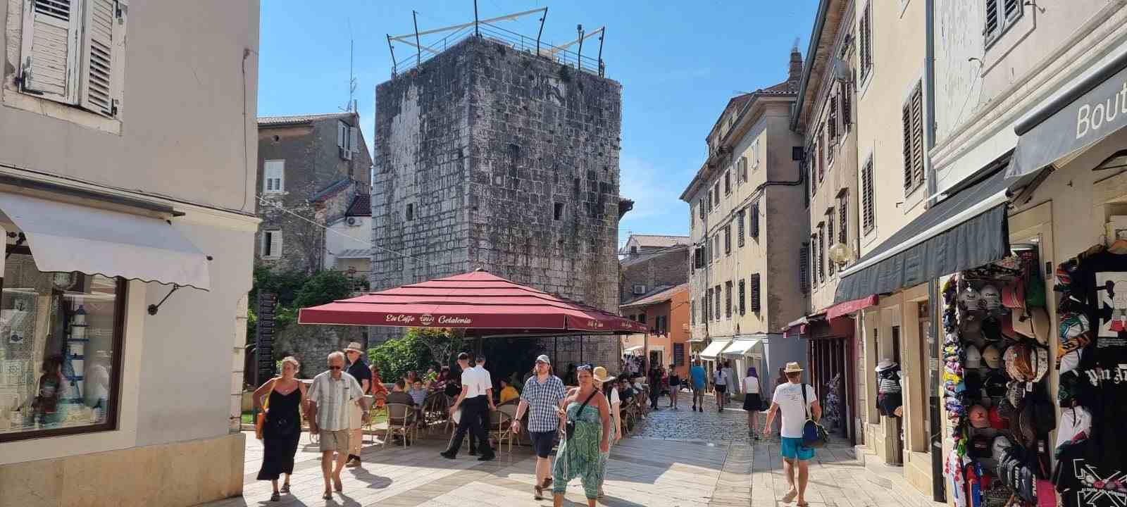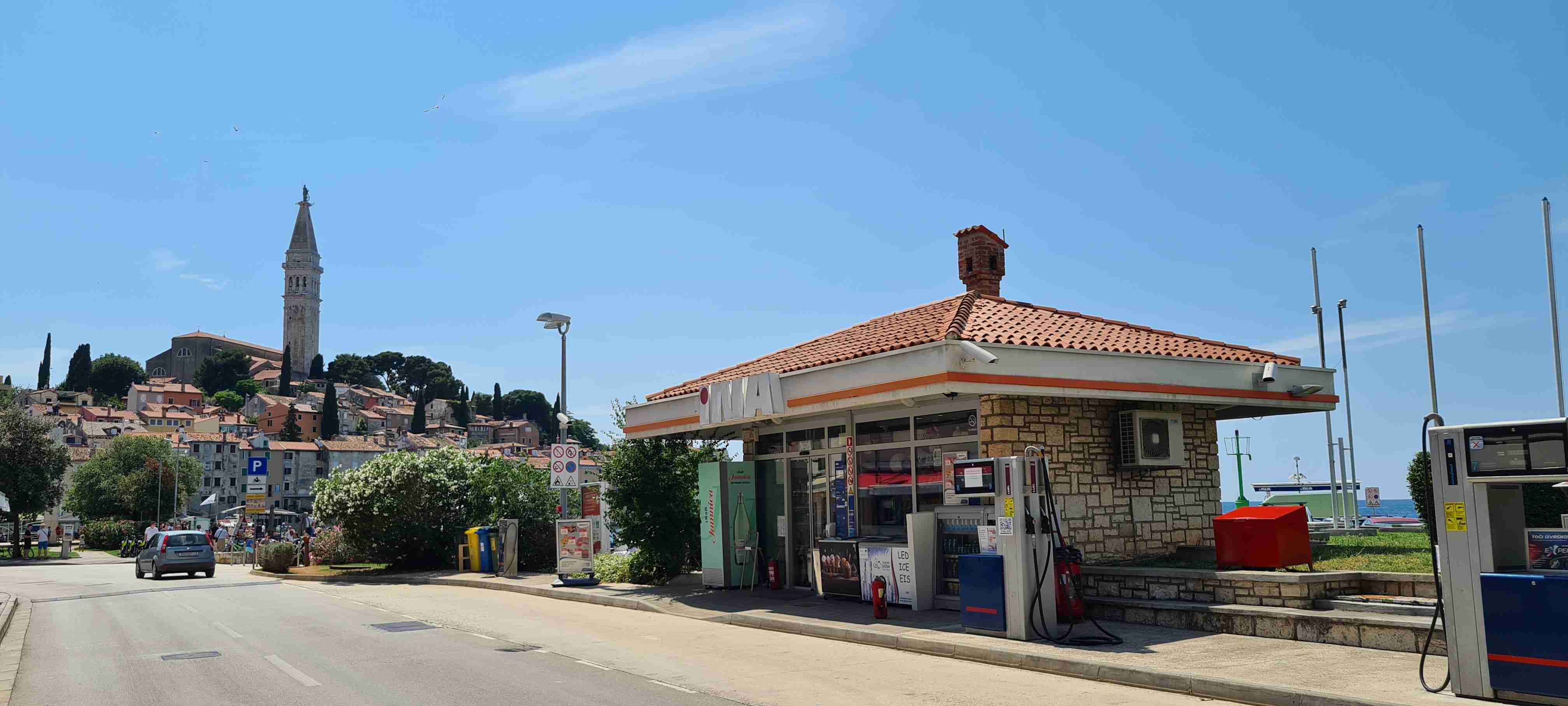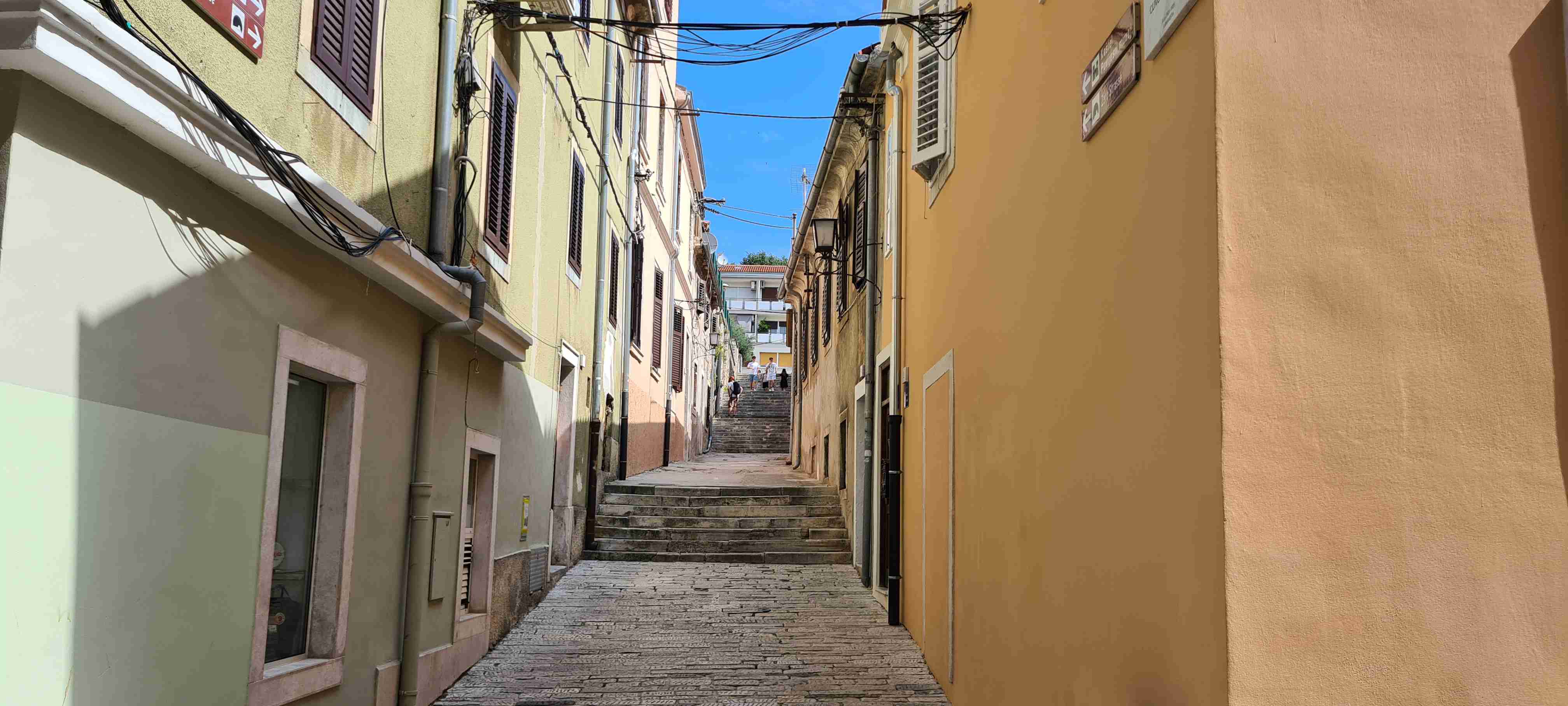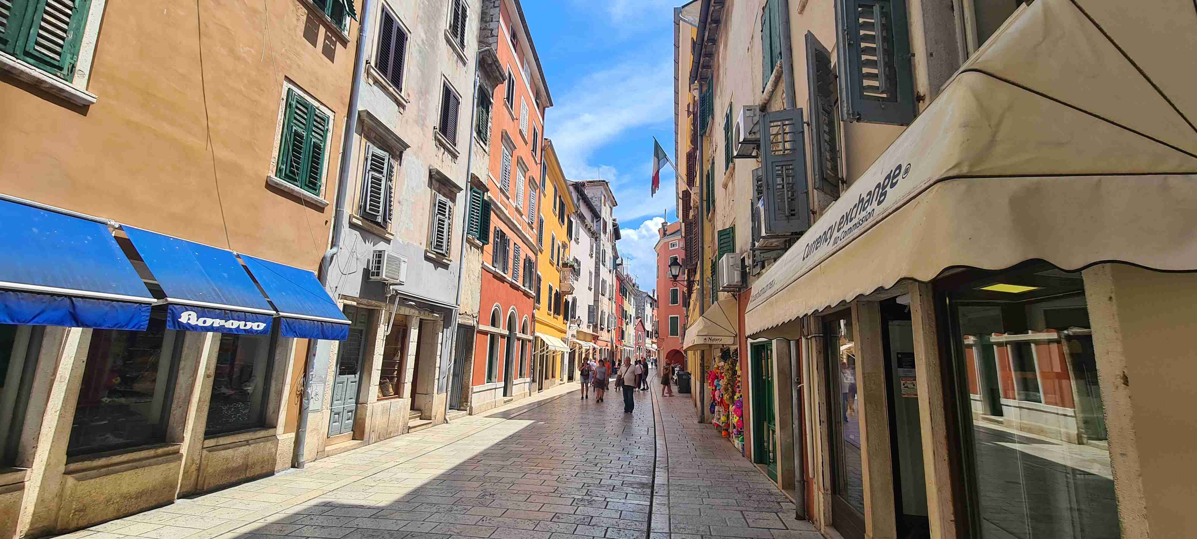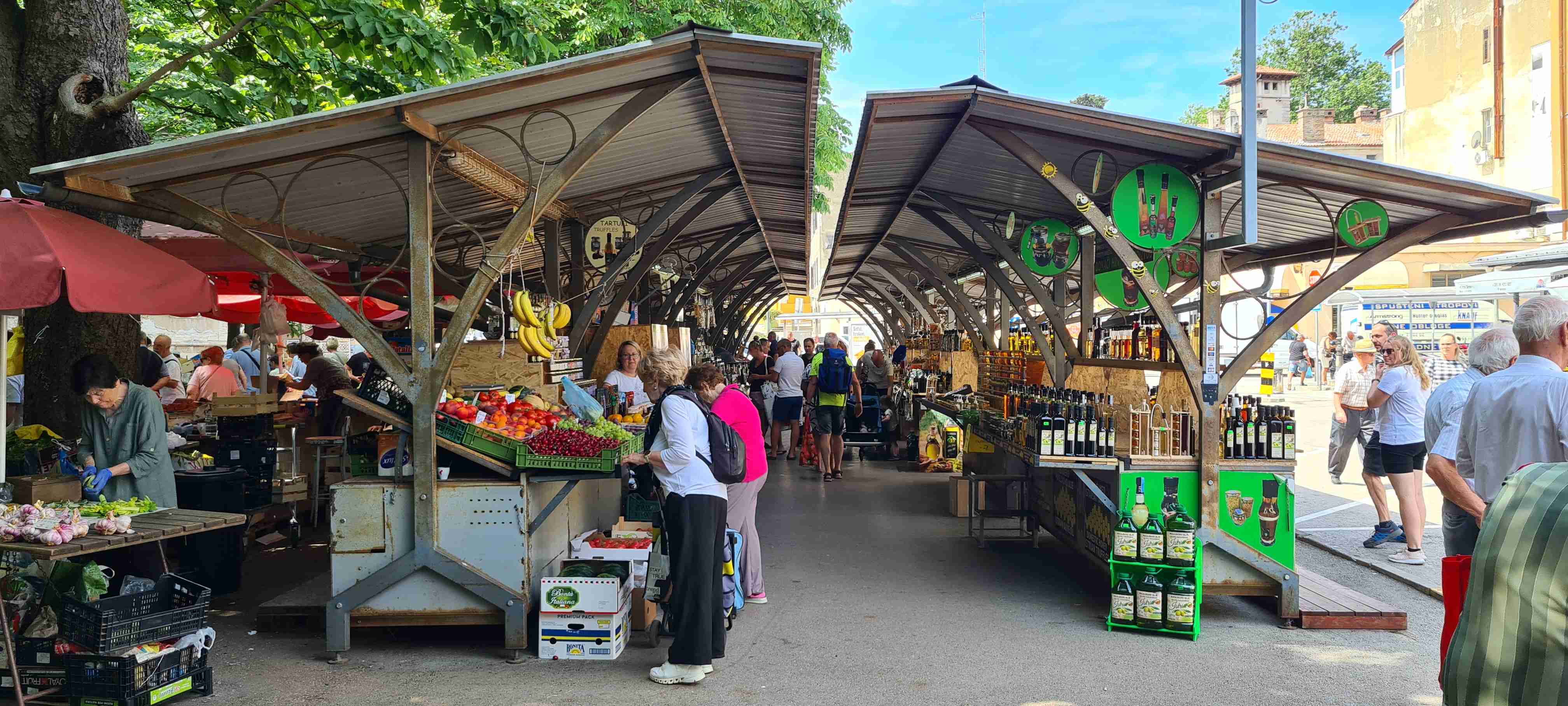 Středa byl den bez kol, ráno jsme vyrazili autobusem od hotelu dříve než obvykle, a to nejprve do Puly. Společně jsme se prošli od parkoviště kolem římské arény až k římské mozaice staré cca 2 000 let. Cestou nám pan průvodce ukázal ještě spoustu jiných pamětihodností, od mozaiky jsme pak pokračovali již každý sám, já podle mapky od CK, došel jsem k vítěznému oblouku a dále až k tržnici. Poté jsem se pomalu vracel k autobusu, kousek od parkoviště jsem našel Ivu v restauraci, a tak jsem si dal také pivo. Autobus dorazil na čas, nasedli jsme a vyrazili do Rovinj. Cesta trvala zhruba hodinu, autobus nás opět vysypal co nejblíže centra a my individuálně vyrazili na prohlídku. Moc jsme tomu nedali, zapadli jsme do jedné restaurace a dali si kalamári na grilu za celkem slušné peníze. Po jídle jsme se pomalu courali městečkem zpět na místo srazu s autobusem, který opět dorazil včas a my se přesunuli do Poreče. I tady jsme se pocourali městem, bylo poměrně vedro, a tak jsme ve stínu na benzínové stanici počkali na náš autobus a kolem půl sedmé jsme se vrátili na hotel. Byl jsem splavený, a tak jsem upaloval do moře. Na večeři jsme díky mému ráchání se ve vodě dorazili o hodinu později, o nic jsme samozřejmě nepřišli, jídla bylo pořád dost.