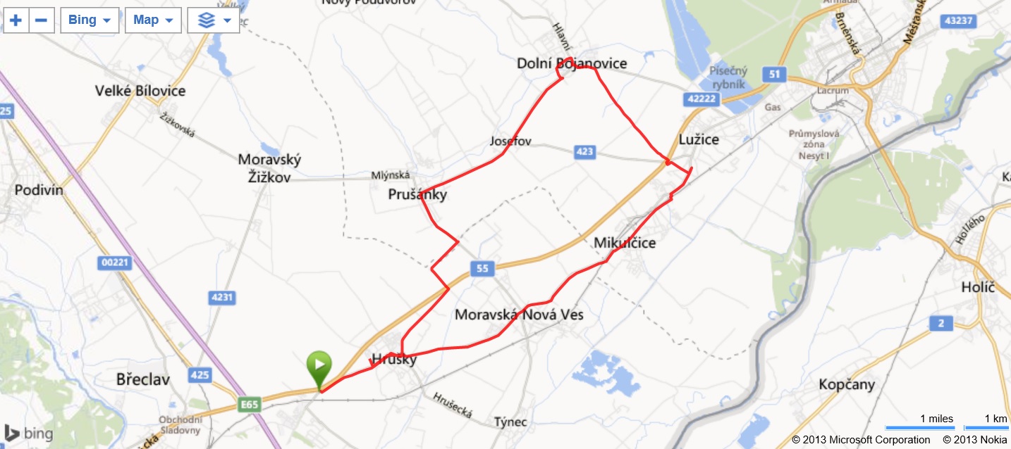 Z Hrušek jsme polními cestami většinou s asfaltovým povrchem dojeli do Prušánek, tady jsme se stočili na Dolní Bojanovice, kde jsme si dali pivo a zamířili jsme do Lužice, kde jsme podešli trať a po druhé straně jsme dojeli do Mikulčic a pokračovali Přes Moravskou Novou Ves zpět do Hrušek. Celá trasa měla necelých 30 km a nebýt mého pádu, bylo by to příjemné poježdění na úvod. Po provedené očistě se mnozí vyráchali i v bazénu a již na nás čekal Laďa s koštováním vín. Nejprve řada bílých a poté přišla na řadu červená, ale to již mnozí (především dámy) přenechávali své vzorky odolnějším jedincům. Přitrž udělala večeře, která mnohé osvobodila od konzumace a mohli jsme ti tak vychutnat řízek s bramborem. Po večeři pokračovala konzumace všeho možného, neboť Zdenda zároveň slavil třicáté narozeniny, postupně se na stolech objevily ještě obložené mísy, ale to jsem již byl plný až po víko a po desáté jsem se tradičně vytratil léčit si svá zranění. Pokoj jsem sdílel s Pavlem "Čápem" a s Pepou, kteří přišli až nad ránem, ale ve vší počestnosti a tichosti.