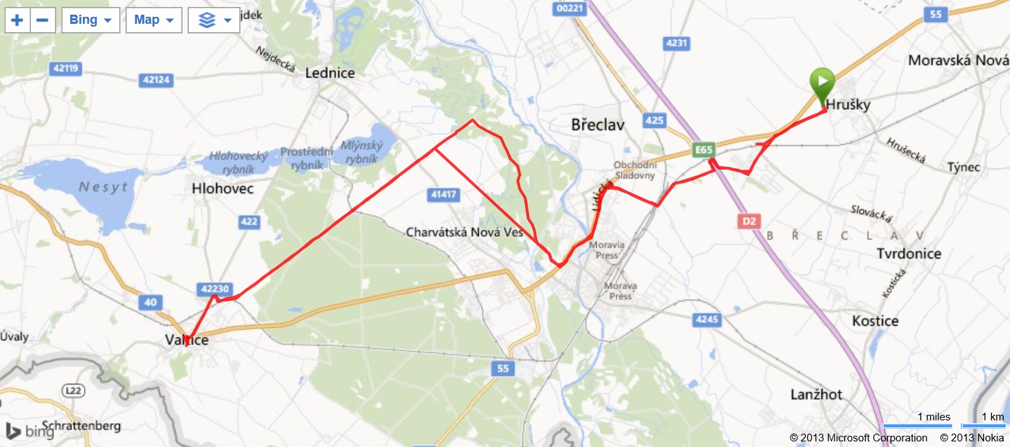 V pátek ráno jsem zjistil, že obě ruce jsou poměrně nepoužitelné, obě bolí jako čert, ale doufal jsem, že se to bude dát vydržet. Po vydatné snídaní, kde nechyběli ani moravské klobásy, jsme před desátou vyrazili směr Břeclav. Jeli jsme s Pavlem sami napřed, abychom mladší krev nebrzdili, ale nikdo nás nedojel. Trasa do Břeclavi vedla nám již známou cyklostezkou kolem zásovníků plynu a přečerpávací stanice, podjeli jsme trať a museli jsme se chtíc nechtíc napojit na hlavní silnici protínající Břeclav. Naštěstí tu mají pásy pro cyklisty, tak to jakž takž šlo. U Bily jsme zahnuli ke hradu a zastavili jsme u zimního stadionu, kde se již vesele čepovalo. Dali jsme si pivo a za chvíli dorazili i ostatní. My jsme se s Pavlem domluvili, že do Valtic pojedeme nejkratší cestou, vzhledem k mým bolavým rukám a i s ohledem na to, že Pavel byl letos poprvé na kole. Ostatní měli naplánovánu cestu poněkud delší , aby navštívili místa, kde jsme s Pavlem byli již loni. Naším cílem byly Valtice, kde byl domluven oběd v restauraci Albero. Vyjeli jsme tedy opět před ostatními, kousek za stadionem jsme přejeli přes řeku a vjeli jsme do Kančí obory, která je součástí Národního parku Niva - Dyje a lužním lesem jsme pokračovali až k odbočce do Valtické áleje. Alej ústí na silnici do Lednice, my jsme ji však přejeli kolmo a pokračovali jsme pořád rovně - nejprve kolem vinařškých sklepů a potom loukami a nakonec lesem, kde jsme vjeli do Ladenské aleje, kterou jsme dojeli téměř až do Valtic. U hřbitova jsme najeli na silnici z Lednice a z kopce dolů jsme sjeli do Valtic. Hned na vjezdu jsme si všimli restaurace Albero, my jsme vjeli na náměstí, které je uzavřeno, protože se opravuje, chvíli jsme strávili ve stínu stromů na lavičce a poté vyrazili na oběd. Prošli jsme průchodem z náměstí do zadního traktu domů a zde ve dvoře byla zahrada restaurace Albero. Bylo poměrně plno, ale my jsme místo našli, dali jsme si oba plněný bramborák a pomalu jsme upíjeli pivečko, když dorazili ostatní. Hlavní frmol již pominul a tak se všichni usadili a my s Pavlem jsme pomalu vyrazili na zpáteční cestu. Ruce mě bolely, každý kamínek jsem cítil, nejhorší bylo zastavování a rozjíždění. Jeli jsme prakticky stejnou cestou, zastavili jsme pouze u výjezdu z Kančí obory u pramene nějaké dobré vody, kam si ji lidé jezdí tankovat do kanystrů. Chvíli jsme poseděli ve stínu pod stříškou a pak jsme vyrazili na ne příliš příjemnou cestu Břeclaví, najeli jsme opět na kraji Břeclavi na cyklostezku a až v motorestu U Husára jsme zastavili a dali si pivo. Domů nám zbývaly necelé dva kilometry, ale Pavel si již nemohl sednout na kolo a tak jsme značnou část cesty tlačili jako dva Lazaři. Posledních pár set metrů jsme přeci jenom nasedli a dojeli, potom již očista těla (poměrně dost složitá a namáhavá s mýma rukama) a lehká koupačka v bazénu za popíjení pivečka. Večeře byla posunuta na pozdější dobu, aby ostatní stíhali u podvečerní koupel, a tak jsme s Pavlem relaxovali. Vzhledem ke stále se zhoršujícímu stavu obou rukou jsem již tušil, že pro tentokrát jsem s cyklistikou asi skončil. K večeři bylo vepřozeloknedlo, opět vynikají domací kuchyně paní Vyrubalíkové. Po večeři si každý objednal víno, na jaké měl chuť, později se opět objevily obložené mísy, no hrůza. Vydržel jsem asi do jedenácti, kdy zmožen jídlem, pitím i bolestí jsem se odporoučel.