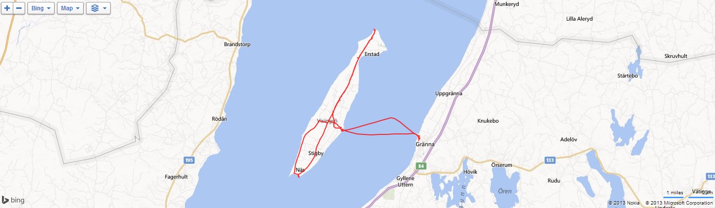 V noci se strhla bouřka a prudký déšť, který sice pochvíli přestal, ale nad ránem se znovu rozpršelo a dost dlouho to vydrželo. Když jsme ale vstávali, bylo již po dešti a stany jsme balili již docela suché. Čekal na nás poměrně dlouhý přejezd až k jezeru Vättern do městečka Gränna. Vyjeli jsme v 8.45 a do Gränny jsme dorazili po 13. hodině. Postavili jsme stany, dostali karty pro vstup do sociálek a lístky na přívoz a kolem 15. hodiny jsme přívozem přejeli na ostrov Visingsö. Jirka s námi tentokrát nejel, nestíhal trajekt a vyrazil později. Plavba na ostrov trvá asi 20 minut a ostrov jsme projeli doslova křížem krážem. Z přístavu jsme vyrazili nejprve na sever, kde jsme zastavili u kostela s rovnou střechou na věži, která slouží jako rozhledna. Neodolal jsem a i přes svůj odpor k výškám jsme s Ivou zakoupili lístky a vystoupali jsme nahoru. Rozhled byl opravdu vynikající, tak jsme nafotili, co se dalo. Od kostela jsme pokračovali na severní konec ostrova do obce Ed a ještě kousek po poli k majáku. Tady jsme se otočili a mířili na jih, zastavili jsme se u skulptur místního umělce, minuli jsme přístav a pokračovali až na jižní konec ostrova do Näs, kde jsme si prohlédli ruiny 1. švédského královského hradu a druhou cestou přes Rökinge jsme zamířili opět na sever. Do přístavu, který je zhruba uprostřed ostrova, jsme dorazili až po odplutí většiny účastníků, ale nebylo kam spěchat. Připlouvající trajekt vyplivl sanitu, hasiče a policii a rychle odplul, dali jsme si v malé restauraci v přístavu pivo a kafe, mezitím nás dojel Jirka a v klidu jsme se přepravili na pevninu, kam jsme dorazili v 19.30 hod. Večeře již sice byla, ale nechali nám dost. Celková bilance dne byla něco kolem 30 kilometrů.
