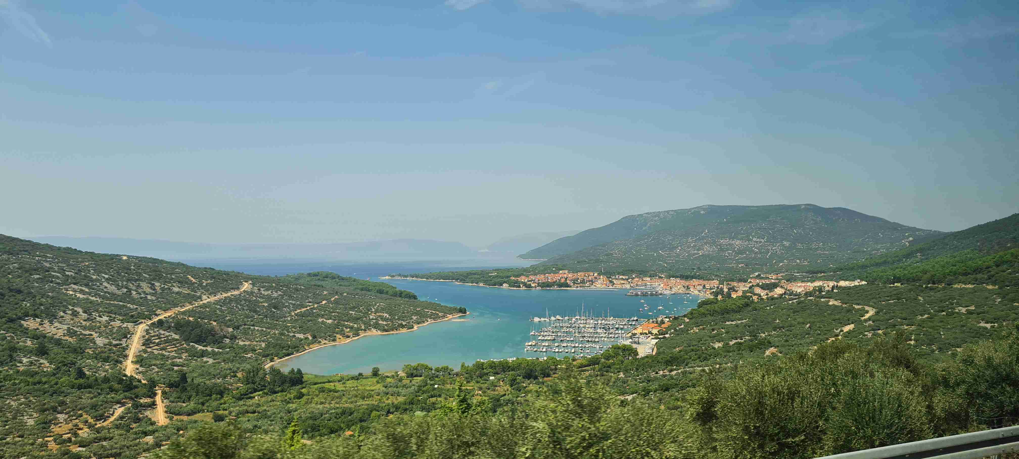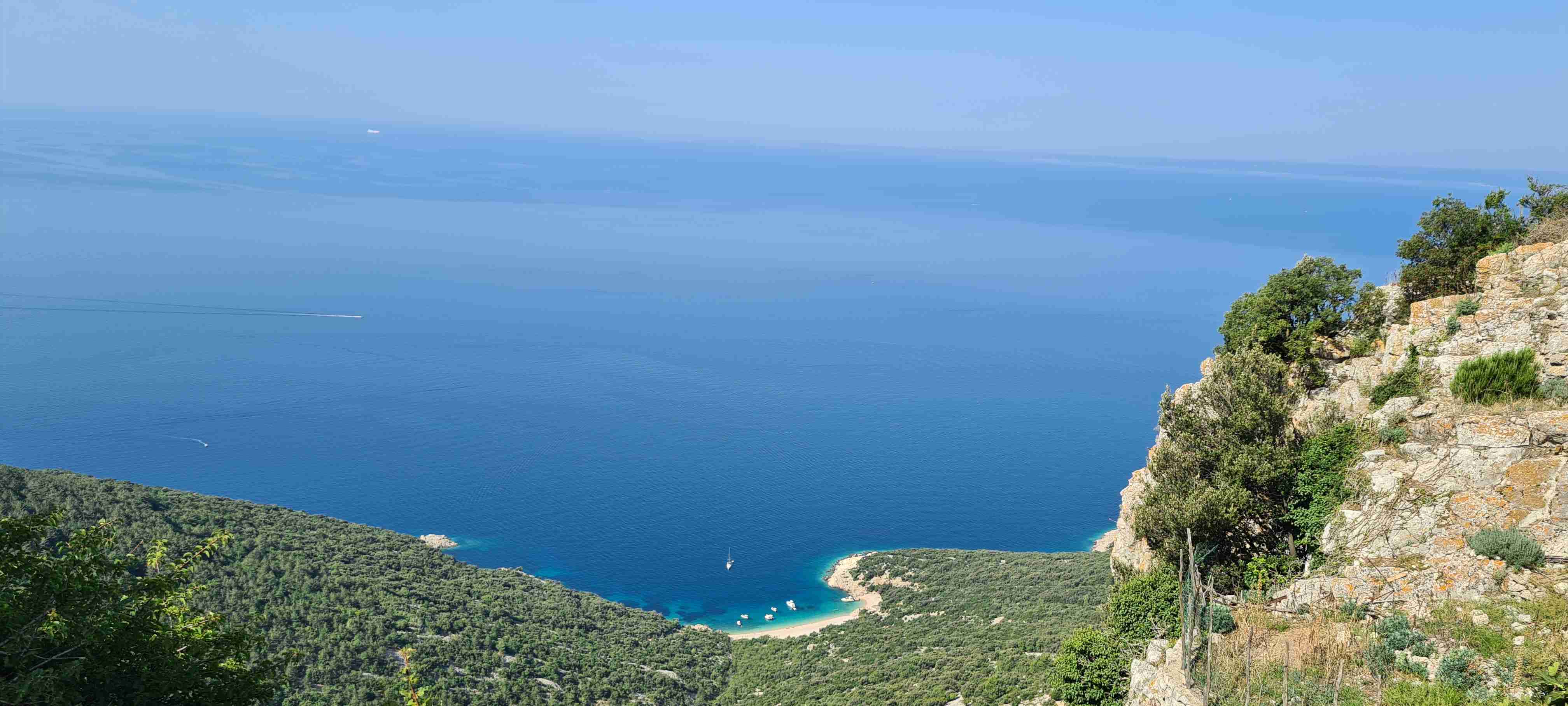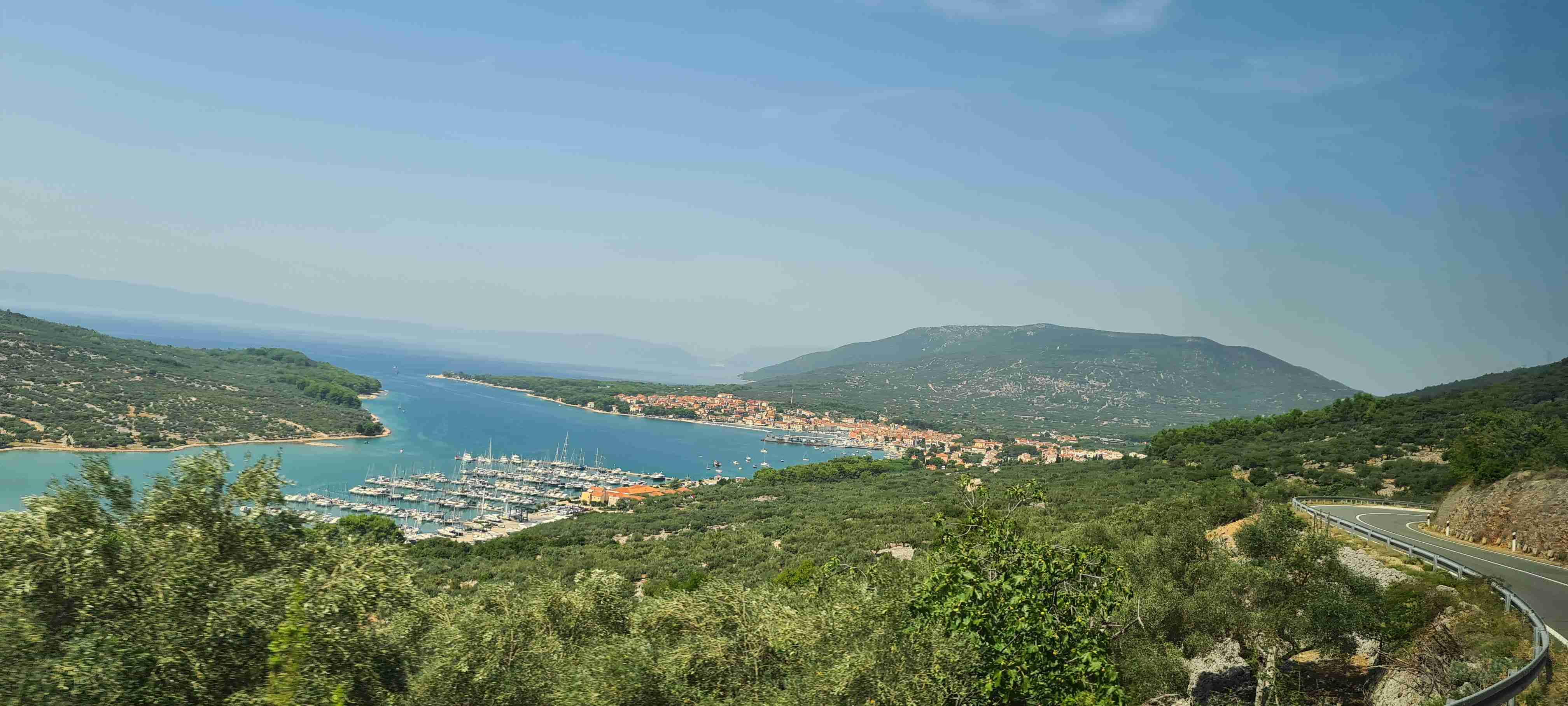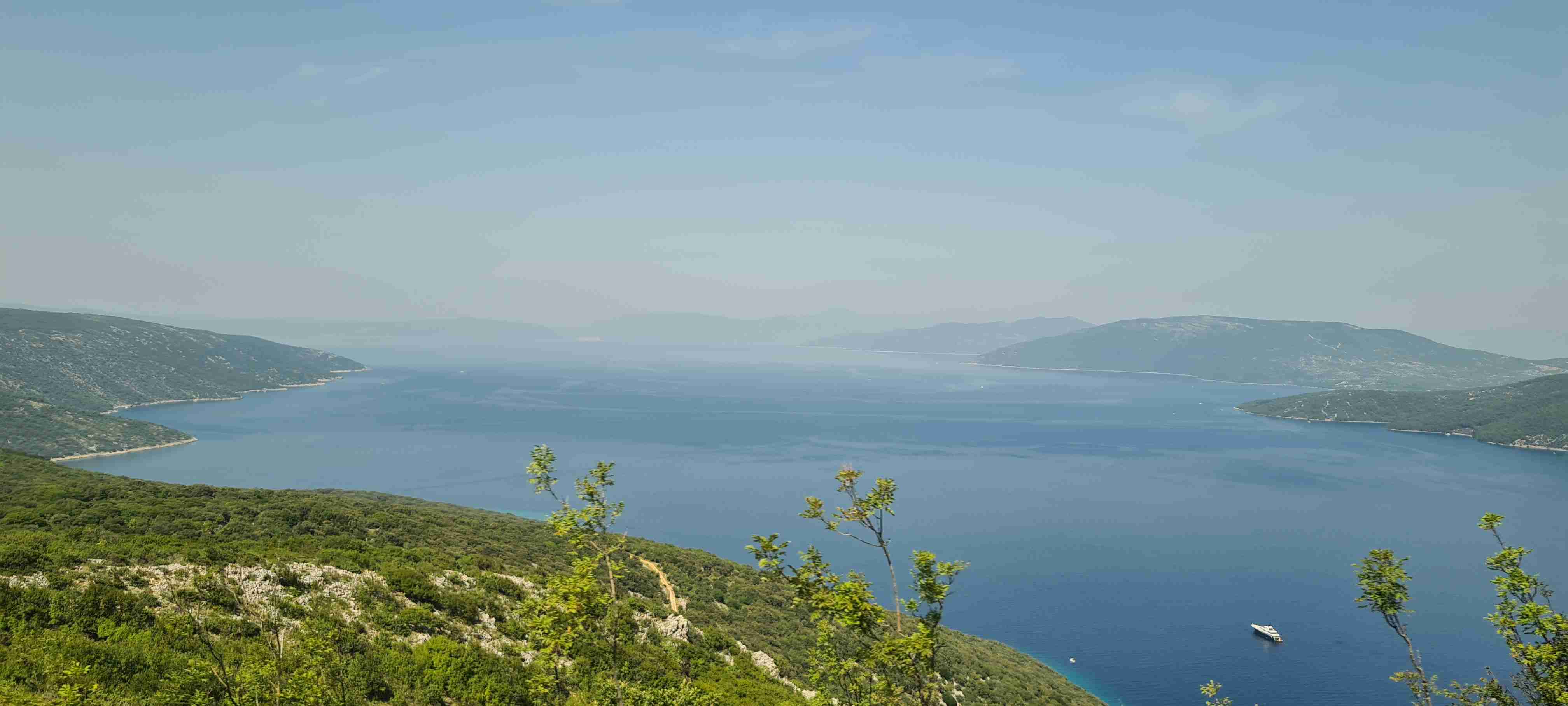 Z autobusu jsme vystoupili po necelé půlhodince jízdy na křižovatce nad obcí Valun a nejprve jsme zamířili do kopců, do nejvýše položené obce na Cresu, do Lubenice. Na 5 km jsme nastoupali přes 250 výškových metrů, abychom si dali v Lubenici pivo, udělali pár fotek obce i zálivu s pláží hluboko dole. Po odpočinku jsme sjeli zpět dolů k autobusu a kolem něj zamířili ještě níže do Valunu, který je břehu moře. Projeli jsme na konec, otočili se a vystoupali nahoru k autobusu. A opět vzhledem k teplotám a naší znalosti cesty, která vedla zase jen po silnici k hotelu, jsme po cca 15 km dnešní etapu ukončili, naložili se do autobusu a opět kolem 13. hodiny dorazili zpět na hotel. Tady jsme zopakovali včerejší scénář, hlavně rychle do moře.