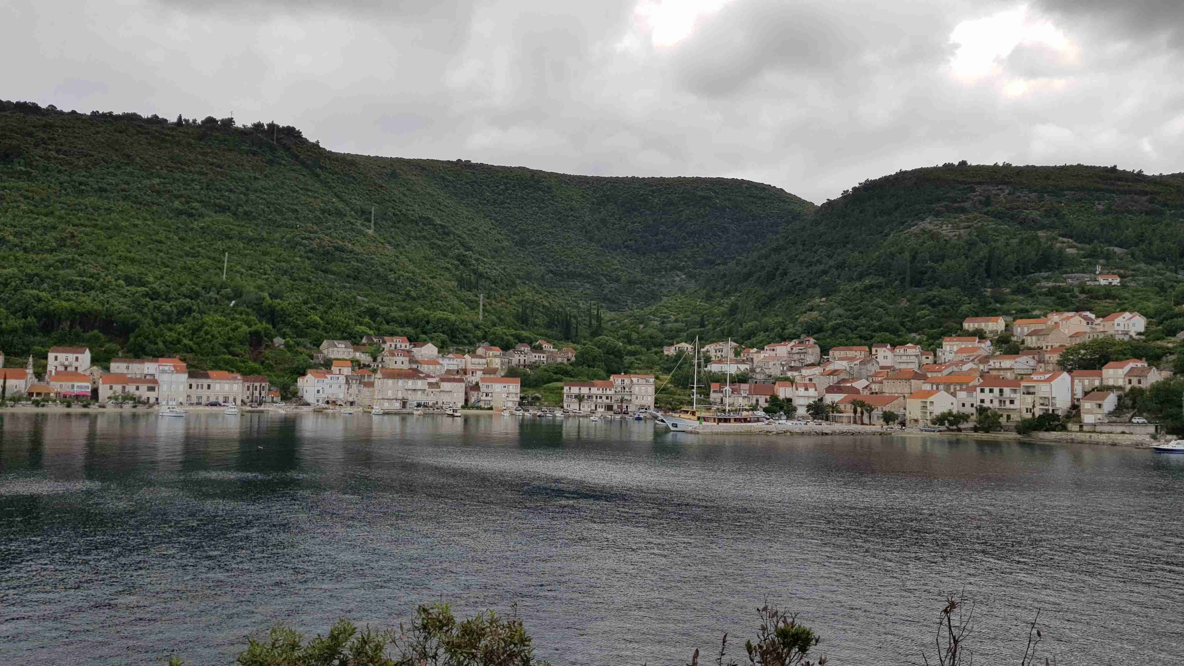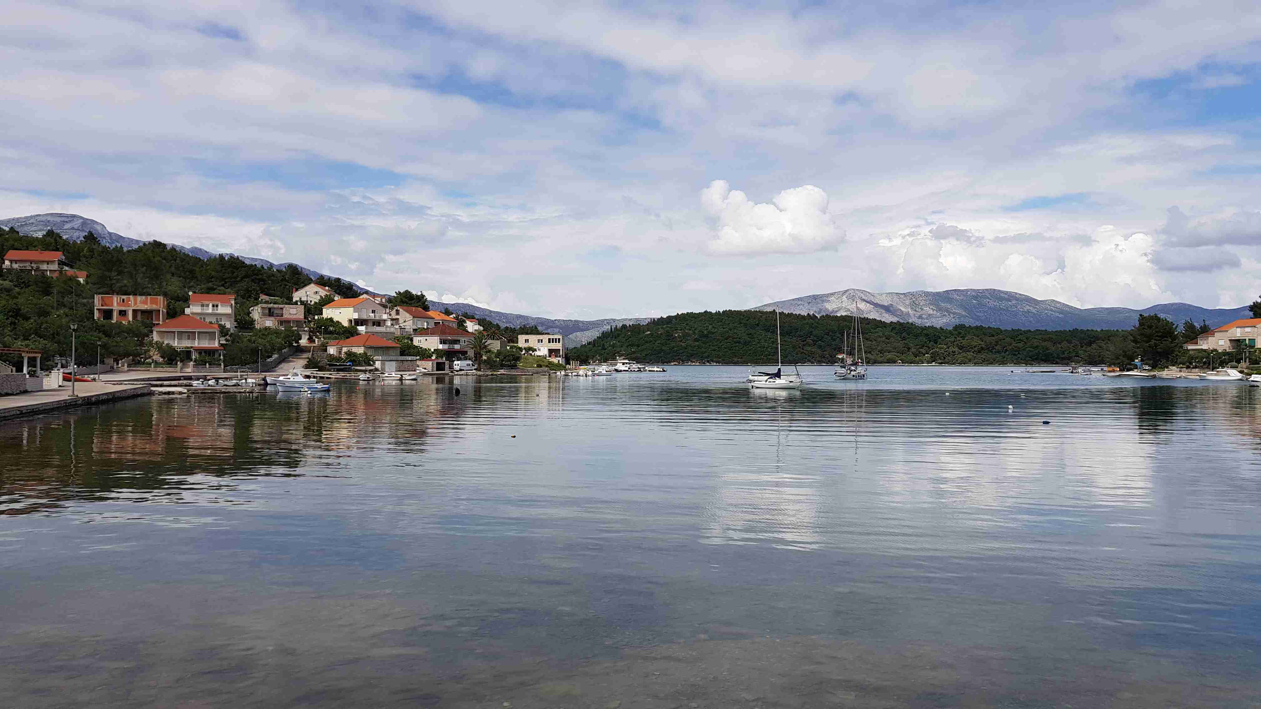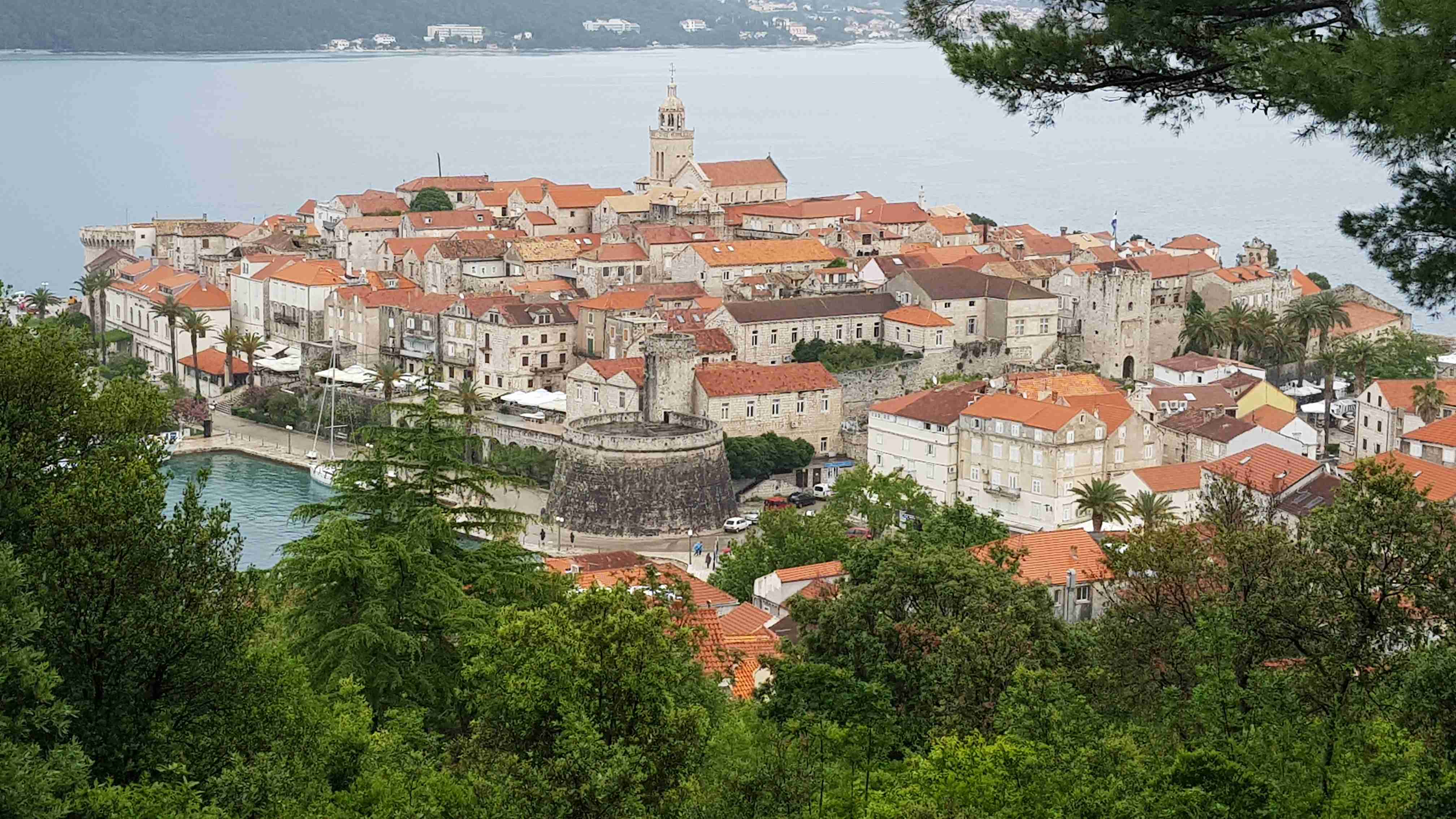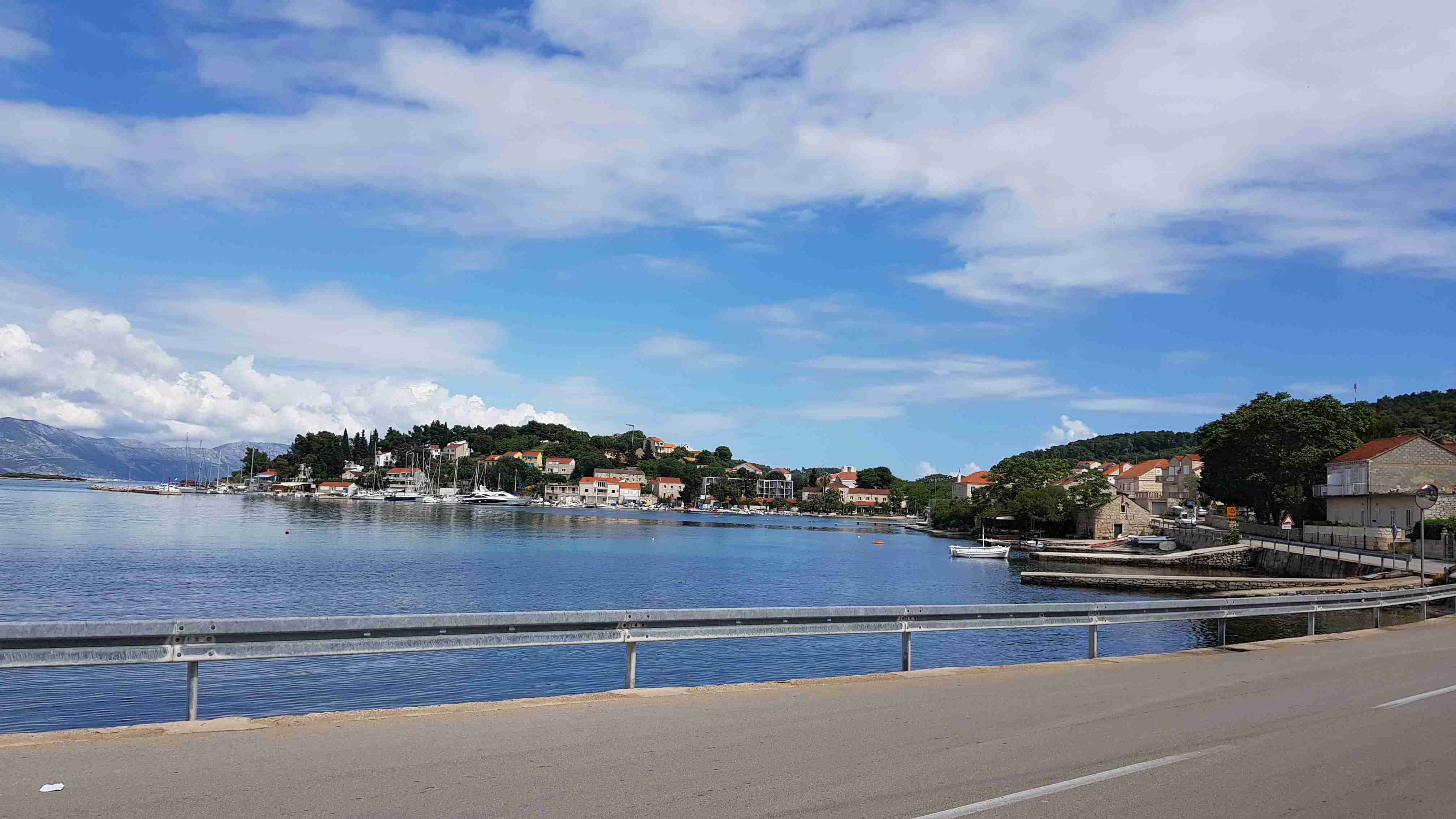 Ráno jsme autobusem zamířili opět na „Palouk“, tentokrát bez mlhy a deště a po vyložení kol jsme zamířili opět na Pupnat. Projeli jsme Pupnatem a na jeho konci najeli na silničku, která prudce klesala k severnímu pobřeží. Sjeli jsme k moři a ve vesničce Kněže jsme zabočili doleva na pobřežní silničku, která nás dovedla do Račišče, kde silnička končí. Tady jsme si dali sklenku vína, chvíli poseděli a vyrazili zpět, odkud jsme přijeli. Po zhruba čtvrthodince jízdy se spustil liják s takovou intenzitou, že než jsem si stihl obléct nepromokavou bundu, tak jsem byl skrz naskrz. Stáli jsme pod olivovníkem, který nám však téměř žádnou ochranu neposkytoval, a tak když polevil nejprudší déšť pokračovali jsme v cestě pobřežní silničkou směrem na město Korčula. Pršelo skoro celou cestu, přestalo až před Korčulou. Autobus byl zaparkovaný nad městem, dojeli jsme k němu a od něj jsme pak sjeli dolů do Korčuly, kde jsme si dali nejdříve sklenku vína a poté se projeli okružní silnicí po hradbách. Prošli jsme se kouskem starého města a pak vystoupali opět nad město, ale místo k autobusu jsme zamířili doleva do Lumbardy, kterou jsme také před 20 lety navštívili. V Lumbardě je velké kotviště jachet, udělali jsme si pár fotek a vrátili se zpět k zaparkovanému autobusu, který nás dopravil na hotel.