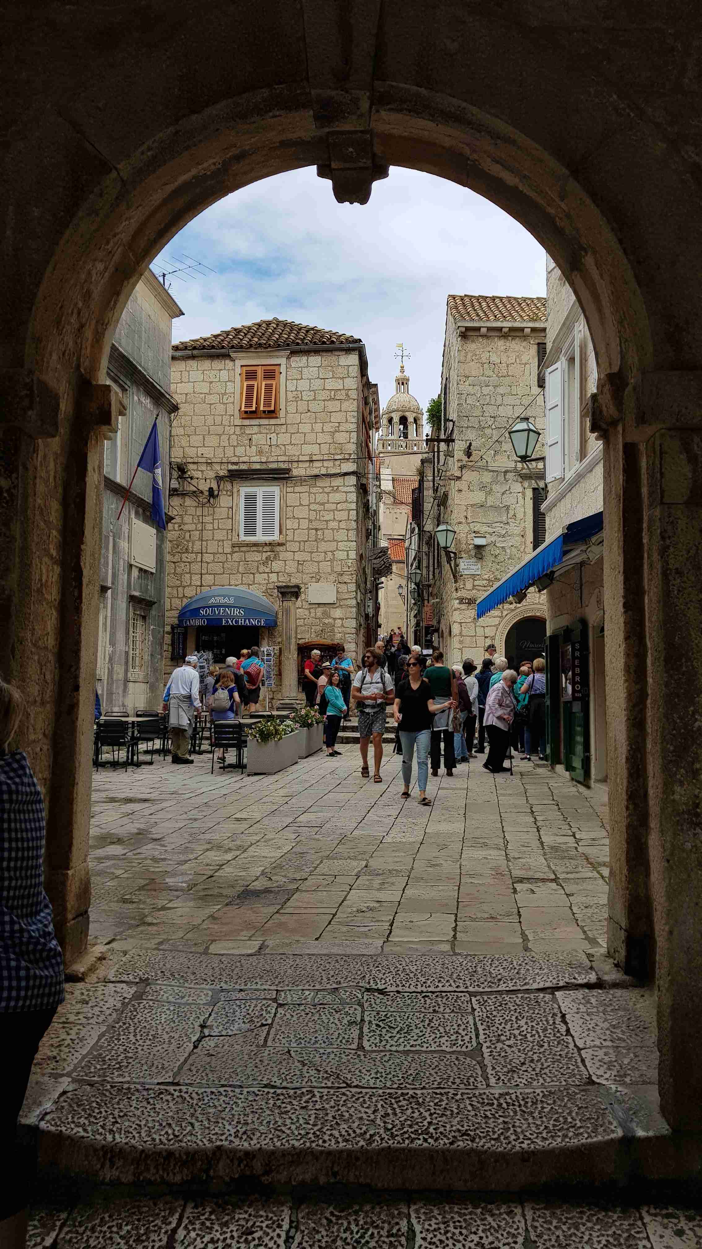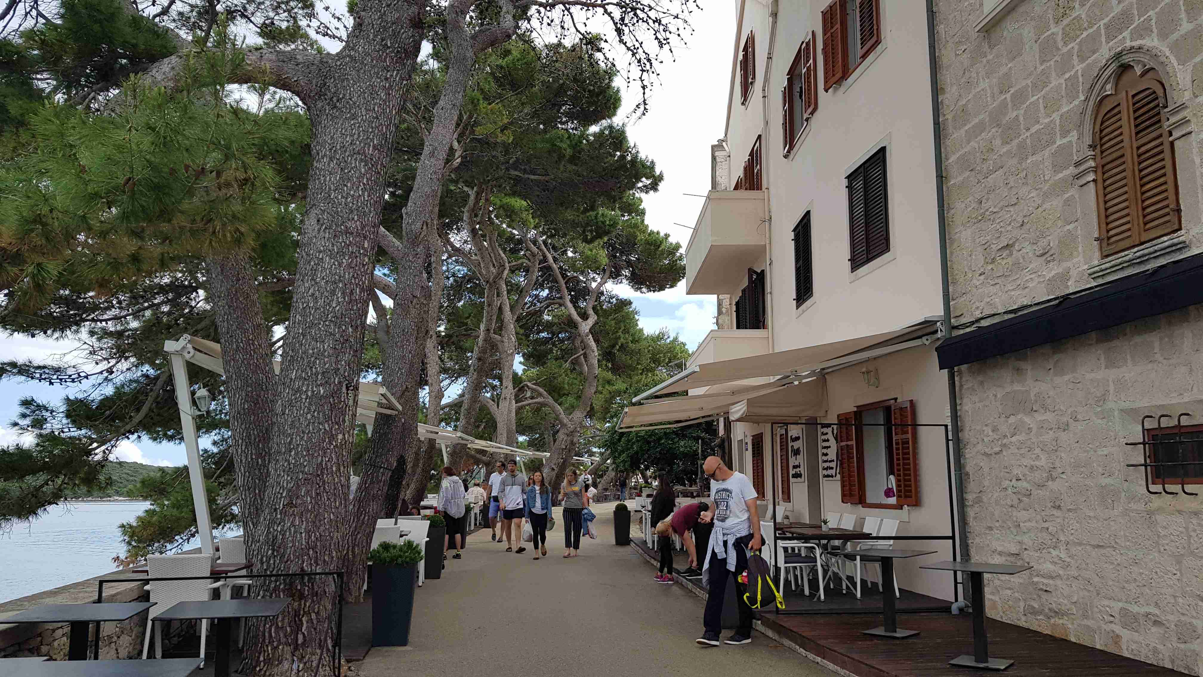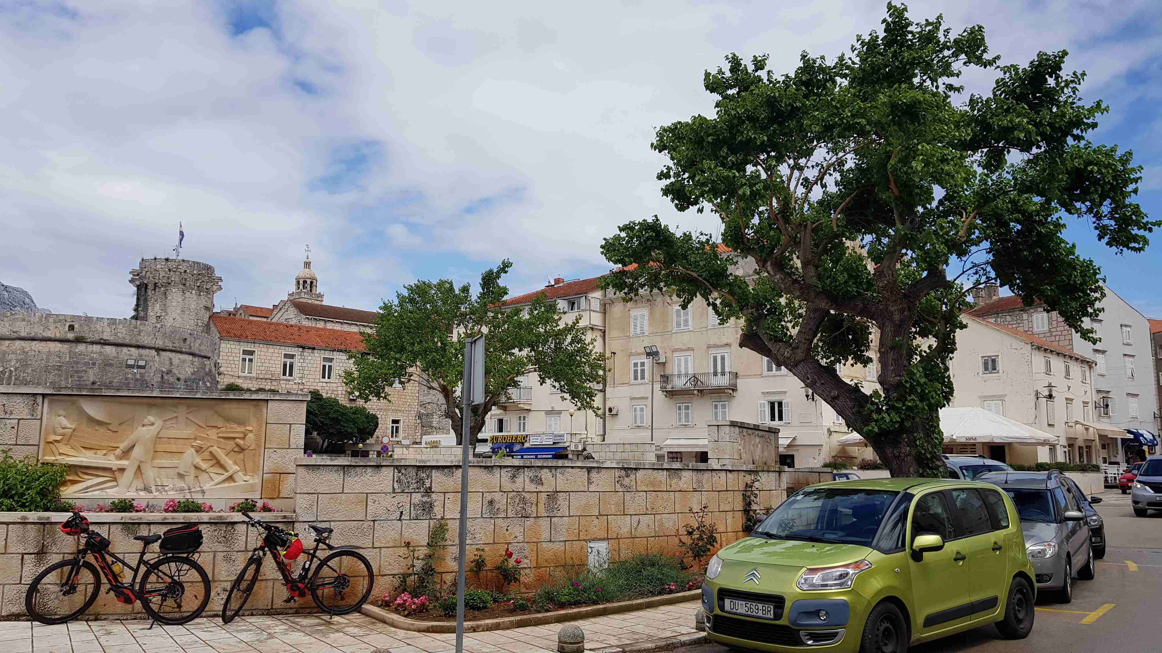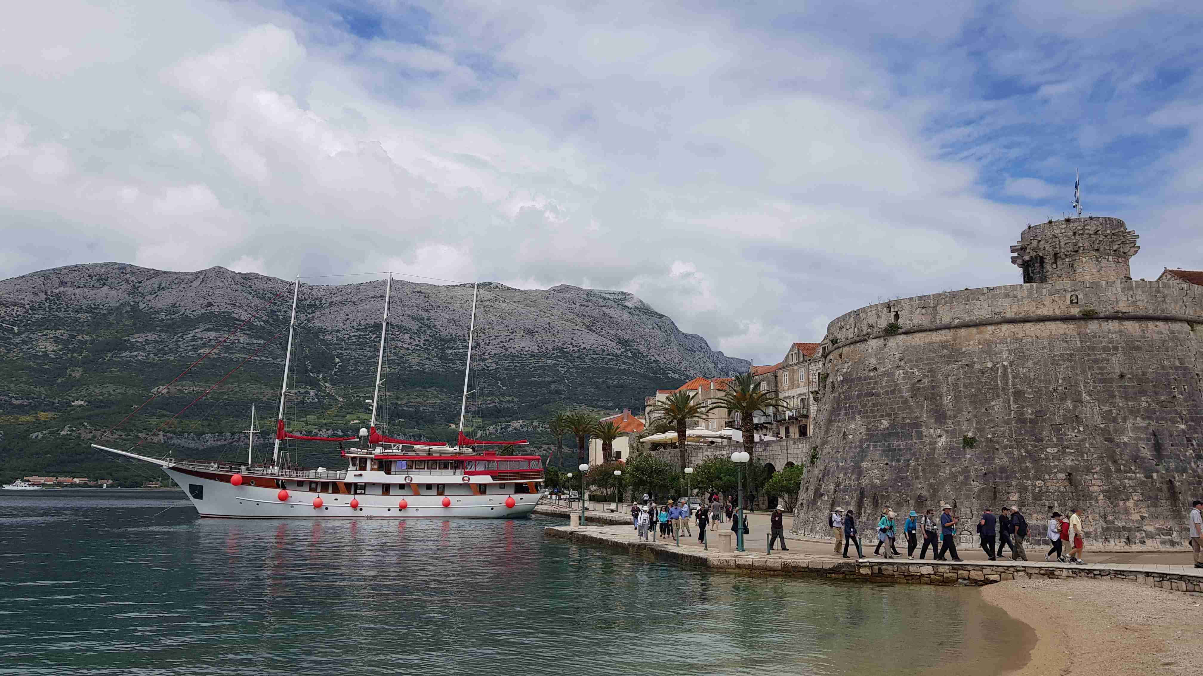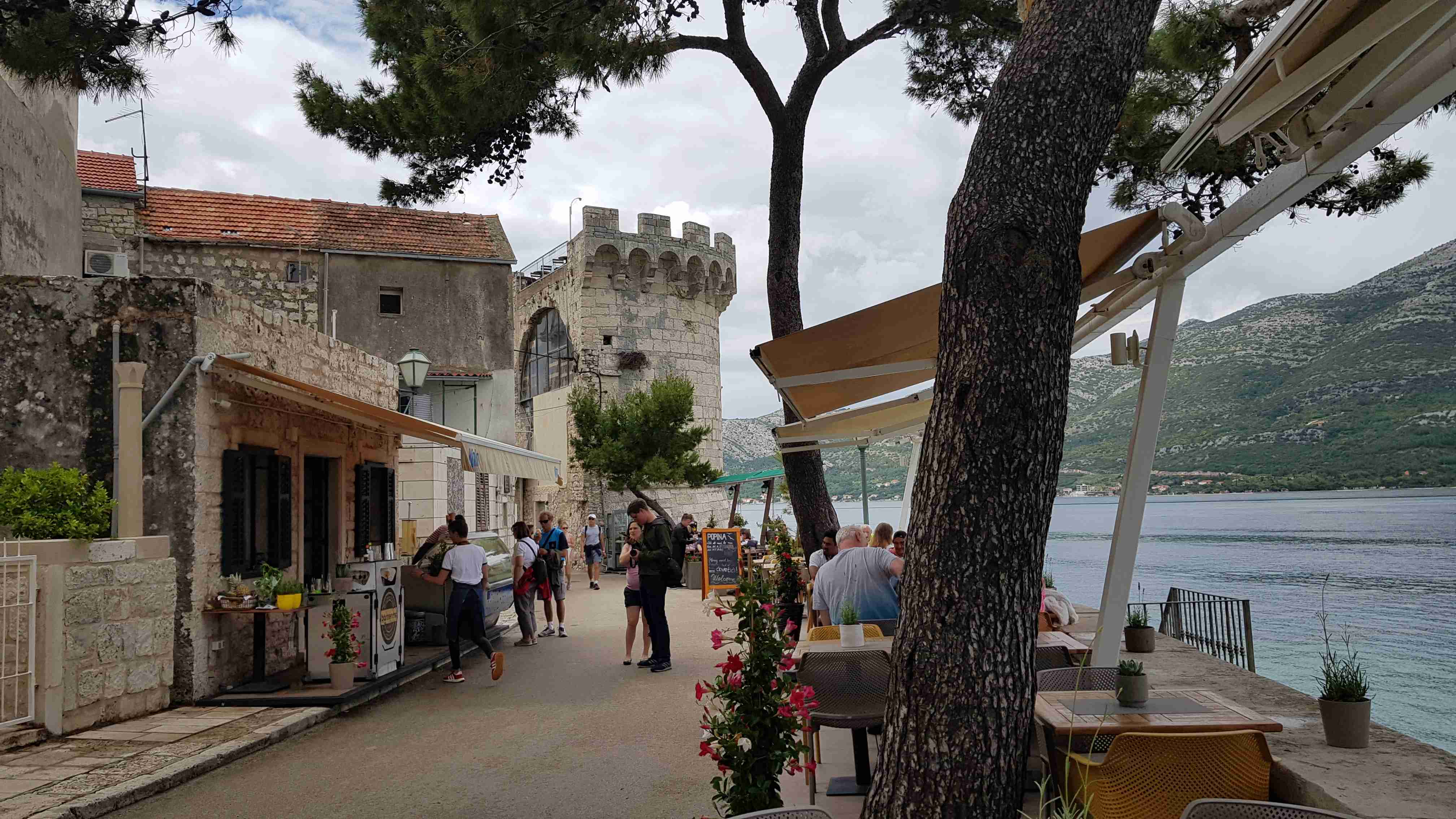 Ráno jsme autobusem zamířili opět na „Palouk“, tentokrát bez mlhy a deště a po vyložení kol jsme zamířili opět na Pupnat. Projeli jsme Pupnatem a na jeho konci najeli na silničku, která prudce klesala k severnímu pobřeží. Sjeli jsme k moři a ve vesničce Kněže jsme zabočili doleva na pobřežní silničku, která nás dovedla do Račišče, kde silnička končí. Tady jsme si dali sklenku vína, chvíli poseděli a vyrazili zpět, odkud jsme přijeli. Po zhruba čtvrthodince jízdy se spustil liják s takovou intenzitou, že než jsem si stihl obléct nepromokavou bundu, tak jsem byl skrz naskrz. Stáli jsme pod olivovníkem, který nám však téměř žádnou ochranu neposkytoval, a tak když polevil nejprudší déšť pokračovali jsme v cestě pobřežní silničkou směrem na město Korčula. Pršelo skoro celou cestu, přestalo až před Korčulou. Autobus byl zaparkovaný nad městem, dojeli jsme k němu a od něj jsme pak sjeli dolů do Korčuly, kde jsme si dali nejdříve sklenku vína a poté se projeli okružní silnicí po hradbách. Prošli jsme se kouskem starého města a pak vystoupali opět nad město, ale místo k autobusu jsme zamířili doleva do Lumbardy, kterou jsme také před 20 lety navštívili. V Lumbardě je velké kotviště jachet, udělali jsme si pár fotek a vrátili se zpět k zaparkovanému autobusu, který nás dopravil na hotel.