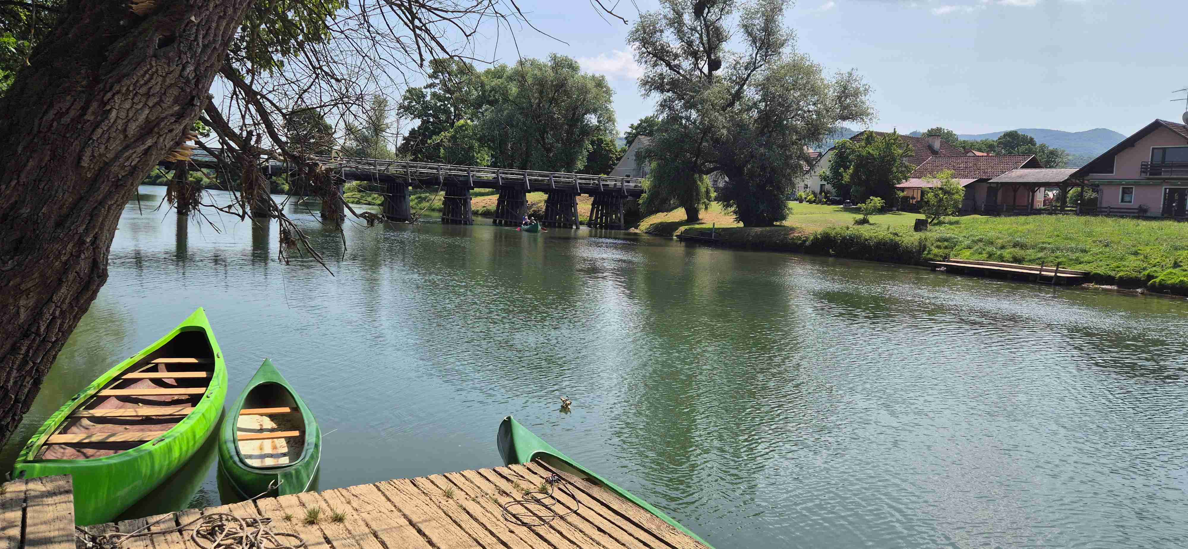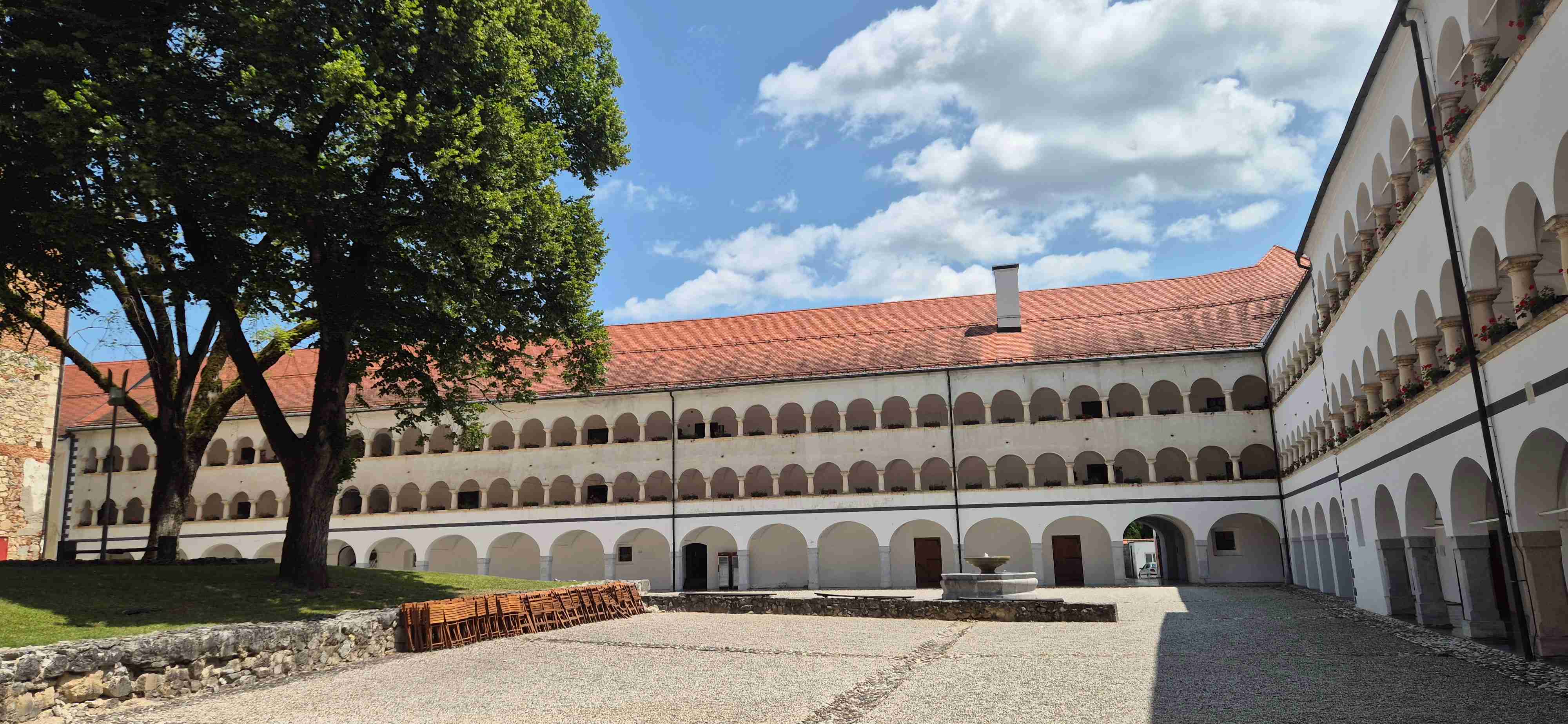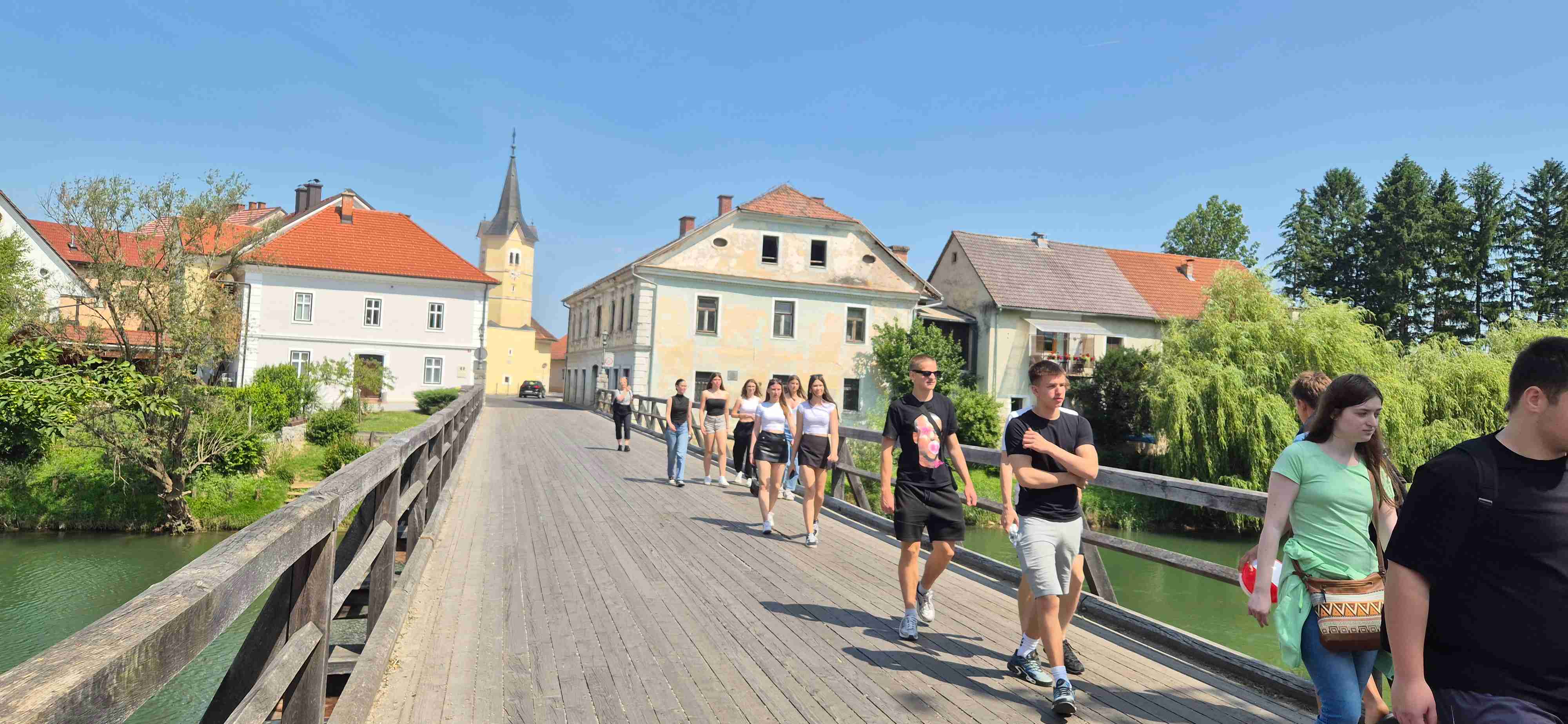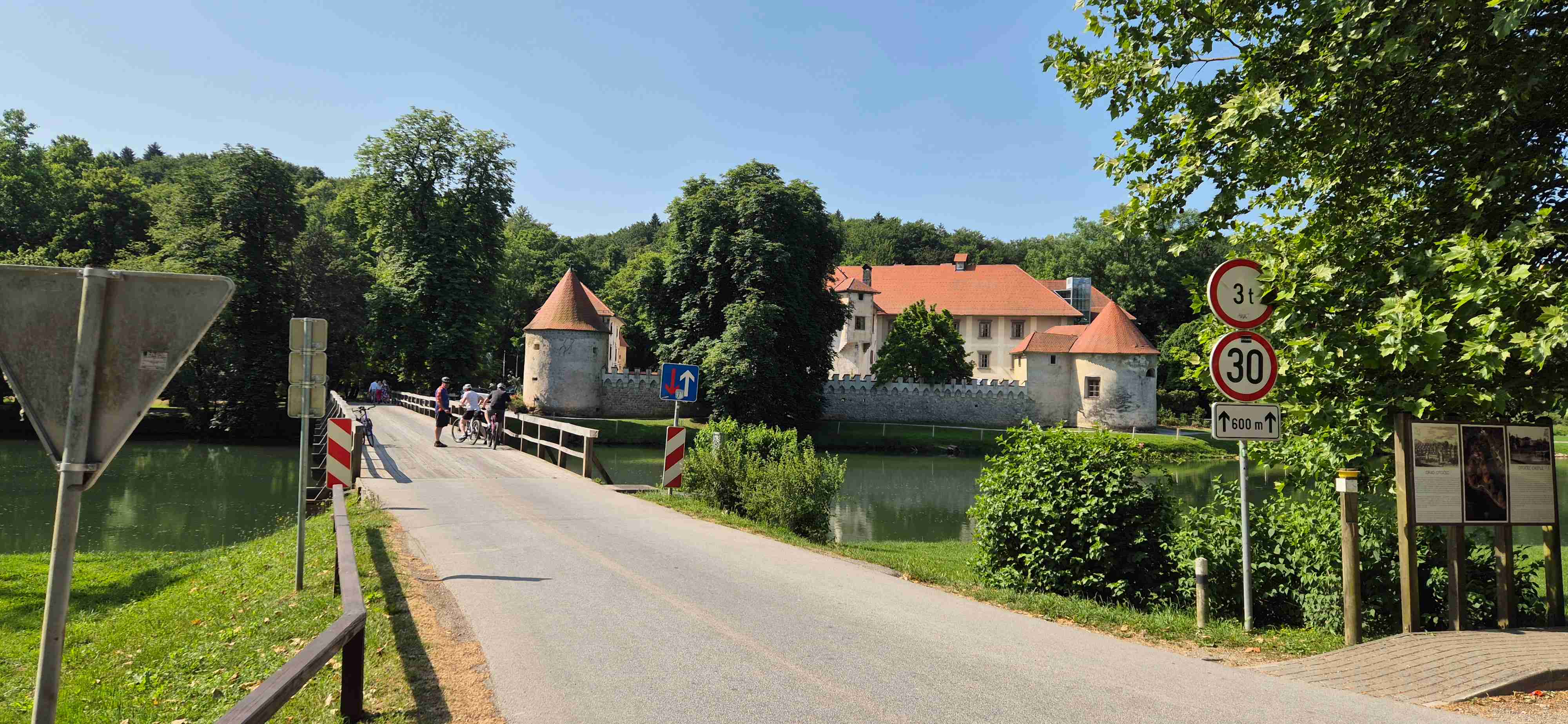 Den bez autobusu, na kola jsme vyrazili před desátou od hotelu. Sjeli jsme k řece Krka a kolem hradu Otočec, který je na ostrově uprostřed řeky, jsme po mostech přejeli na druhý břeh a začali jsme stoupat. Prvních cca 12 km bylo kopcovitých, zbytek z kopce či po rovině s výjimkou jednoho stoupání těsně před koncem. Zhruba v polovině trasy jsme dojeli do historického městečka Kostanjevica na Krki, které také z části leží na ostrově. Tady jsme si dali pivečko a zbytek naší party i pizzu a tu já nemusím. Po pauze jsme ještě zajeli ke klášteru, kde je dnes galerie a snad opět i mniši. Zpáteční cesta kopírovala řeku, kolem 14. hodiny jsme dorazili opět do šoférské hospody pár set metrů od hotelu, kde jsme si dali pivo. A pak již k hotelu odevzdat kola k naložení a ještě před večeří jsme stihli i bazén. Najeto cca 50 km v tropickém počasí.