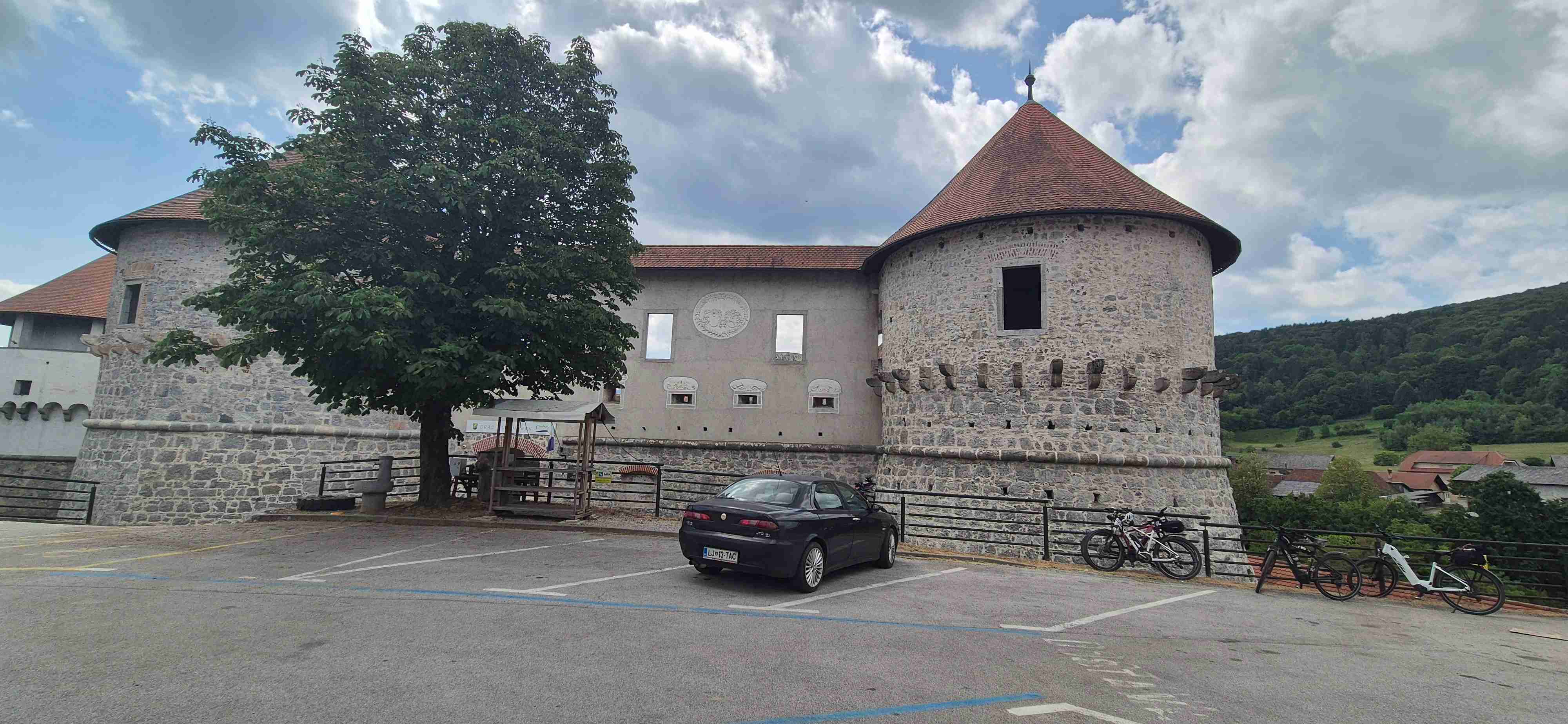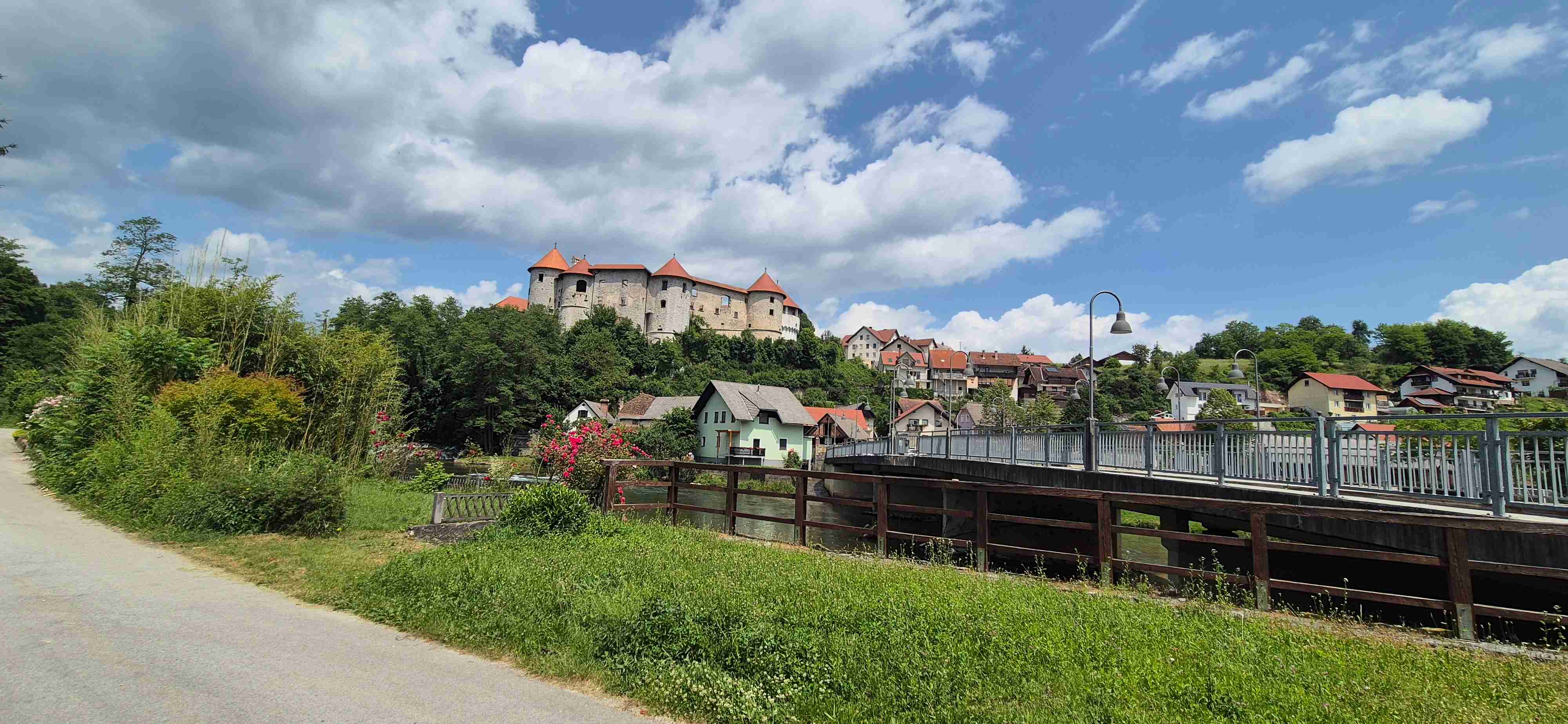 Jenom půl hodiny jsme ráno jeli autobusem do obce Trebnje odkud jsme před desátou vyrazili na kolech. Asi po hodině jsme dojeli do Žužemberku, kde jsme zastavili u stejnojmenného hradu, udělali jsme pár fotek, dali pivečko v přilehlé hospodě a poté jsme sjeli dolů k řece Krka a zbytek etapy jsme víceméně kopírovali její tok. Další zastávka byla v Novom Mestě v hospodě pod mostem, kterou jsme ve čtvrtek minuli. Pak již zbývalo cca 10 km na hotel, ale ještě jsme se kousek od hotelu již obligátně zastavili v šoférské hospodě, kde jsme dnešek ukončili. V opět tropickém vedru najeto něco přes 50 km.
