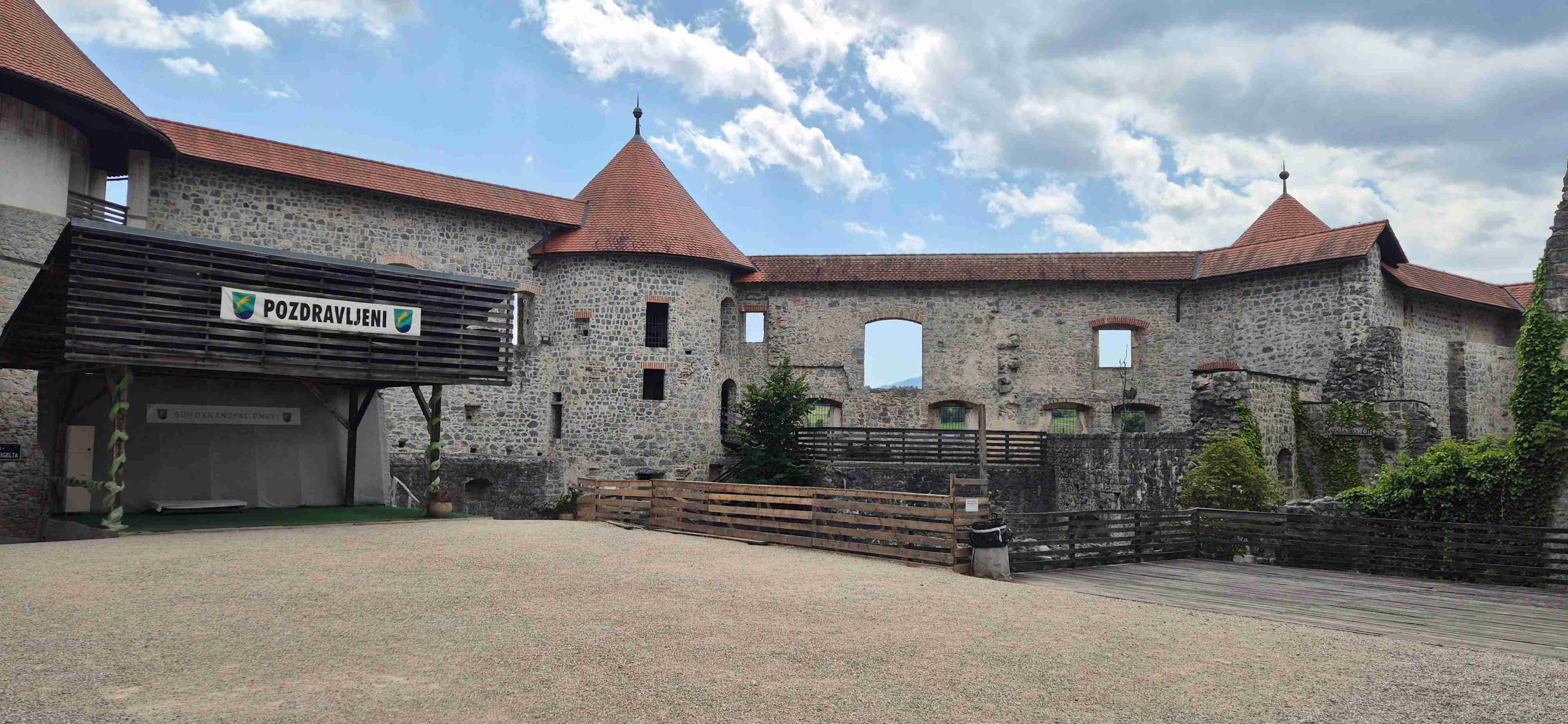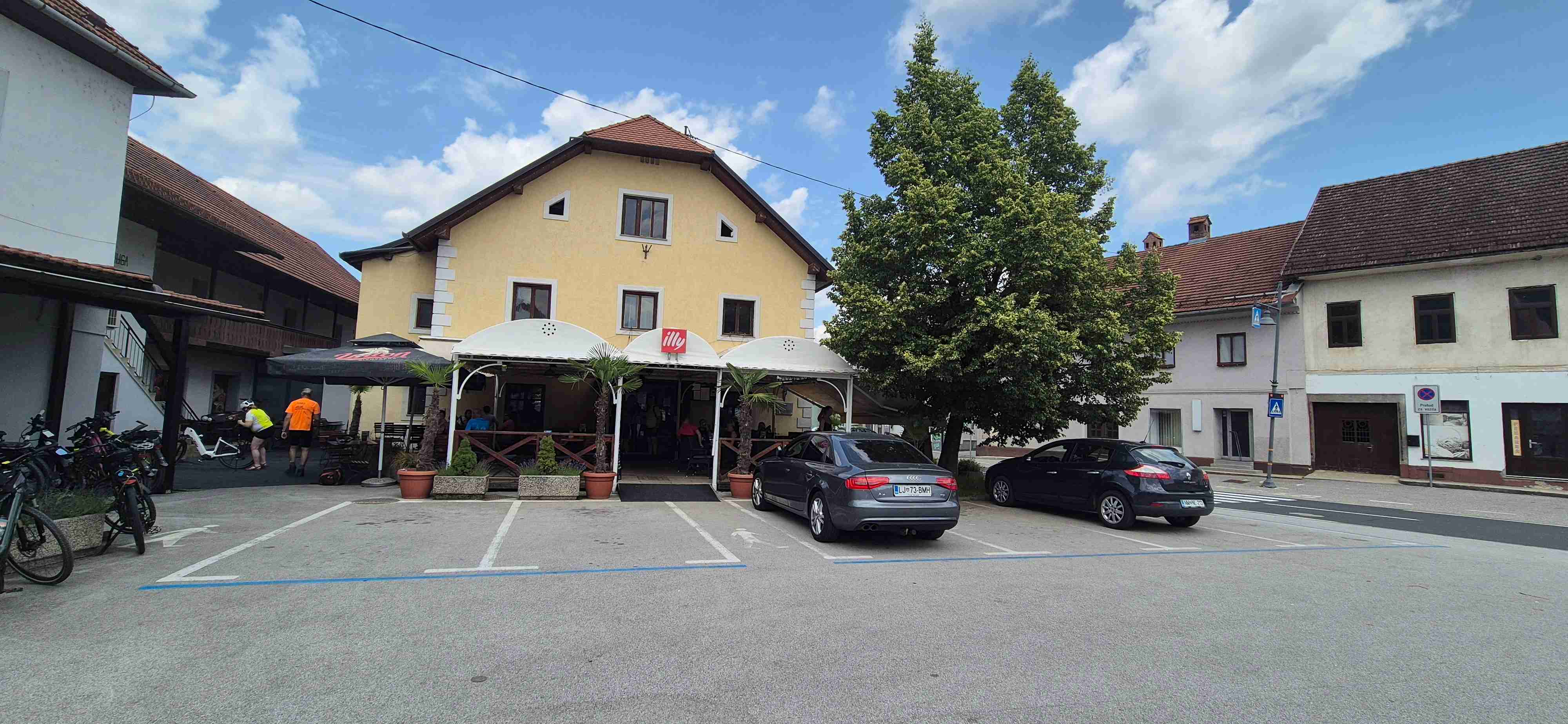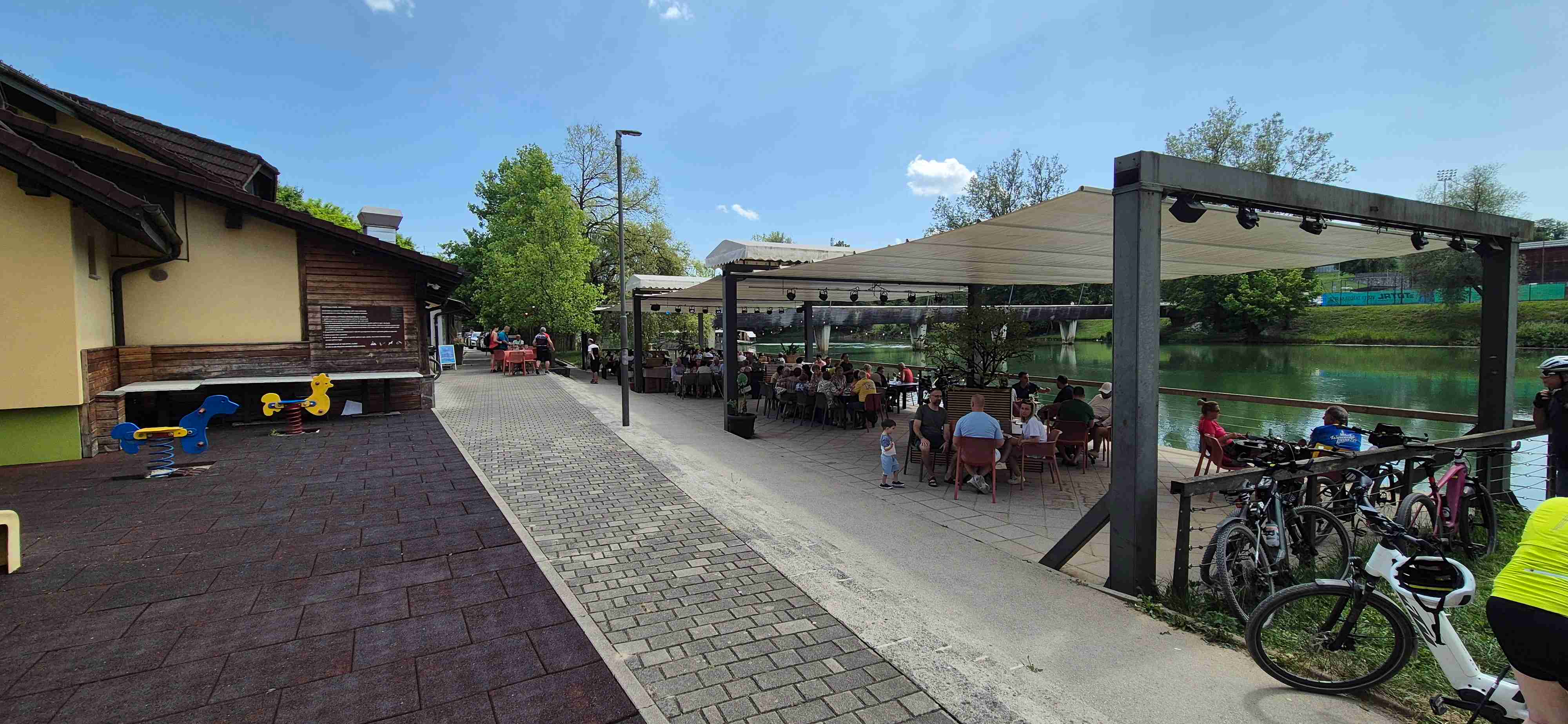 Jenom půl hodiny jsme ráno jeli autobusem do obce Trebnje odkud jsme před desátou vyrazili na kolech. Asi po hodině jsme dojeli do Žužemberku, kde jsme zastavili u stejnojmenného hradu, udělali jsme pár fotek, dali pivečko v přilehlé hospodě a poté jsme sjeli dolů k řece Krka a zbytek etapy jsme víceméně kopírovali její tok. Další zastávka byla v Novom Mestě v hospodě pod mostem, kterou jsme ve čtvrtek minuli. Pak již zbývalo cca 10 km na hotel, ale ještě jsme se kousek od hotelu již obligátně zastavili v šoférské hospodě, kde jsme dnešek ukončili. V opět tropickém vedru najeto něco přes 50 km.