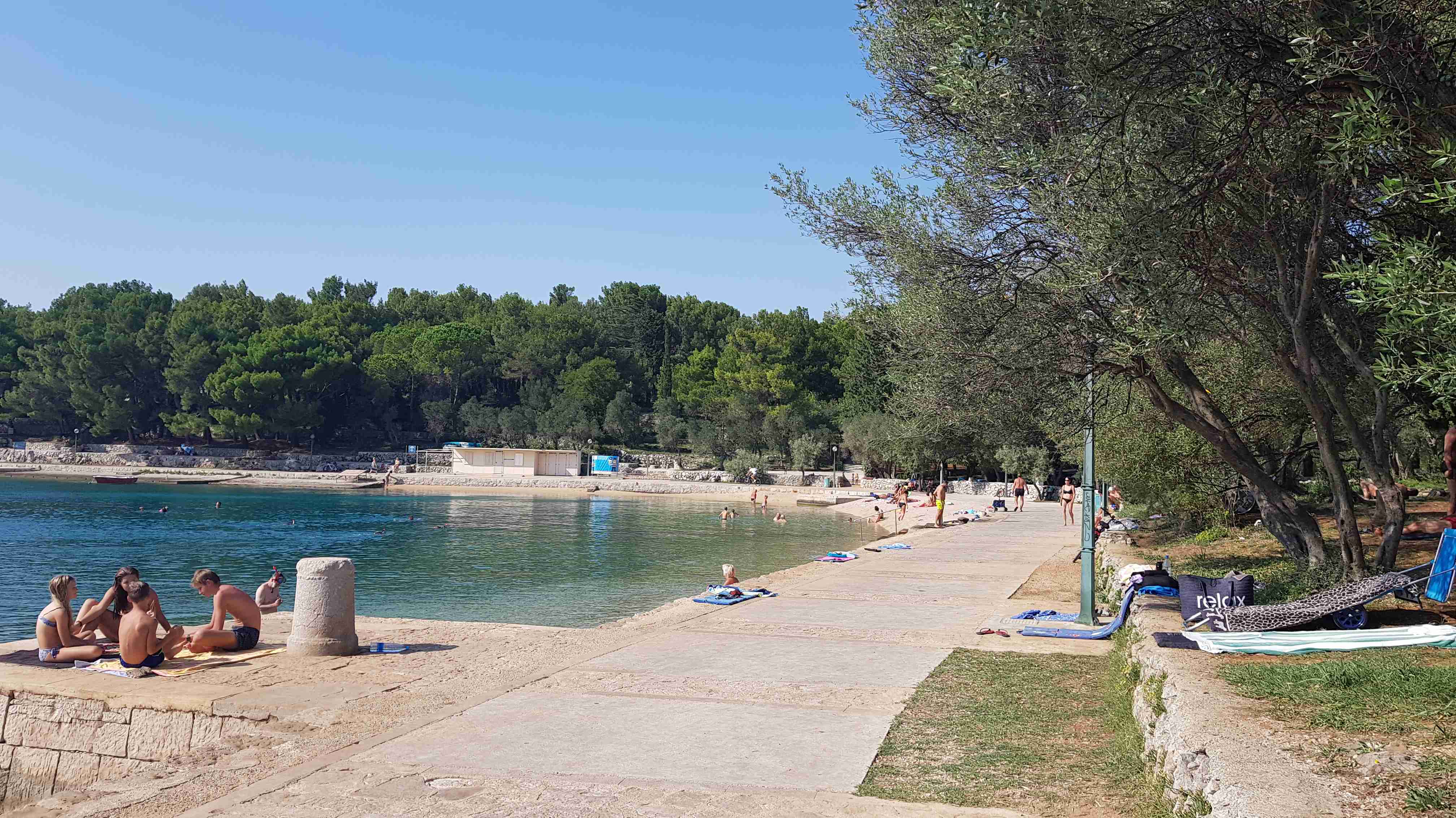 Neděle byla volným dnem, každý si mohl udělat svůj vlastní program. Po deváté jsme si vyzvedli kola u autobusu, zamkli je u hotelu a já odkráčel do moře. Dopoledne jsem strávil u vody, odpoledne jsme pak vzali kola a po pobřeží projeli nejprve Cres a potom celý záliv, kam až to šlo. Bylo pouhých 15 km, po návratu na hotel následovalo opět koupání v moři. No prostě neděle jak má být.