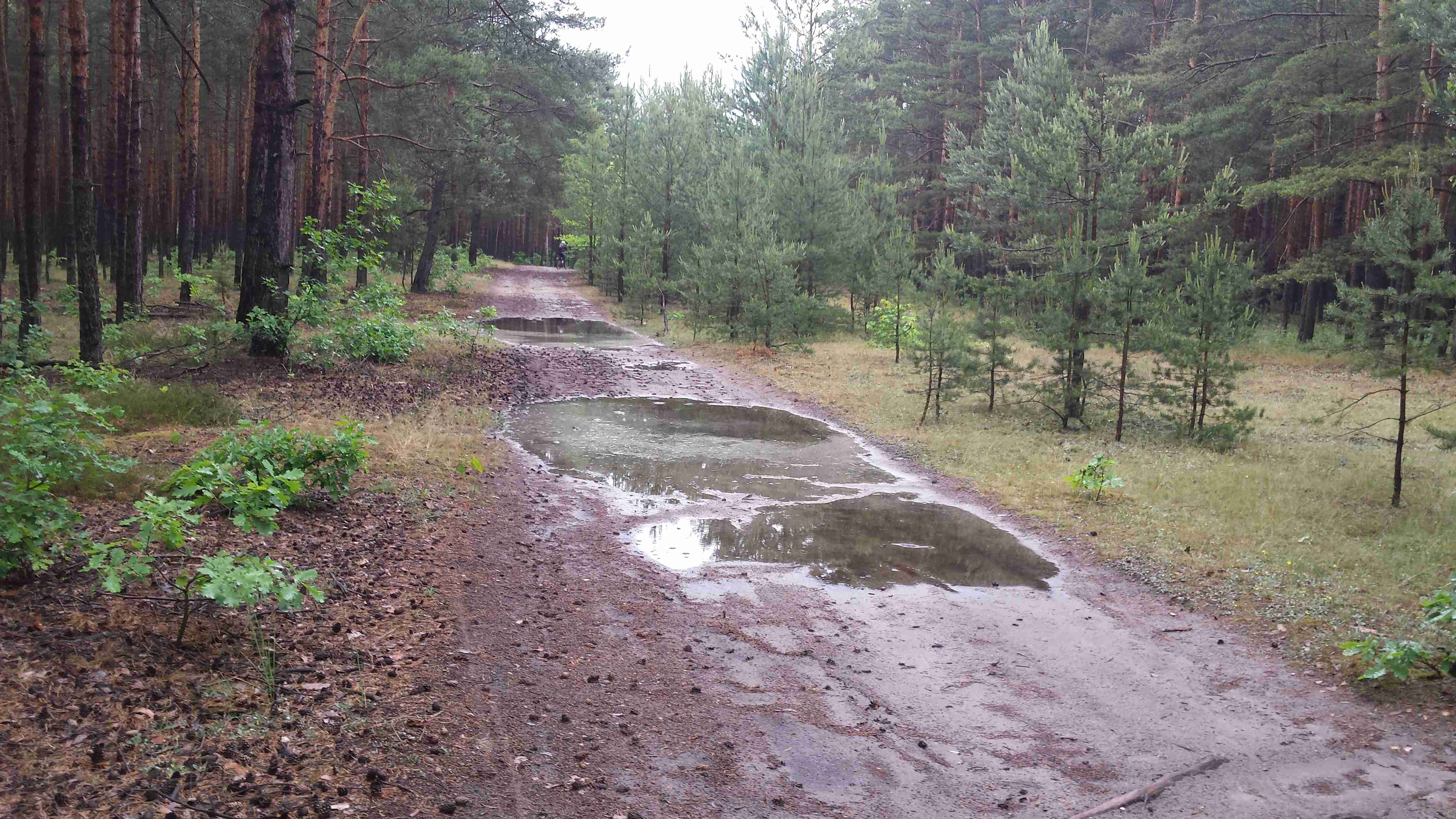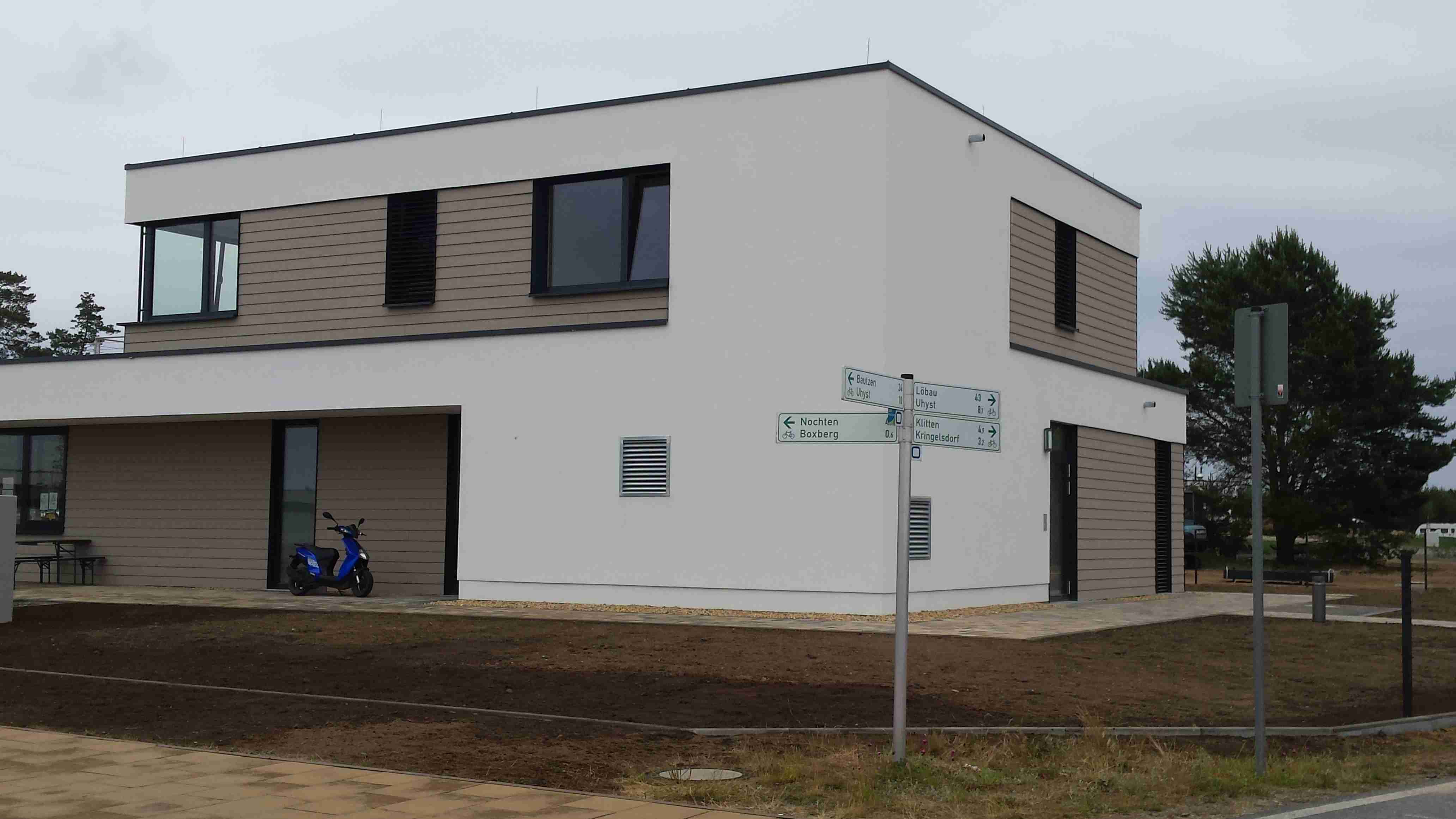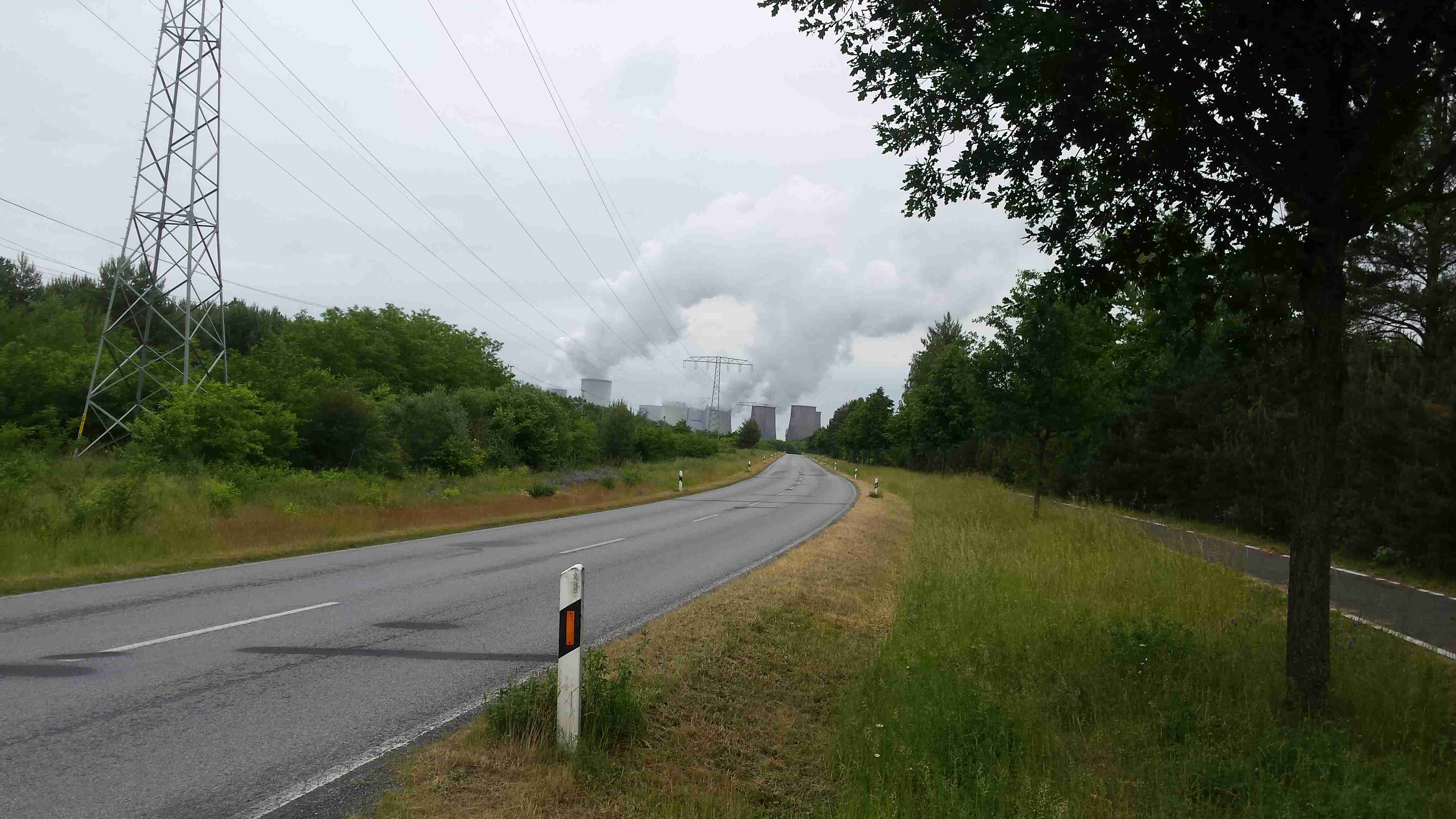 Na snídani jsme vyrazili už v půl osmé, ale spěchat jsme nemuseli - podle předpovědi bylo zhruba o 15°c méně než včera a zataženo. Během snídaně několikrát pršelo a tak jsme se na srazu v 9 hodin rozhodli se sejít v 10 hodin. To už bylo po dešti a tak jsme vše naložili do mikrobusu a vydali se na cestu - dvě děvčata volila jižnější trasu a my zbylí jsme se pod vedením Lubora vydali na severní variantu. Projeli jsme nové město - hornické sídliště ze 70. let a po pár kilometrech jsme dojeli k jezeru Scheibe See a téměř celý severní břeh jsme objeli. Na úrovni Burgu jsme zamířili na sever, projeli Burgem a dojeli k jezeru Bernsteinsee. Podél břehu jsme dojeli do Burghammeru, vzápětí do Burgneudorfu a kousek za ním jsme se stočili na východ a místy podél řeky Sprévy jsme dojeli do Neustadtu. Měli jsme za sebou téměř 20 km bez většího zastavení a tak jsme zvolili občerstvení v pěkné velké restauraci - pivo a řízek s bramborovým saláte. Všem chutnalo a zhruba po hodince jsme pokračovali v cestě. Cyklostezka vedla podél silnice, vpravo jsme měli nějaký vojenský prostor, vepředu v dáli se rýsovalz chladící věže elektrárny Boxberg. V obci Sprey, kousek od jezera Bärwalder See, se nám ztratil Pavel s děvčetem a tak jsme jezero objížděli pouze s Luborem. Na severním břehu bylo přístaviště a různé zázemí včetně informačního střediska, udělali jsme pár fotek a objížděli jsme jezero po východním břehu po kvalitní asfaltové cyklostezce. Pohodovou jízdou jsme dojeli až na jižní břeh u města Uhyst, kde kousek od pláží čekal Honza s mikrobusem, stejně jako vloni byl autobus. Dorazili jsme kolem 15. hodiny po necelých 50 km a protože jsme měli ještě čas do odjezdu, zašli jsme do stánku na pláži na pivo a kafe. Postupně do stánku dorazili i ostatní, dali si něco k jídlu, u mikrobusu jsme pak udělali závěrečné foto, dopili naší meruňkovici a po půl páté vyrazili k domovu. Do Ústí jsme dojeli krátce po čtvrt na sedm, na zprávy jsme byli doma. Místo na gauči jsme strávili víkend v sedle kola ve společnosti příjemných lidí.