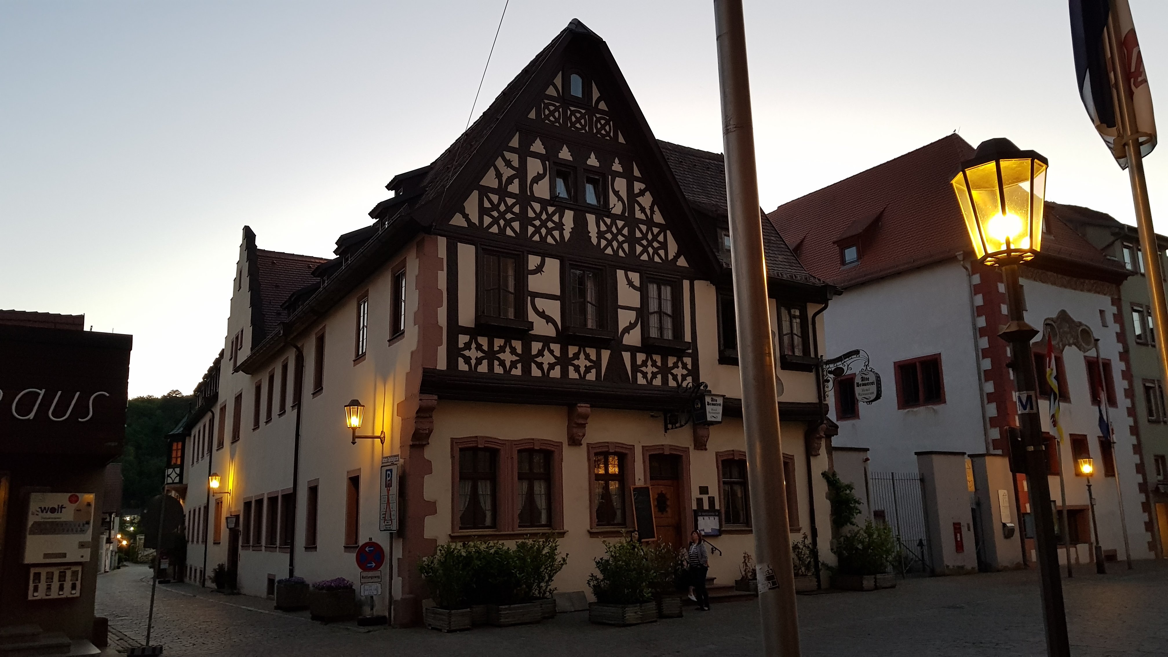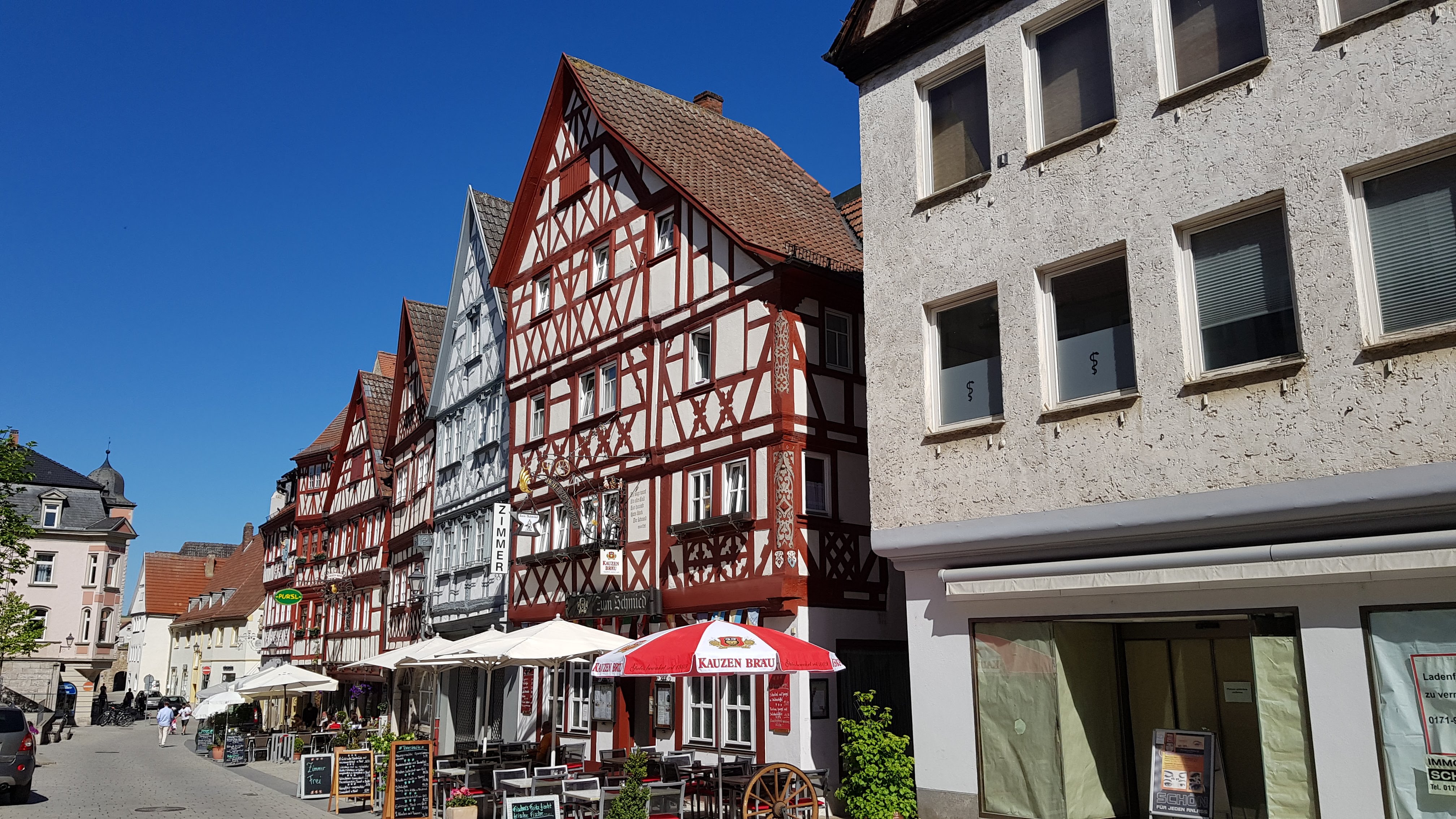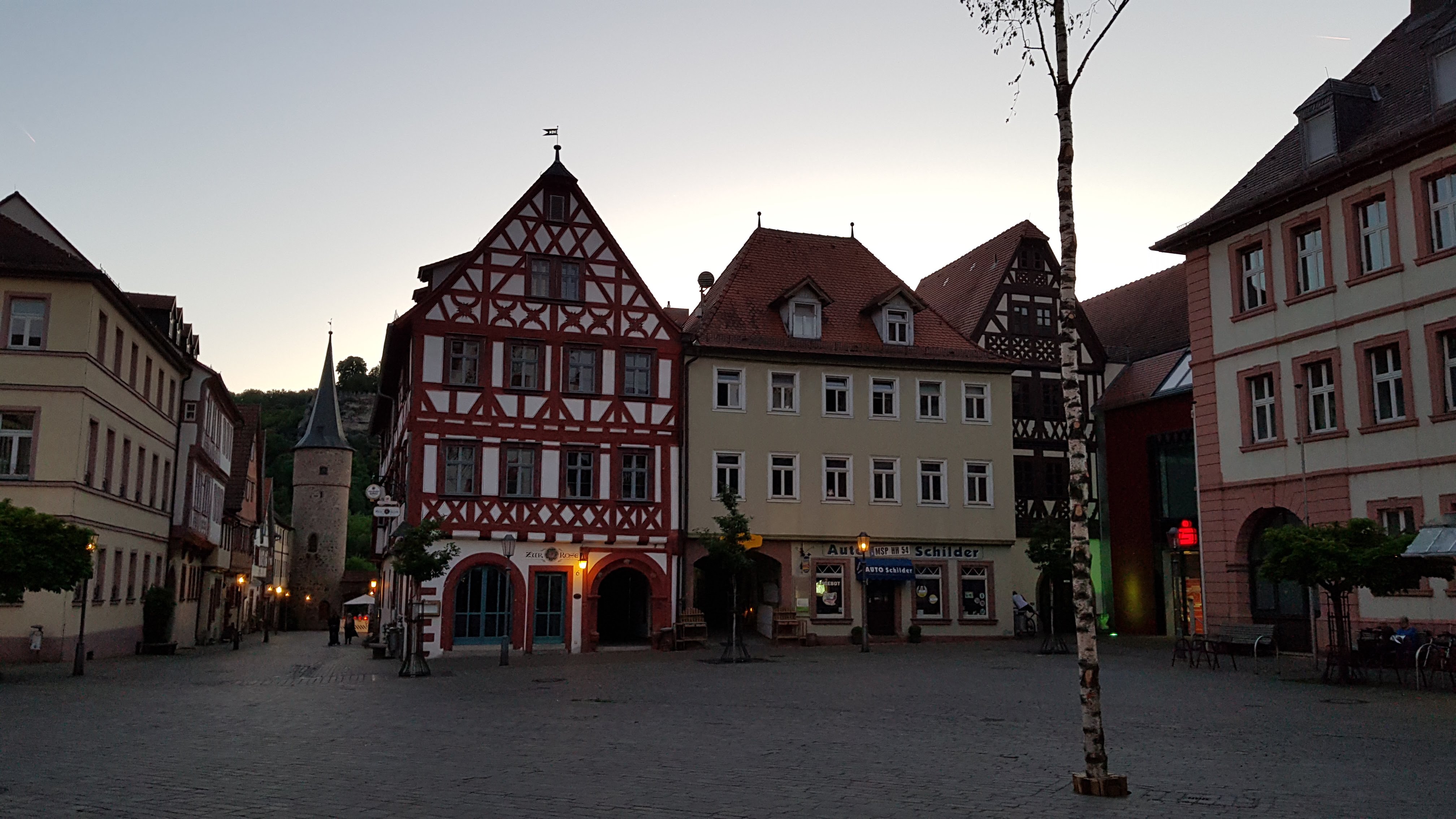 Dnešní cesta podél řeky Mohan nás zavedla nejprve do Ochsenfurtu a kolem poledne jsme dorazili do historického Würzburgu. Tam jsme se na břehu v restauraci pod platany naobědvali a poté vyrazili dál až do Karlstadtu, kam jsme po 56 km dorazili po 17. hodině a ubytovali jsme se v hotelu Alte Brauerei. Počasí nádhera. Abych nezapomněl, ráno jsem ještě stihnul v Marktbreitu nafotit rodný dům Aloise Alzheimera, který byl v ulici, kde jsme nocovali.