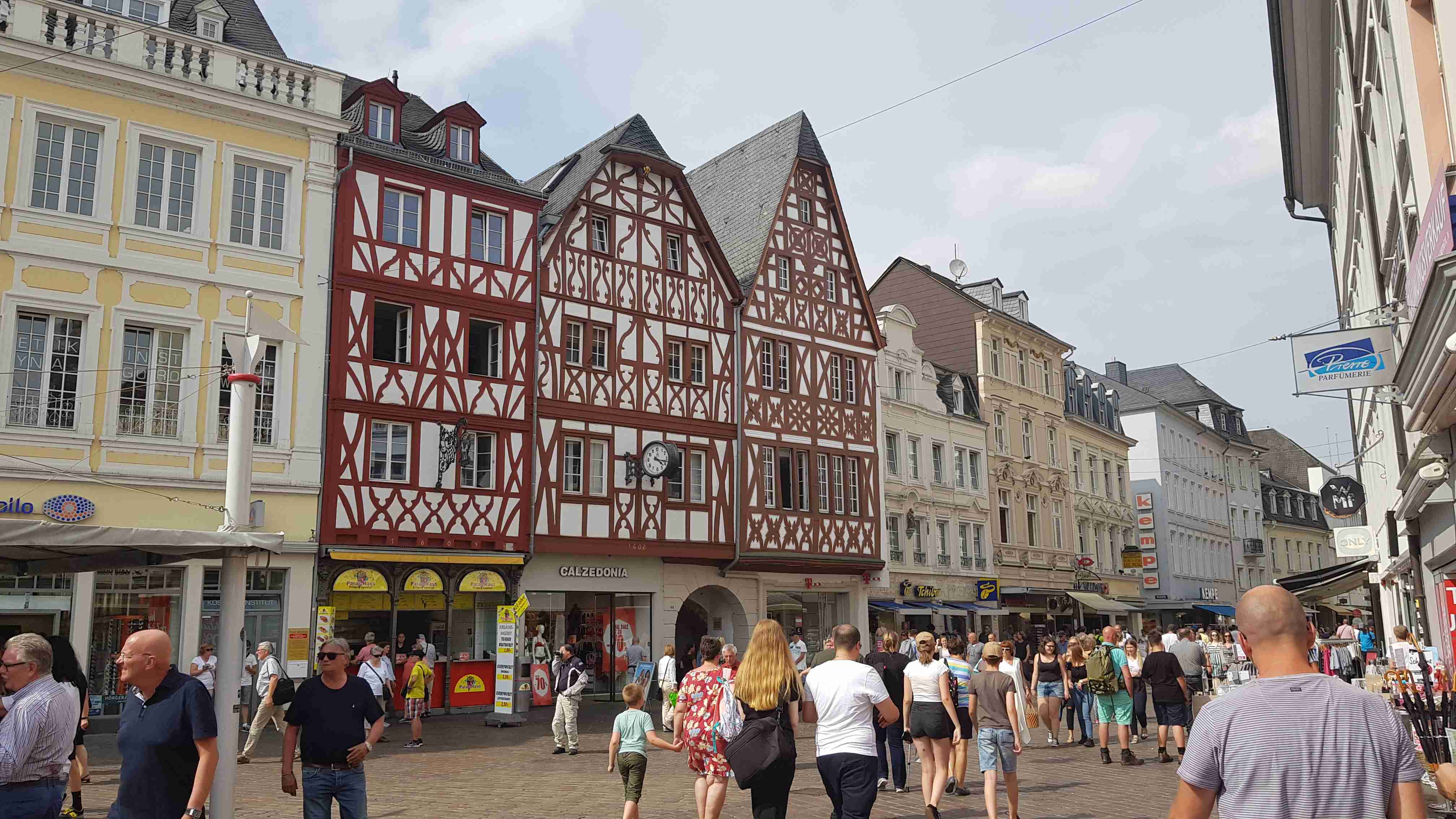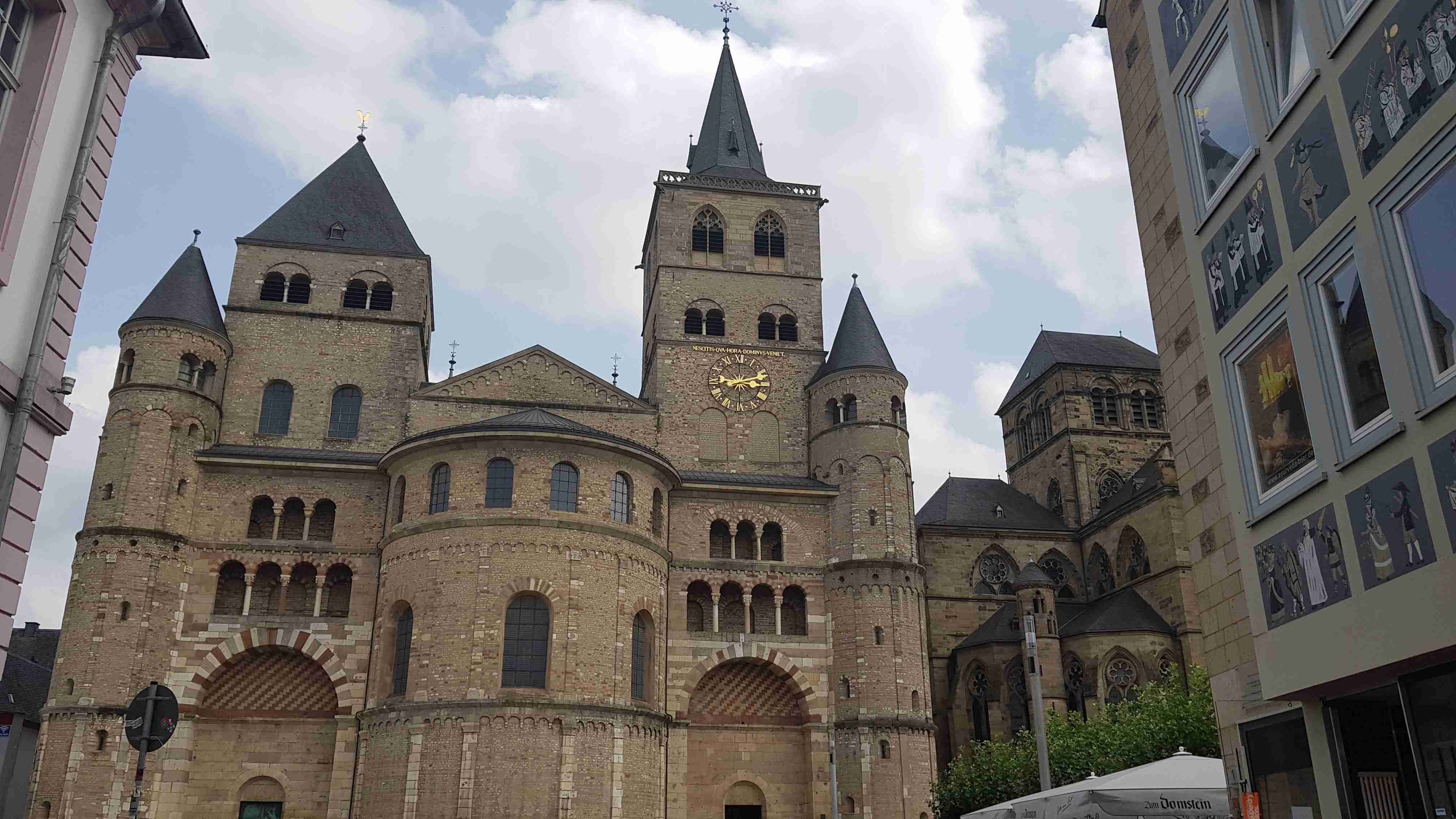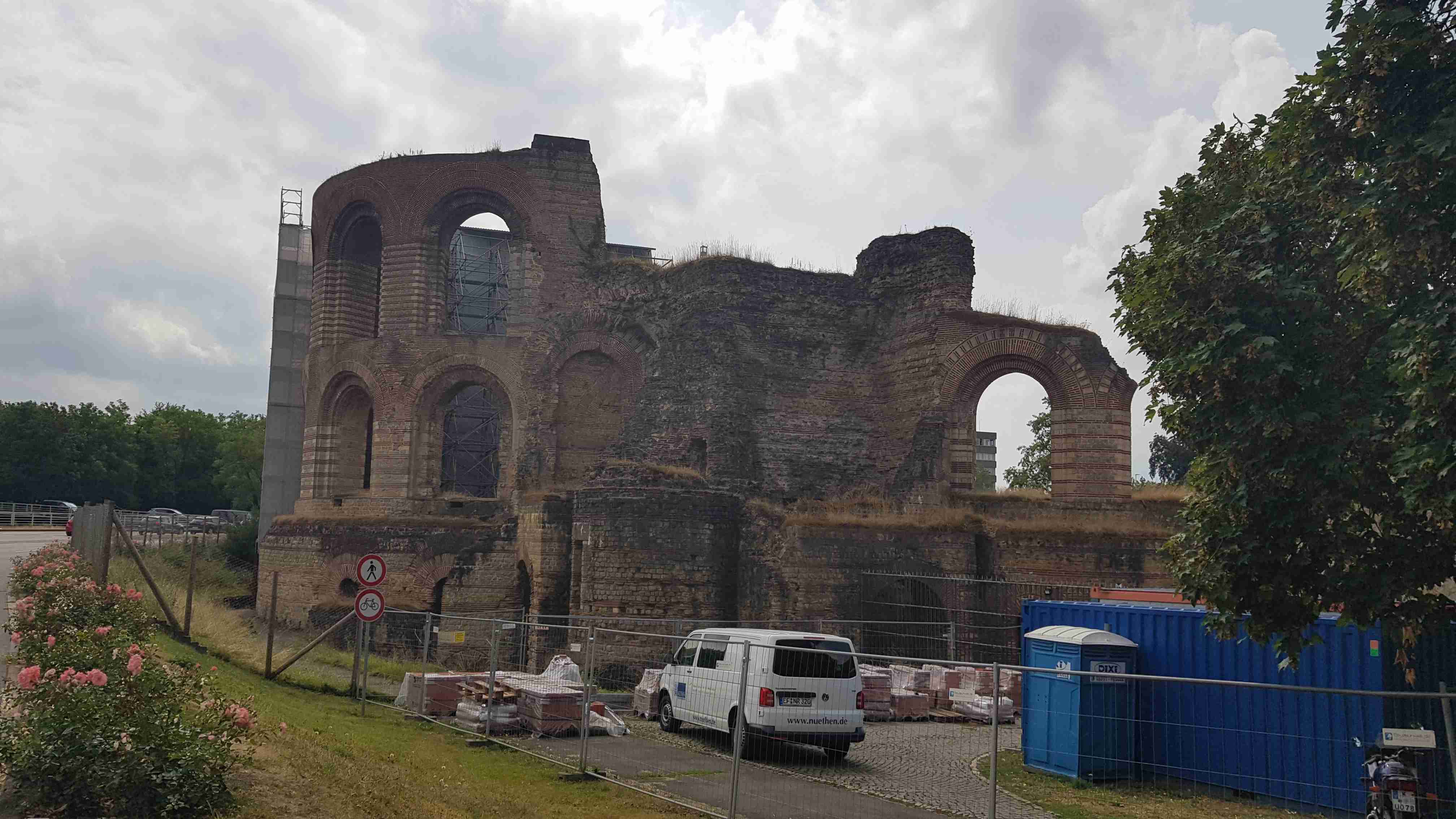 Autobusem jsme se ráno přepravili do Hermeskeilu, což bylo skoro hodinu a půl cesty. Odtud jsme pak vyrazili na kolech po Ruwer-Hochwald Radweg, jenž vedla opět po bývalé železniční trati, do Trevíru, jednoho z nejstarších měst v Německu. Bylo pod mrakem, a tak cesta byla oproti předchozím hodně slunečným dnům příjemnější. Po cyklostezce jsme dojeli do Trevíru, projeli okrajem města a našli jsme autobus parkující kousek od císařských lázní. Kola jsme nechali u busu a pěšky vyrazili do centra, které jsme již znali z naší předchozí návštěvy. Došli jsme až k Porta Nigra, kde jsme si v restauraci u infocentra dali pivo a víno a pomalu jsme se vrátili k autobusu a odjeli zpět na penzion.