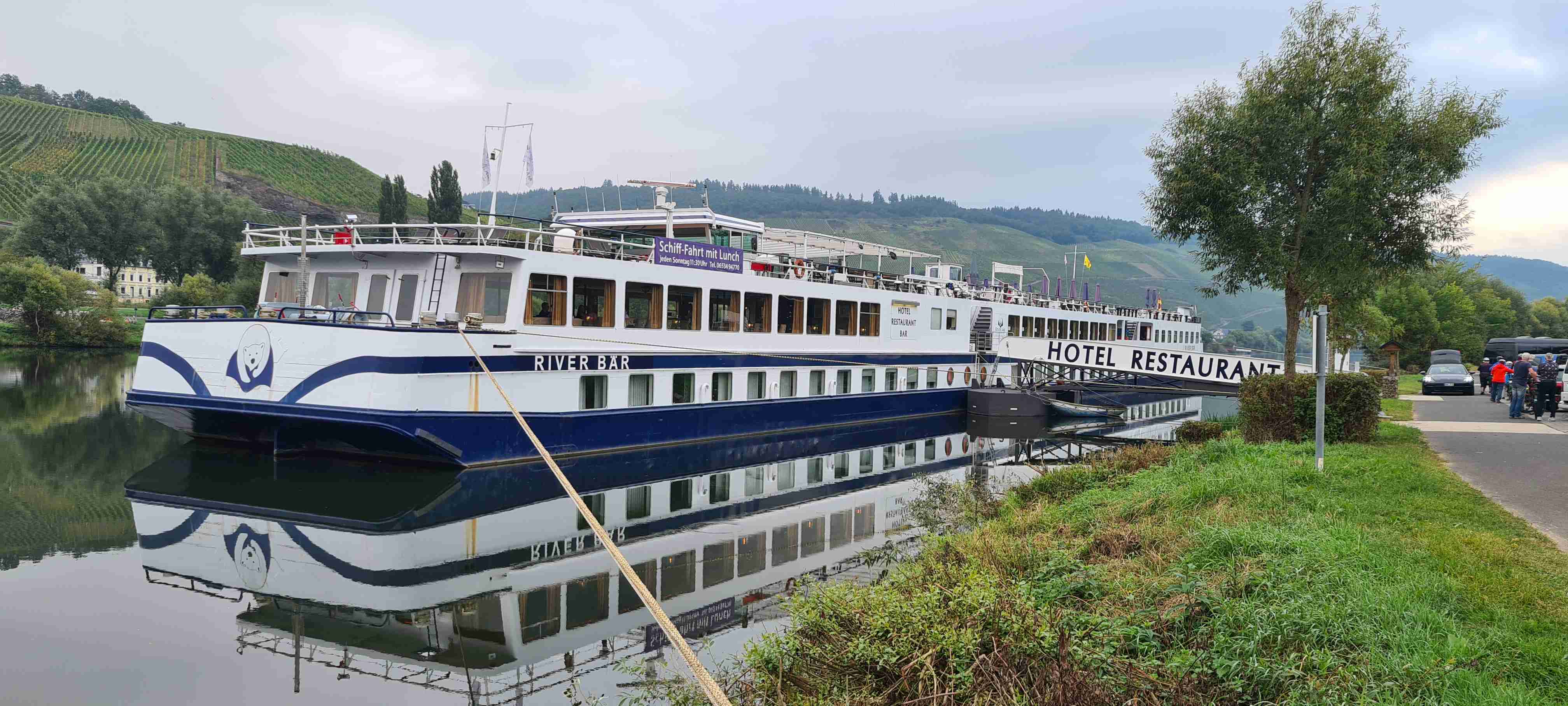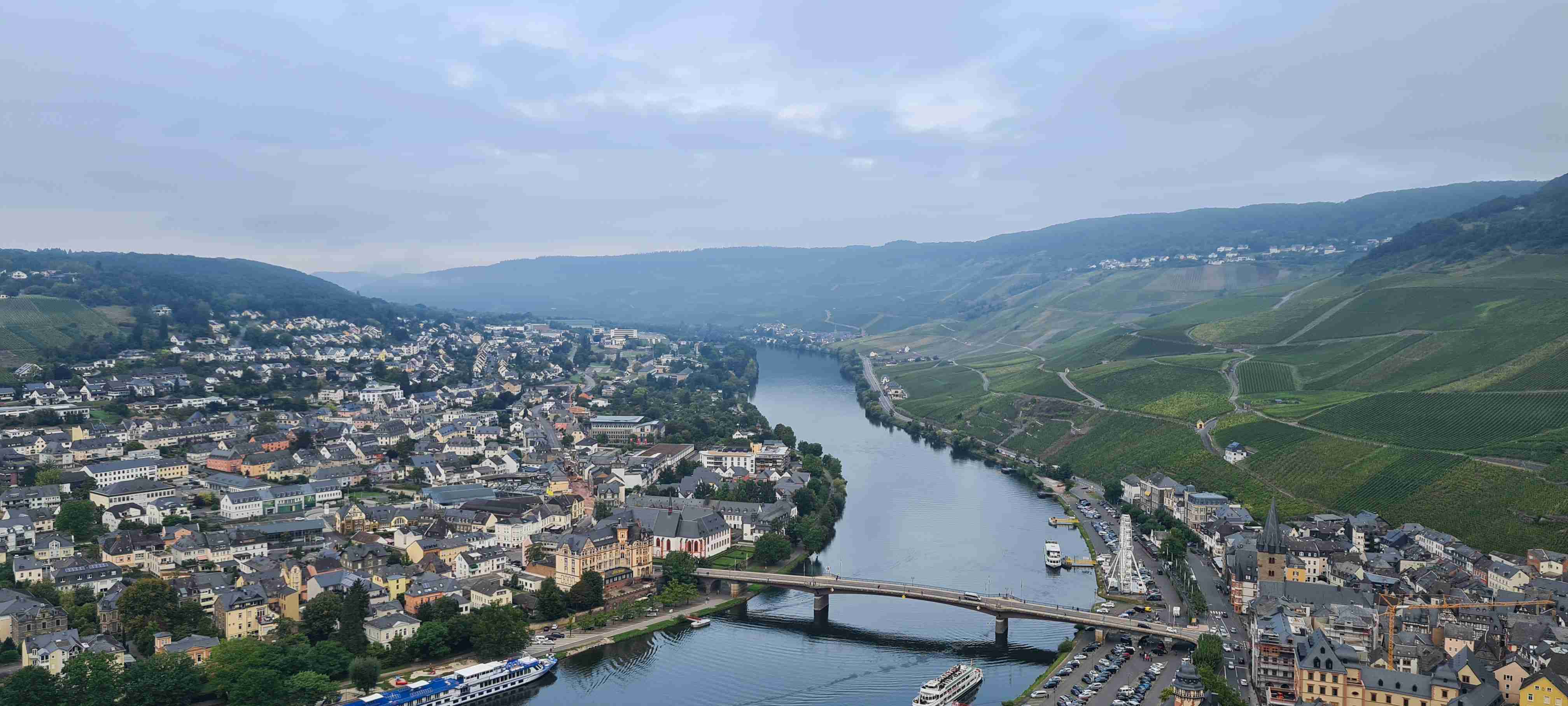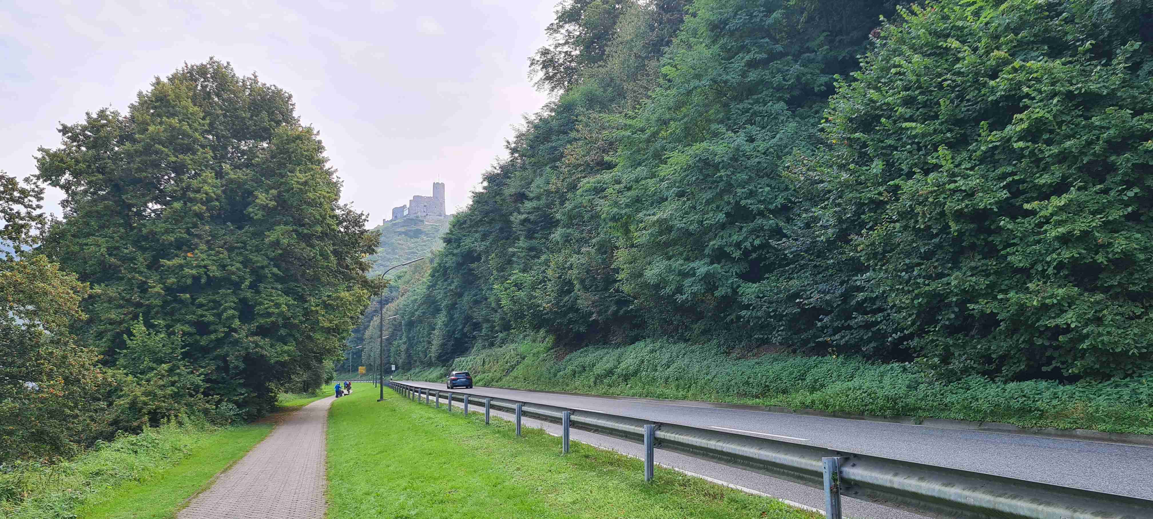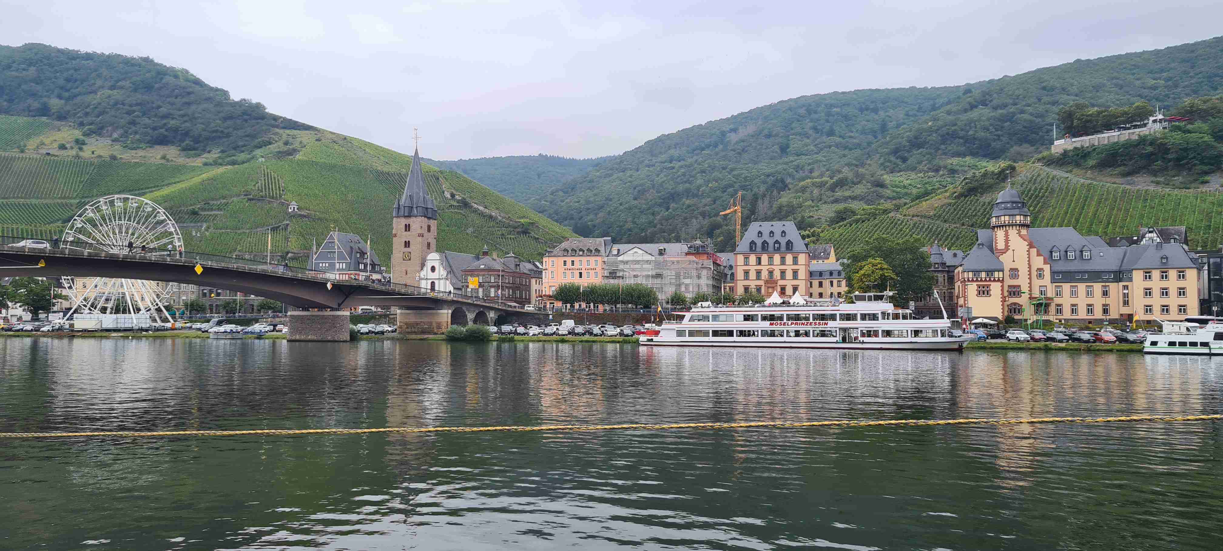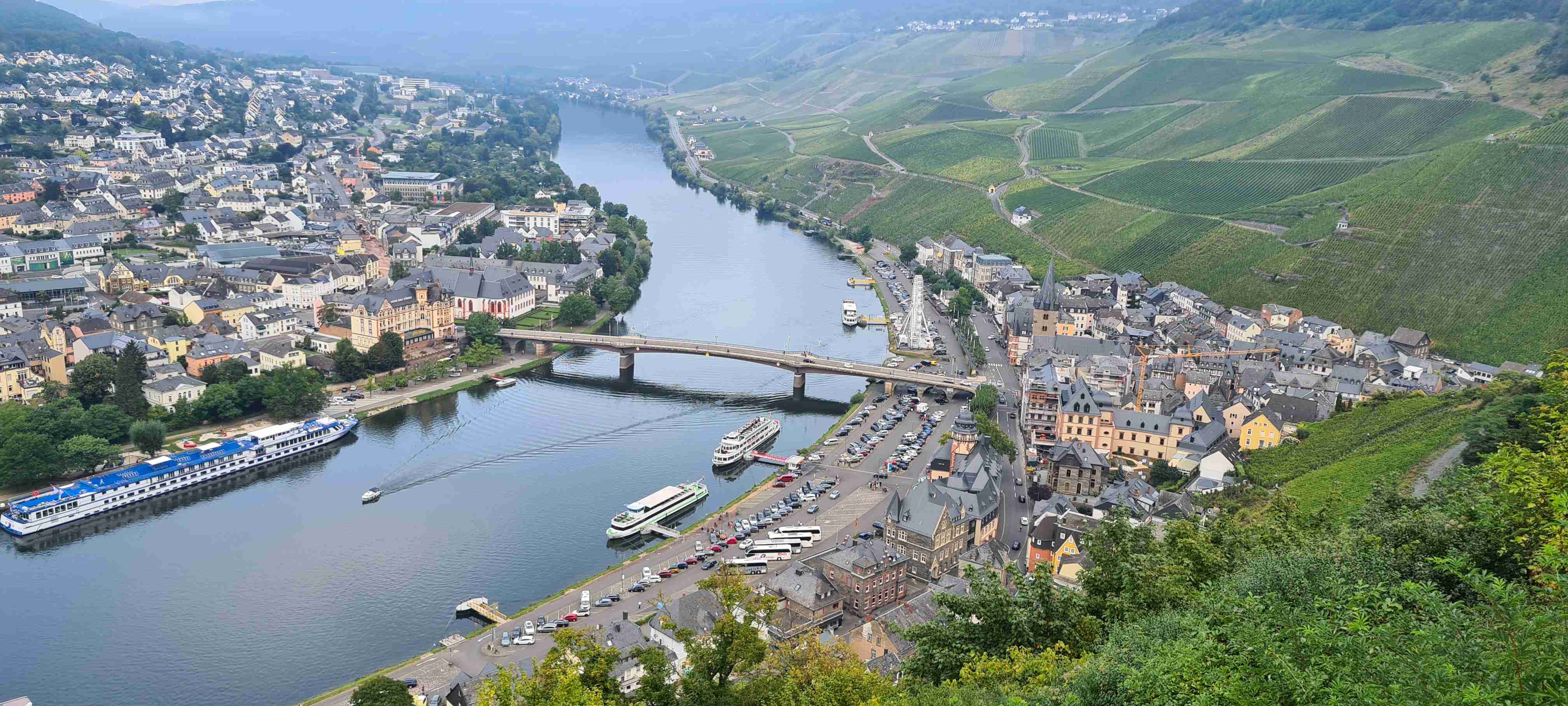 Po snídani jsme si naložili vše do autobusu a na kolech vyrazili do další destinace. Pořád podél řeky, ráno se ještě nad řekou i okolím vznášela mlha, která se po poledni rozplynula. Od začátku jsem měl problém s navigací, nechtěla si načíst satelity a v podstatě až po cca 10 km, když jsem dojížděl do Bernkastel-Kuesu, naskočila. Nakonec však stejně jako předešlý den se trasa jízdy zasekla a je nedostupná, a tudíž ani nejsou k dispozici videa Relive. Přes zimu ji dám do servisu a uvidíme. V Bernkastelu jsem si jako minule vydupal nahoru ke hradu Landshut, kopec je to příšerný, ale výhledy stojí za to. Po pořízení několika fotografií jsem sjel zpět dolů do města a zajel do centra, které jsem si již po třetí prošel a opětovně nafotil. Tady mne zastihl Luborův telefonát, že vinotéka na druhém břehu je i dnes otevřená. Přejel jsem tedy po mostě, ve vinotéce koupil dvě lahve moselského a popojel pár set metrů k autobusu, který zde čekal právě z důvodu uložení nakoupeného vína. Dojedl jsem zbytky zásob z Čech, dal si pivo a pokračoval jsem v cestě. Vrátil jsem se na pravý břeh a vykružoval meandry mezi vinicemi. Kolem 13. hodiny se spustil déšť, oblékl jsem tedy nepromokavé doplňky a pokračoval v cestě. Po hodině déšť ustal, tak jsem se opět odstrojil. Po 14. hodině jsem dorazil do Traben - Trarbachu, udělal jsem pár fotek, prošel jsem se pěší zónou a pomalu dojel zbývajících cca 5 km do Enkirchu do hotelu Loosen, kde jsme měli naplánovány dvě noci. Najeto cca 45 km, v klídku jsem se zkulturnil a navečer jsme vyrazili do nevelké hotelové restaurace, která byla jen pro nás. Tady jsem se odměnil krásným steakem a pivečkem ve společnosti přátel z Rubikonu. Co víc si přát!
