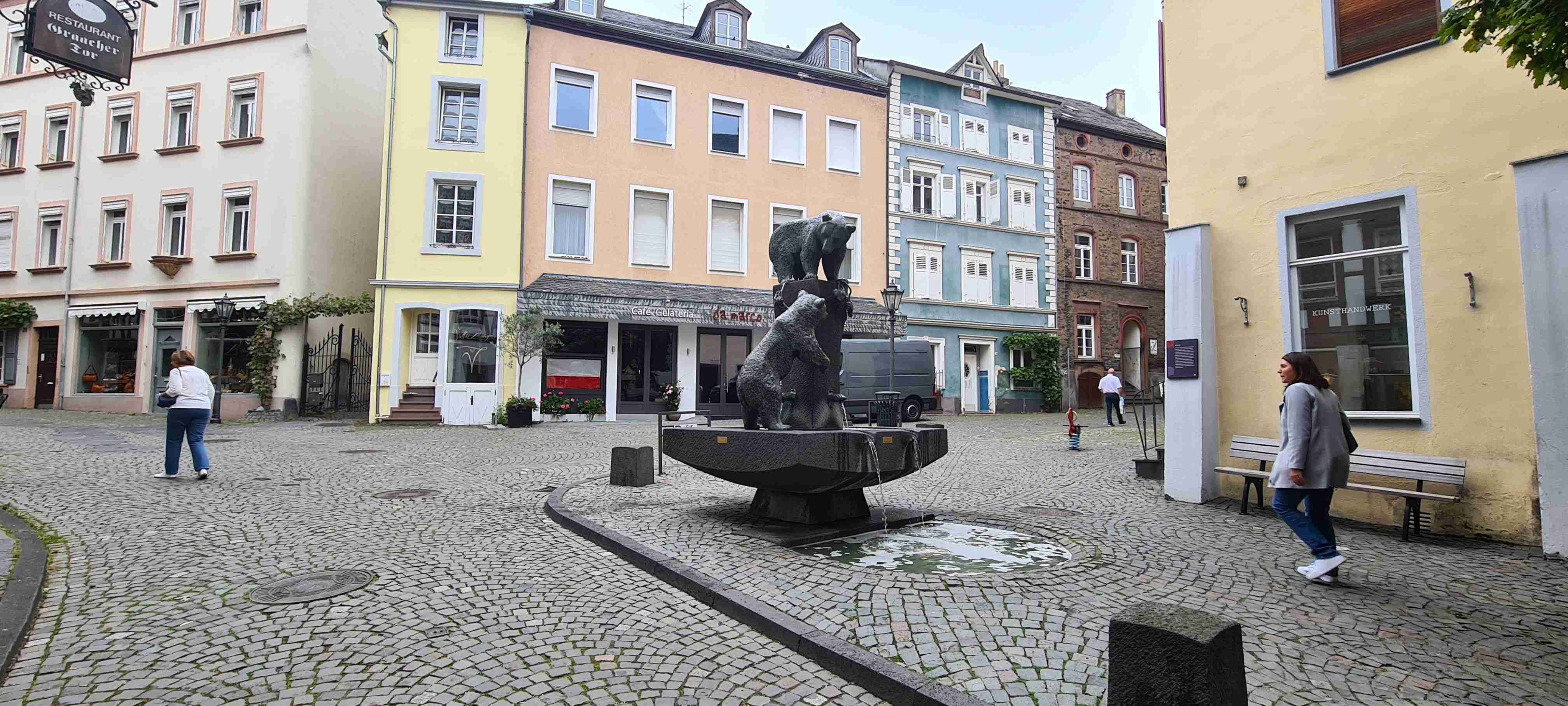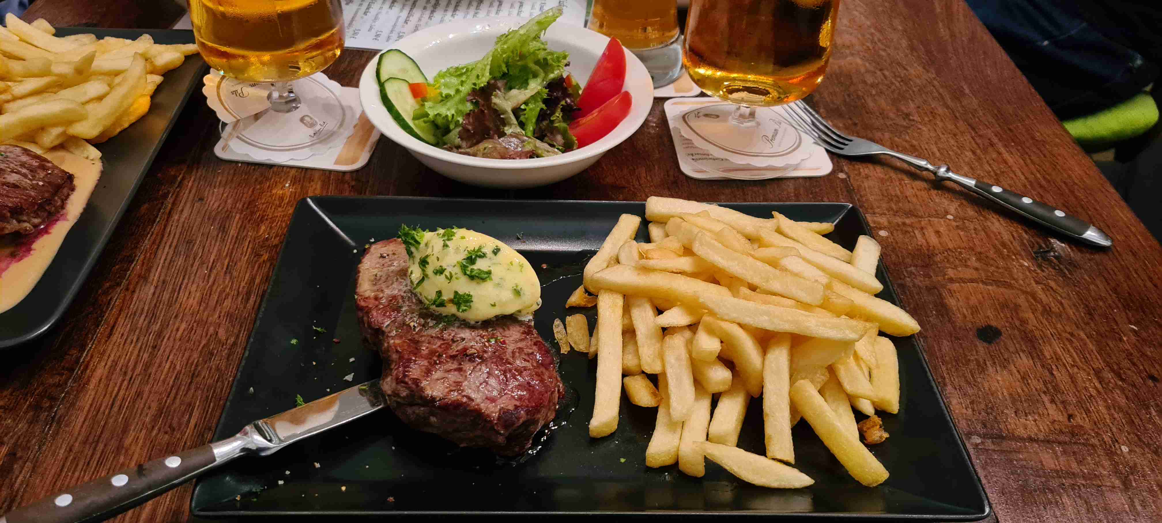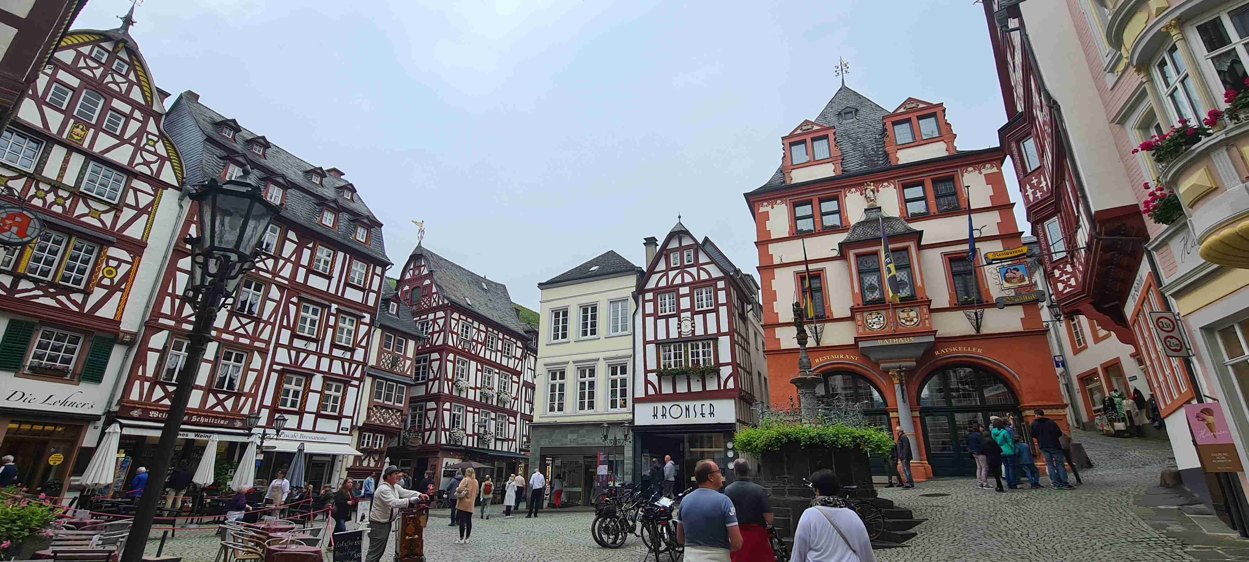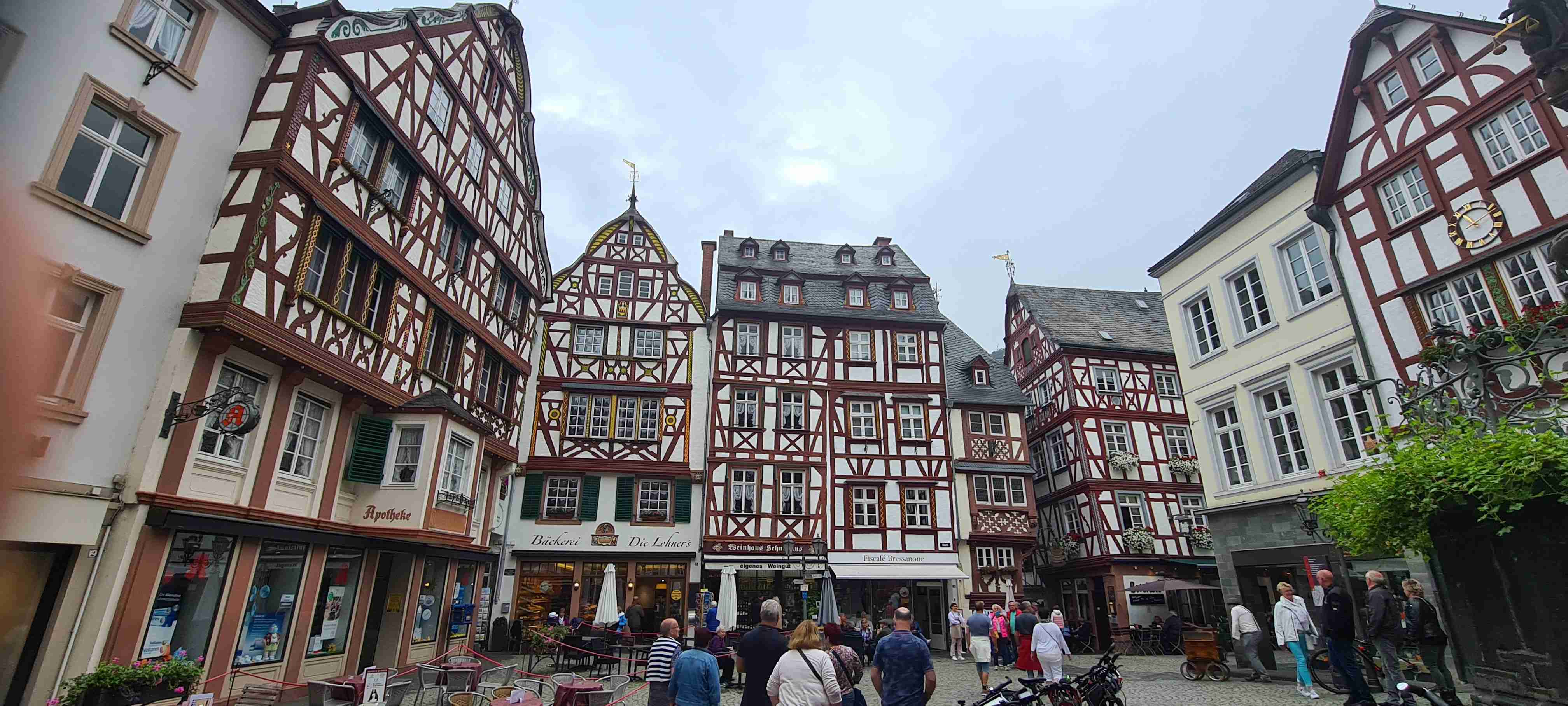 Po snídani jsme si naložili vše do autobusu a na kolech vyrazili do další destinace. Pořád podél řeky, ráno se ještě nad řekou i okolím vznášela mlha, která se po poledni rozplynula. Od začátku jsem měl problém s navigací, nechtěla si načíst satelity a v podstatě až po cca 10 km, když jsem dojížděl do Bernkastel-Kuesu, naskočila. Nakonec však stejně jako předešlý den se trasa jízdy zasekla a je nedostupná, a tudíž ani nejsou k dispozici videa Relive. Přes zimu ji dám do servisu a uvidíme. V Bernkastelu jsem si jako minule vydupal nahoru ke hradu Landshut, kopec je to příšerný, ale výhledy stojí za to. Po pořízení několika fotografií jsem sjel zpět dolů do města a zajel do centra, které jsem si již po třetí prošel a opětovně nafotil. Tady mne zastihl Luborův telefonát, že vinotéka na druhém břehu je i dnes otevřená. Přejel jsem tedy po mostě, ve vinotéce koupil dvě lahve moselského a popojel pár set metrů k autobusu, který zde čekal právě z důvodu uložení nakoupeného vína. Dojedl jsem zbytky zásob z Čech, dal si pivo a pokračoval jsem v cestě. Vrátil jsem se na pravý břeh a vykružoval meandry mezi vinicemi. Kolem 13. hodiny se spustil déšť, oblékl jsem tedy nepromokavé doplňky a pokračoval v cestě. Po hodině déšť ustal, tak jsem se opět odstrojil. Po 14. hodině jsem dorazil do Traben - Trarbachu, udělal jsem pár fotek, prošel jsem se pěší zónou a pomalu dojel zbývajících cca 5 km do Enkirchu do hotelu Loosen, kde jsme měli naplánovány dvě noci. Najeto cca 45 km, v klídku jsem se zkulturnil a navečer jsme vyrazili do nevelké hotelové restaurace, která byla jen pro nás. Tady jsem se odměnil krásným steakem a pivečkem ve společnosti přátel z Rubikonu. Co víc si přát!