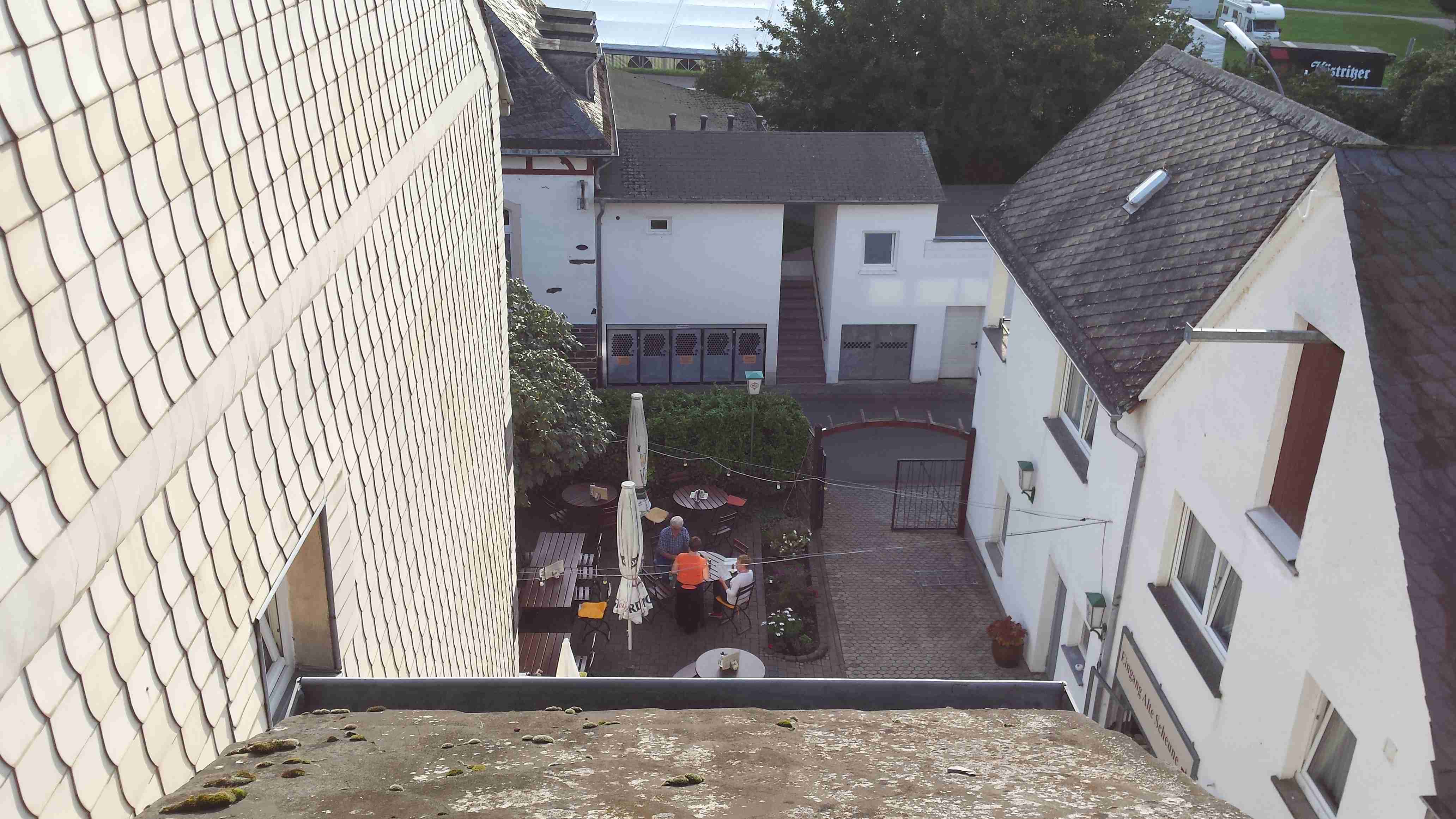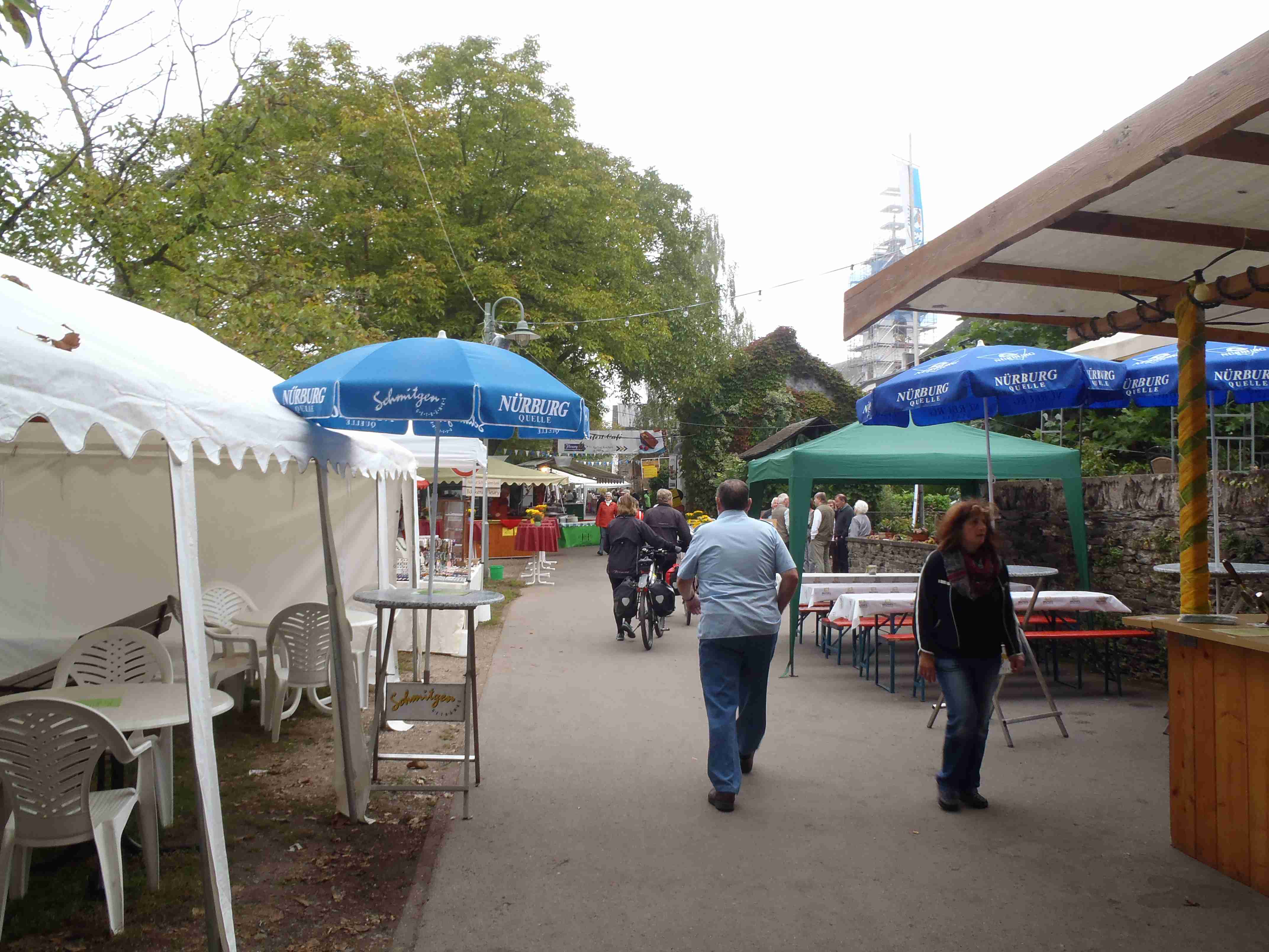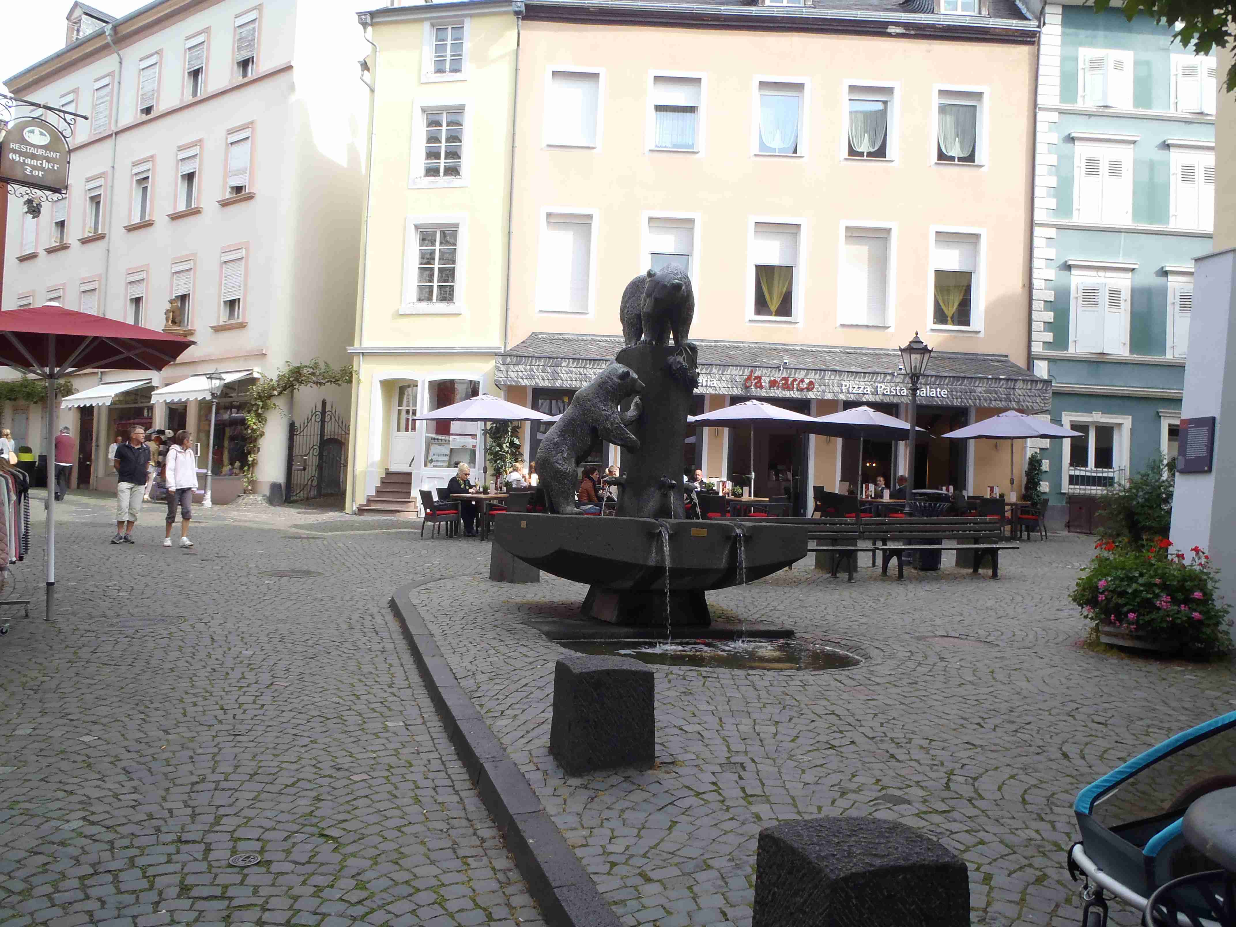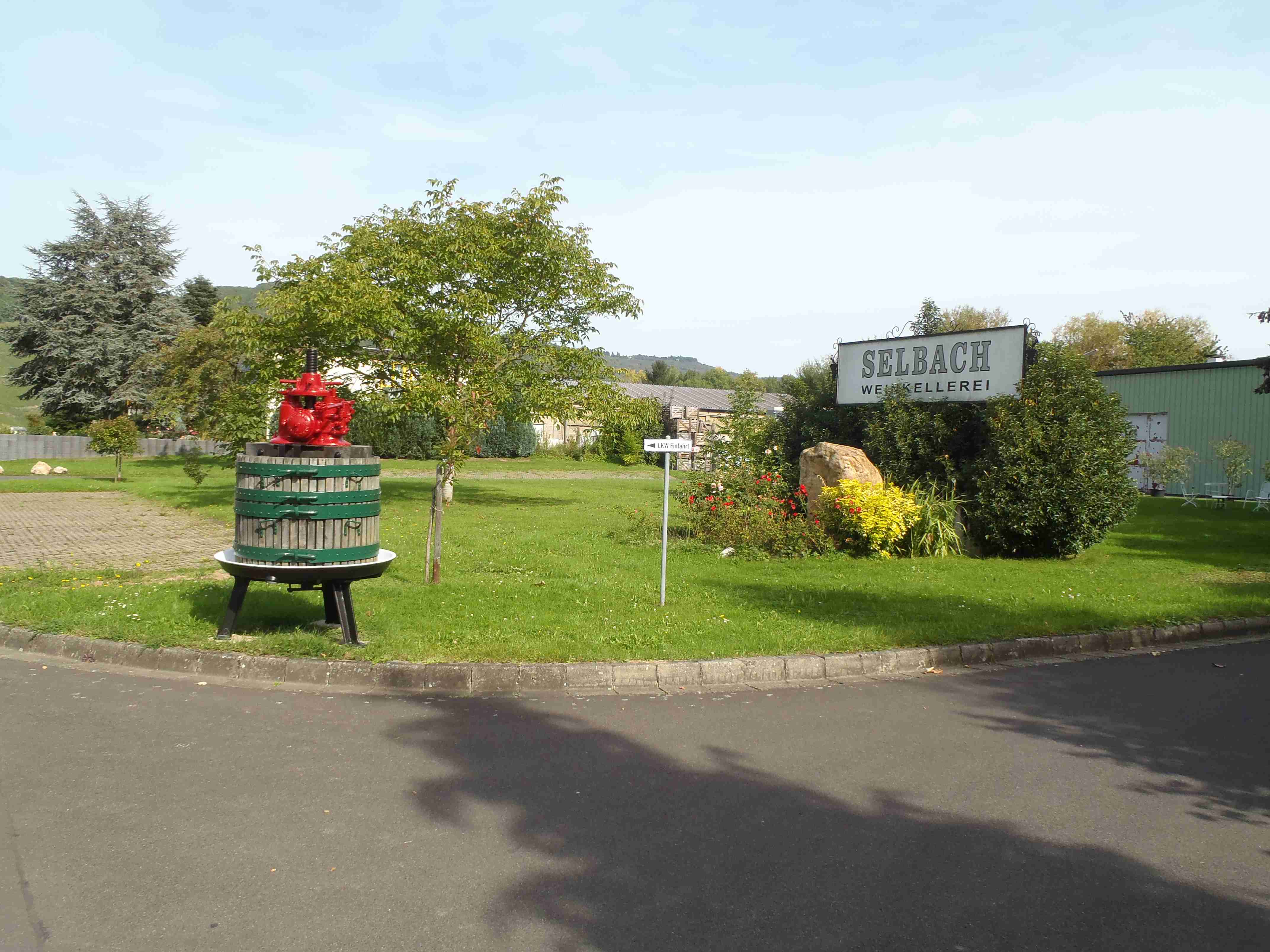 Rozvrh stejný jako včera, snídaně byla v přízemí našeho penzionu. Kolem čtvrt na jedenáct jsme vyrazili od penzionu opět na Brauneberg, kde vinobraní ještě pokračovalo a tak jsme museli sesednout z kol (vinobraní totiž probíhalo v místě cyklostezkyL) a opětovně to projít pěšky. Na mnoha lidech bylo vidět, že ještě nešli spát. Zhruba první hodinu cesty byla mlha, ale postupně se rozplývala a opětovně vylezlo sluníčko. Projeli jsme obcí Andel a před polednem jsme dojeli do dvojměstí Bernkastel-Kues, kde především prvně jmenované místo je opravdu historické – spousta hrázděných domů; ty však spíše svědčí o někdejší relativní chudosti a naopak převážně kamenné domy v dalším městě Trarbach jsou pak důkazem bohatství. Bernkastel jsme si prošli, nafotili, dali si na náměstíčku víno a poté jsme přejeli po mostě na druhou stranu do části Kues do areálu hospice sv.Mikuláše, kde je mimo funkčního hospice i rozsáhlá vinotéka, kterou jsme si prohlédli. Chutě jsme si nechali zajít, neboť nás přeci jenom ještě pár kilometrů čekalo. Po půl druhé jsme se vrátili zpět na pravý břeh a pokračovali jsme v cestě podél řeky obklopeni vinicemi. Kolem půl čtvrté jsme dorazili do dvojměstí Traben-Trarbach, kde jsme se u brány na most posadili ve dvoře a dali si Federweisser, neboť do cíle zbývalo již jenom pár kilometrů. Po občerstvovací pauze jsme přejeli přes most na levý břeh a se zastávkou u zdymadel jsme pokračovali až do obce Kövenig, kde jsme přívozem přejeli na druhou stranu do Enkirchu – bylo to takové malé zpestření pro ty, co chtěli. Ubytováni jsme byli v hotelu Loosen, který zabíral snad polovinu domů v ulici. Tentokrát jsme vyfasovali poslední patro bez výtahu, byl to ale regulérní podkrovní byt, plně vybavený – zase škoda, že jenom na jednu noc. Ubytovali jsme se kolem půl šesté, v nohách cca 45 km, rychle hygienu a dolu do dvora na večeři – naše první teplé jídlo. Poseděli jsme s Luborem, mechanikem Karlem a dalšími kolegy, jídlo jsme měli objednané od rána – Iva guláš s kroketami a já cikánský řízek s hranolky, oboje se salátem. Tentokrát jsem si dal pivo, Iva víno. Poseděli jsme asi do 21:00, odcházeli jsme pomalu jako poslední – žádná veselice.