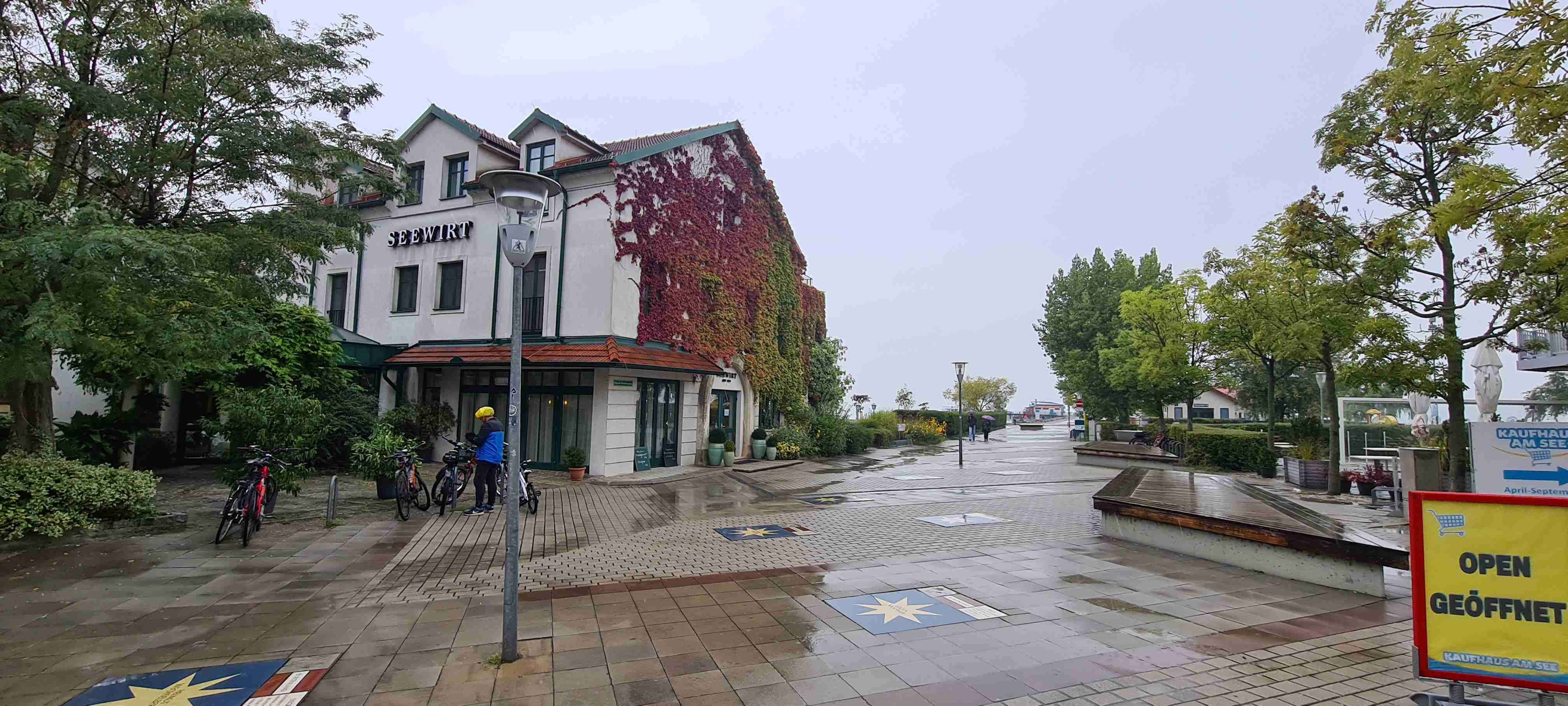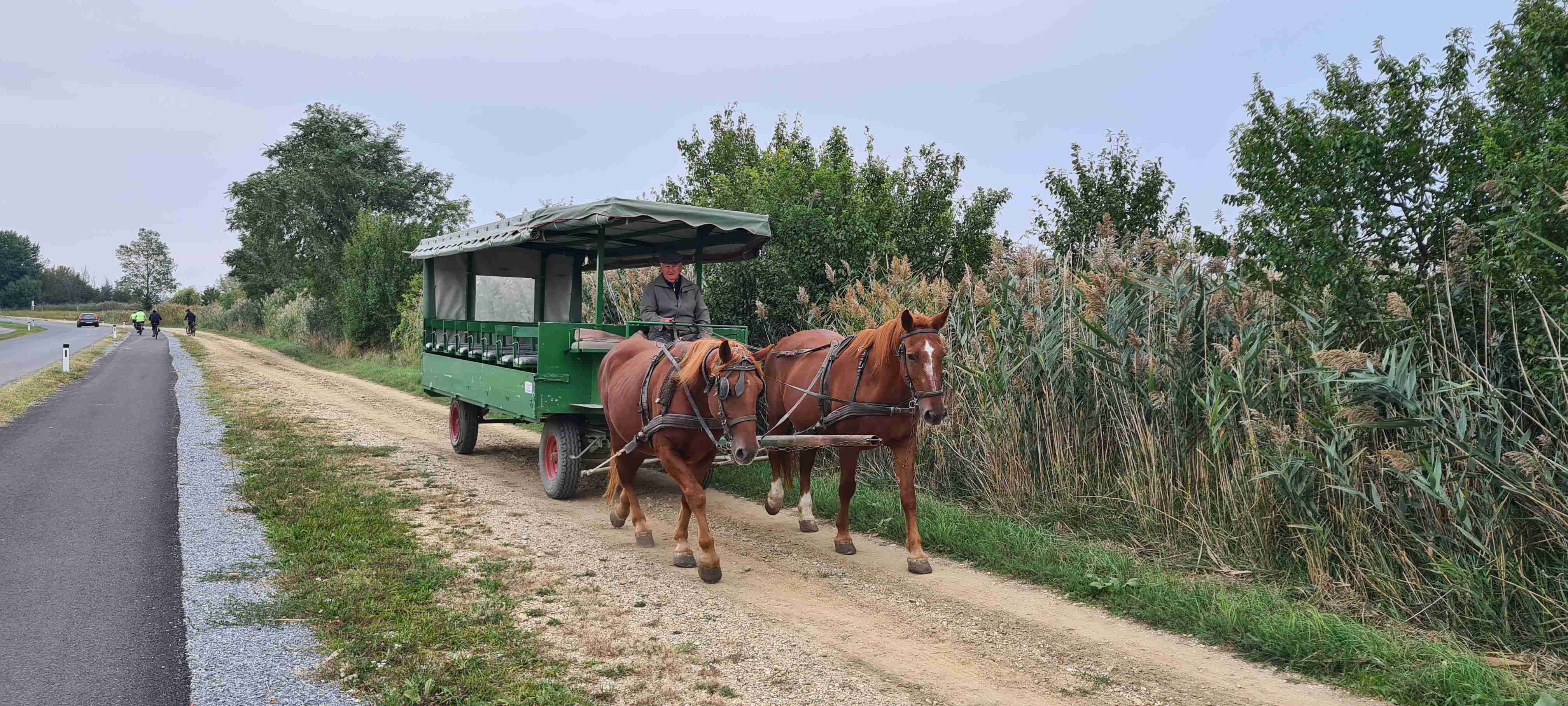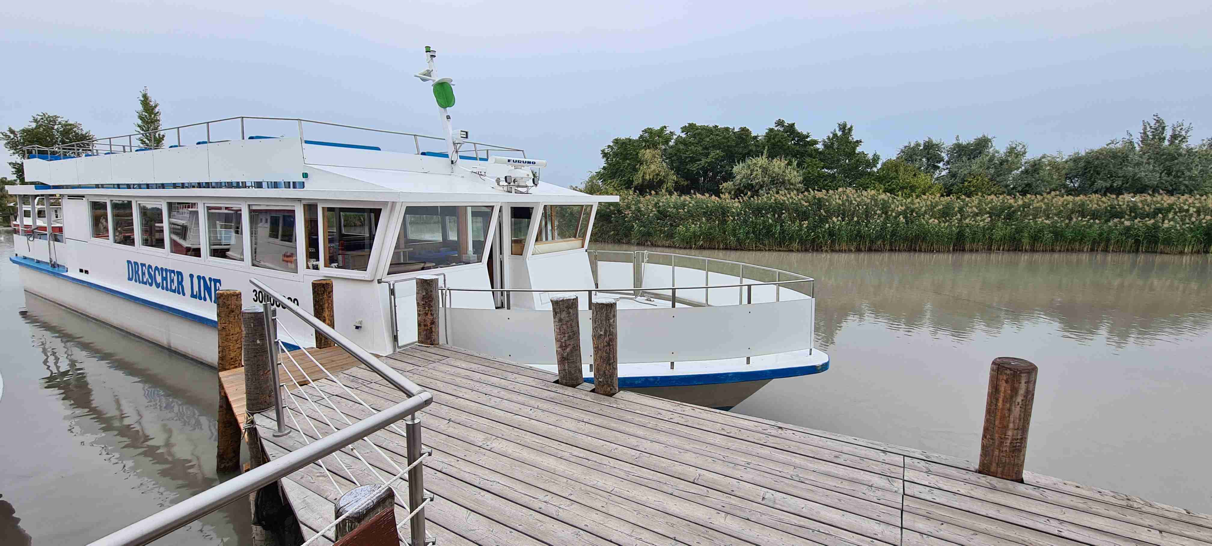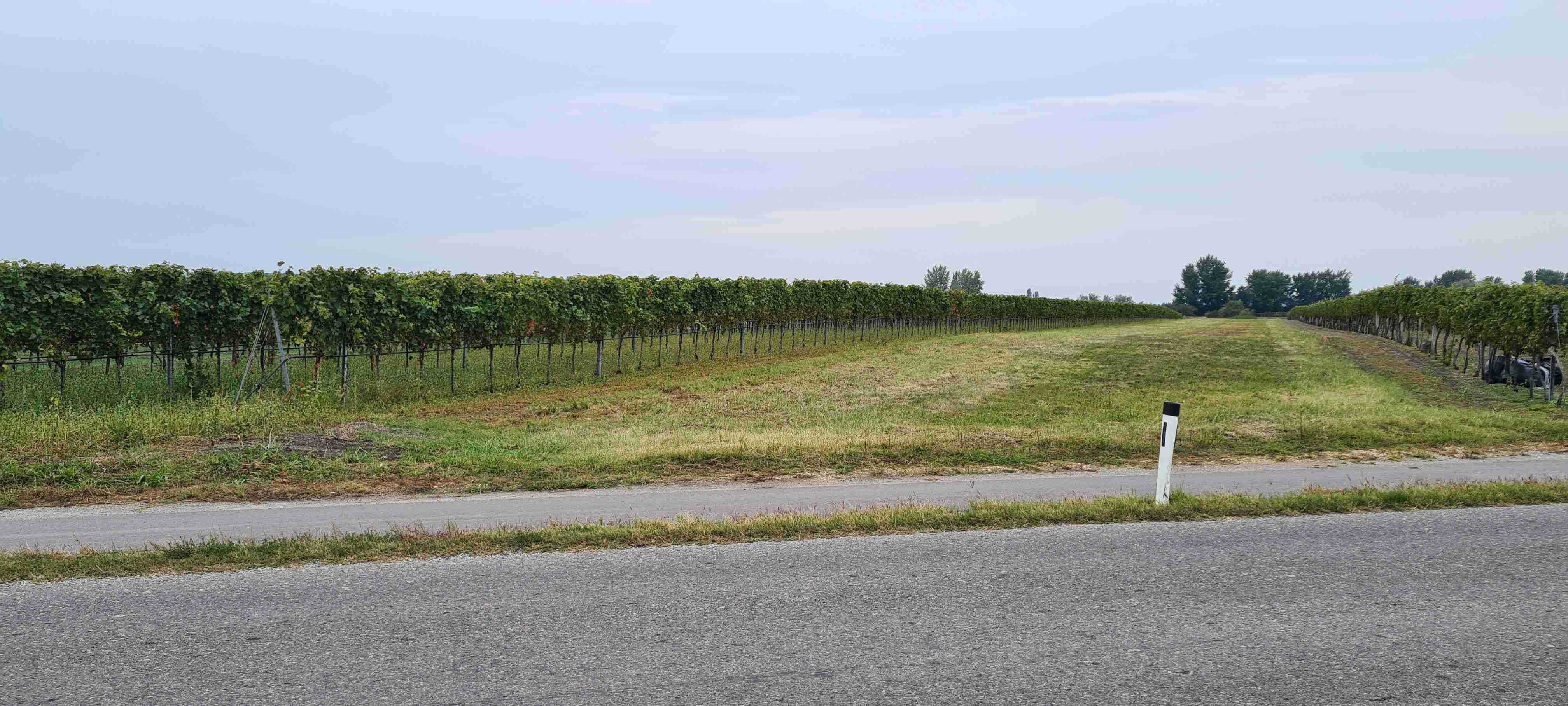 Ráno nás autobus odvezl kousek do Fertörakos, kde jsme nasedli na kola a přejeli asi 7 km do rakouského Mörbische do přístavu, kde jsme měli objednanou loď na přepravu na druhou stranu jezera. Vody bylo málo, samo jezero je poměrně mělké, a tak do přístavu Illmitz zajížděla loď poněkud ze strany. Po vylodění jsme nasedli opět na kola a vydali se po sinici na Illmitz, které jsme projeli a zamířili do Apetlonu. Nejdelší trasa vedla ještě kousek rovně, ale prý tam byla mizerná silnice a vyschlé jezírko tak jsme v Apetlonu odbočili doleva a vydali se k jezeru Darscho. Tady vody také mnoho nebylo. Pomalu začalo mrholit, z opačného směru k nám dorazil jeden z kolegů ze zájezdu Ruda a na další cestu se k nám připojil, protože měl poněkud problém s navigací dle mapy. Nás nyní čekala cesta vinicemi směrem k Neziderskému jezeru a tady svoji roli sehrála moje navigace Garmin, která nás vedla neomylně, značení cyklostezek bylo v této oblasti poněkud chaotické, ale my jsme jeli jako dráha. V této chvíli jsme již jeli v dešti, zastavili jsme u vyhlídky, na které jsme již v minulosti byli a pomalu jsme dojeli do Podersdorfu, ve kterém jsme při poslední návštěvě začínali závěrečnou etapu. Zajeli jsme po molu k majáku a přístavu, udělali jsme pár fotek a vrátili se zpět do městečka a zapadli do první hospody do Seewirt. Dali jsme si pivo, a hlavně hovězí polévku na zahřátí a doufali, že snad přestane pršet. Po cca hodině a půl marného doufání jsme se vydali na posledních 10 km do Neusiedelu, kde čekal autobus a kam jsme v cca 15 hodin po 45 km dorazili. A přestalo pršet.