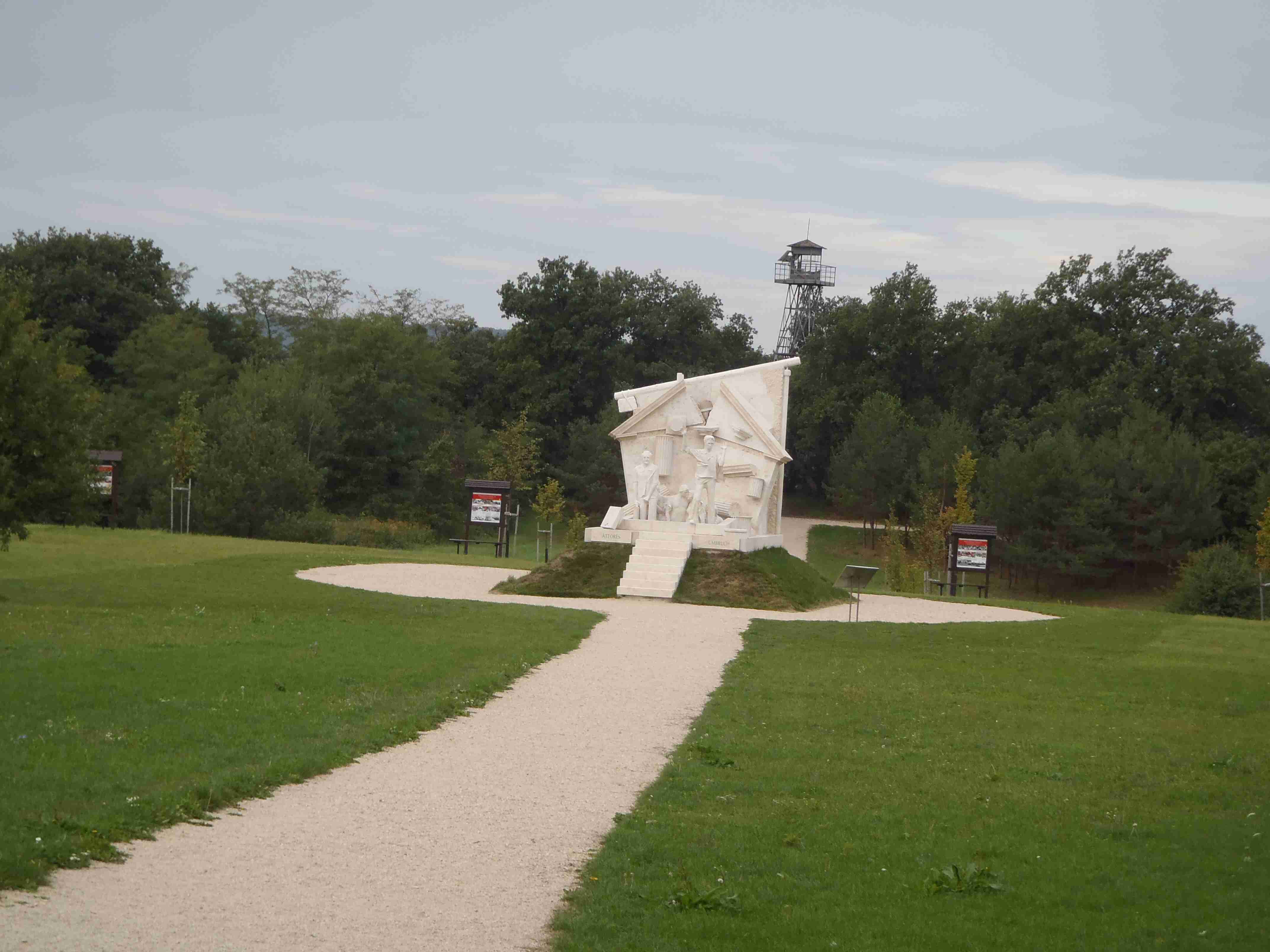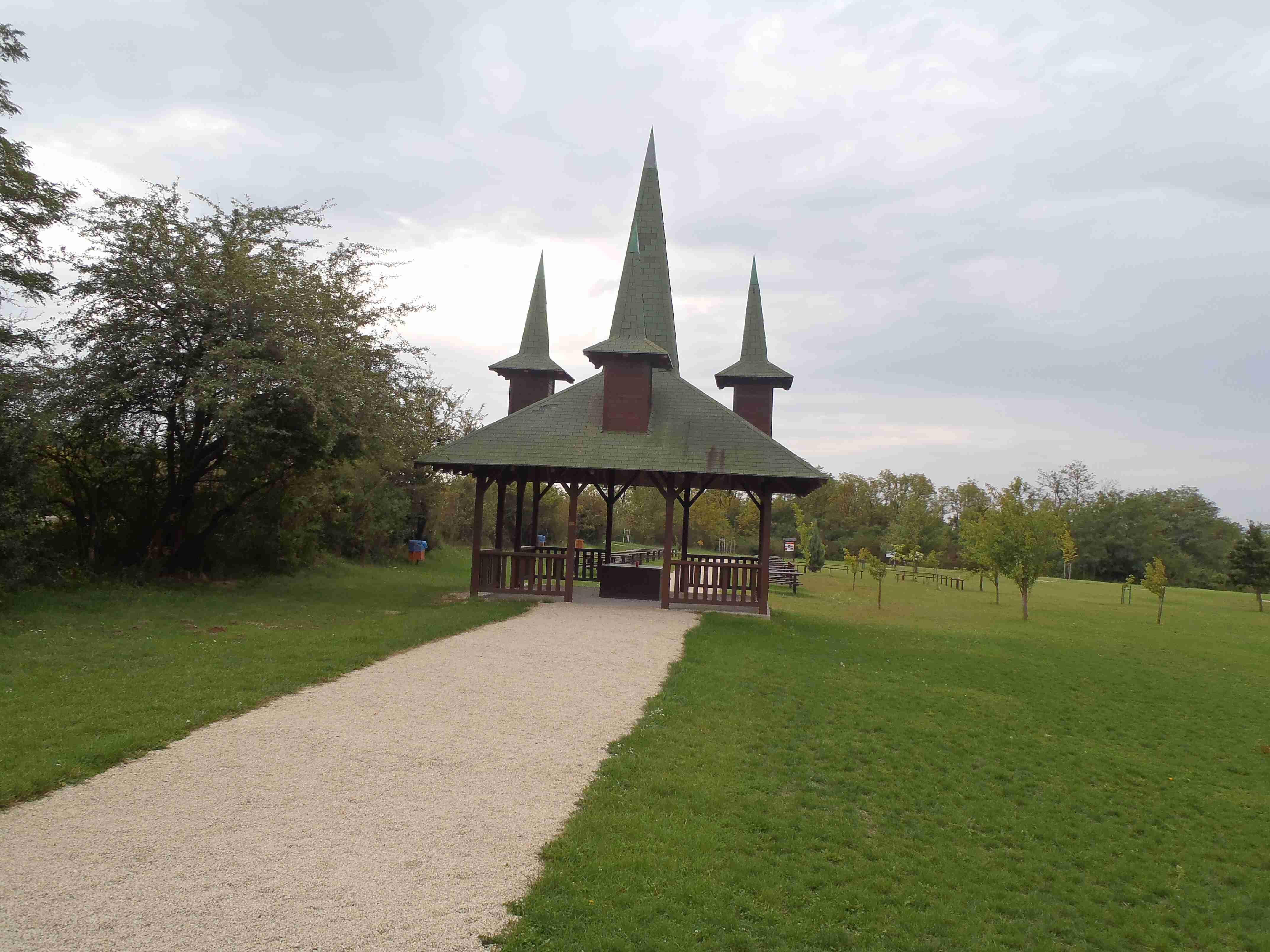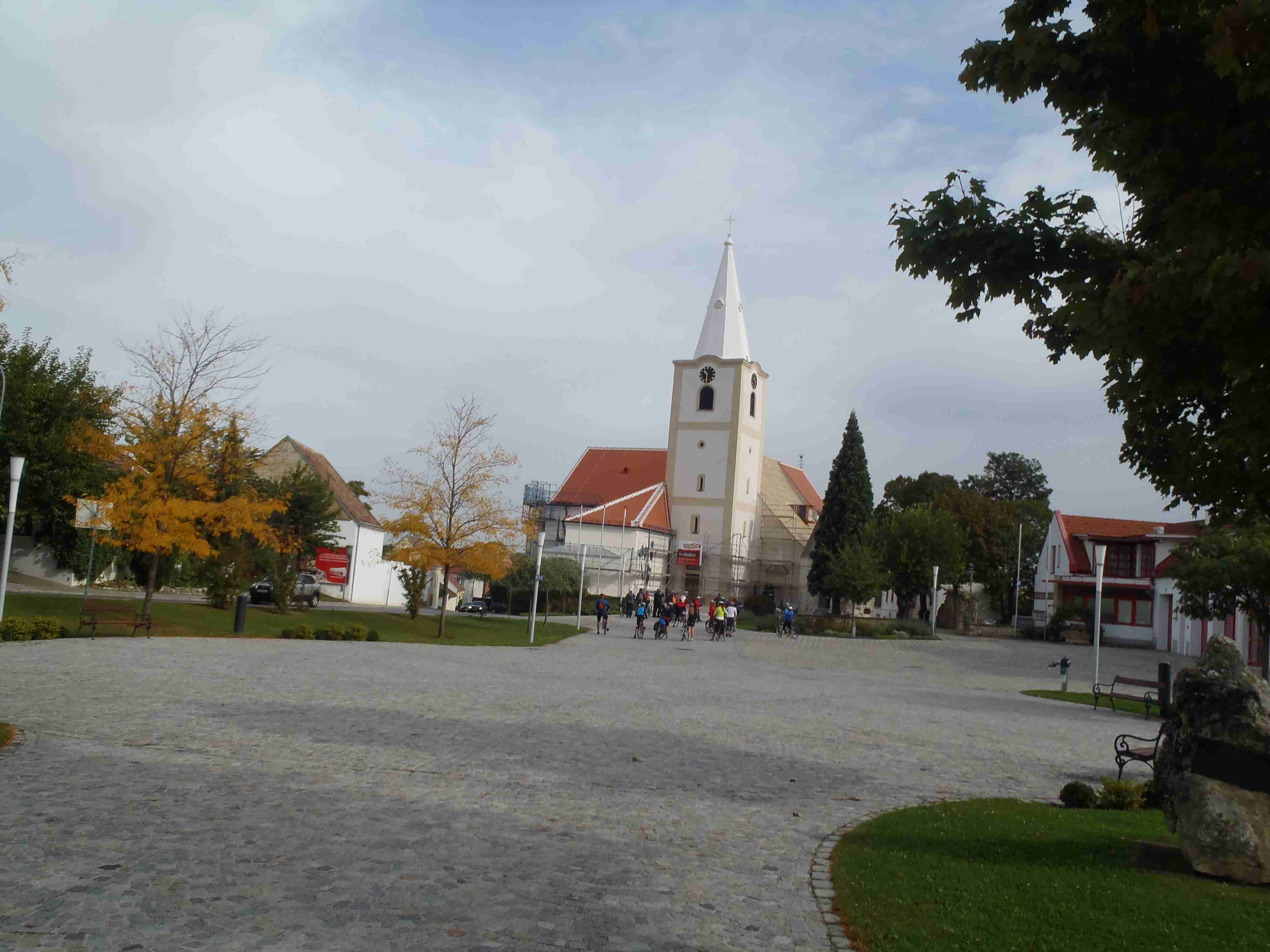 V sobotu jsem posnídal řízky z domova, které jsem si ohřál v mikrovlnce a opět kolem osmé malý briefing a v půl deváté odjezd tentokrát na západní břeh Neziderského jezera. Autobus zastavil ještě na maďarské straně ve městě Fertörákos, kde jsme na parkovišti u hotelu složili kola a společně s Markétkou a velkou skupinou kolegů jsme vyrazili směrem na sever k hranici a Rakouskem. Zbytek pak se Štefanem jel trochu jinou cestou, ale sešli jsme se na hranici v místě zvaném Paneuropäisches Piknik, což je památník na rok 1989 a rušení železné opony. Počasí nebylo nic moc, občas spadlo i pár kapek a já se jenom modlil, aby nepršelo, protože jsem si myslel, že bude hezky, jako včera, a tak jsem si nevzal ani bundu do deště. Od památníku jsme se vydali cyklostezkou B 31 vedoucí na severozápad k městečku Siegendorf, po pár kilometrech jsme však odbočili doprava na sever, směr St. Margharethen. Tady jsme si na náměstí prohlédli kostel, opět nás dojel Štefan se svojí skupinou. My jsme pokračovali dál, po chvilce jsme se však oddělili od houfu a s Janou a Mirkem zamířili přímo dál na sever do městečka Oslip, kde nám Štefan doporučil restauraci Storchmühle – Čapí mlýn. Vynechali jsme tedy cestu do kopce do lomu v St. Margarethen a po cca 20 minutách jsme dorazili do Oslipu, kde nalézt restauraci nebyl problém, neboť cesta k ní byla dobře značená. Byla to krásná starobylá budova, nikdo tam nebyl a my si objednali burgenlandské speciality - já měl schpätzle zapékané se šunkou a sýrem, i ostatní si vybrali dobře, bylo to opravdu moc dobré. Mimo cca 5 lidí již nikdo jiný z našeho zájezdu nedorazil, jak jsme se později dozvěděli, tak je Štefan vzal do nějaké restaurace v Rustu. Po dobrém obědě jsme pokračovali v cestě, hned za Oslipem byl kopec jako kráva, pak už to šlo, sjeli jsme do Rustu, projeli jím až na okraj a zamířili do přístavu. Udělali jsme pár fotek a vydali se podél jezera na jih na Mörbich. Cestou jsme se sjeli se Štefanovou skupinou, kterou jsme potkali u ohrady s chlupatými prasátky. Společně jsme pak v Mörbichi navštívili přístaviště, kde kromě trajektů bylo i divadlo na břehu jezera. Z Mörbiche to již bylo k autobusu pár kilometrů, i když občas pěkně do kopce. Časy stejné jako včera, po půl čtvrté odjezd, několik jedinců pokračovalo domů na kole (dalších cca 30 km), nám však dnešních 42 km již stačilo. Po návratu jsme opět vyrazili do lázní, nejteplejší bazén byl narvaný a tak jsme většinu času byli v tom o dva stupně chladnějším (34-36°C). Občas si zapršelo, ale to nám nijak nevadilo, i když bazény byly venkovní – v těch uvnitř se nedalo dýchat. Z lázní jsme zamířili v naší osvědčené čtveřici do restaurace Tornacos, kde jsme si s Ivou dali talíř pro dvě osoby – různé druhy masa, rýže, šťouchané brambory, houbová omáčka. Bylo to výborné, ale bylo toho moc. Po deváté jsme se vydali domů, naštěstí již nepršelo a v noci nám to nevadilo.