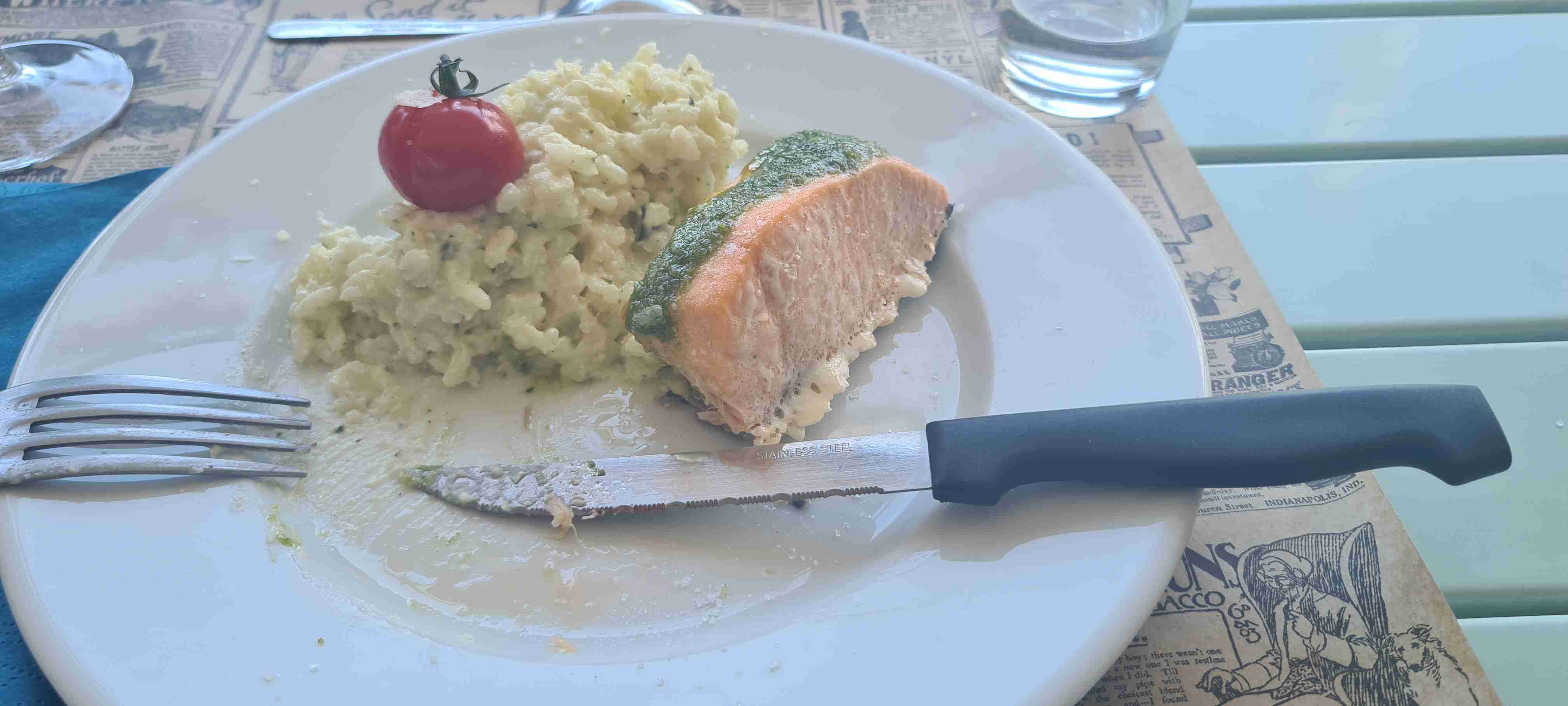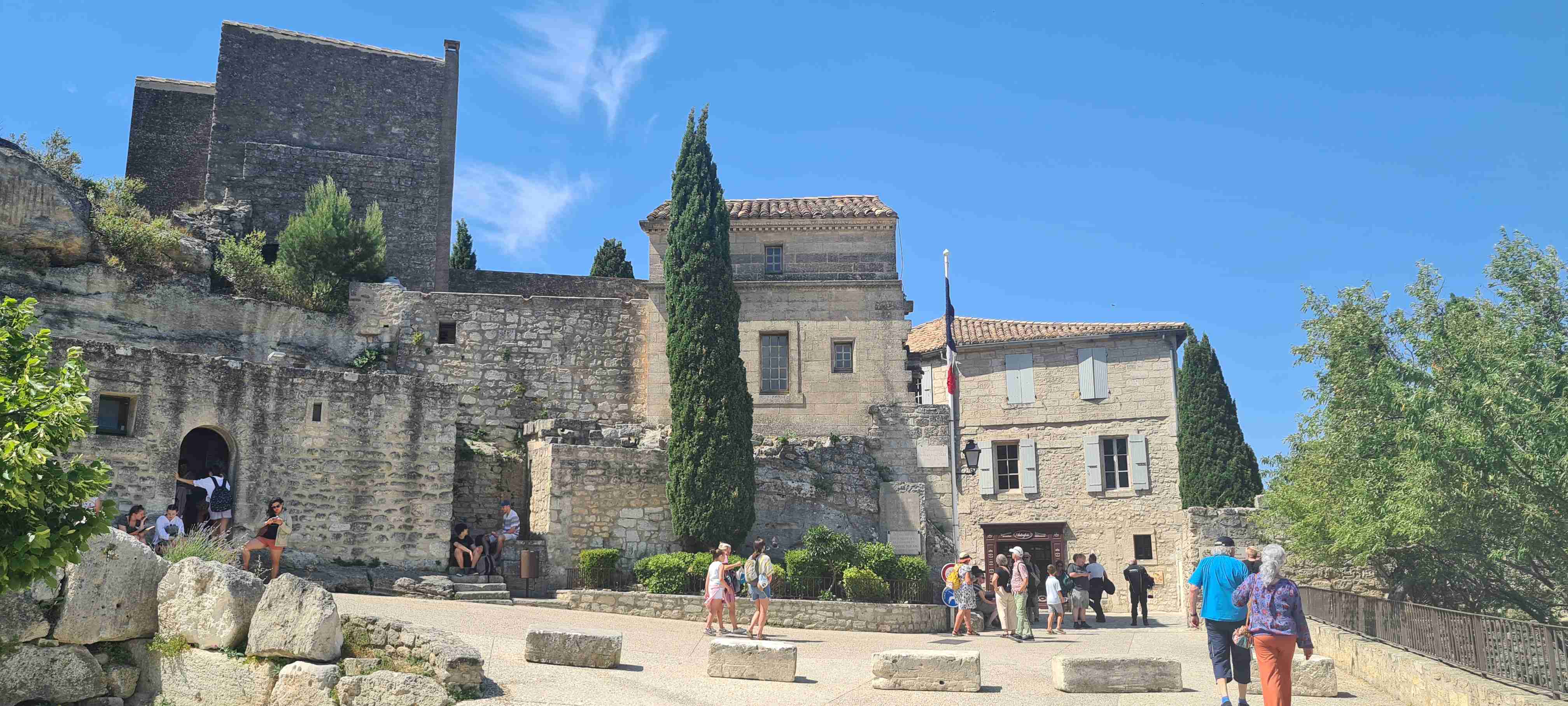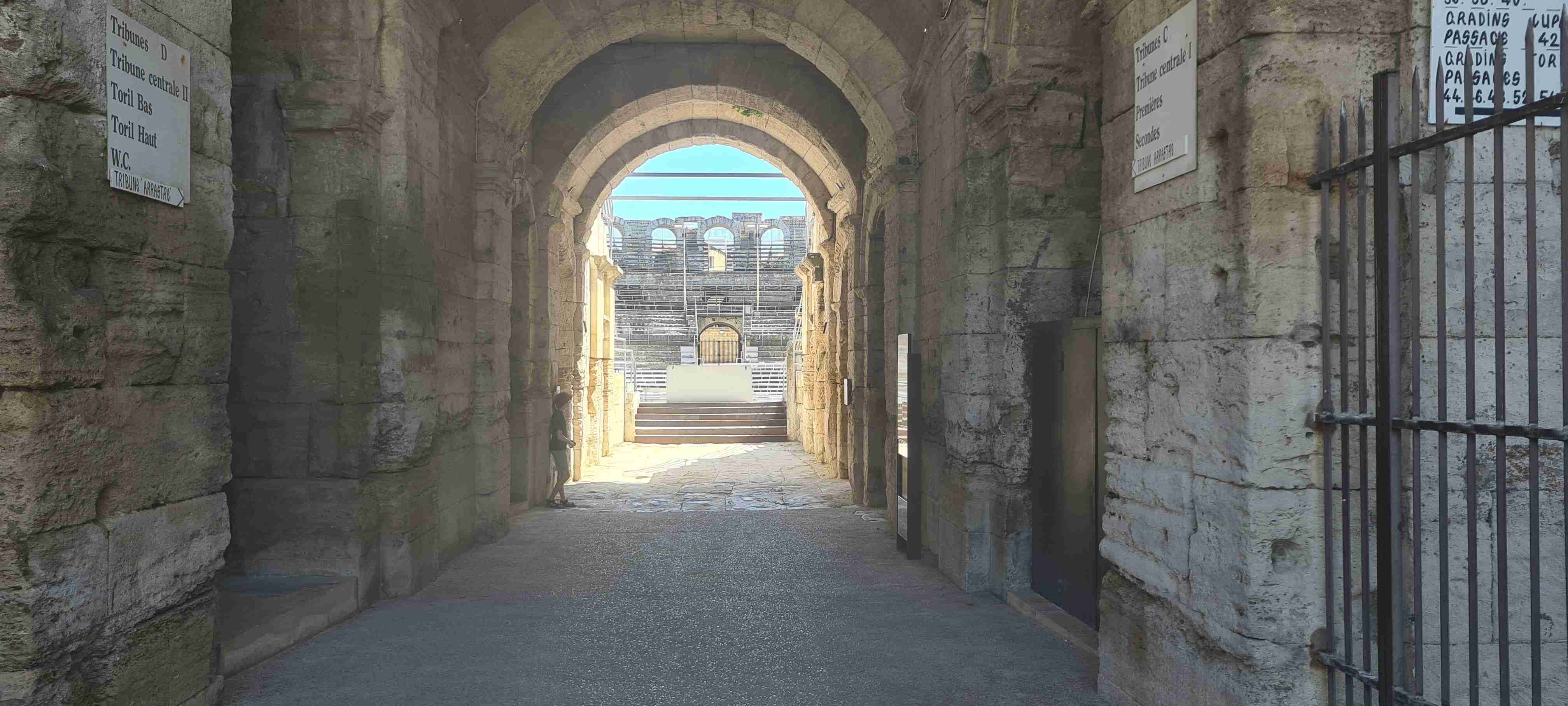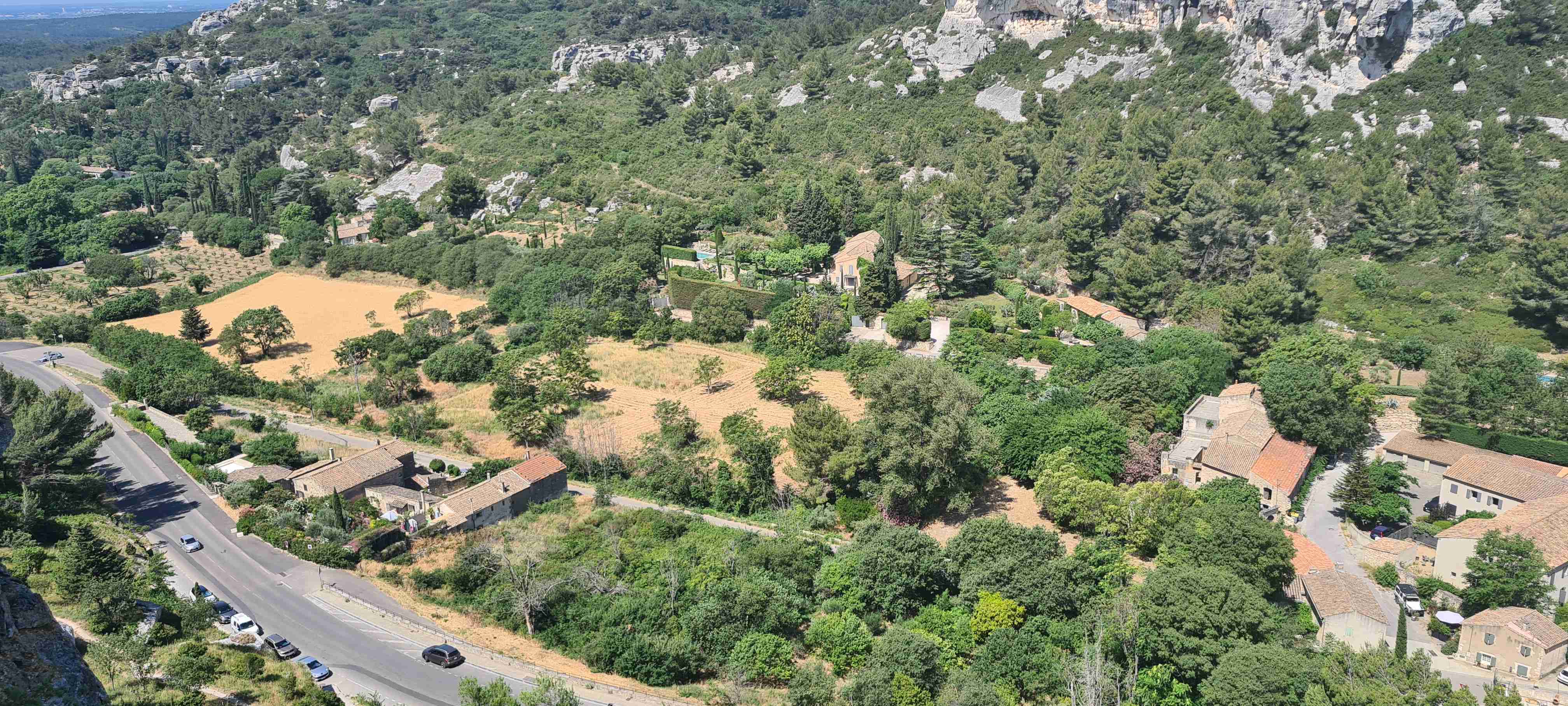 Asi hodinu jsme jeli do městečka Saint Etienne du Gres, tady jsme nasedli na kola a prvních 5 km do mírného kopečka po cestě lemované stromy a občas i pěknými usedlostmi. Když jsme dorazili k hlavní sinici zatočili jsme doprava a začali stoupat až do sedla, kde jsme ještě odbočili na vyhlídku a asi 1 km vyšlapali do prudkého kopce. Pár fotek a zpět na hlavní a z kopečka do městečka Les Baux de Provence. Kola jsme zamknuli hned u vstupu do městečka a šli jsme jenom kousek – tady jsme byli již potřetí, ale na hradě ještě nikdy, a i tentokrát jsme si ho odpustili. Ani jsme si nikde nic nedali, vrátili jsme se ke kolům a sjeli jsme z kopce dolů do Paradou, kde měla být hospoda. Tu jsme sice našli, ale zavřenou, a tak jsme po rovině pomalu pokračovali k autobusu, který na nás čekal na parkovišti u Daudetova mlýna. Zašli jsme si ho vyfotit, i tady jsme již dvakrát byli, stejně jako v Arles, kam jsme se přesunuli autobusem. Já vyrazil na prohlídku dle mapky. Iva šla něco málo nakoupit do obchoďáku nedaleko autobusu. Prošel jsme trasu dle pokynů, kolem katedrály sv. Trofima na Náměstí Republiky, kolem vykopávek a antického divadla, v parku vedle jsem vyfotil bustu Vincenta van Gogha, zastavil jsme se před jeho oblíbenou kavárnou a vrcholem pak byla římská aréna, dodnes používaná jak pro býčí zápasy, tak i pro různá kulturní představení. Od arény jsem pak již zamířil k autobusu, zavolal jsem Ivě, která končila nákup a sešli jsme se v zahradní restauraci a dali si pivo. Na nábřeží čekal rozpálený autobus, bazén jsem v pohodě stíhal, najeto cca 26 km, nachozeno cca 5 km, k večeři jsme měli lososa s rizotem.