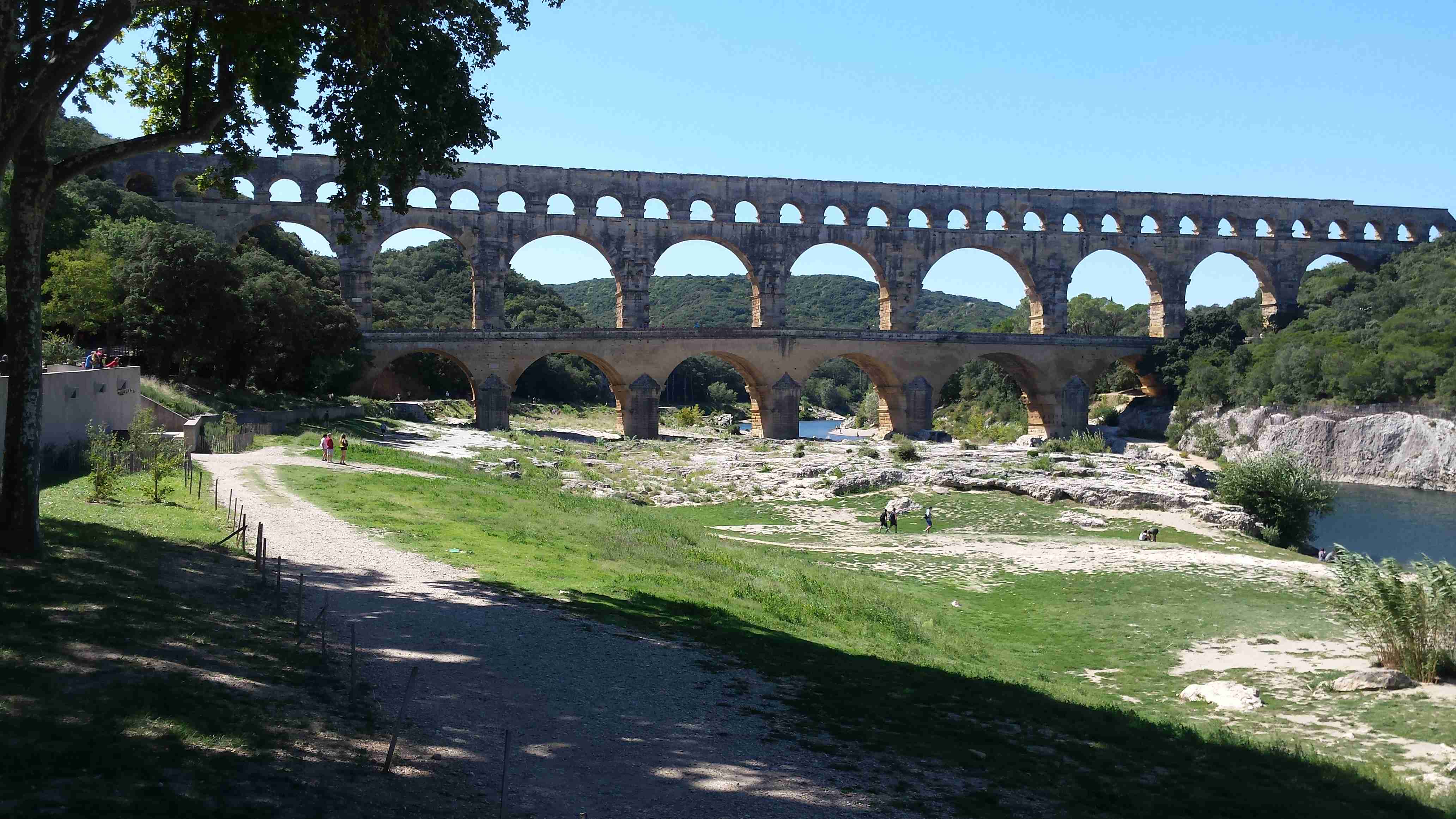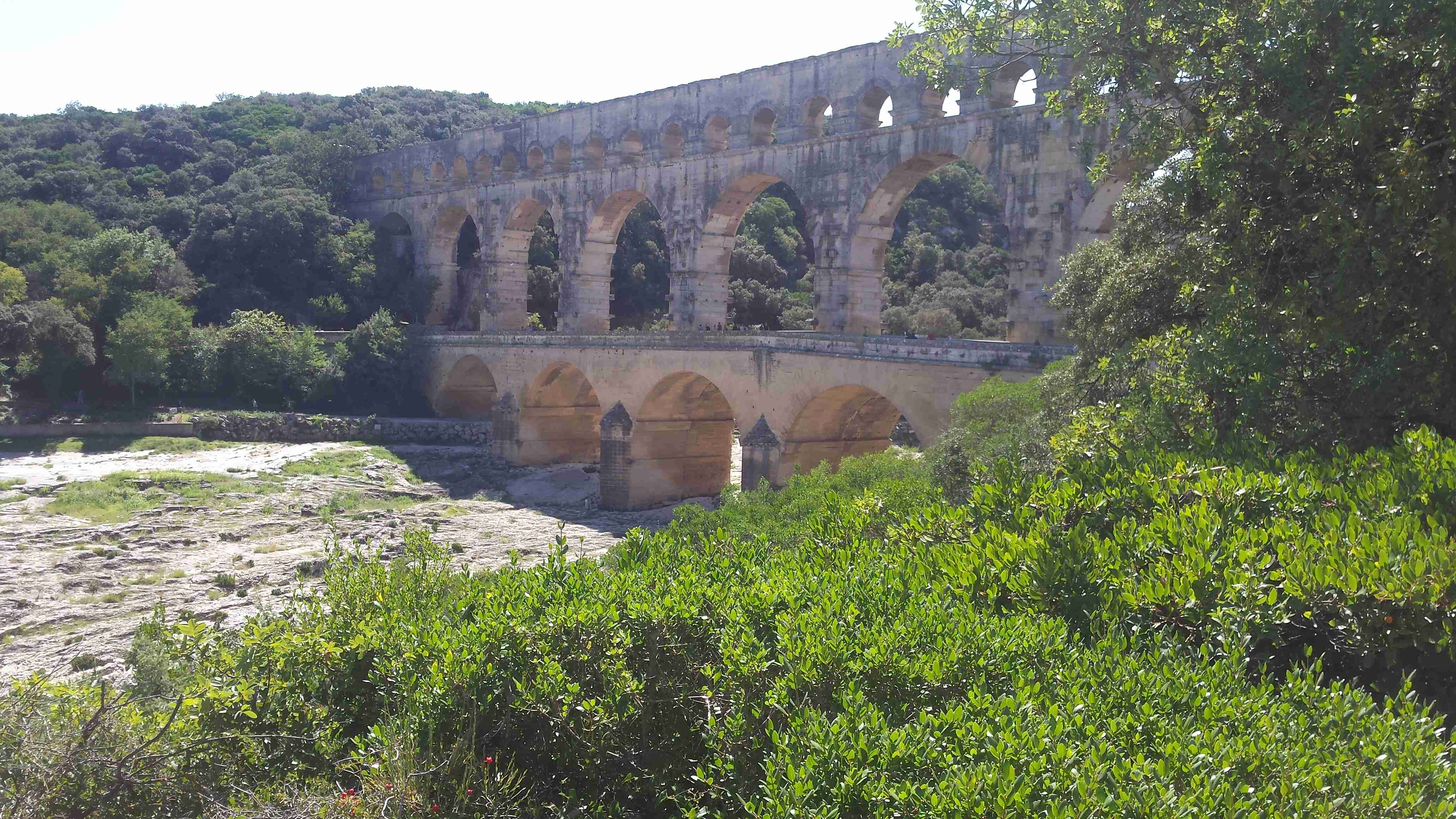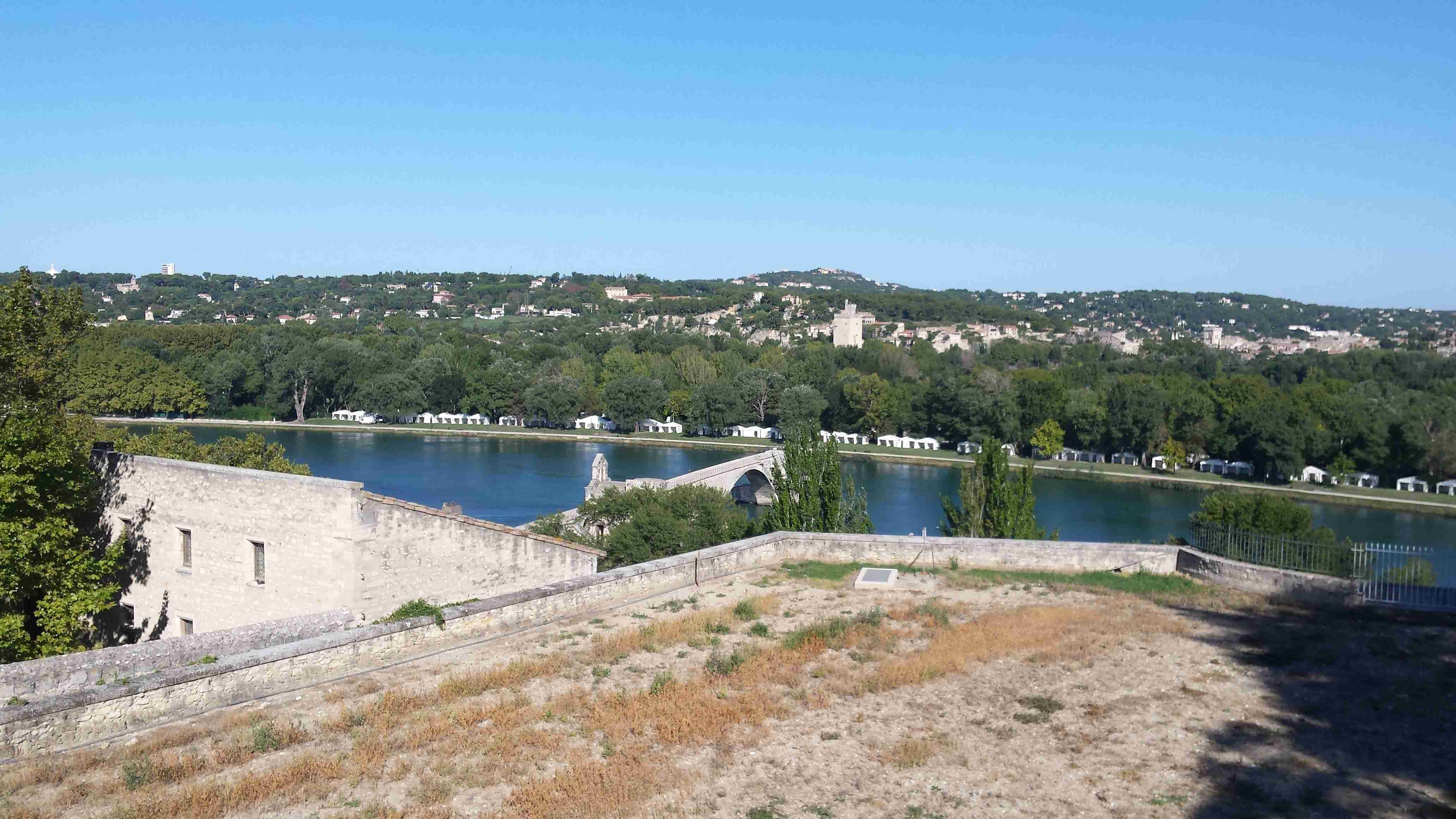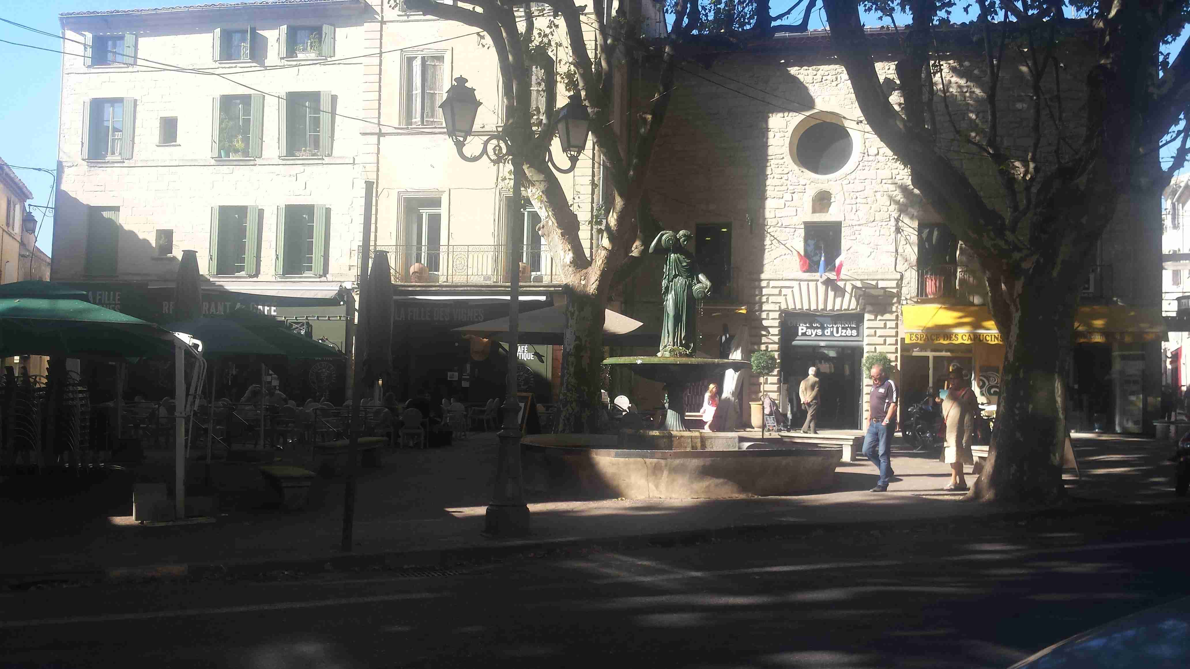 Ráno jsme vyjeli autobusem až v 9 hodin oblečeni do civilu, neboť nás čekala jako první návštěva Avignonu. Autobus zaparkoval u hradeb, do města jsme vstoupili branou Porte du Rhone, došli jsme společně uličkami k ještě nezaplněnému Place du Palais před papežským palácem, odtud potom po schodech nahoru do zahrad, odkud je vidět jak avignonský most sv. Benezeta, tak i v dáli Chateauneuf du Pape. Vrátili jsme se k paláci a po rozchodu jsme s Ivou zamířili po Rue de la Republique na Guinesse do Irish Pubu O’Neil’s abychom zavzpomínali na naší minulou návštěvu na stejném místě před 8 roky, tehdy ještě se Zdeňkem a Marcelou. Cestou zpět jsme se zastavili v infocentru, ve veliké prodejně kosmetiky, koupili jsme ještě nějaké drobnosti a pak již cesta autobusem na start dnešní krátké etapy. Autobus nás vysadil kousek před obcí Les Codes, pár kilometrů jsme museli jet po hlavní silnici, ze které jsme odbočili doleva na utajenou cestu vedoucí k Pont du Gard – oficiální vstup k akvaduktu je nehorázně zpoplatněn, proto ta boční silnička z jiné strany. U akvaduktu jsme již také byli při naší minulé návštěvě, přesto jsme se po něm prošli a udělali spoustu fotek ze všech stran. Když jsme se dost pokochali, vzali jsme si kola a vyrazili na cestu. Vrátili jsme se k hlavní silnici, tu jsme však přejeli na druhou stranu a po vesnických silničkách rovnoběžných s hlavní jsme se blížili k Uzés. Těsně před městem jsme se na chvilku vrátili na hlavní, ale jen co jsme po mostě přejeli přes řeku, hned jsme zase odbočili na vedlejší silničku. Do města jsme museli vyjet do poměrně prudkého kopce, ale nebylo to naštěstí dlouhé. Město samotné je středověké a lehce se v něm zabloudí. Na náměstí pod platany jsme si dali víno, připojili se k nám i naši sousedi z autobusu. Po posezení jsme ještě prošli městem, našli jsme tu správnou silnici a vyrazili do kempu, který byl vzdálen cca 5 km. Pouze 25 km, ale hodně poznávací. K večeři byla paella a bylo to žrádlo.