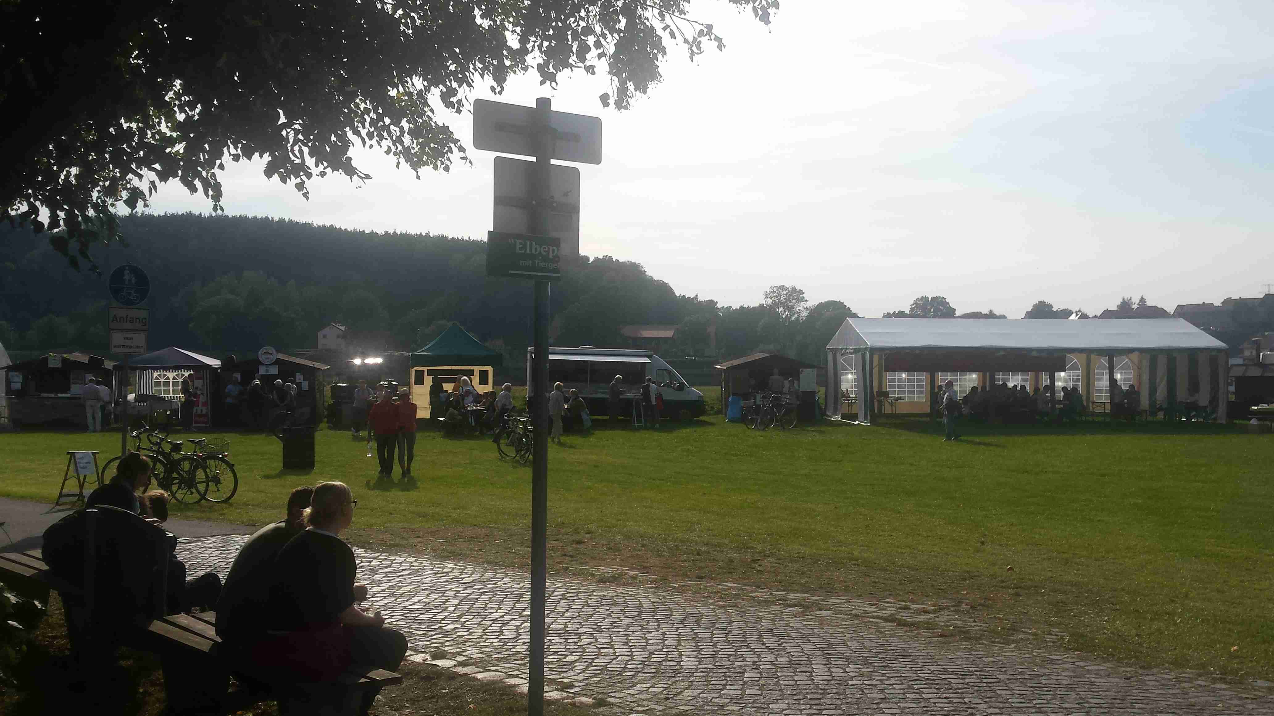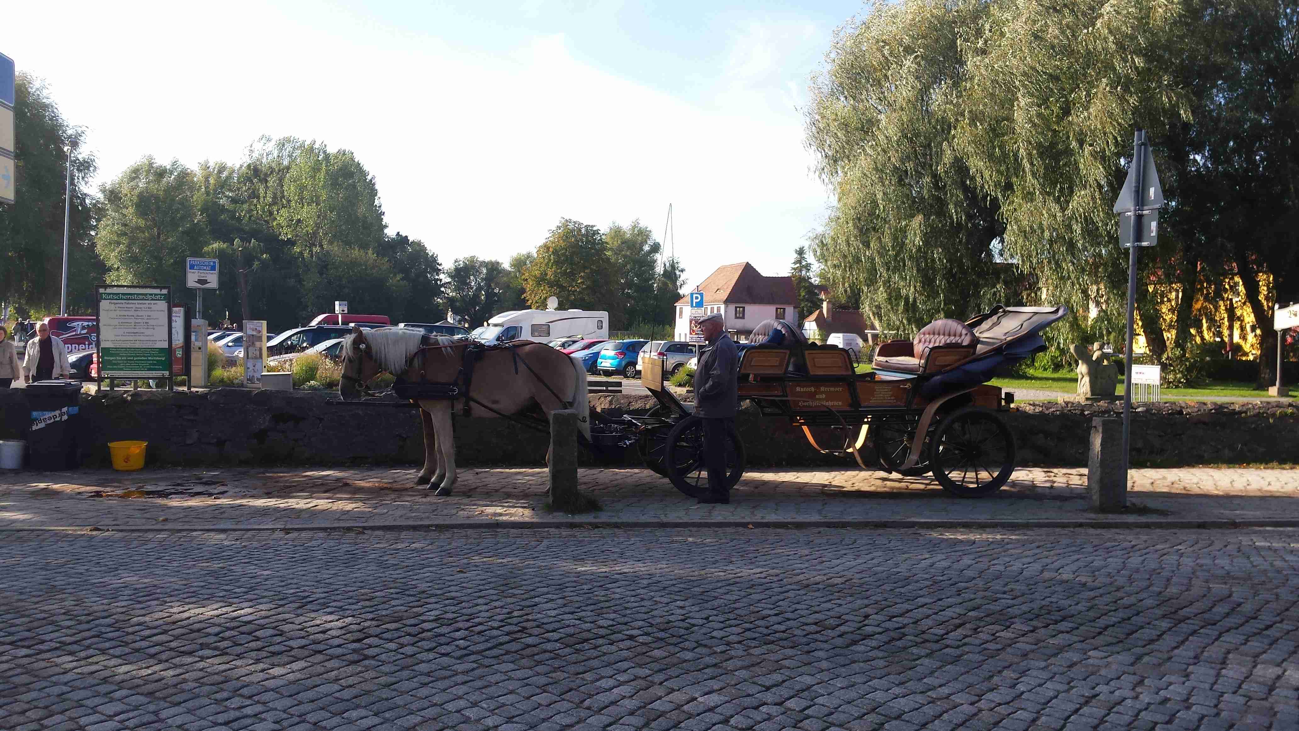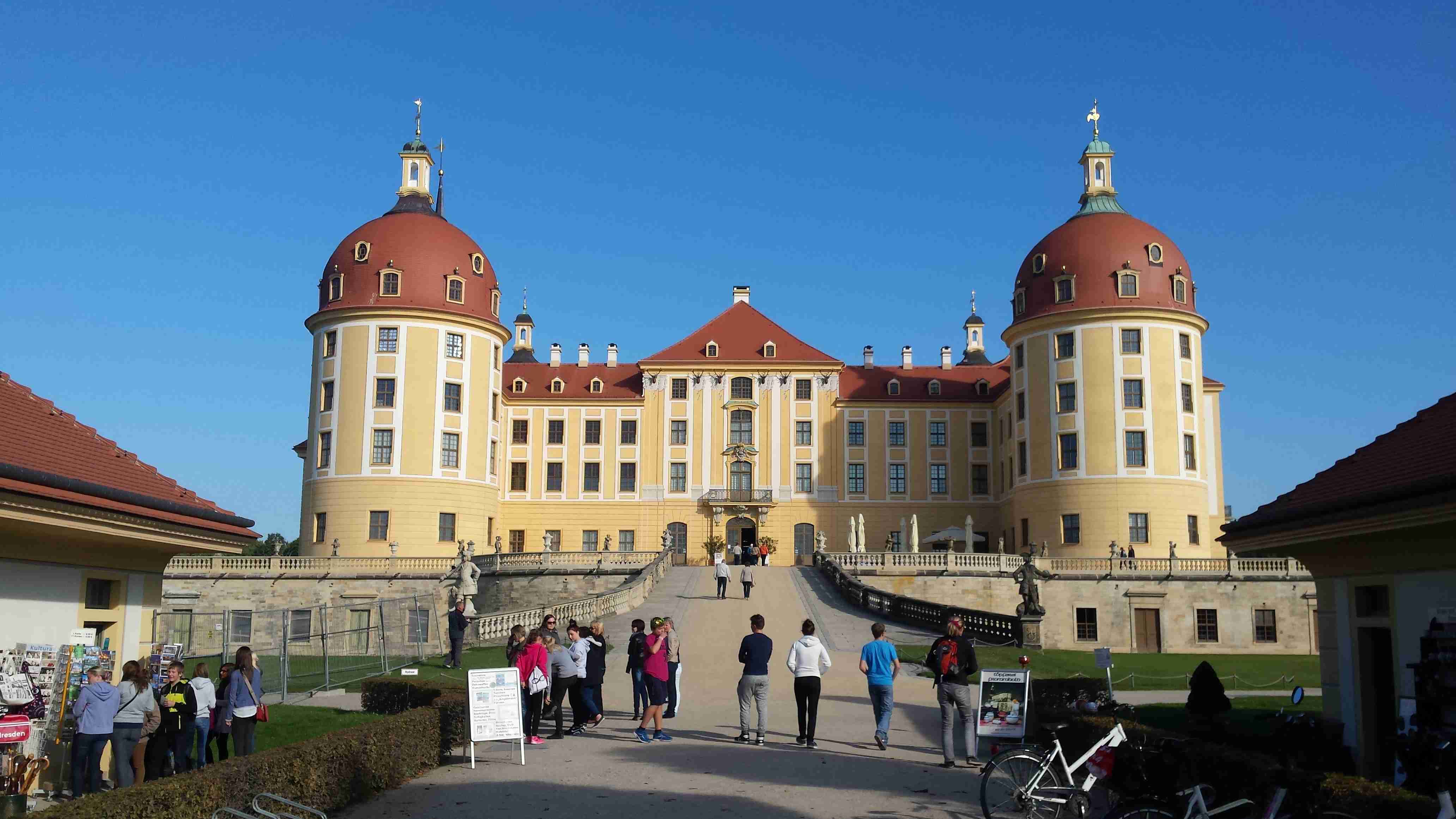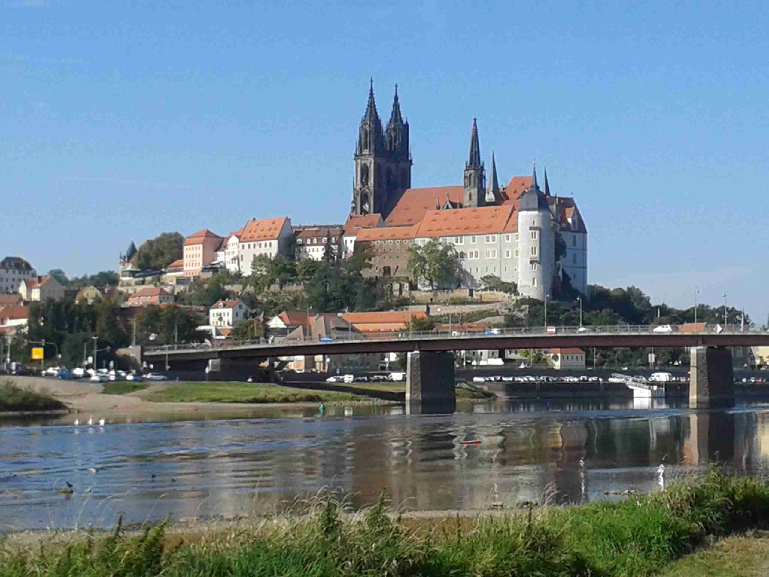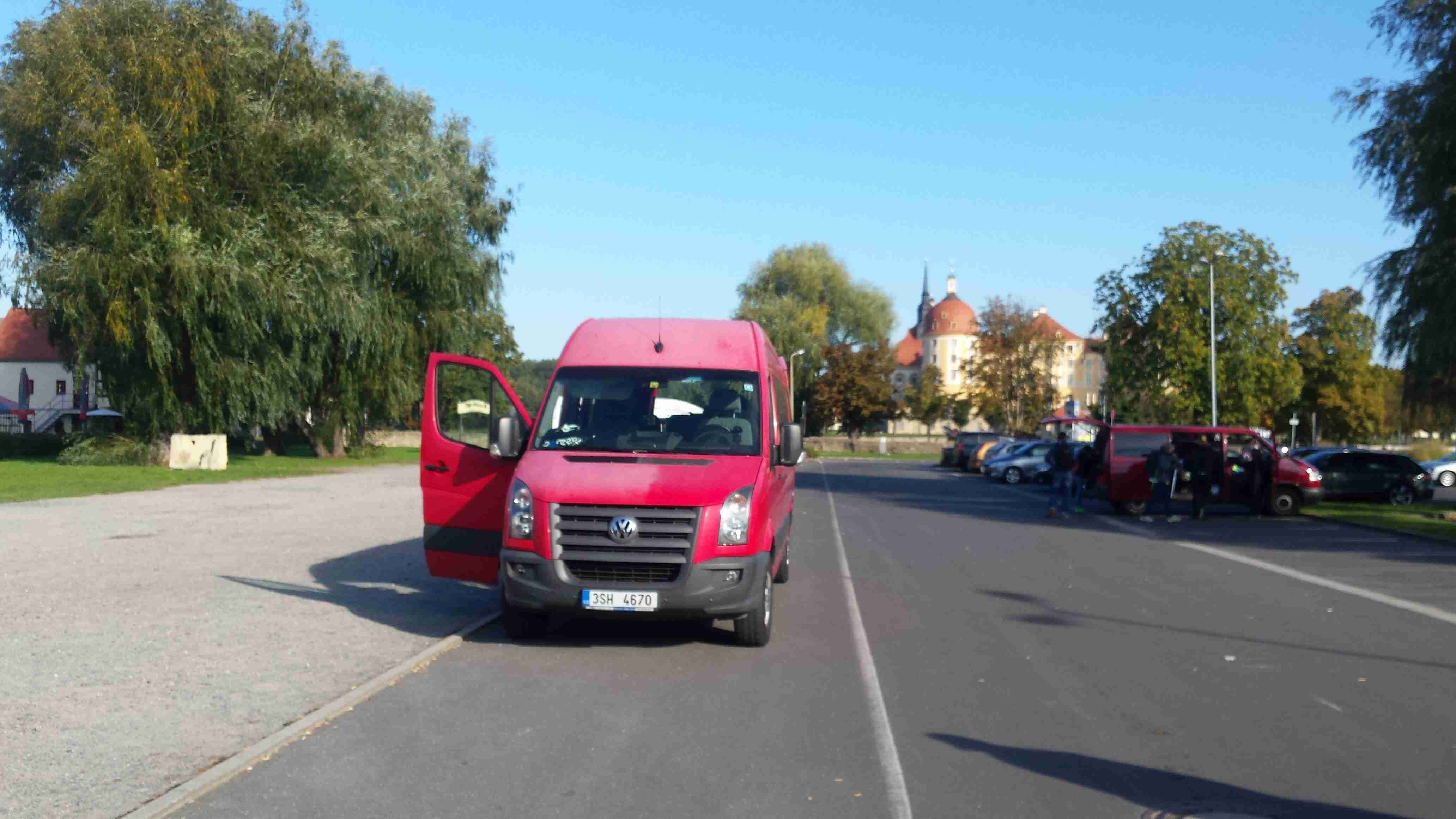 V sobotu ráno před devátou nás dodávka CK Rubikon naložila na D8 na poslední pumpě před hranicemi, mimo průvodce Lubora a řidiče a mechanika Lukáše, jel ještě jeden manželský pár z Českých Budějovic, takže sestava více než komorní. Zhruba za hodinu jsme dorazili na zámek Moritzburg, známý z dnes již kultovní pohádky o Popelce. Po vyložení kol jsme se vydali na prohlídku zámku, který jsme si obešli a nafotili a zhruba kolem 11. hodiny jsme vyrazili na cestu. Jeli jsme s Luborem a tak jsme se nemuseli starat o sledování mapy. Trochu jsme si sice zajeli, ale nakonec jsme sjeli z kopců dolů, projeli Radebeulem k řece a tam, na Labské cyklostezce, již nebylo co řešit. Po třech kilometrech jsme se dostali do místa, kde jsme na jaře přejeli po mostě a tak následujících cca 12 km až do Míšně bylo totožných s těmi jarními. V Míšni na nábřeží jsme minuli místo, kde jsme na jaře končili, ale tentokrát jsme frčeli dál. Jménem upoutala obec Zadel, o kus dál, v Nieschütz, probíhalo vinobraní a my jsme museli kvůli množství návštěvníků sesednout z kol a projít pěšky mezi stánky. Další obcí byl Diesbar - Seusslitz, kde jsme původně měli nocovat, ale díky vinobraní byly všechny obytovací kapacity již dávno dopředu vyčerpané. Takže nyní zde čekala dodávka, kterou jsme našli zaparkovanou vedle cyklostezky a tak jsme si u ní nechali kola a šli se podívat k těm několika stánkům, které představovaly vinobraní. Dali jsme si zvěřinovou klobásu, já pivo, Iva pochybný burčák, zde zvaný Fedeweiser. Času bylo dost, nikam jsme nespěchali, Lubor vyrazil na další cestu bez nás a my jsme také po půl čtvrté vyjeli. Na hotel zbývalo cca 12 km, slabá hodinka. Jeli jsme tedy lážo plážo, ne jako s Luborem, kdy jsme to valili, abychom ho nezdržovali. Projeli jsme obcemi Merschwitz, Leckwitz a Nünschritz a před 17. hodinou jsme dorazili do Moritz, kde jsme u silnice našli stejnojmenný hotel. Na parkovišti již čekal Lubor s Lukášem, po nějaké době dorazili i naši kolegové a tak jsme se kole půl šesté ubytovali a na půl sedmou jsme vyrazili navečeři. Vzhledem k tomu, že zde byla svatba (stejně tak i na jaře v Heidenau), jsme museli na jídlo čekat déle, ale nebylo kam spěchat. Nakonec jsme si pochutnali a kolem desáté jsme šli spát.