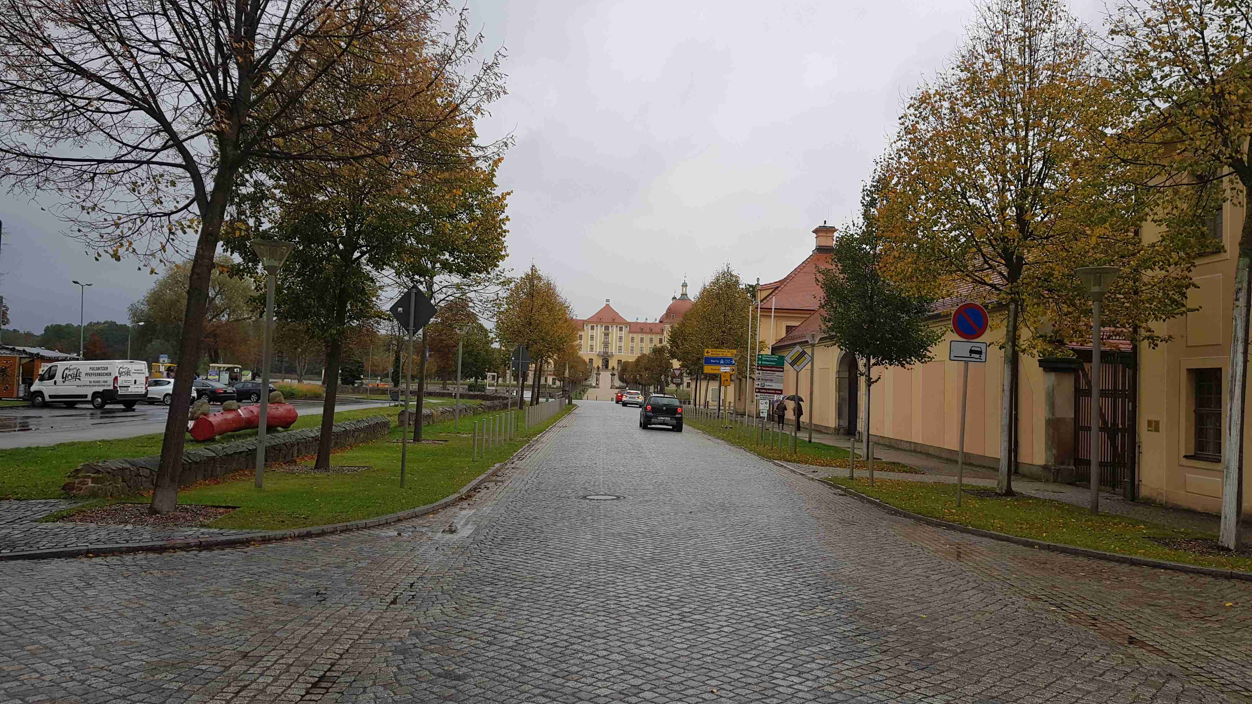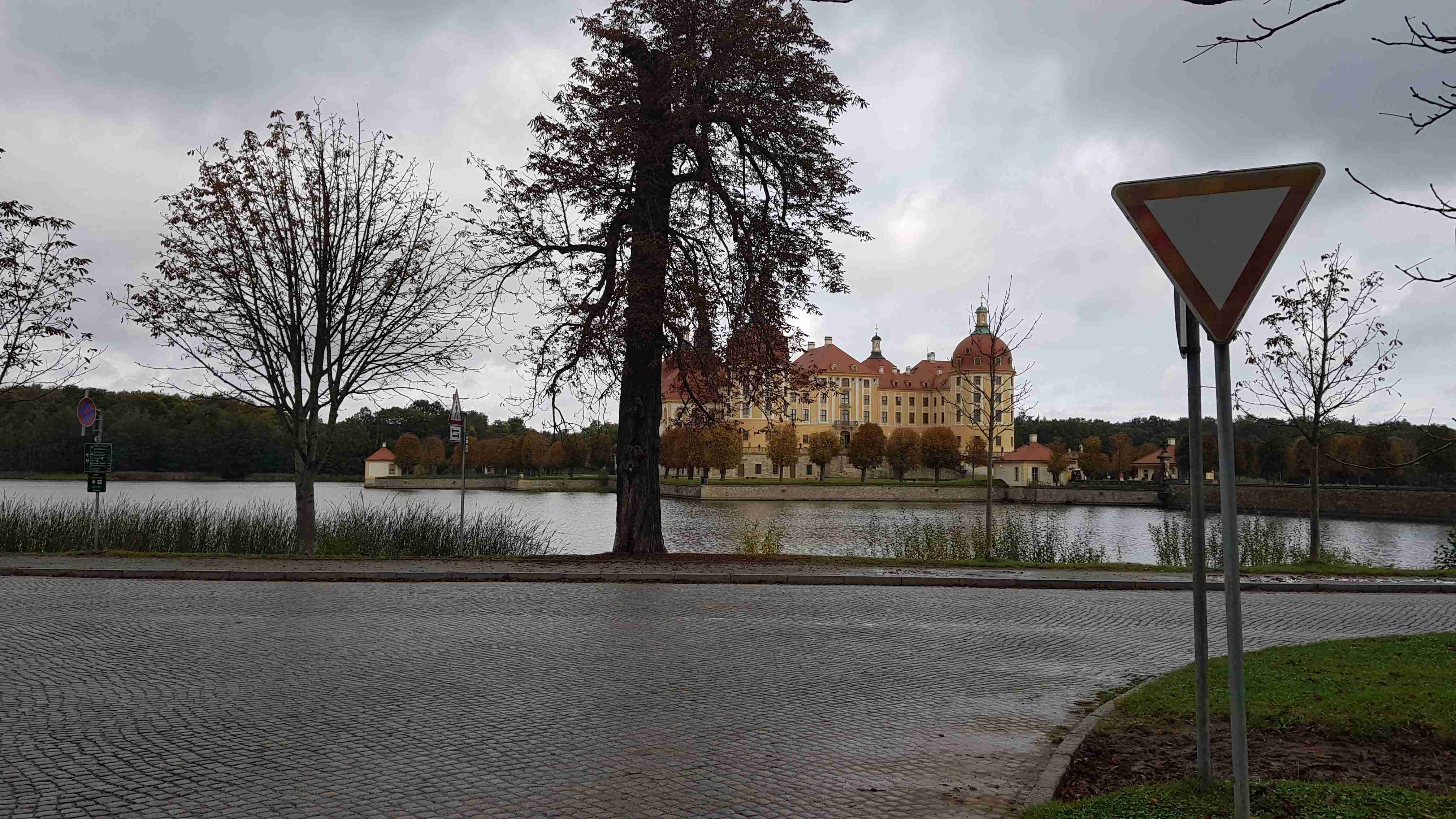 Potřetí vyrážíme na závěrečný cyklovýlet do Saska, máme to „za barákem“, ale tentokrát počasí nepřeje, a tak jediným plusem je, že jsme pouze tři manželské páry, které se známe navzájem, plus Lubor, jako průvodce, a Karel, jako řidič dodávky a mechanik zároveň. Na Moritzburgu prší, chvíli váháme s odjezdem, ale nakonec vyrážíme. Ale ještě v městečku zastavujeme pod vzrostlým stromem a čekáme, jestli nepřestane pršet. Nepřestává, ale trochu se to zmírňuje, tak vyrážíme na nám již známou trasu. Cesta je to neveselá, skoro nikoho nepotkáváme. Sjíždíme do Radebeulu a najíždíme na Labskou cyklostezku – téměř žádní cyklisté a všechny hospody zavřené, smutná cesta. Naštěstí je to naše nejkratší saská etapa prvního dne, končíme již po cca 37 km za obcí Nieschütz v penzionu Merkers Weinstube, kde jsme si hned po příjezdu dali na zlepšení nálady pár Federweissenů, německých burčáků. Teprve potom jsme se ubytovali a trochu zahřáli a zkulturnili ve sprše. Společně jsme pak povečeřeli, byli jsme tam skoro sami, nálada výborná.