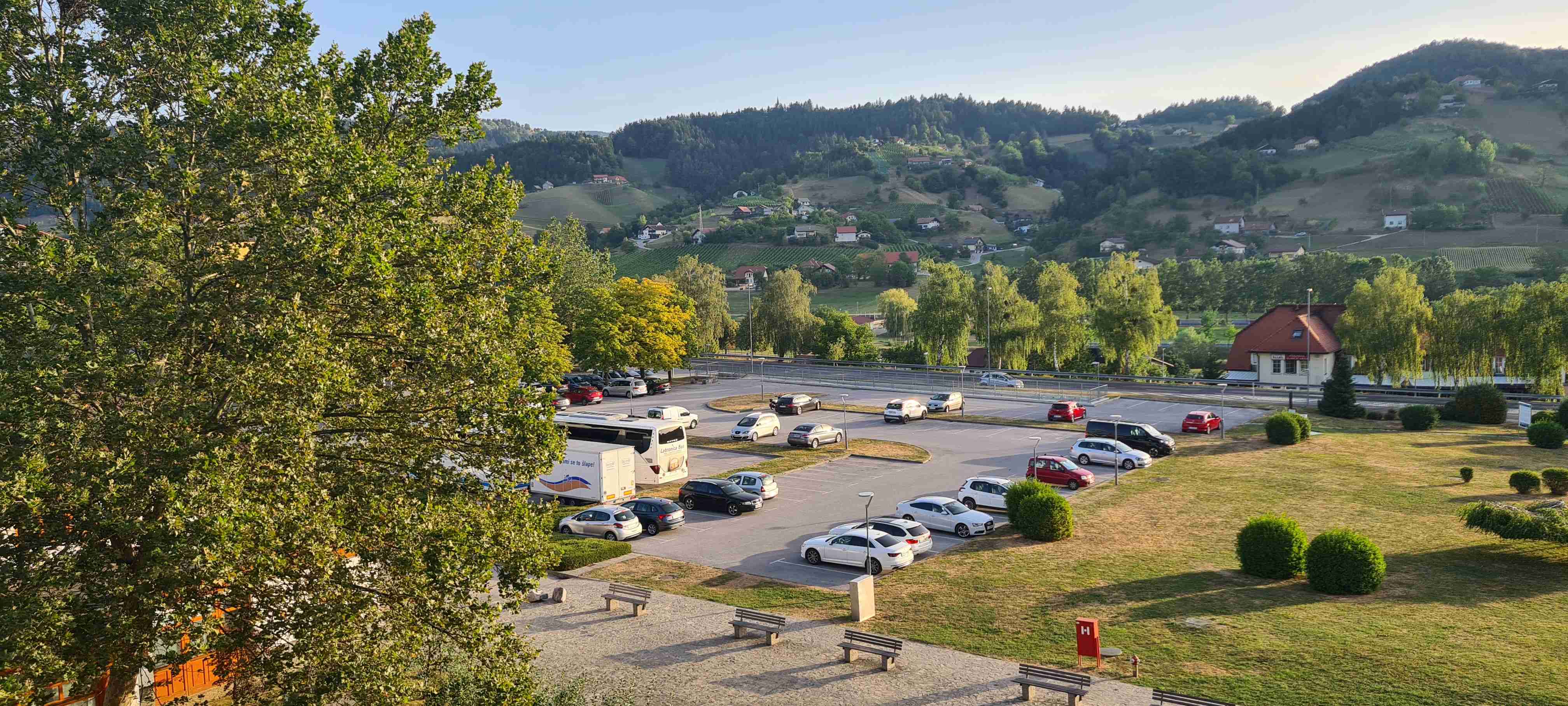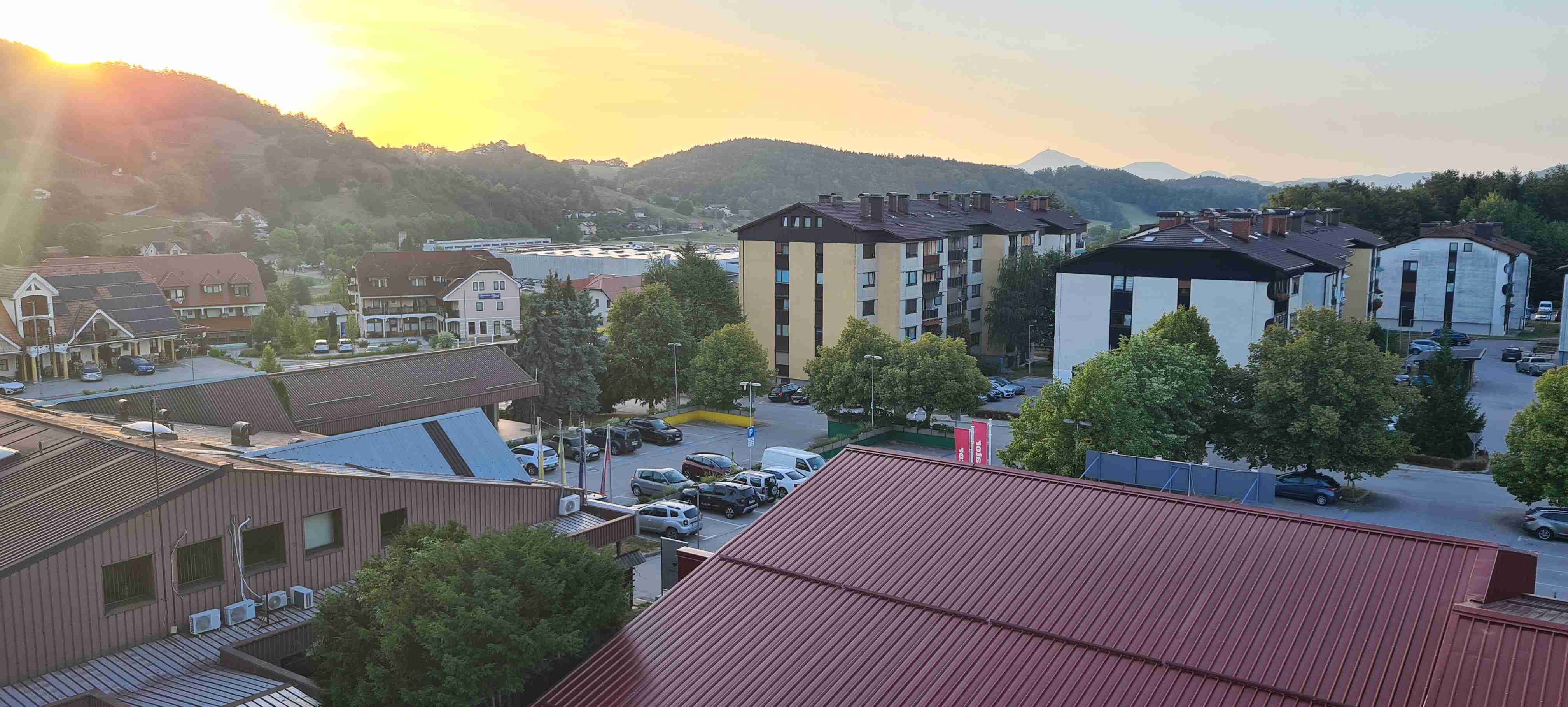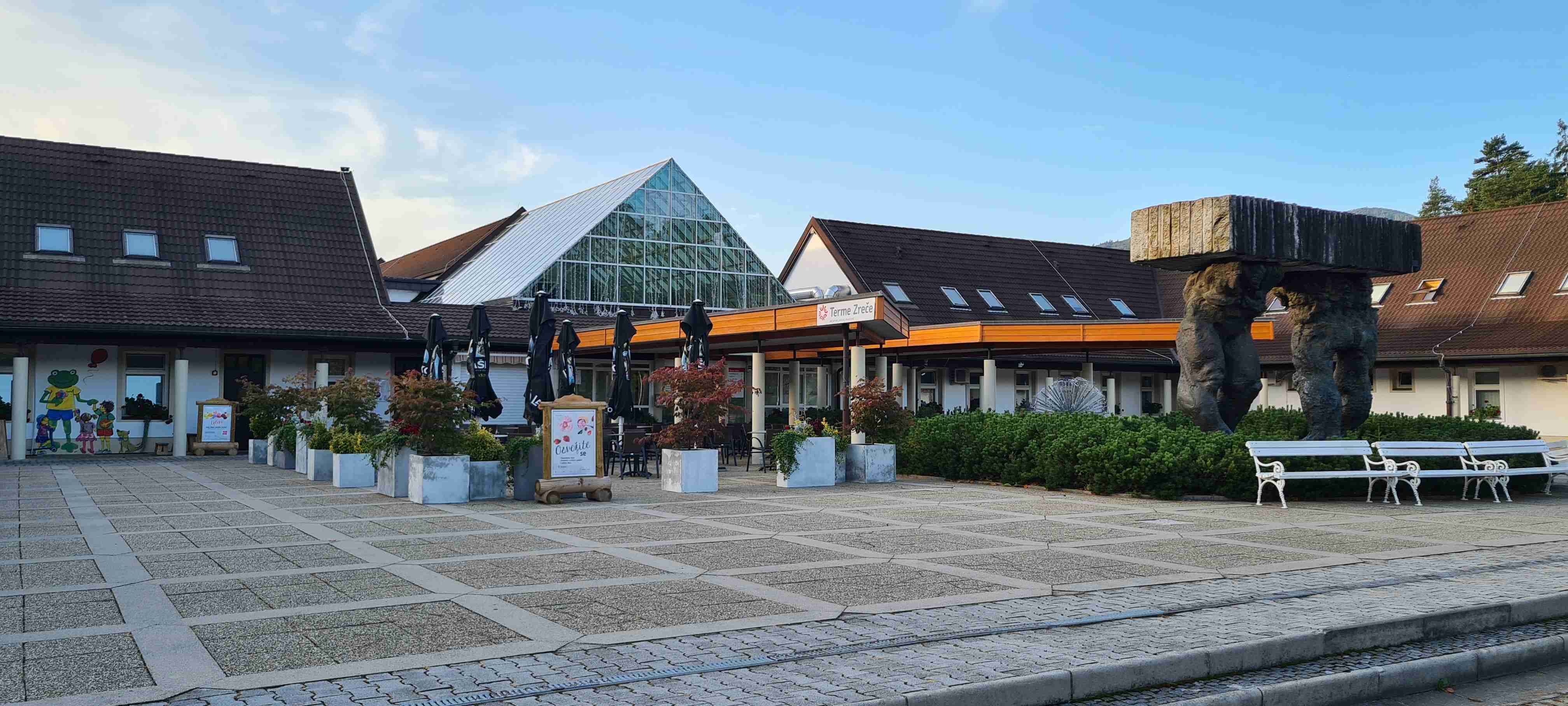 Po krátké době se vracíme do Slovinska, tentokrát nejenom spát, jako v Kranjske Goře před měsícem, ale i jezdit na kole. Zreče je novinkou v nabídce Eurocyklu Herdegen, jedná se zároveň i o lázeňský resort, a tak jsme byli zvědavi, co nás čeká. Vše začalo ve středu ráno v Praze na Chodově, kde jsme nastoupili do stejného autobusu se stejným řidičem i průvodcem Vlastimilem, jako před měsícem. Trasa však tentokrát vedla nejprve přes Říčany a Brno, poté již do Rakouska na Vídeň a Graz a do Slovinska přes Maribor, kousek pod ním jsme se stočili doprava na Slovenskou Bistrici a pár kilometrů za ní jsme sjeli z dálnice a přes Slovenské Konjice to bylo do Zreče již kousek. Ubytováni jsme byli v areálu Therme Zreče, který obsahuje 2 hotely a bazénový komplex čítající několik vnitřních i vnějších bazénů. Náš hotel Atrij byl ten luxusnější z těch dvou, a i pokoje stály za to – patrový pokoj s obývákem dole a ložnicí a koupelnou v poschodí, v každém patře balkon, a to každý na jinou stranu. Měli jsme polopenzi, snídaně a večeře formou bufetu a je třeba říci, že i to jídlo bylo skvělé. To jsme zjistili hned po ubytování se kolem 19. hodiny, kdy jsme ze svých hogo fogo pokojů vyrazili na večeři.