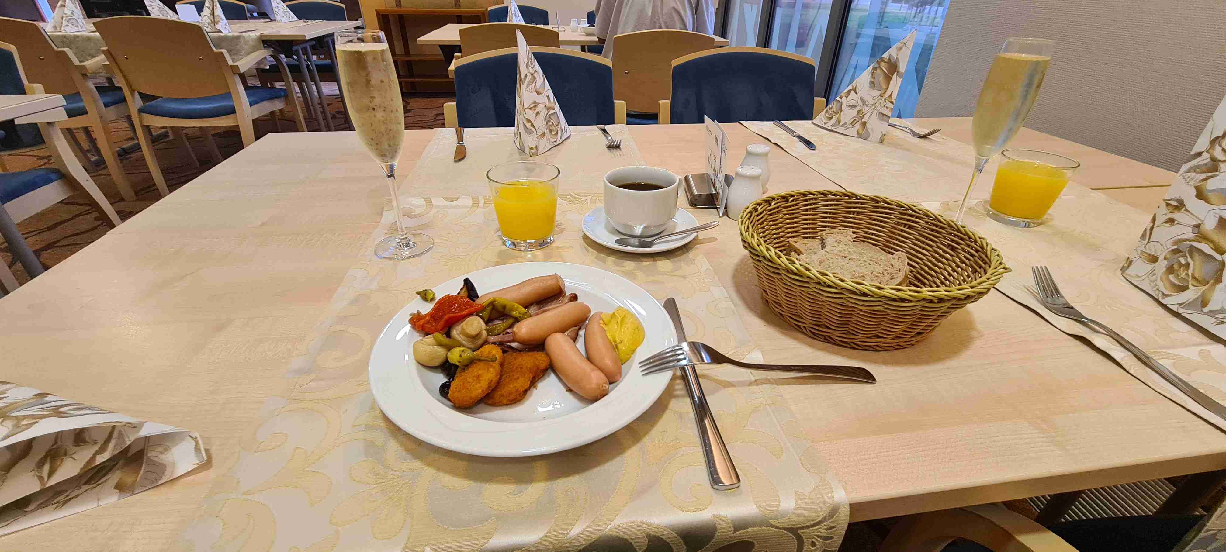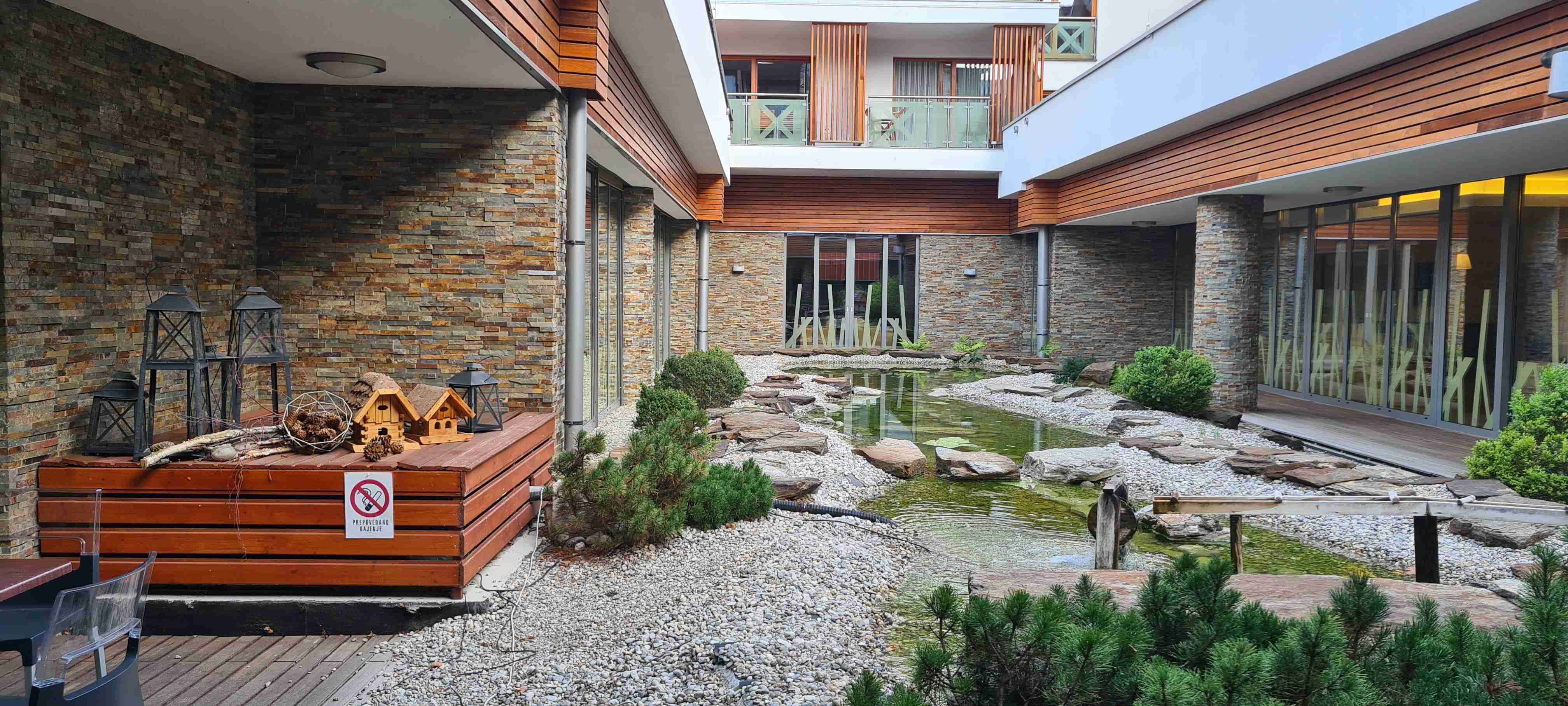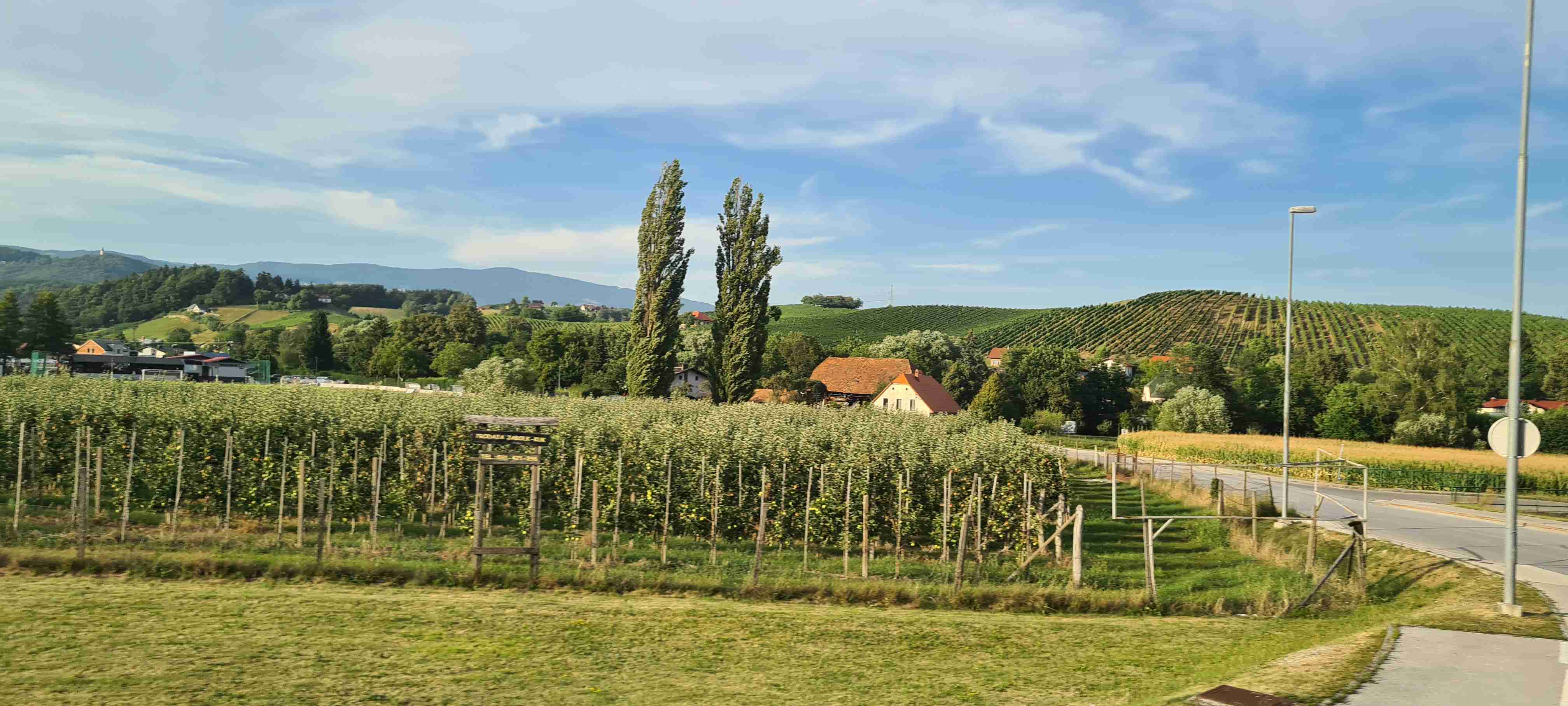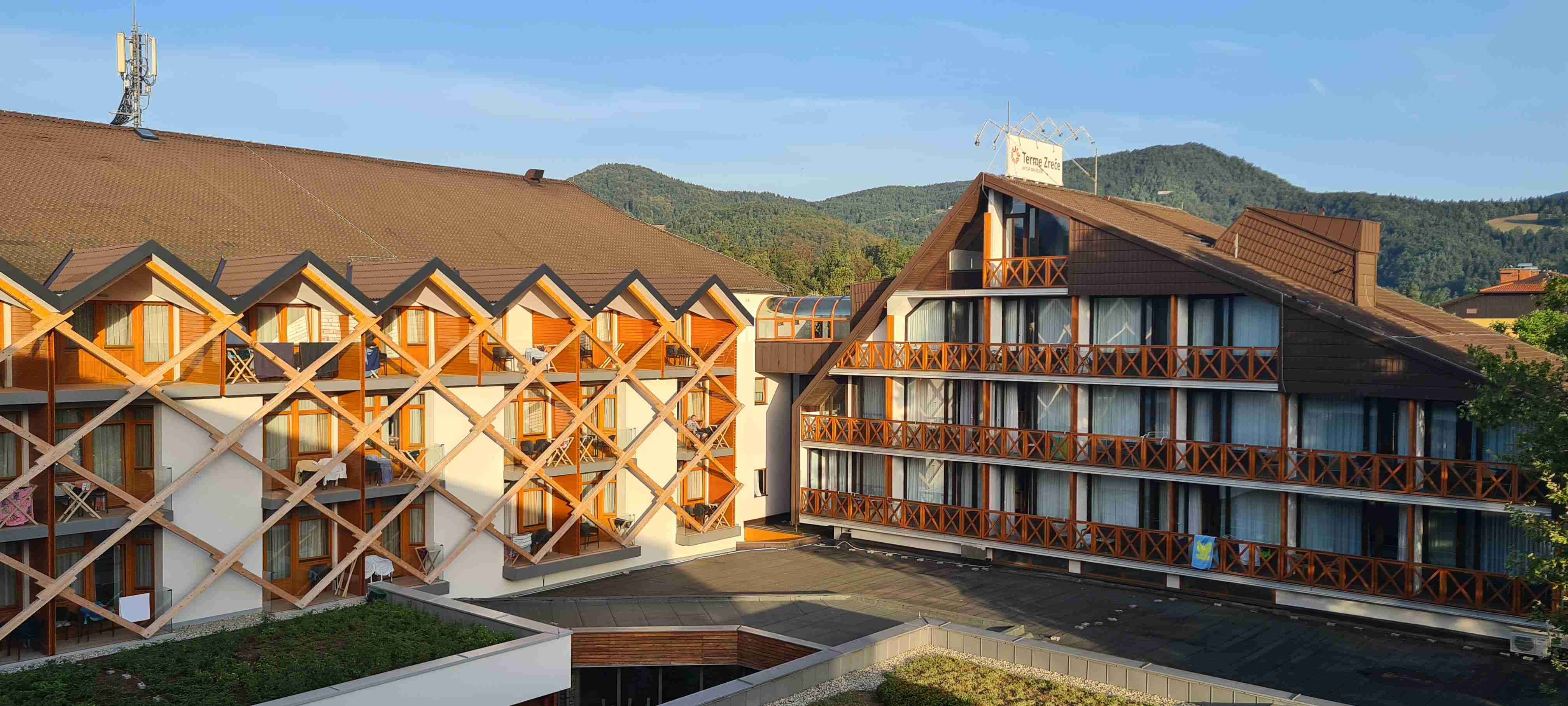 Po krátké době se vracíme do Slovinska, tentokrát nejenom spát, jako v Kranjske Goře před měsícem, ale i jezdit na kole. Zreče je novinkou v nabídce Eurocyklu Herdegen, jedná se zároveň i o lázeňský resort, a tak jsme byli zvědavi, co nás čeká. Vše začalo ve středu ráno v Praze na Chodově, kde jsme nastoupili do stejného autobusu se stejným řidičem i průvodcem Vlastimilem, jako před měsícem. Trasa však tentokrát vedla nejprve přes Říčany a Brno, poté již do Rakouska na Vídeň a Graz a do Slovinska přes Maribor, kousek pod ním jsme se stočili doprava na Slovenskou Bistrici a pár kilometrů za ní jsme sjeli z dálnice a přes Slovenské Konjice to bylo do Zreče již kousek. Ubytováni jsme byli v areálu Therme Zreče, který obsahuje 2 hotely a bazénový komplex čítající několik vnitřních i vnějších bazénů. Náš hotel Atrij byl ten luxusnější z těch dvou, a i pokoje stály za to – patrový pokoj s obývákem dole a ložnicí a koupelnou v poschodí, v každém patře balkon, a to každý na jinou stranu. Měli jsme polopenzi, snídaně a večeře formou bufetu a je třeba říci, že i to jídlo bylo skvělé. To jsme zjistili hned po ubytování se kolem 19. hodiny, kdy jsme ze svých hogo fogo pokojů vyrazili na večeři.