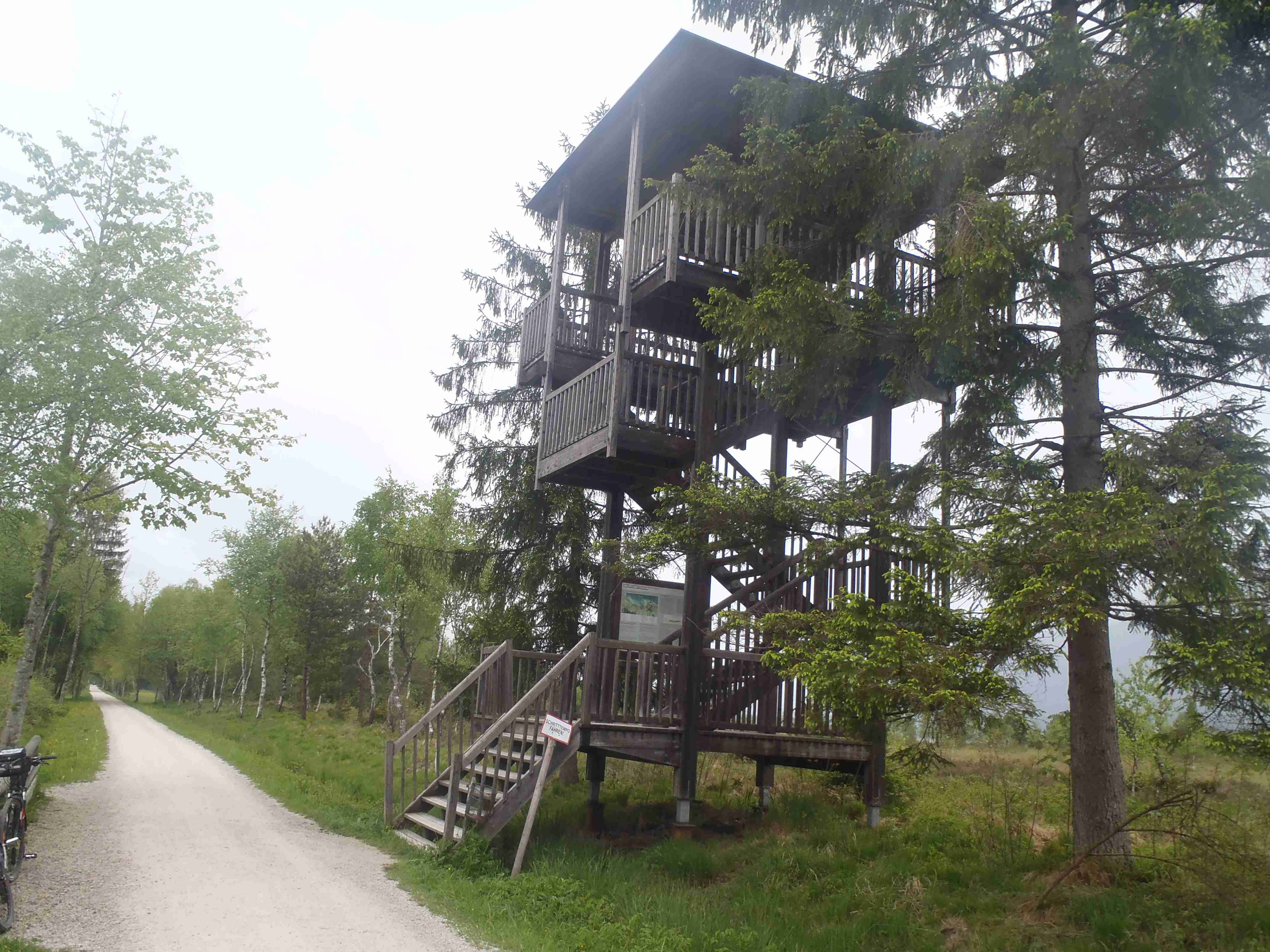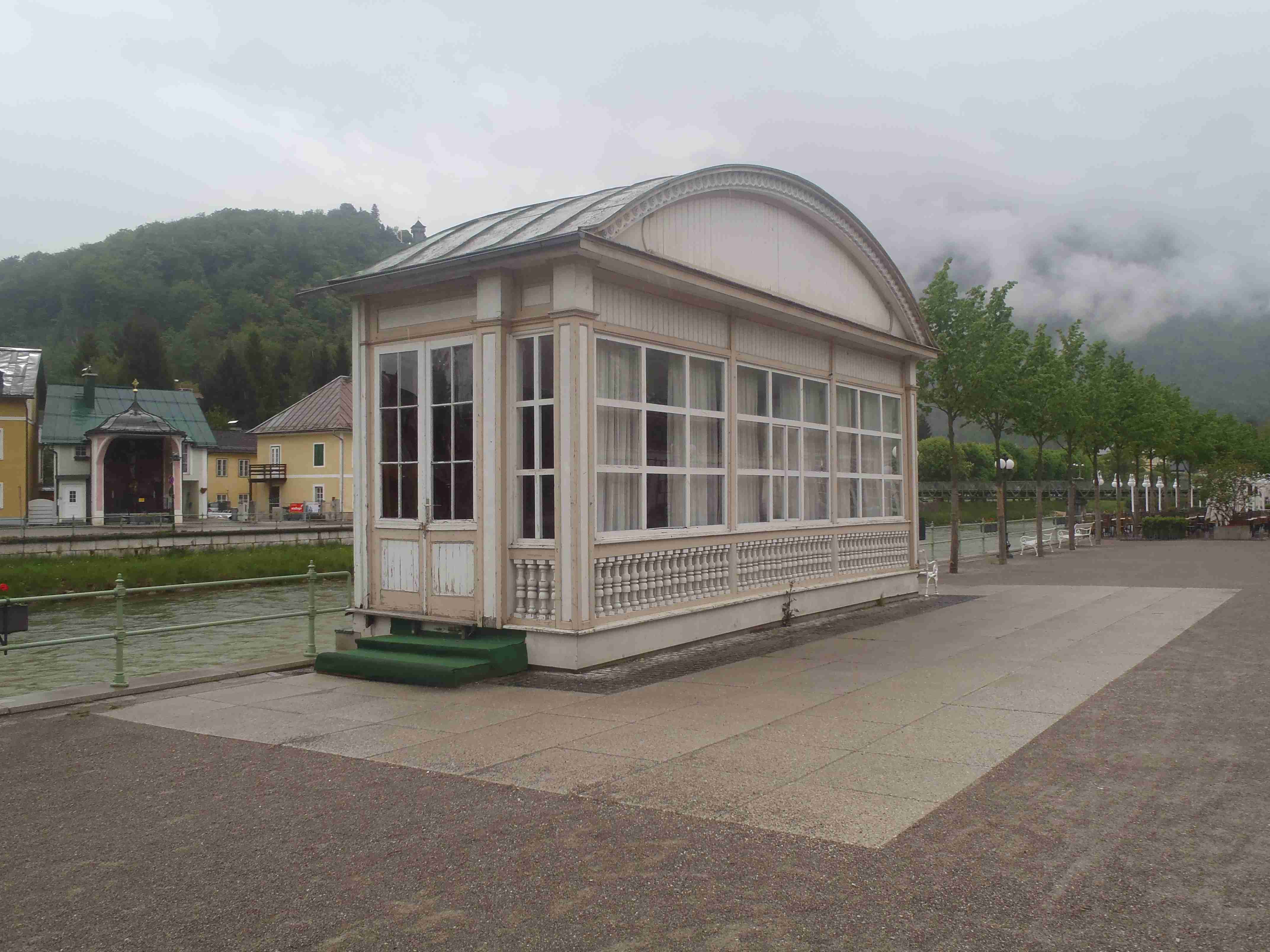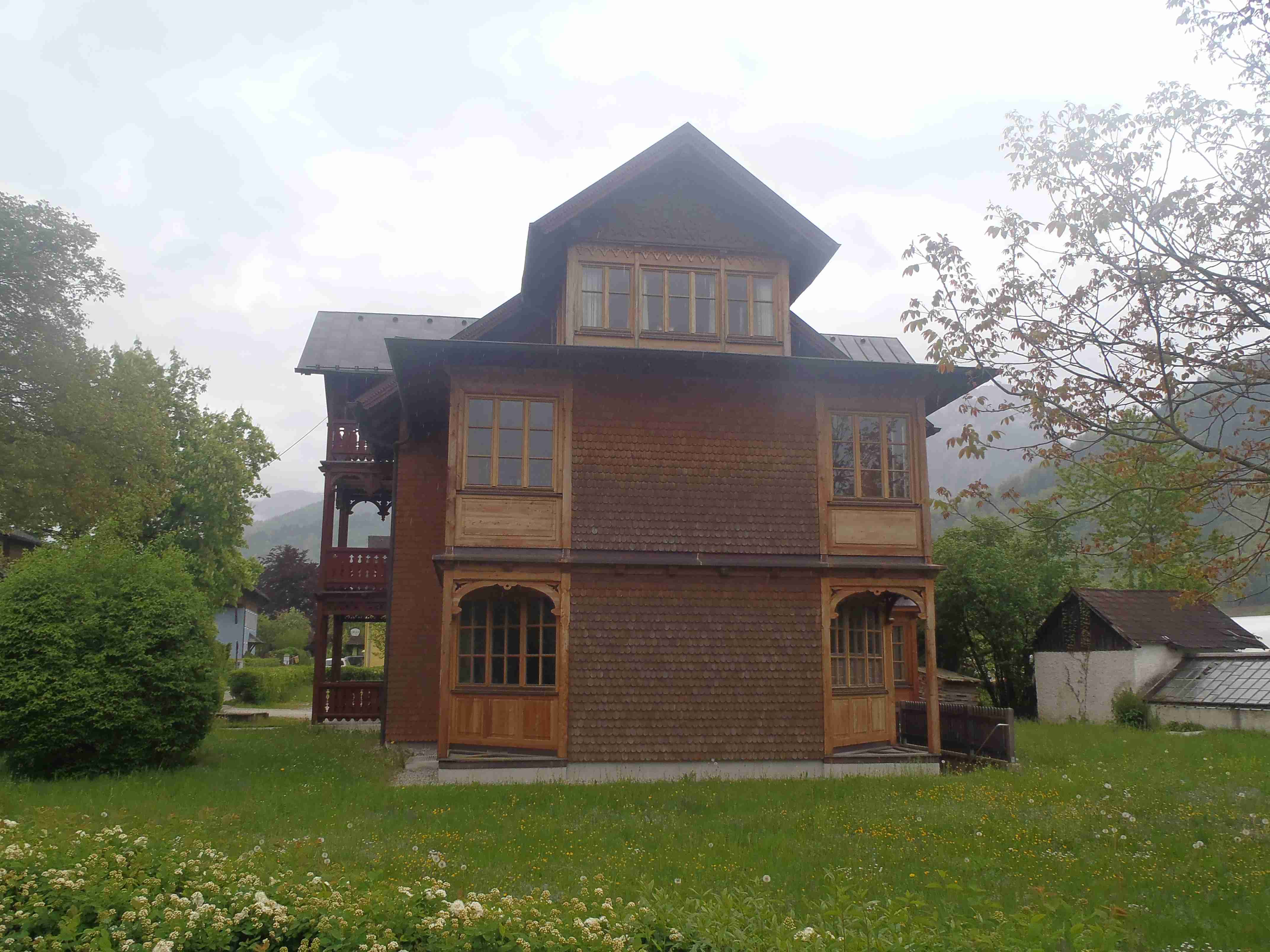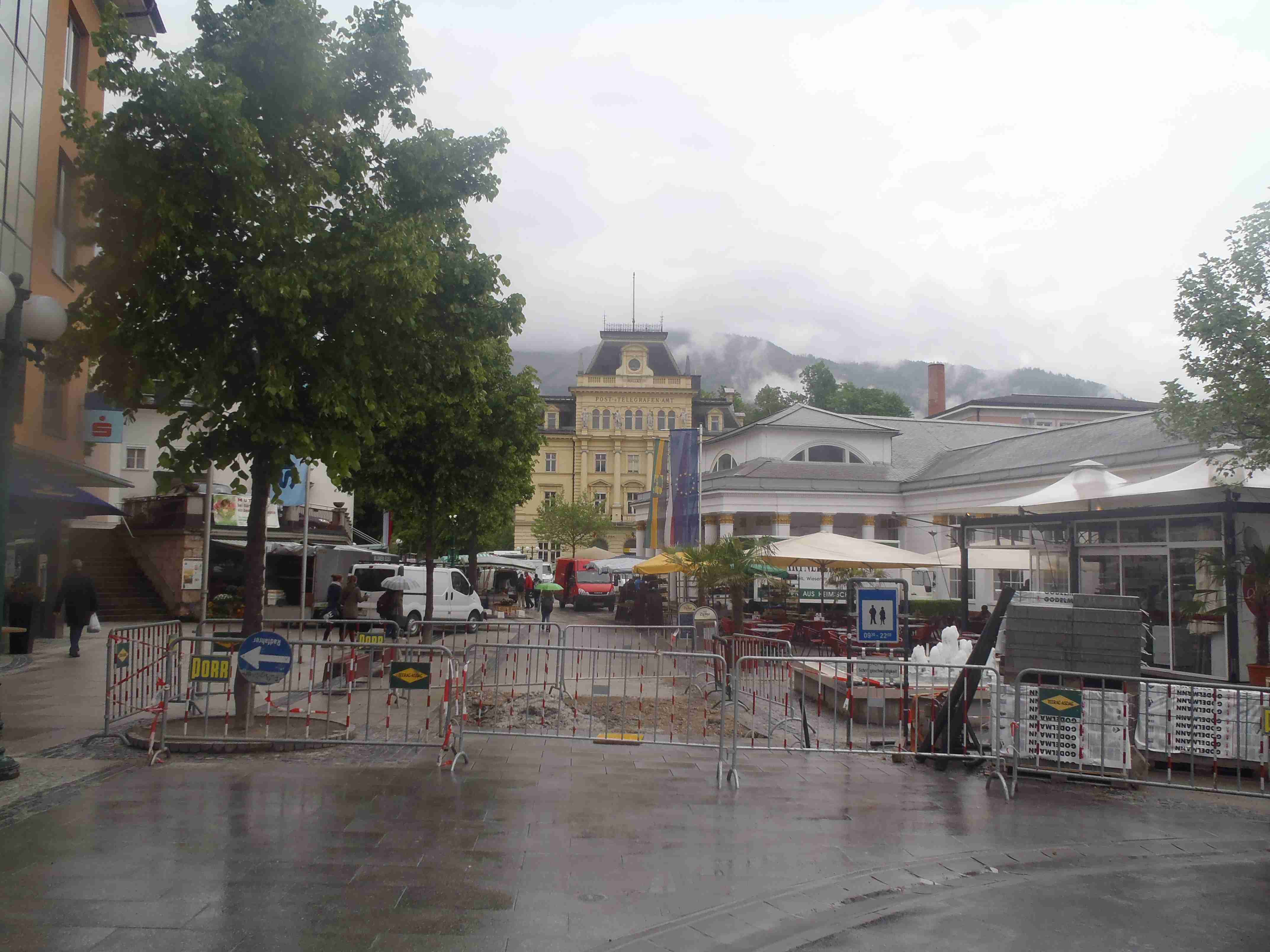 Snídaně v 8:00, vydatná, velký výběr salámů, v 9:00 briefing, venku bylo právě po dešti. Lubor prohodil denní program s ohledem na počasí a královskou etapu přesunul na sobotu, kdy by mělo být nejlepší počasí. Na pátek jsme si mohli naplánovat okružní cestu kolem jezera a okolí dle chutě a nálady, dostalo se nám několik variant. My jsme si vybrali cestu do Bad Ischl a odtud do St. Wolfgang. Vyrazili jsme cca v 10:45 po cyklostezce kolem jezera směrem na Strobl. Cestou jsem Ivě opravoval padající zadní blatník, kde však byla stržená matka a tak se oprava příliš nevydařila a to se jí stalo osudným – kousek před Stroblem se podívala na zadní kolo a přehlédla ocelovou závoru přes cestu. Já jel ve předu, strašná rána a když jsem se otočil, Iva ležela i s kolem na zemi. Oddychl jsem si, když se začala hýbat, po chvilce se i zvedla. Naštěstí si nic nezlomila, pouze nějaké naraženiny a trochu roztržené kalhoty. Ještě, že tak. Stroblem jsme projeli a pokračovali stále dál na východ po stezce podél silnice na jedné straně a řeky Ischl na druhé. Po projetí Aigenu zhruba na úrovni obce Ramsau cyklostezka podjede hlavní silnici, odkloní se od ní a začne stoupat směrem k Lindau. Nahoře se jede pár kilometrů mírně zvlněnou vesnickou krajinou se spoustou statků, cedule Bad Ischl je ještě na kopci, ale pak se sjíždí krátký prudký sjezd dolu do města k řece. Podél řeky promenádou jsme dojeli do centra, kde se mohutně opravuje před nastávající letní sezonou, a pěší zónou jsme došli na Sparkasseplatz, kde jsme si pod slunečníkem dali kafe a pivo. Musím podotknout, že bylo podstatně chladněji, než včera, a většinu cesty i mrholilo, ale pořád to ještě šlo. Po občerstvení jsme se v cca 13:00 vydali zpět, prudký úsek jsme statečně vytlačili, po kopečkách se pěkně pohoupali a po sjezdu zpět do Ramsau a podjetí silnice jsme uhnuli z předchozí trasy, sjeli jsme blíže k řece a snažili se najít nějaký most, abychom se dostali na druhou stranu a našli cyklostezku do St. Wolfgangu. Po jednom zeptání jsme most opravdu našli, posléze i cyklostezku a pohodovou jízdou mírně zvlněnou krajinou jsme projeli obce Windhag a Weinbach, severně minuli Strobl a u obce Schwarzenbach jsme se ocitli opět na břehu jezera Wolfgangsee. Cyklostezkou na břehu jezera jsme projeli další obcí s názvem Au a krátce po 15. hodině jsme dojeli do St. Wolfgang. Udělali jsme pár fotek, sesedli z kol a na chvíli je odstavili, abychom si prohlédli městečko. Prošli jsme středem a poté sjeli ke břehu k přístavišti lodí. Iva si poseděla na lavičce, já mezitím zjišťoval odjezdy lodí, abychom se přepravili na druhou stranu, protože náš hotel byl přímo naproti přes vodu. Loď jsem zjistil, ale pak jsem si uvědomil, že musí jezdit ještě i pouhý přívoz mimo parníku jezdícího po celém jezeru - a opravdu, kousek za přístavištěm ukrytý v křoví byl sjezd k přívozu, který „premával“ na znamení do 17 hodin. Po cestě k Ivě hovící si na lavičce jsem si nafotil mašinky zubačky Schaftbergbahn, která vyváží lidi z nějakých 550 m n. m. do cca 1750m n. m. na horu Schaftberg. Jelikož byl ještě čas, vrátil jsem se kousek do centra a v obchodě koupil pro každého láhev vína, abychom ho nekonzumovali v restauraci, kde bylo poměrně drahé. Kolem půl páté jsem vyzvednul Ivu na nábřeží a dojeli jsme k přívozu, kde již čekalo několik našich kolegů. Za 3,5 Eura za osobu jsme se přepravili na druhou stranu a po pár set metrech jsme dojeli krátce před sedmnáctou hodinou zpět do hotelu. Najeto pohodových 35 km, cestou z Bad Ischl již skoro vůbec nepršelo. Sprchování bylo, co se týče teplé vody, bez problémů, avšak voda ze sprchy dotekla tentokrát až na koberec ložnice. Po sprchování samozřejmě následoval rituál vytírání a ždímaní ručníku. Na večeři jsme vyrazili po 19. hodině, dal jsem si klasický Wienerschnitzel s bramborem a salátem, Iva si vybrala nudle a jako klasicky její volba nevyšla – bylo toho hodně, ale bez chuti a bez zápachu a tak jsem jí dal alespoň kousek řízku. Již někdy po deváté jsme šli na pokoj, přeci jenom nás čekala zítra královská etapa.