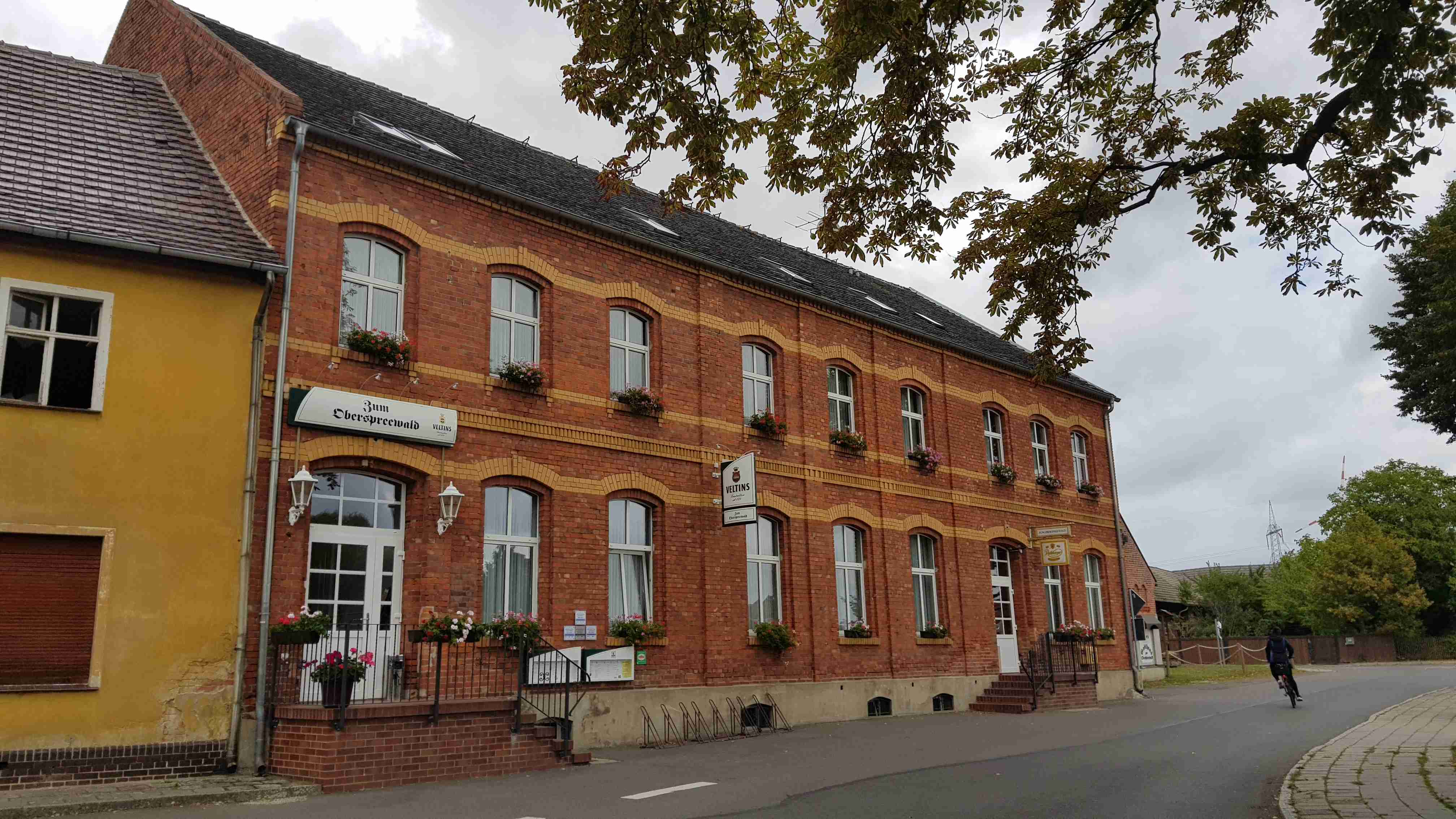 Autobus nás ráno odvezl do Lübbenu, kde nás vyložil na náměstí, na kterém jsme se v neděli občerstvovali v restauraci. Ta byla ještě zavřená, ale vedlejší kavárna měla otevřeno, čehož využila Iva i brněnští přátelé a usadili se hned na kávu. Já mezitím udělal pár fotek a když si kafíčkáři užili svého moku, vyrazili jsme. Projeli jsme městem a na jeho konci za mostem přes řeku jsme, na rozdíl od neděle, zatočili doprava do centra biosférické rezervace UNESCO. Cesta vedla podél vodních toků loukami a lesy, bylo znát, že je již po sezoně – míjeli jsme uzavřená přístaviště výletních loděk a různé stánky byly rovněž bez života. Dojeli jsme do městečka Straupitz, kde jsme trochu vybočili z trasy a zajeli jsme k holandskému mlýnu. Přilehlá restaurace byla však natolik plná, že jsme udělali pouze pár fotek mlýna a pokračovali v cestě. Pořád na území rezervace, zajeli jsme i k bludišti, které jsem objevil na mapě, ale to bylo také uzavřené. Tak jsme v poklidném tempu dojeli na kraj Burgu k Bismarckově věži, ale i ta byla uzavřená. Kousek od věže jsme zakotvili v zahradní hospůdce, kde jsme dali občerstvení a poté pokračovali do centra Burgu kolem mlýna k bývalému nádraží, kde je museum a kavárna. Museum však bylo zavřené a kavárna plná, a tak jsme se kousek vrátili do kavárny na protější ulici, která byla sice také plná, ale postupně se uvolňovala místa, a tak si kafíčkáři opět přišli na své navíc i se zákuskem. Po kavárenských orgiích jsme pokračovali v cestě, ale již jenom kousek na okraj Burgu, kde čekal autobus. Najeto necelých 40 km v chladném a větrném počasí, při zpáteční cestě autobusem na hotel začalo pršet.