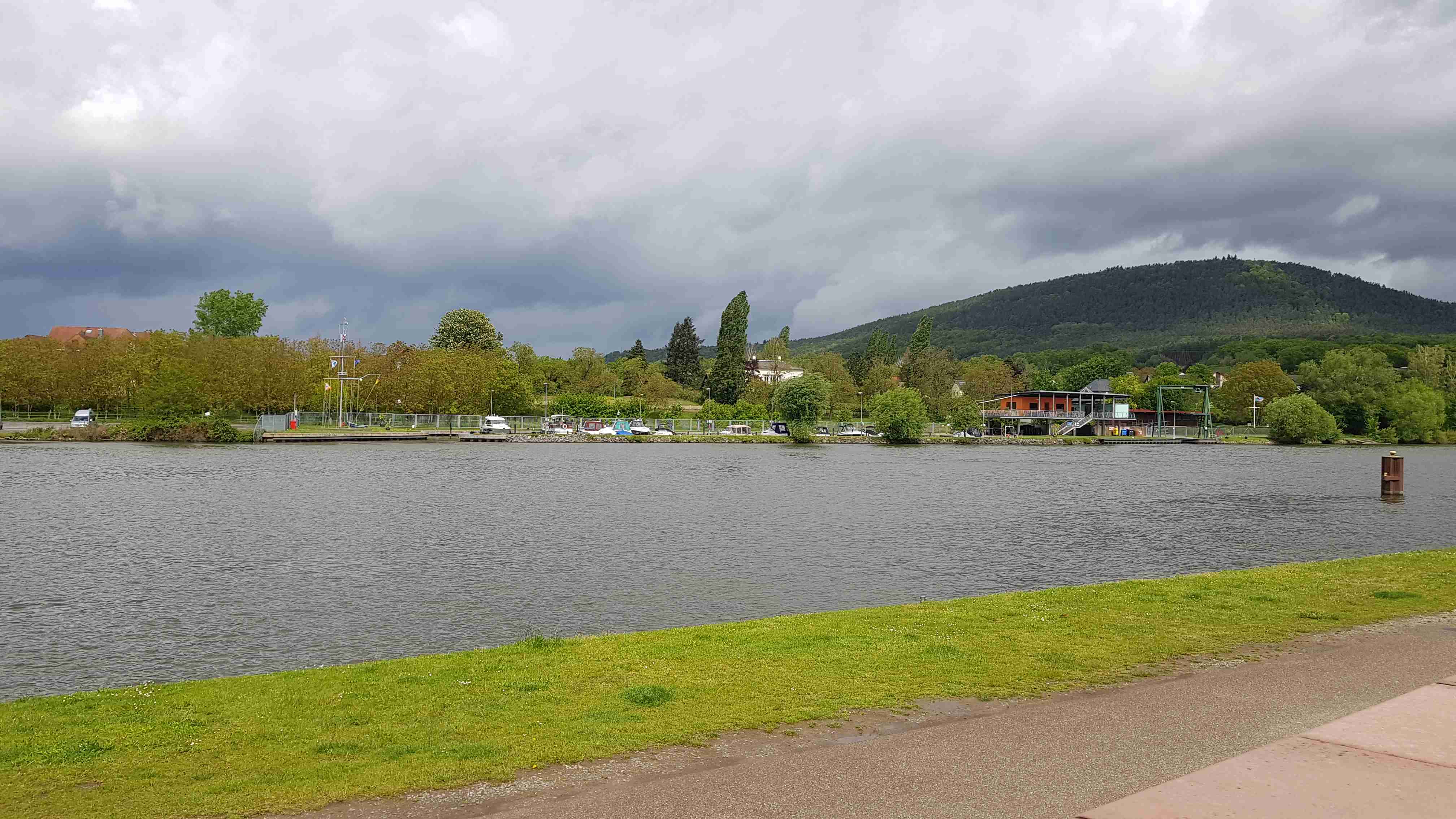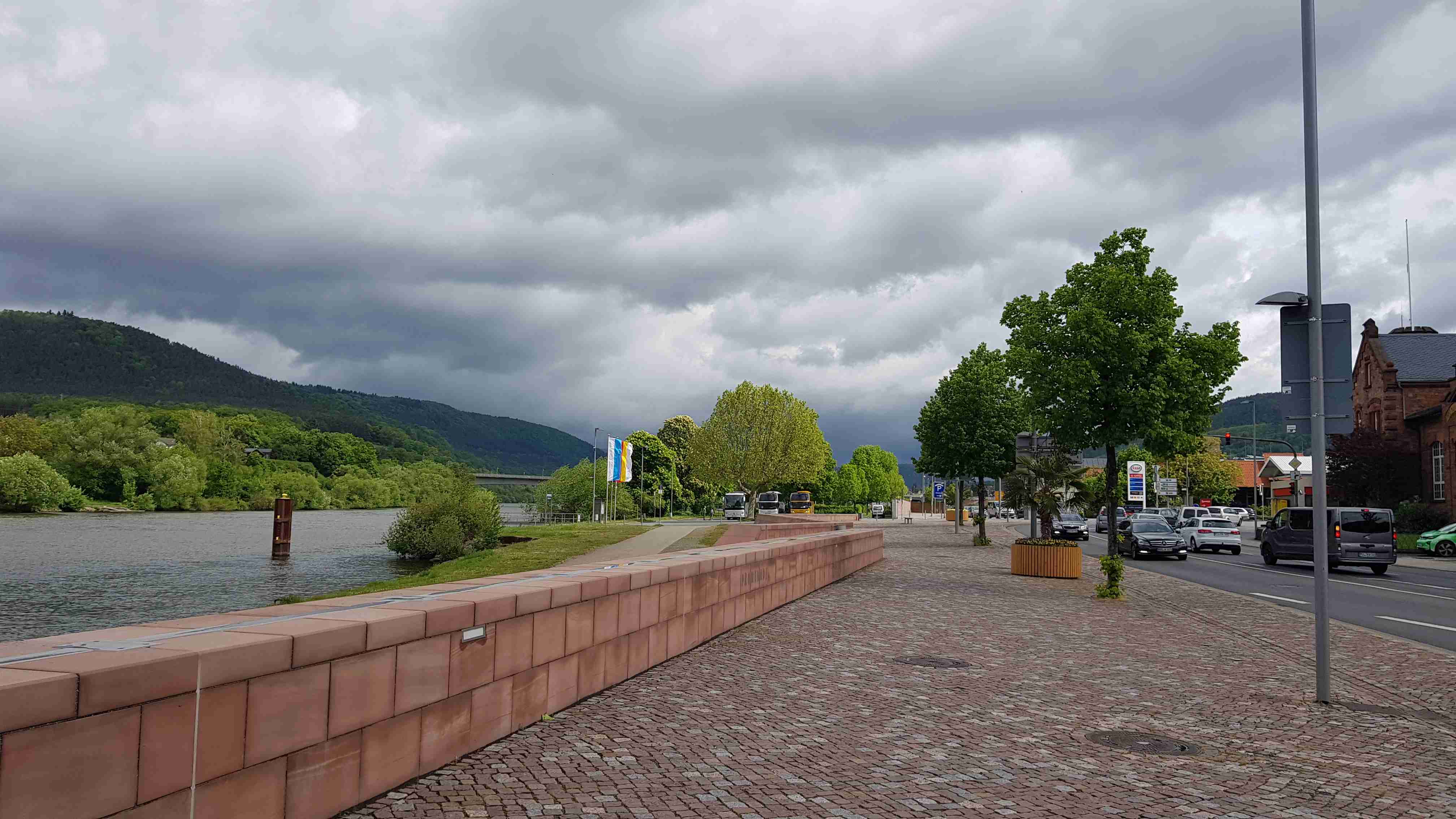 Nad ránem lilo jako z konve, během snídaně pořád ještě pršelo, a tak se většina rozhodla do Miltenbergu, posledního místa našeho putování, jet autobusem. Asi 10 statečných se rozhodlo pro kolo a ti nakonec byli vítězové, neboť celou dobu jejich jízdy téměř nepršelo a pršet začalo až poté, co se naložili do busu. Z Kreuzwertheimu do Miltenbergu to bylo něco přes 30 kilometrů podél Mohanu, autobus čekal na parkovišti u řeky, udělal jsem pár fotek na nábřeží, po poledni dorazili všichni cyklisté, naložili jsme je a kolem 13. hodiny jsme vyrazili na cestu domů. Lilo jako z konve, a tak jsme neudělali ani závěrečné skupinové foto, až na zastávce na Kateřině. Do Prahy jsme dorazili před 19. hodinou, rozloučili se s Luborem a Termitem a za hodinu jsme byli doma. Dobrý, ale příště prosím bez vody.
