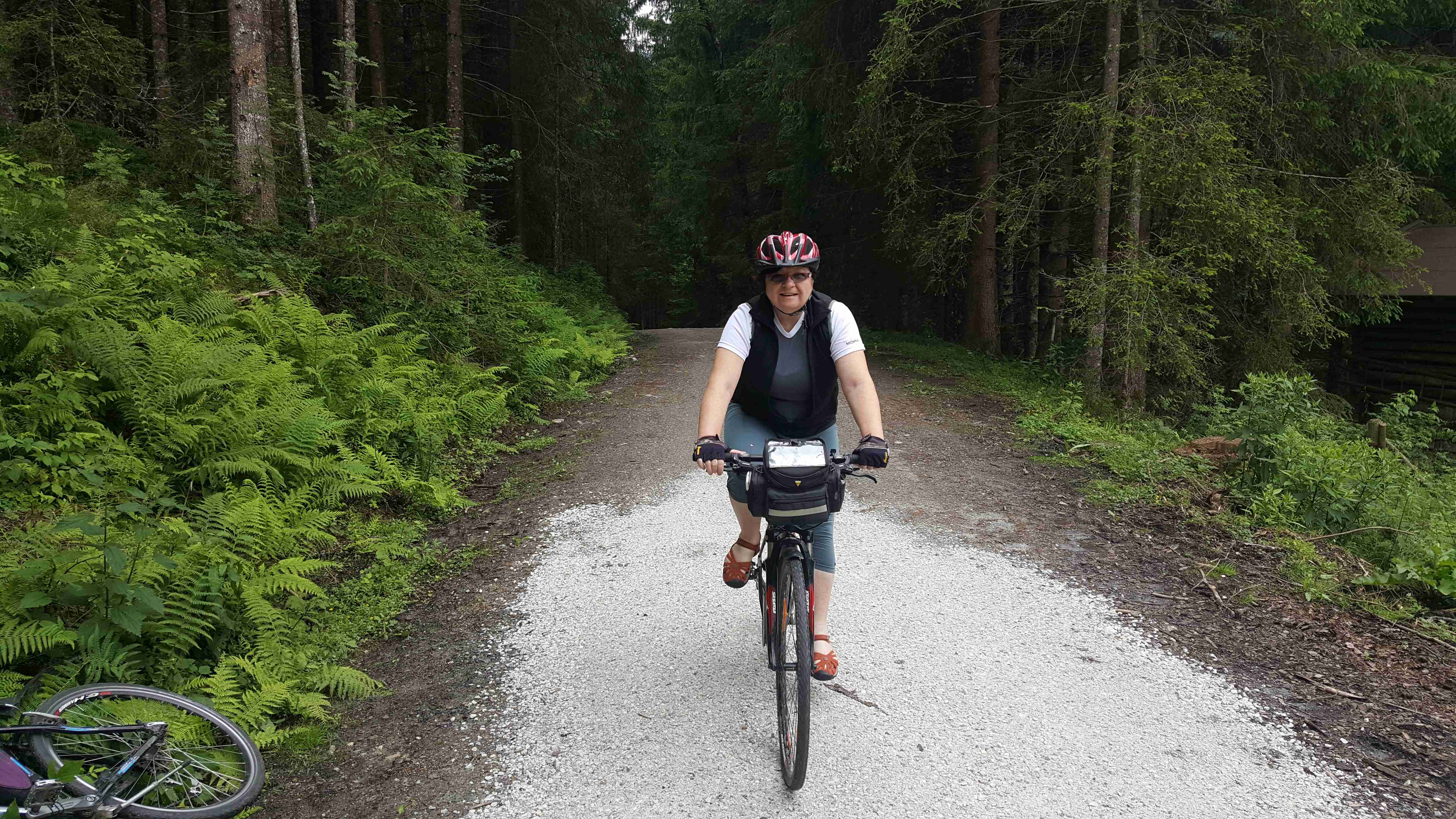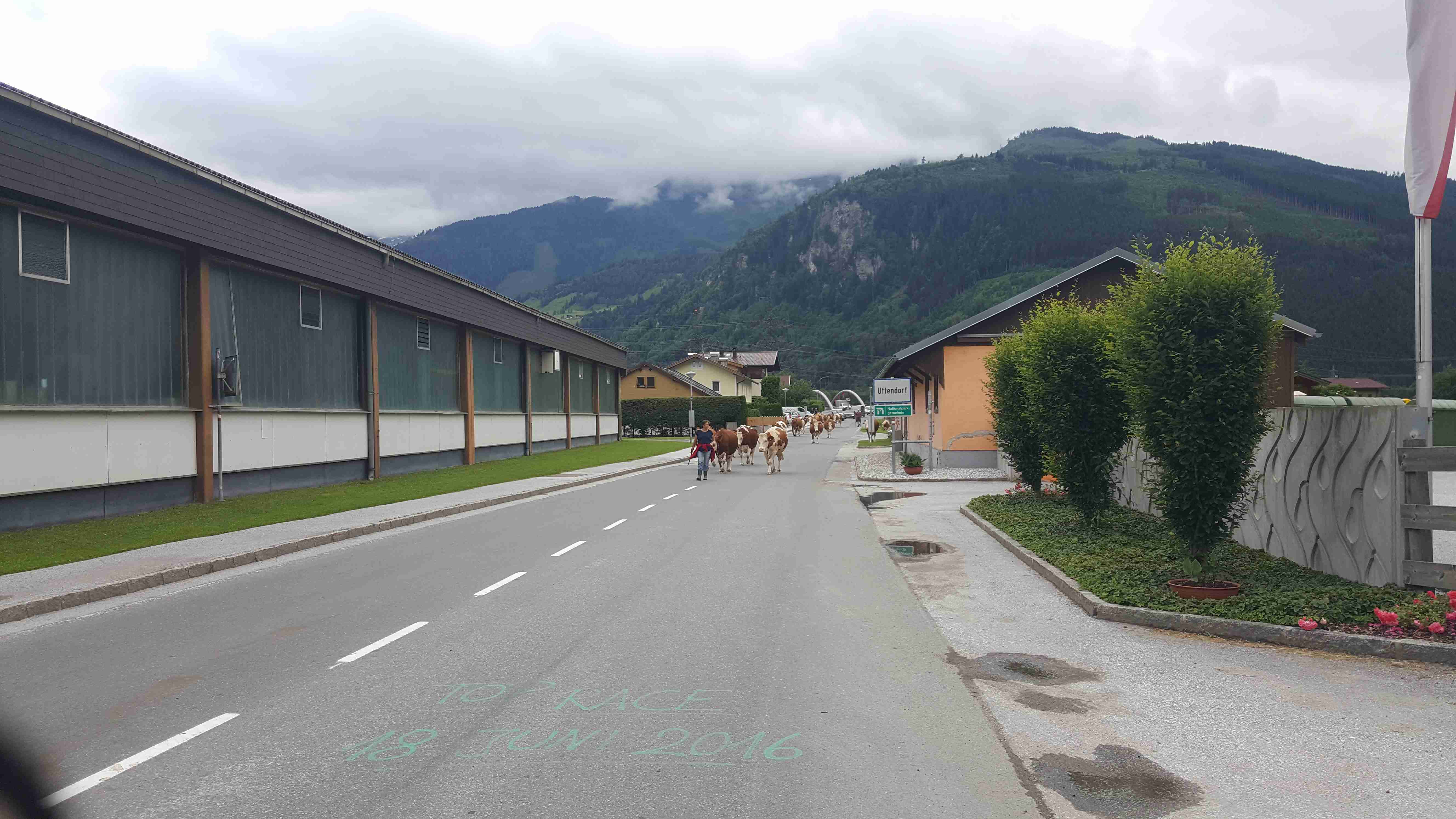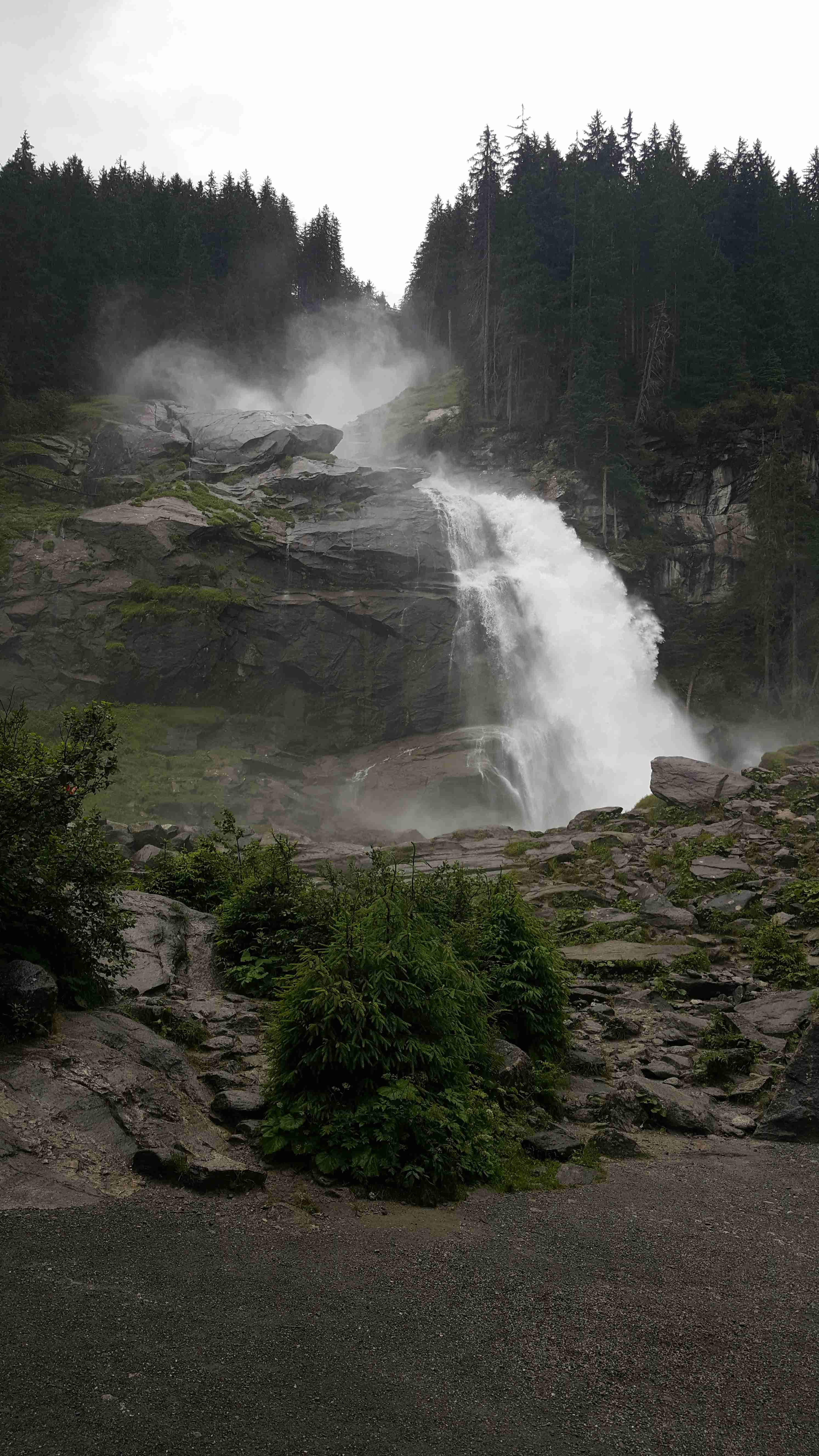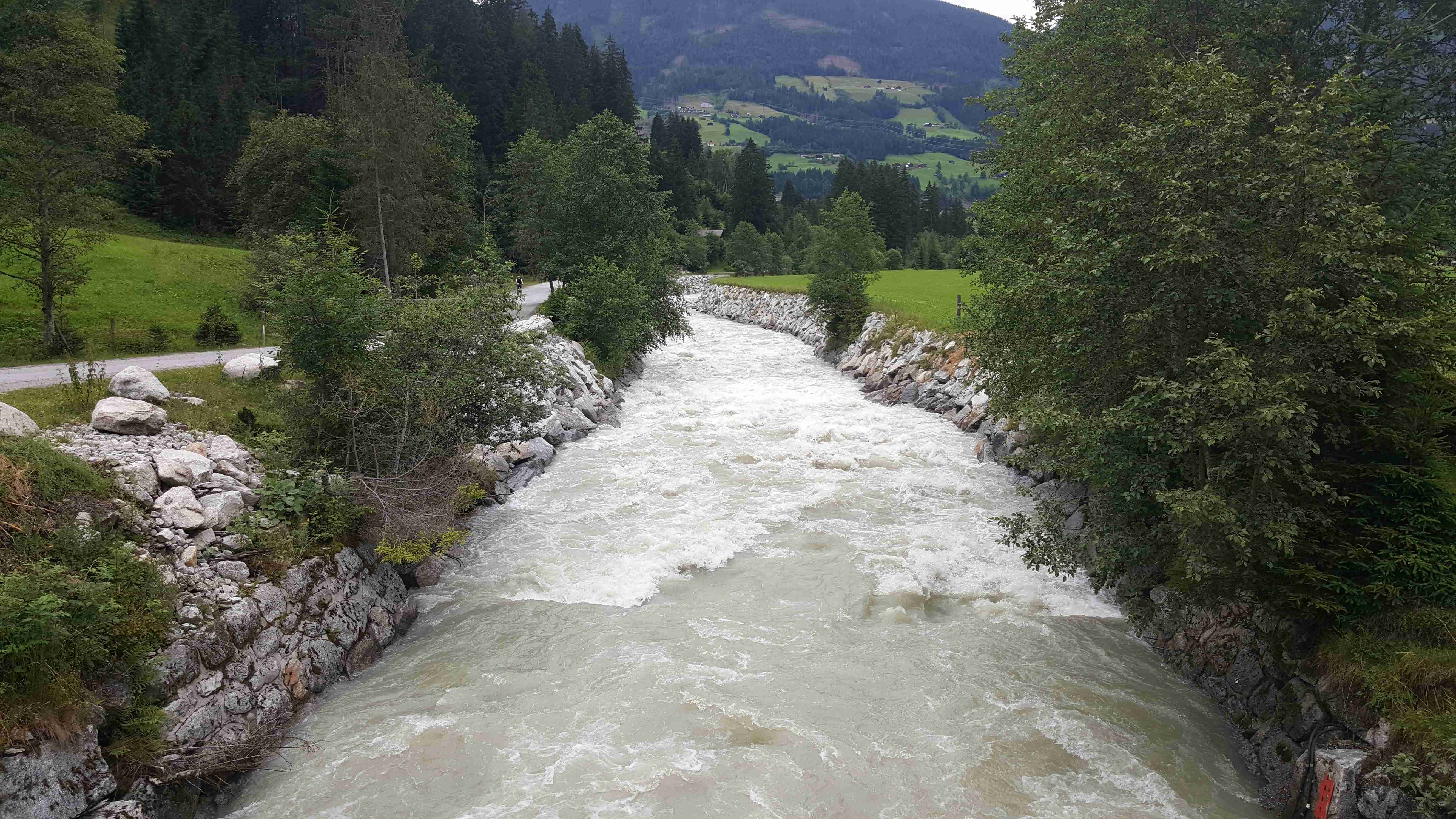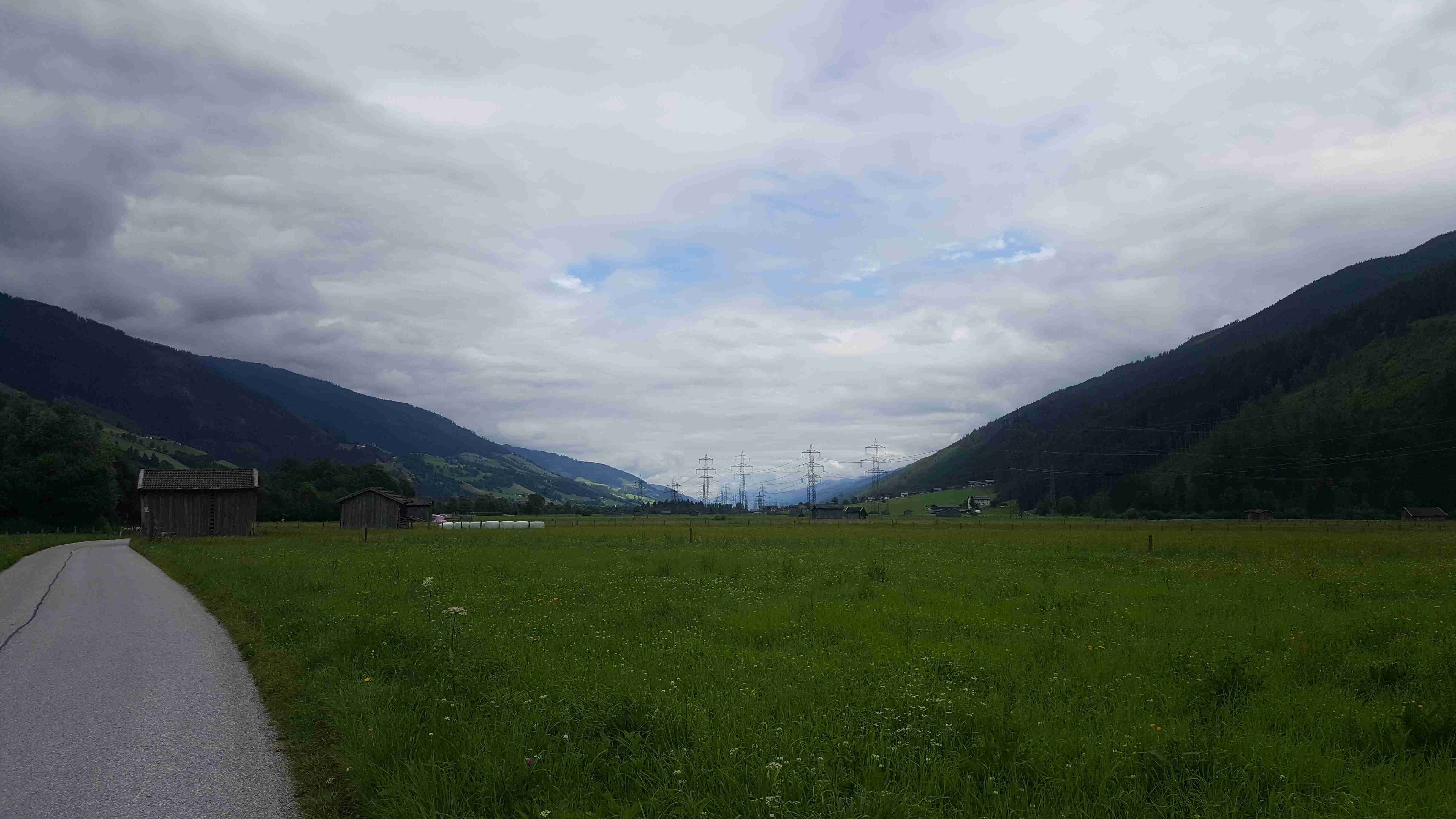 Po snídani jsme se naložili do busu a odjeli směr Krimmlské vodopády. Cestou jsme se ještě zastavili v našem následujícím hotelu, kde Lubor vyzvedl tzv. Sommerkarty, které nás opravňovaly ke spoustě volných vstupů na lanovky, do muzeí, apod. Na parkovišti u vodopádů jsme pak vyložili kola, Lubor udělal stručný briefing a my se vydali na první část našeho putování. Sjeli jsme ke vstupu ke Krimmlským vodopádům, kde jsme hned využili naše Sommerkarty a zdarma jsme mohli jít dál. Nafotili jsme si pouze nejnižší místo vodopádů a vydali se na začátek Tauernské cyklostezky, nacházející se pouze několik set metrů od vodopádu. Ještě je třeba připomenout, že Krimmlské vodopády jsme navštívili a vystoupali celou cestu až nahoru v roce 2002 v rámci poznávacího zájezdu To nejlepší z Alp s dnes již neexistující SK Svobodná cesta z České Lípy. Ale zpátky na trať. Zpočátku cyklostezka klesá lesem podél říčky Krimmler Ache, do které vtékají Krimmleské vodopády. Po vyjetí z lesa se pak říčka vlévá do řeky Salzach, podél které jsme se pohybovali celý zbytek zájezdu. Stezka vede údolím většinou podél řeky, občas se od ní odkloní, aby se po několika kilometrech k ní vrátila. Po 35 km jsme zastavili v městečku Mittersill, kde stál autobus a my jsme si dali alespoň pivo a tyčinku. Po půlhodince odpočinku jsme vyrazili na druhou polovinu. Vždy, když se cyklostezka odklonila od řeky Salzach, tak následovalo stoupání do nějaké obce. Jedna z výjimek byl známý Kaprun, který leží na rovině a kam jsme dojeli asi po 62 km. Za Kaprunem se Tauernská cyklostezka dělí na dvě větve – jedna se stáčí na sever na Zell am See, druhá pokračuje dál na východ podél řeky Salzach a na sever se stáčí až u St. Johan. Obě větve se setkají před Salzburgem a Tauernská cyklostezka pak pokračuje nejprve podél řeky Salzach a posléze podél Innu, když se do něho Salzach vlije, až do Passau, kde se Inn vlévá do Dunaje a cyklostezka končí. Chvíli jsem ladil mapy a náš další postup a nakonec jsem zvolil cestu podél řeky až téměř do Brucku a tam jsme odbočili na sever a po cyklostezce jsme dojeli až k našemu hotelu v Schüttdorfu. Najeto 70 km v podmračeném počasí ideálním pro cyklistiku, ale horším pro fotografování.
