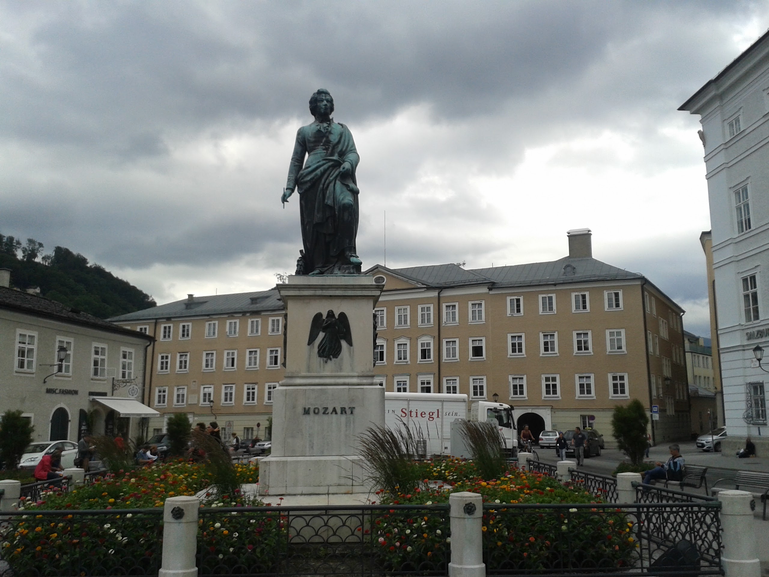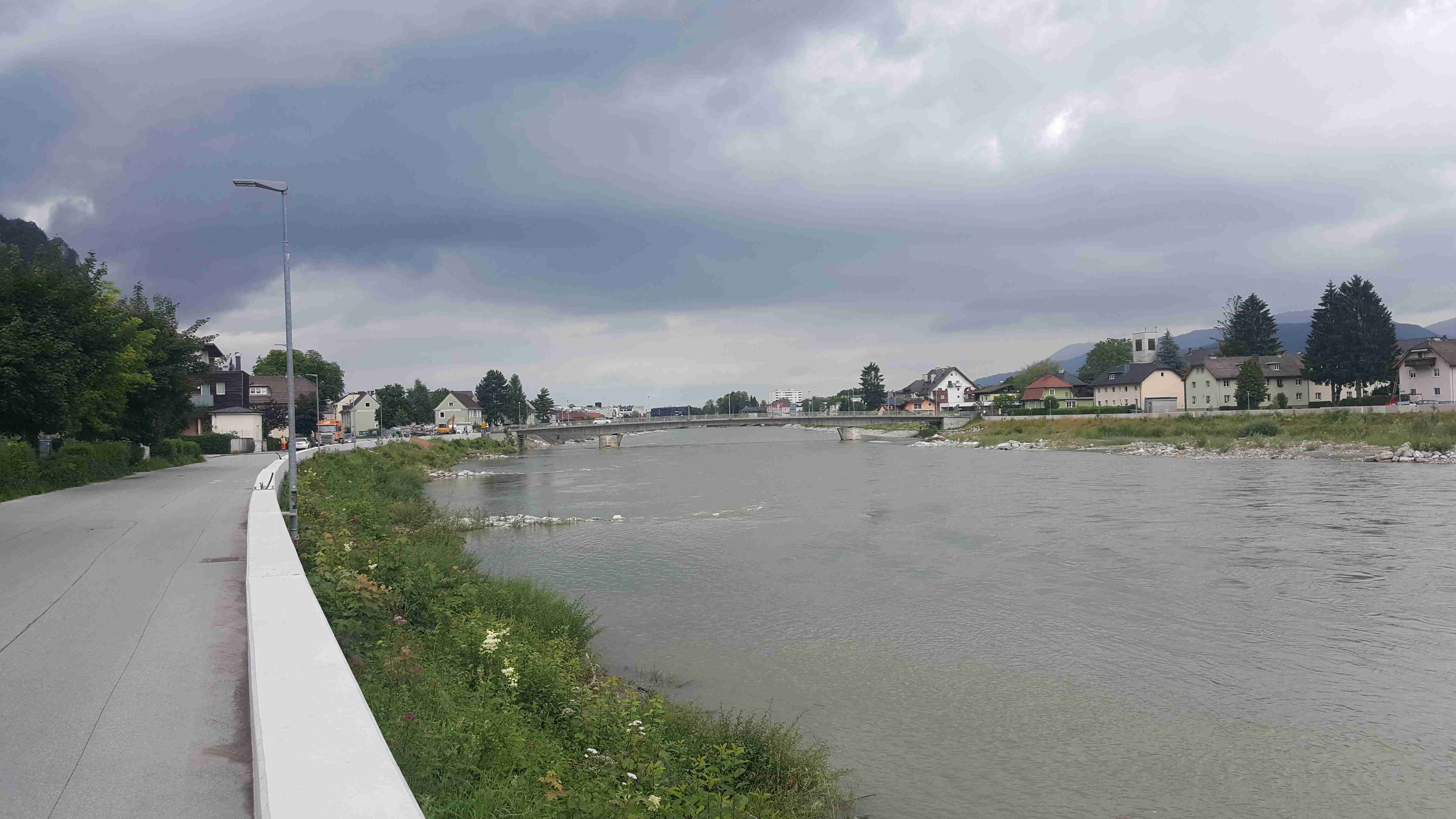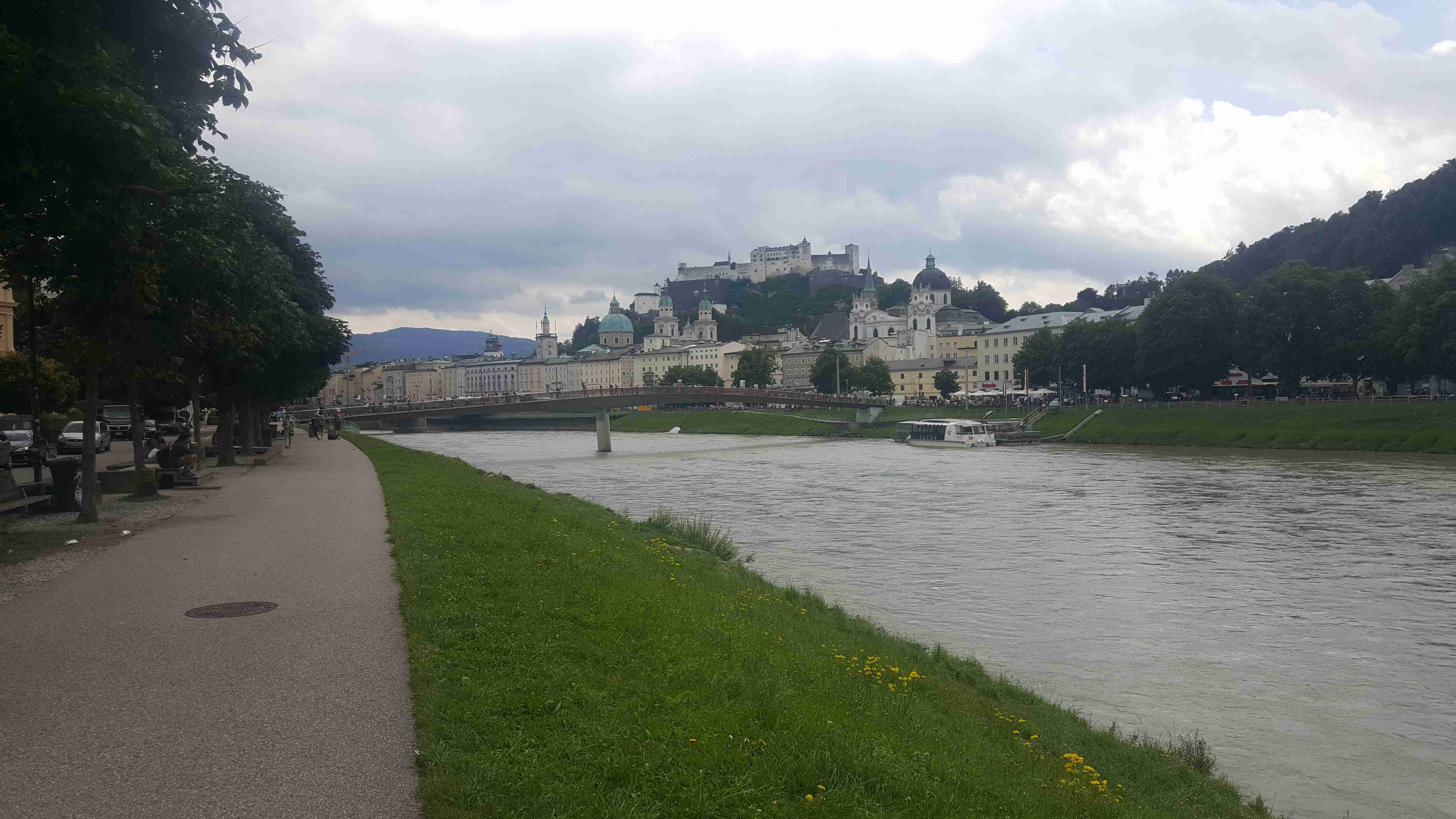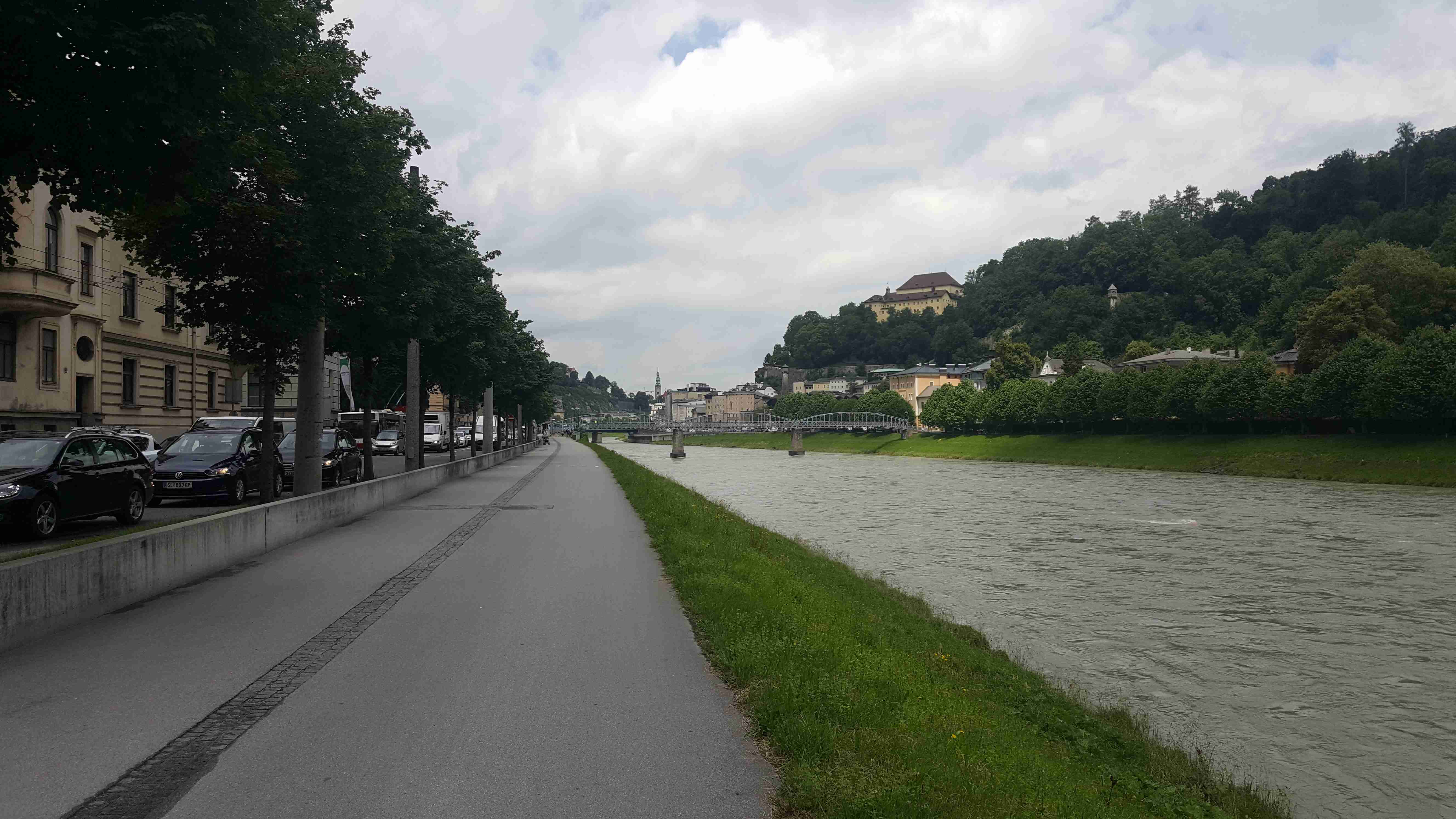 Poslední etapu jsme zahájili přesunem autobusem do asi 20 km vzdáleného Gollingu, kde jsme u nádraží sundali kola a vydali se na poslední etapu. První část byla trochu houpavá, ale od městečka Hallein již vedla cyklostezka zase jenom podél vody. V poklidném tempu jsme před polednem dorazili do Salzburgu, odbočili jsme do historického centra, kde jsme zastavili na Mozartově náměstí. Iva si nakoupila nějaké dárky, hlavně Mozartovy koule a kousek jsme popojeli na sousední Rezidenplatz, kde jsem si dal na rozloučenou s Rakouskem Wienerschnitzel. Po obědě jsme sjeli opět k řece, přejeli na pravý břeh a poklidnou jízdou opustili Salzburg. Po pár kilometrech jsme dojeli do obce Bergheim, kde u nádraží vedle cyklostezky čekal autobus. Naložili se kola a po půl třetí jsme vyrazili na zpáteční cestu. V Českých Budějovicích jsme měli sraz s autobusem ze Solné komory, do kterého se přesunuli Brňáci, a po nutné pauze jsme pokračovali dál. Zvolili jsme trasu přes Písek, kde jsme ale narazili na objížďku a ta nás zavedla dost daleko od směru a i díky mému navigování pomocí Mapy.cz jsme nakonec dorazili do Strakonic, odkud jsme pak již pelášili na Prahu, kam jsme dorazili kolem půl desáté. Martin již čekal s Transitem a tak jsme kolem 23. hodiny dorazili domů.