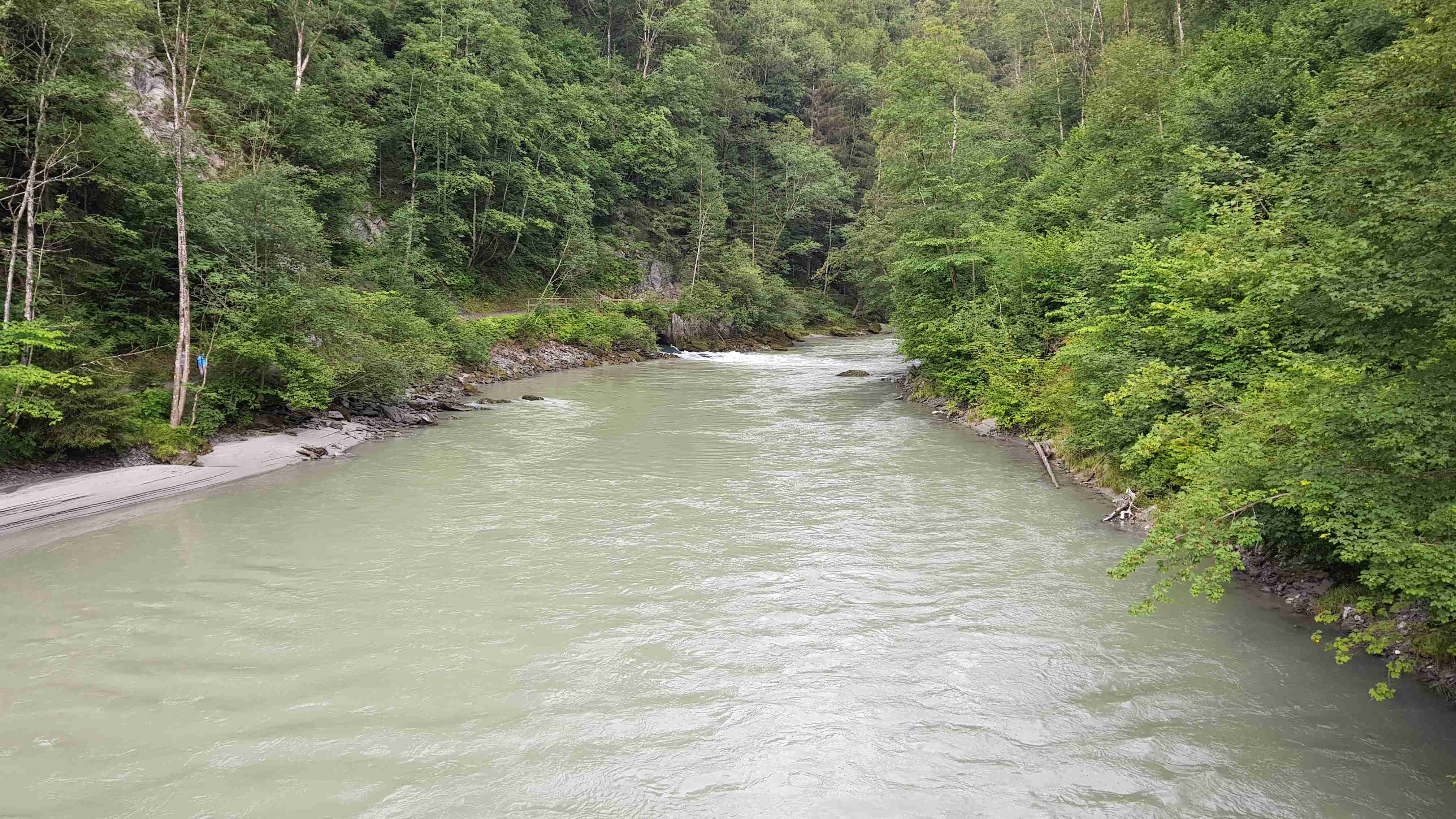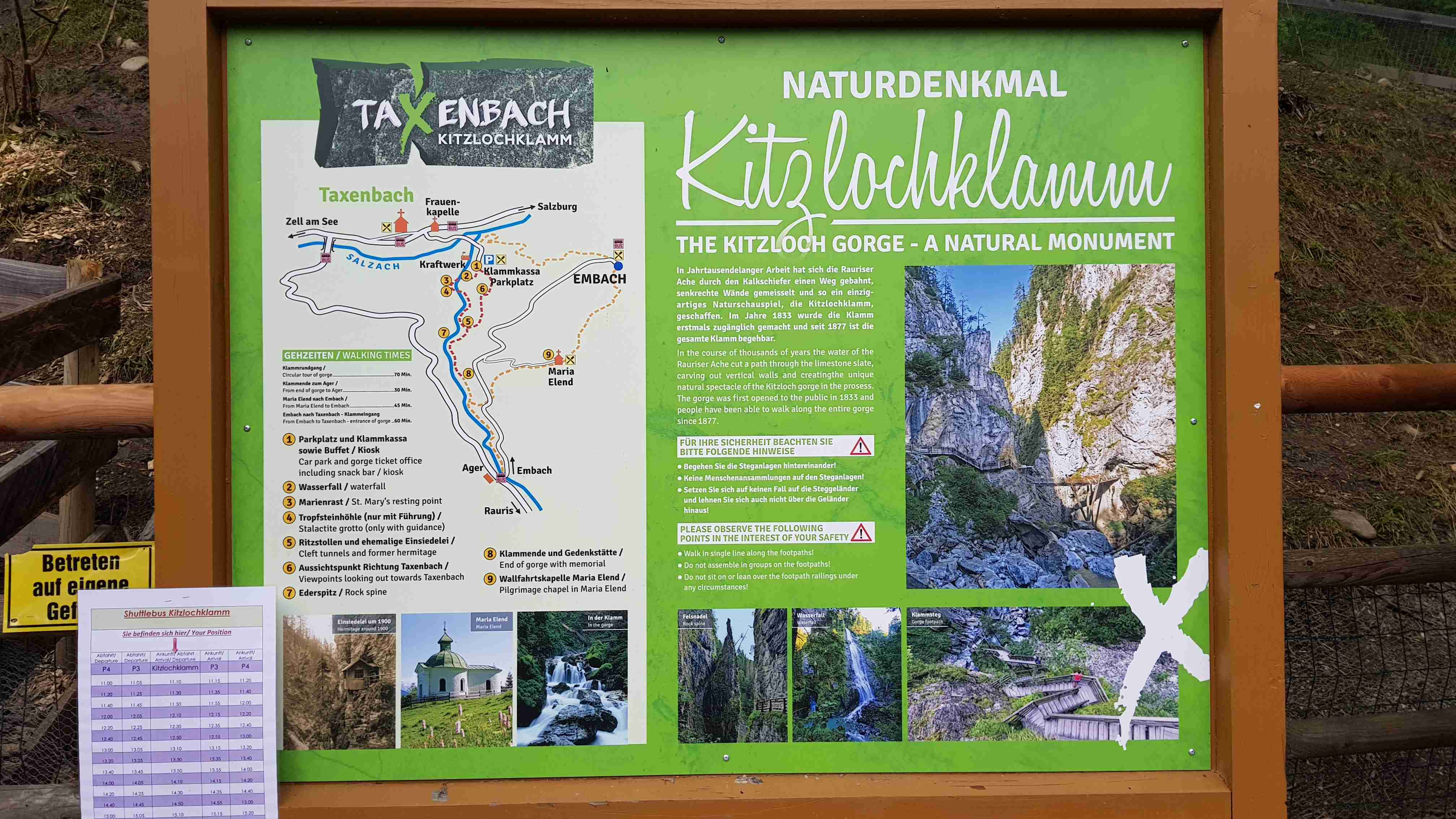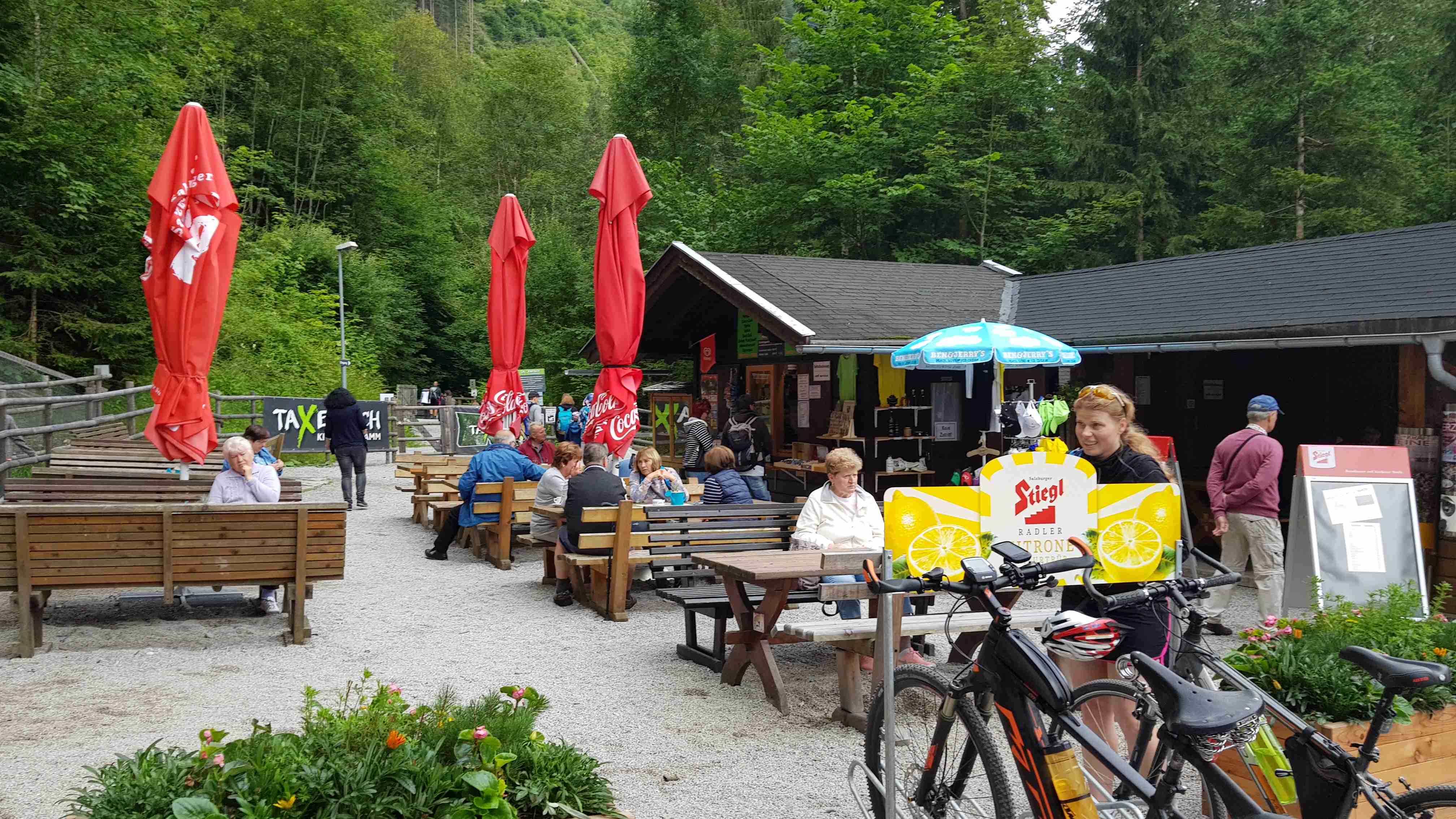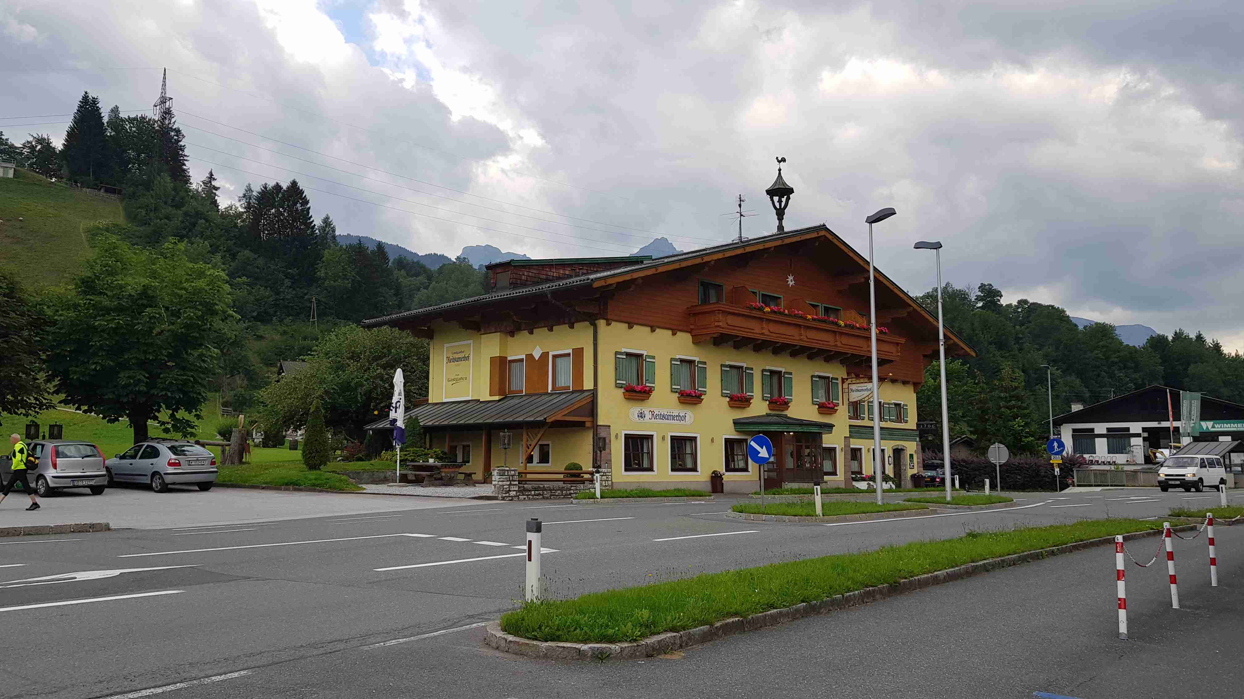 Ráno jsme ukončili náš pobyt v Zell am See, naložili jsme vše do busu a na kolech vyrazili na další etapu. Od penzionu jsme dojeli do Brucku a odtud pořád podél řeky Salzach ve směru toku. Za Taxenbachem jsem odbočil z cyklostezky na soutěsku Kitzlochklamm, prudce dolu, prudce nahoru ke vchodu do soutězky, kam jsem stejně nešel, a pak znovu naopak. Dojel jsem do Lendu, kousek za ním stál náš autobus, tak jsem se v něm nasvačil. Potom prudce nahoru do kopců k elektrárenské nádrži a znovu prudce dolů do Schwarzachu. Pak už jenom podél řeky přes Bischofshofen do Imlau, které je na dohled hradu Werfen, známého z filmu Kam orli nelétají. Cca 66 km, pršet začalo až po mém dojezdu. Ubytování jako minule v penzionu u silnice, .